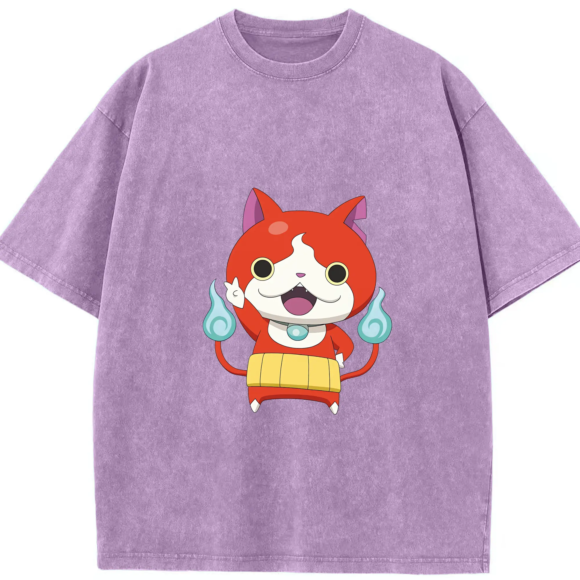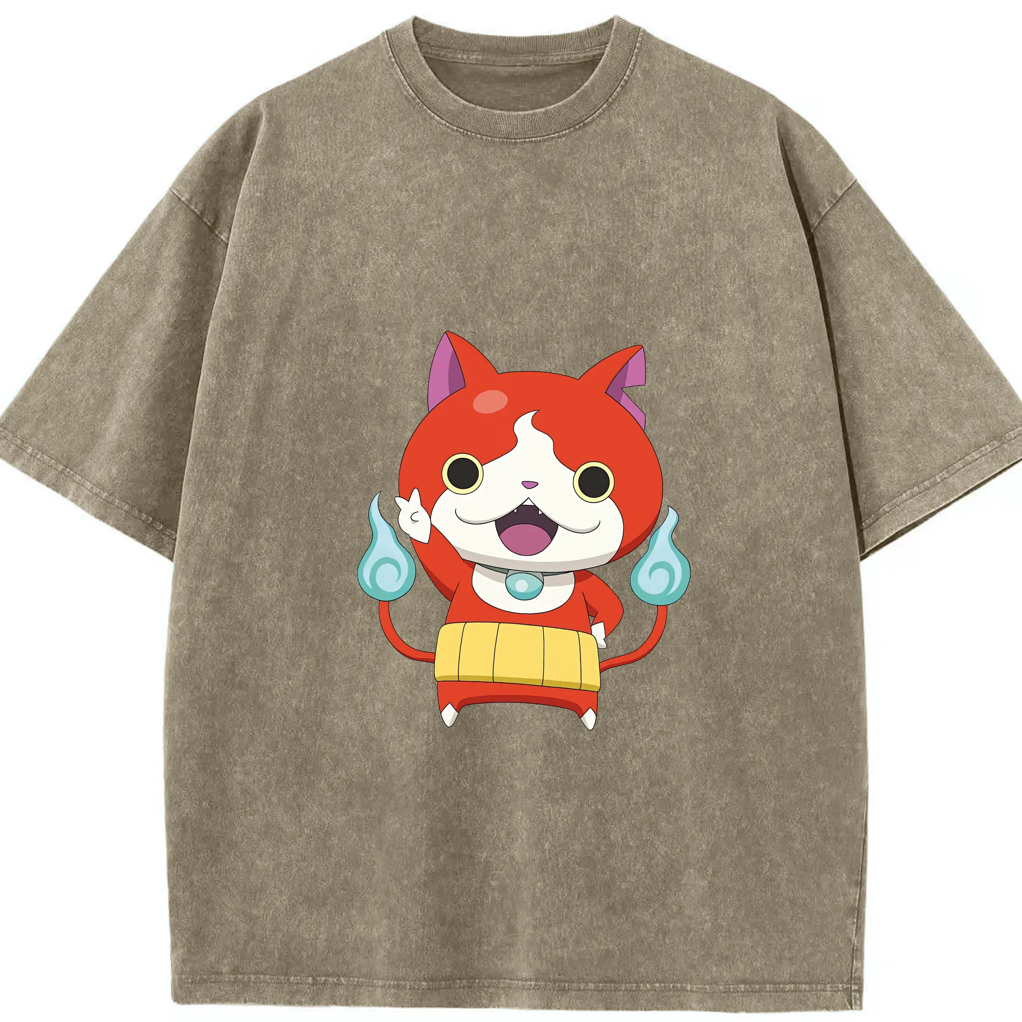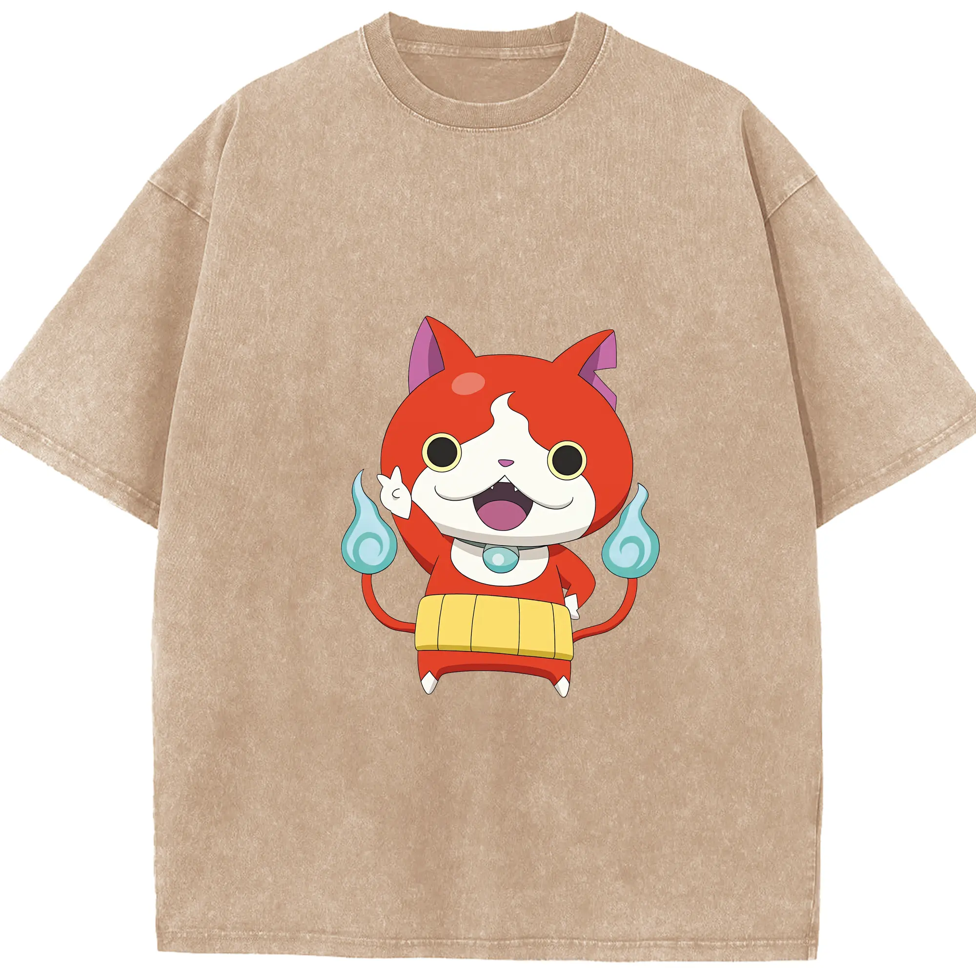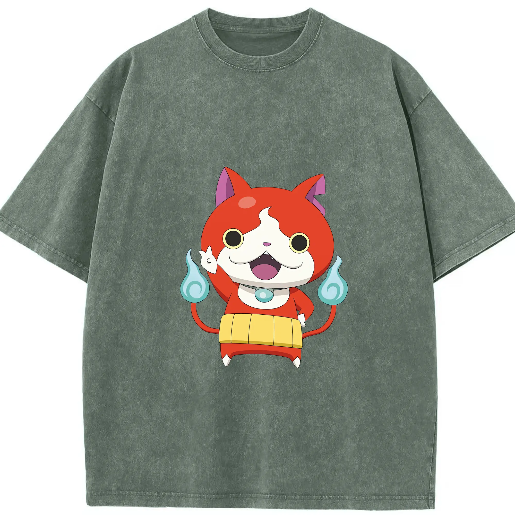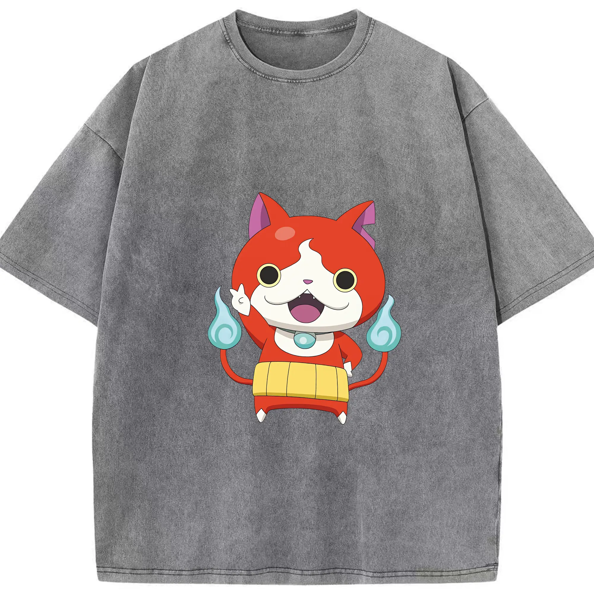 妖怪ウォッチ グッズ,ジバニャン - 綿100% ヴィンテージ風 半袖Tシャツ ・ 背面プリント ・ 柔らか肌触り ・ 通気性 快適 ・ スポーツ カジュアル 外出用