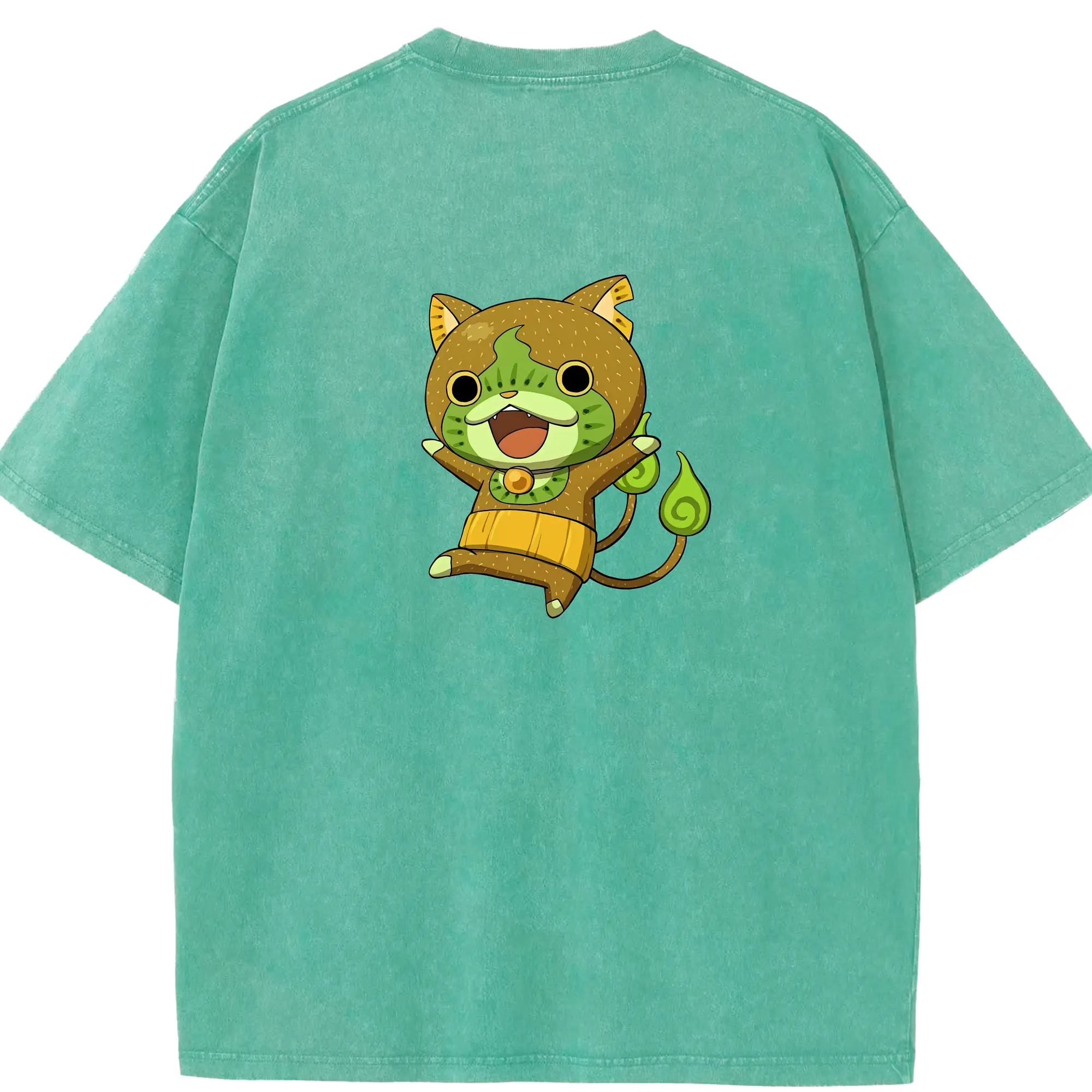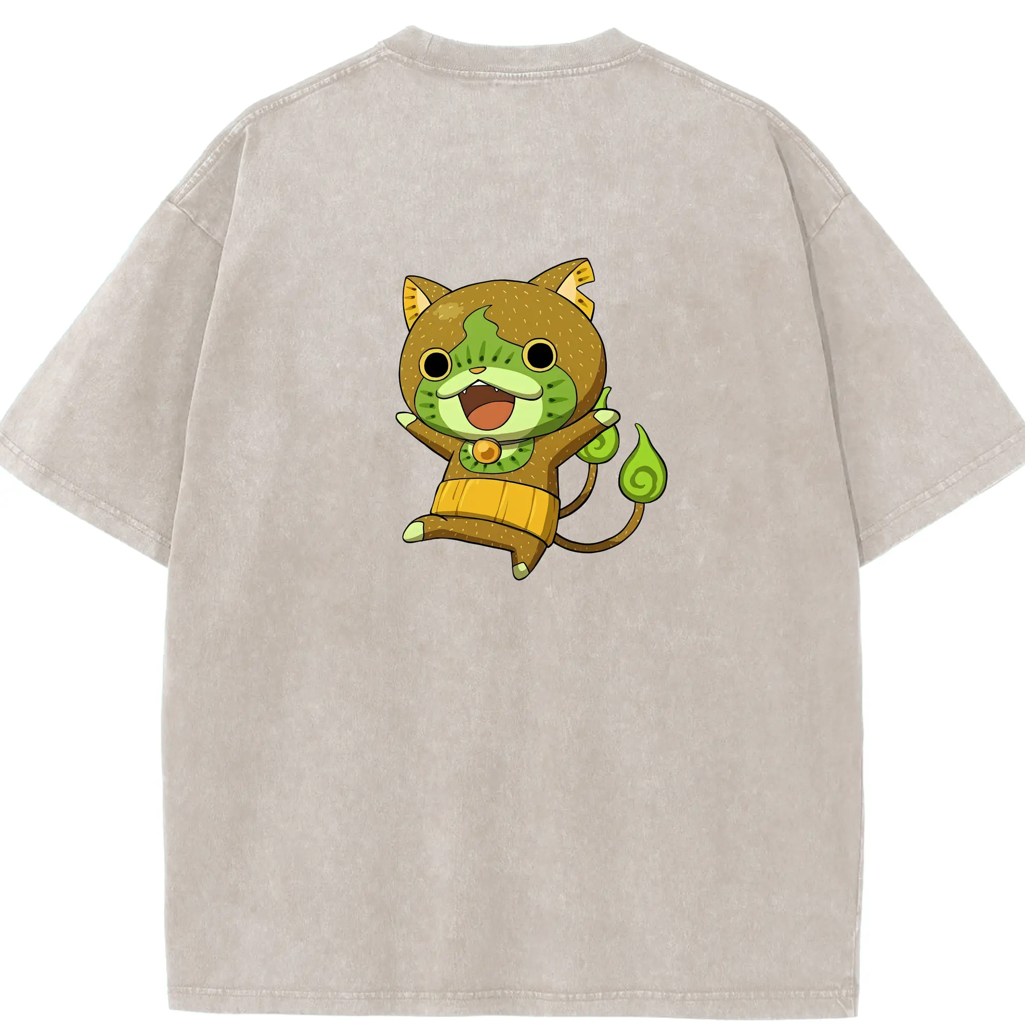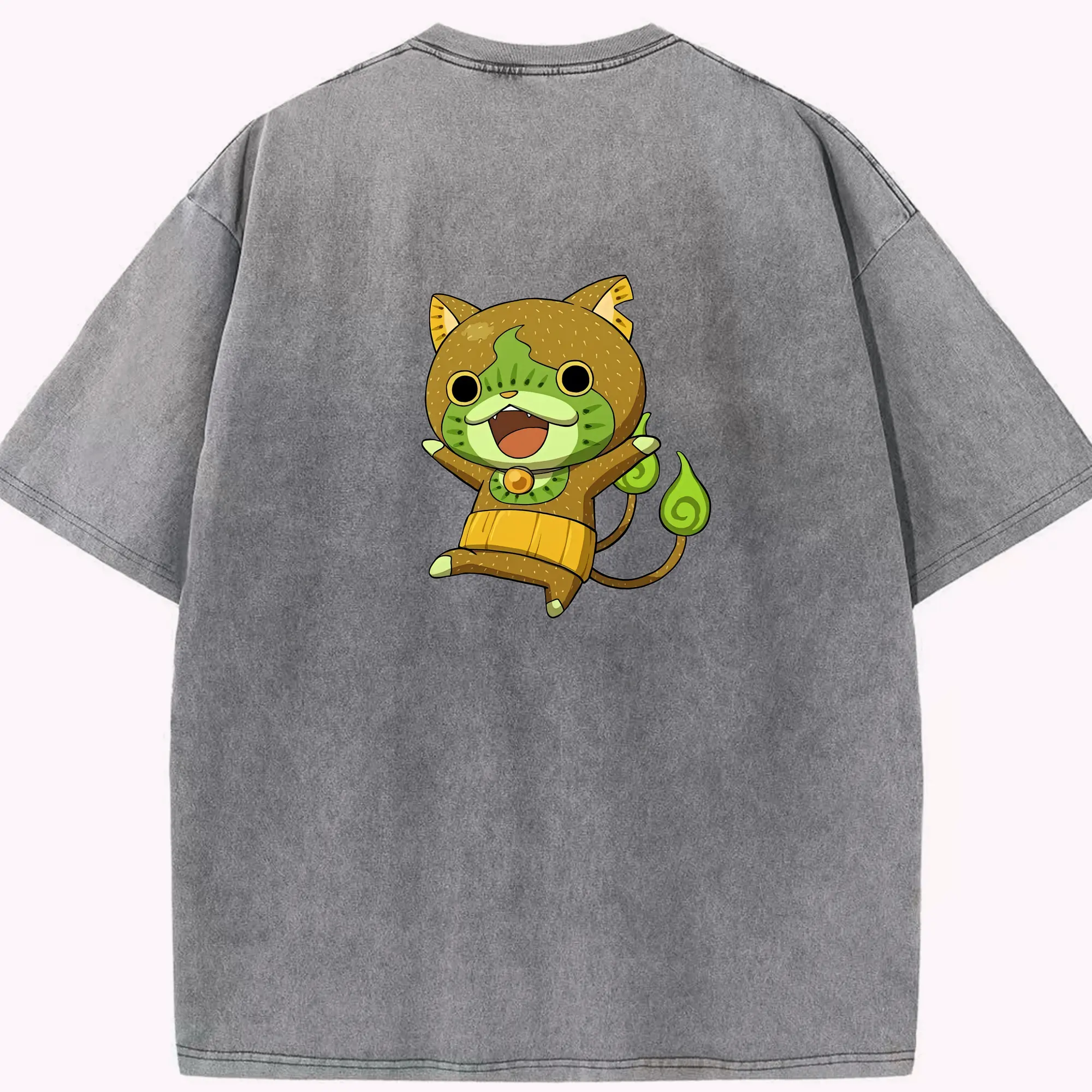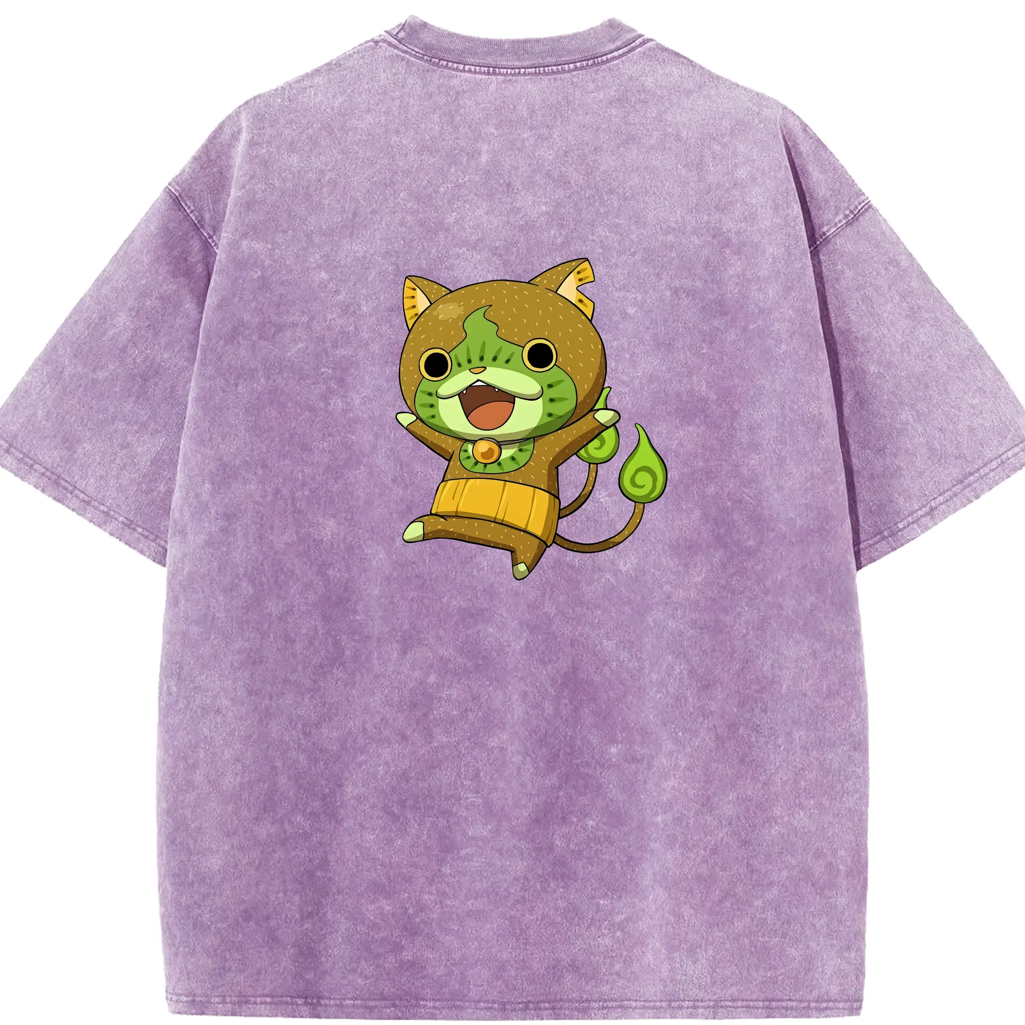 妖怪ウォッチ グッズ,ジバニャン - 綿100% ヴィンテージ風 半袖Tシャツ ・ フロントプリント ・ 柔らか肌触り ・ 通気性 快適 ・ スポーツ カジュアル 外出用