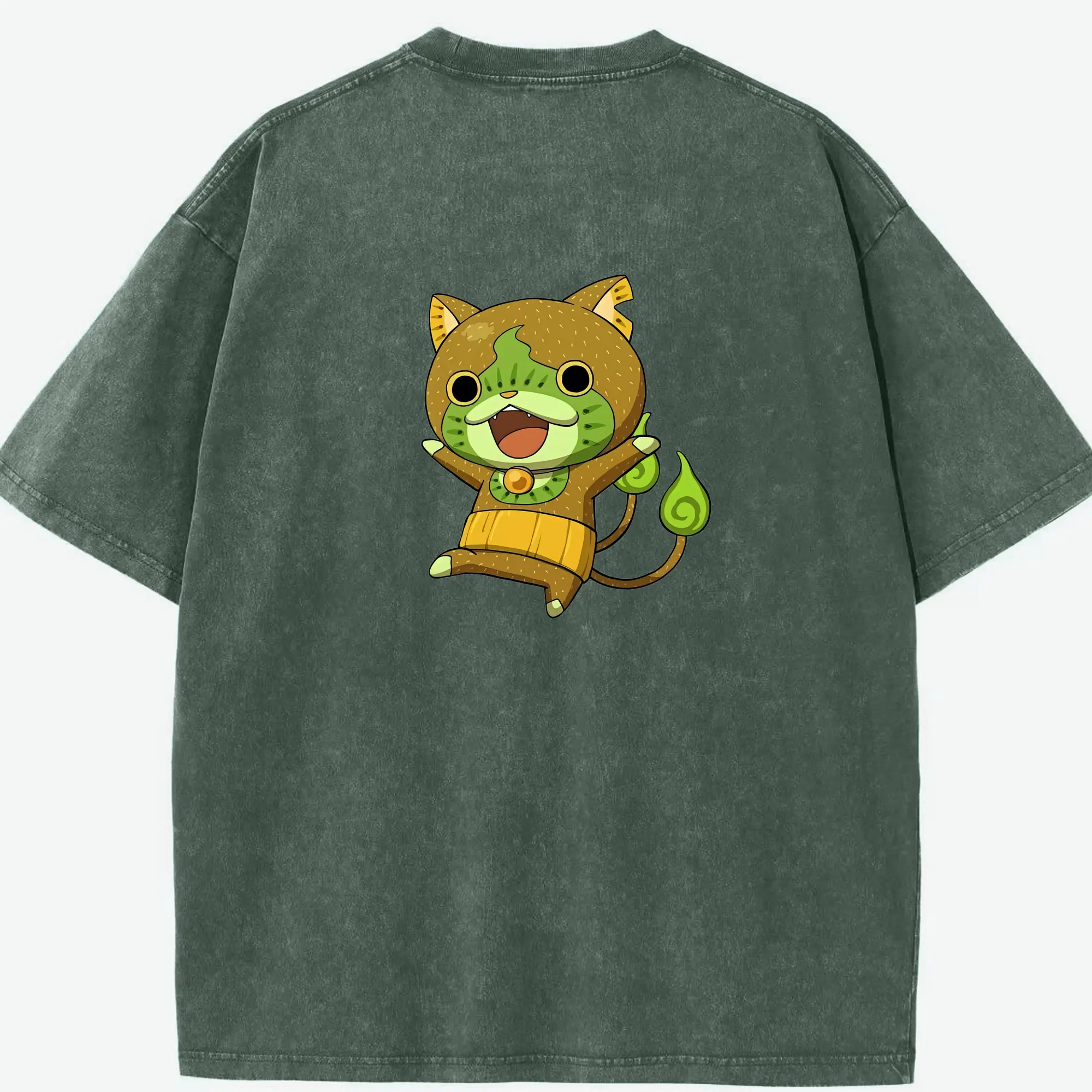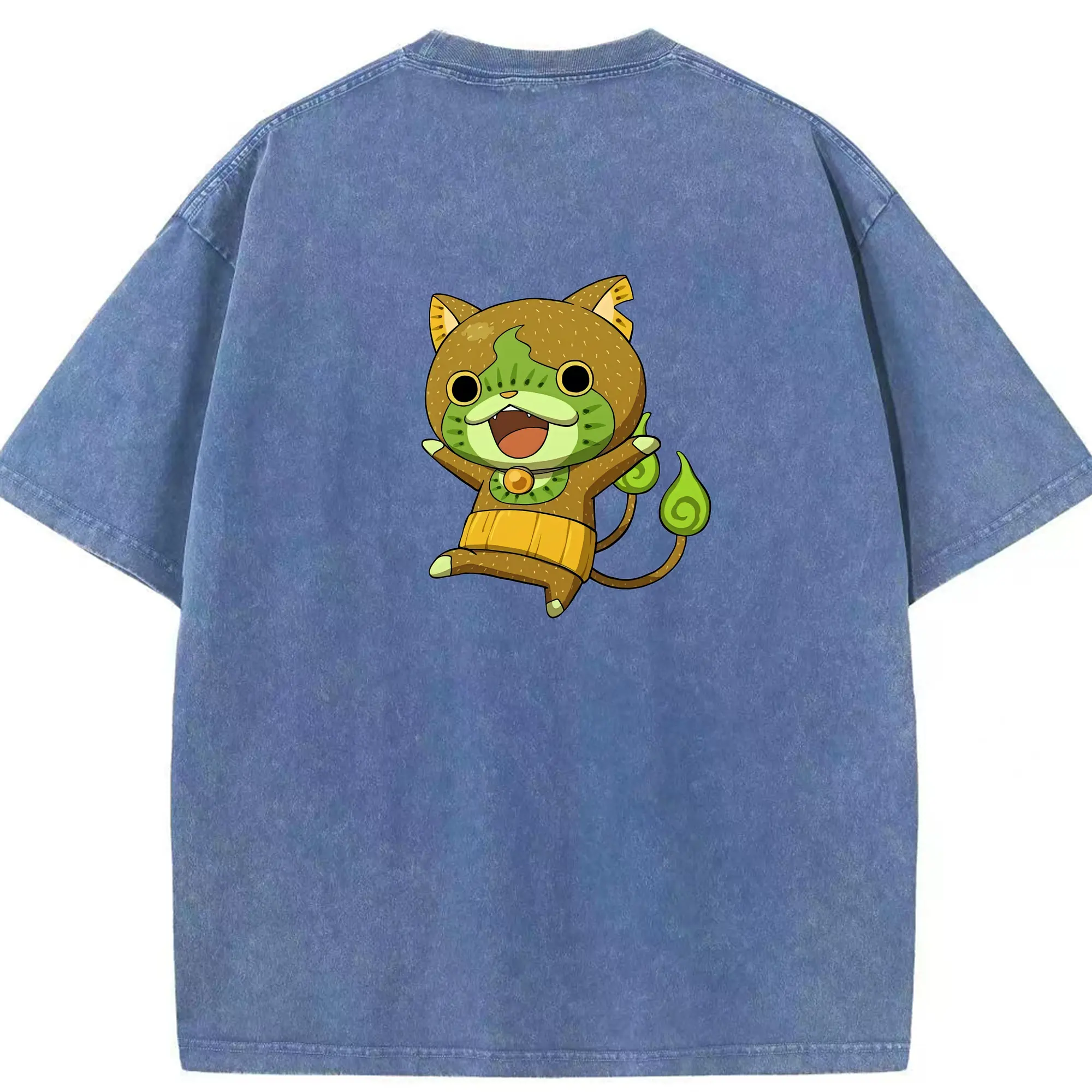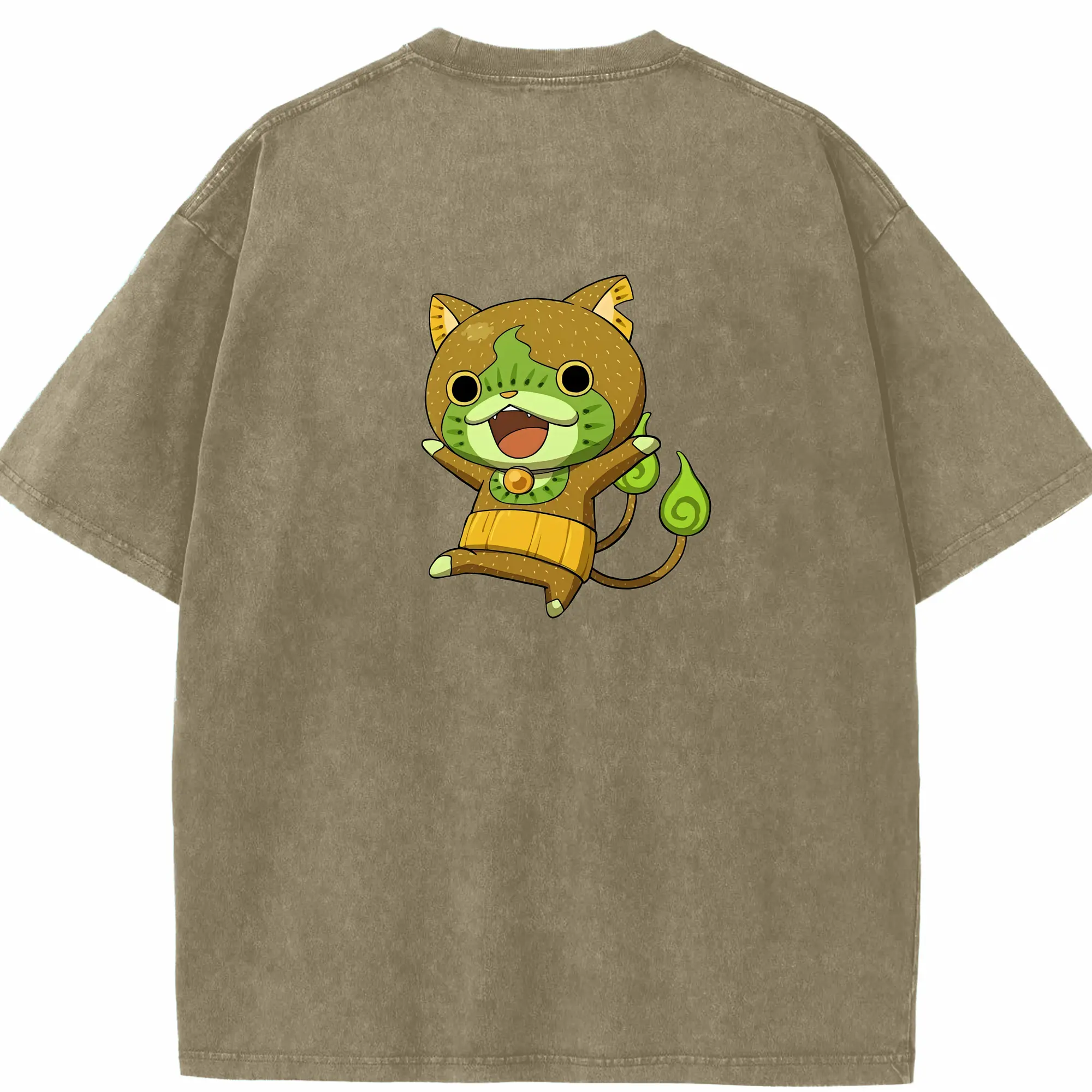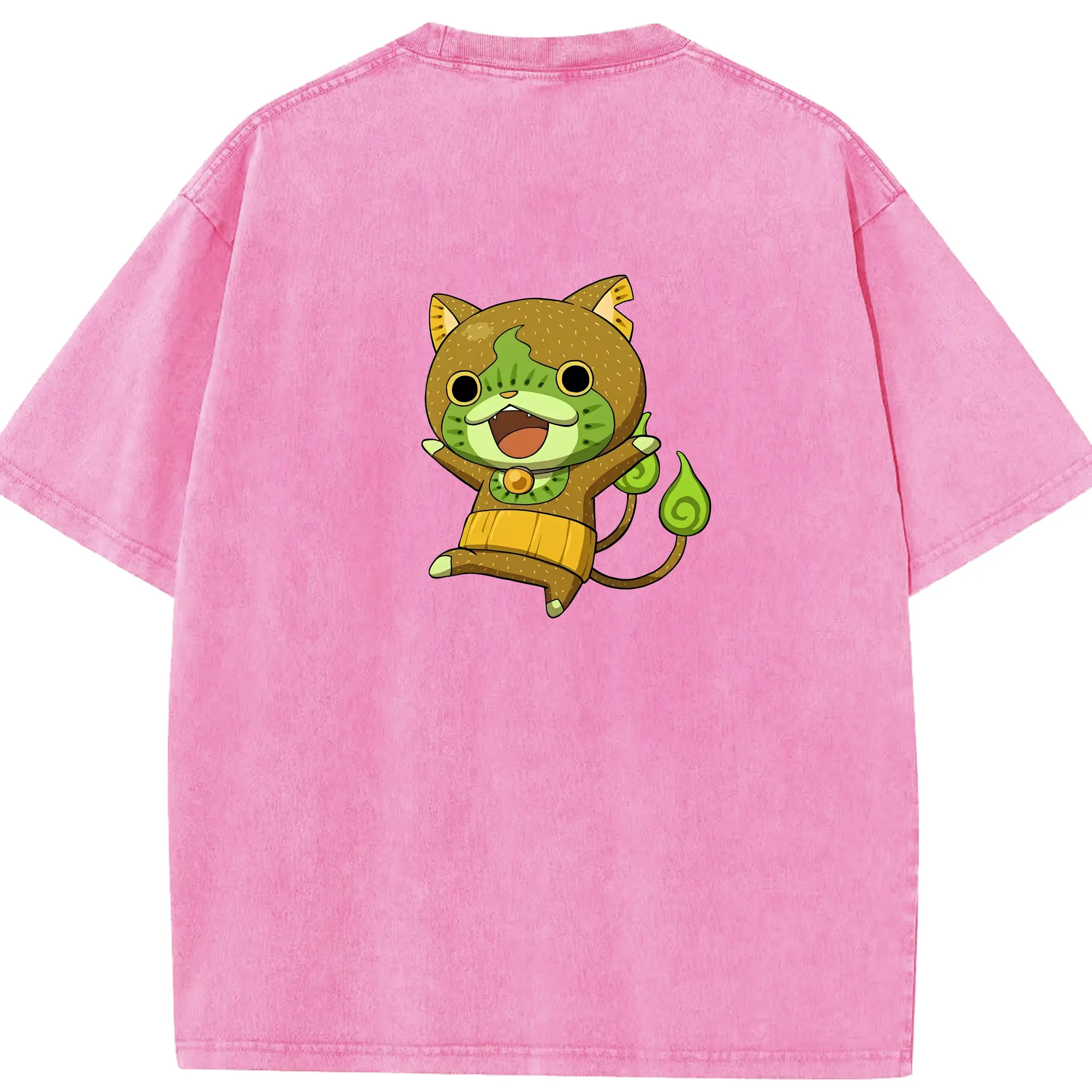 妖怪ウォッチ グッズ,ジバニャン - 綿100% ヴィンテージ風 半袖Tシャツ ・ フロントプリント ・ 柔らか肌触り ・ 通気性 快適 ・ スポーツ カジュアル 外出用