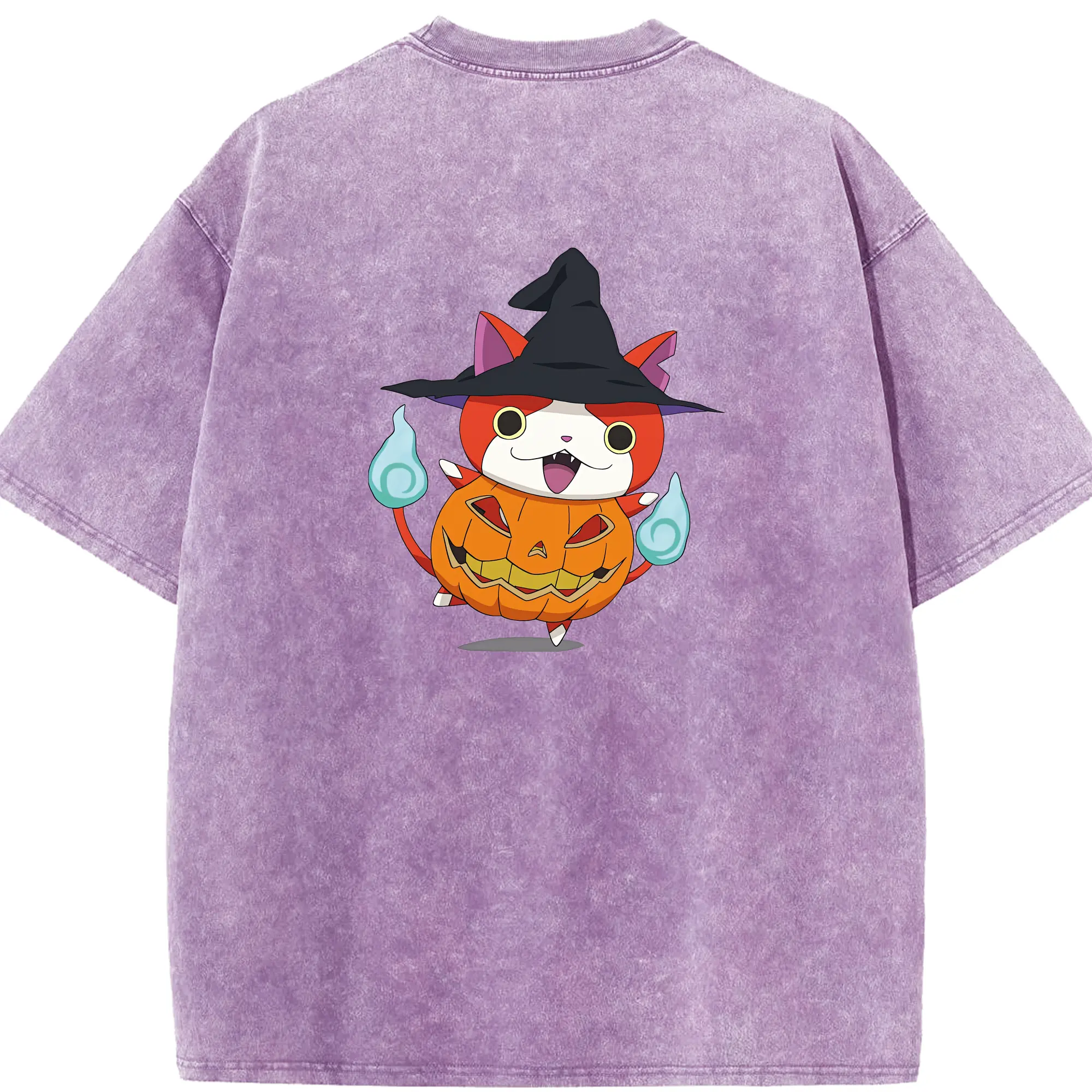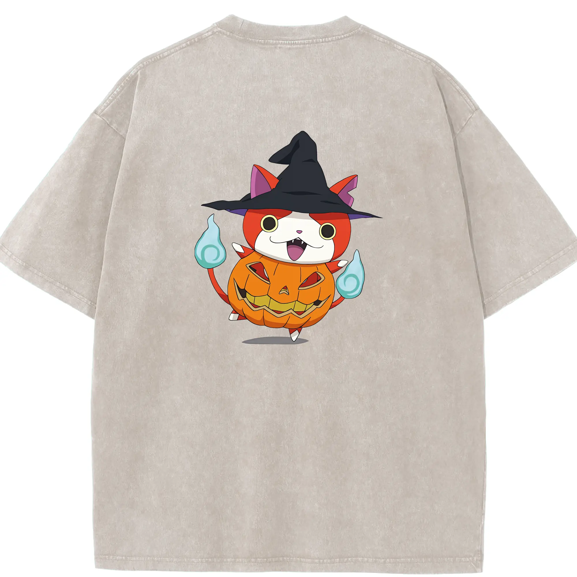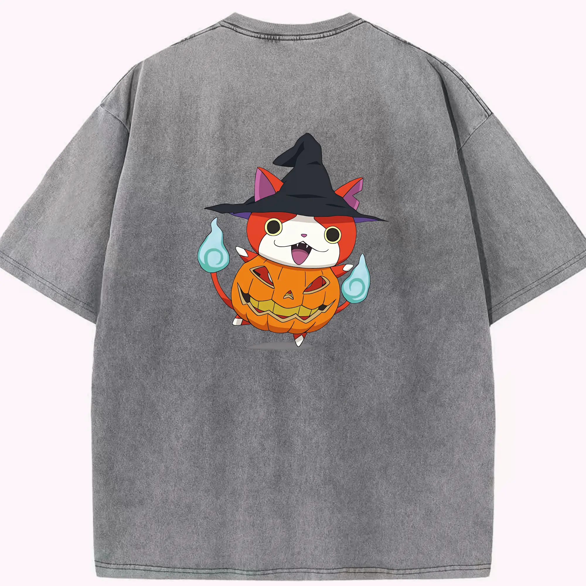 妖怪ウォッチ グッズ,ジバニャン - 綿100% ヴィンテージ風 半袖Tシャツ ・ フロントプリント ・ 柔らか肌触り ・ 通気性 快適 ・ スポーツ カジュアル 外出用