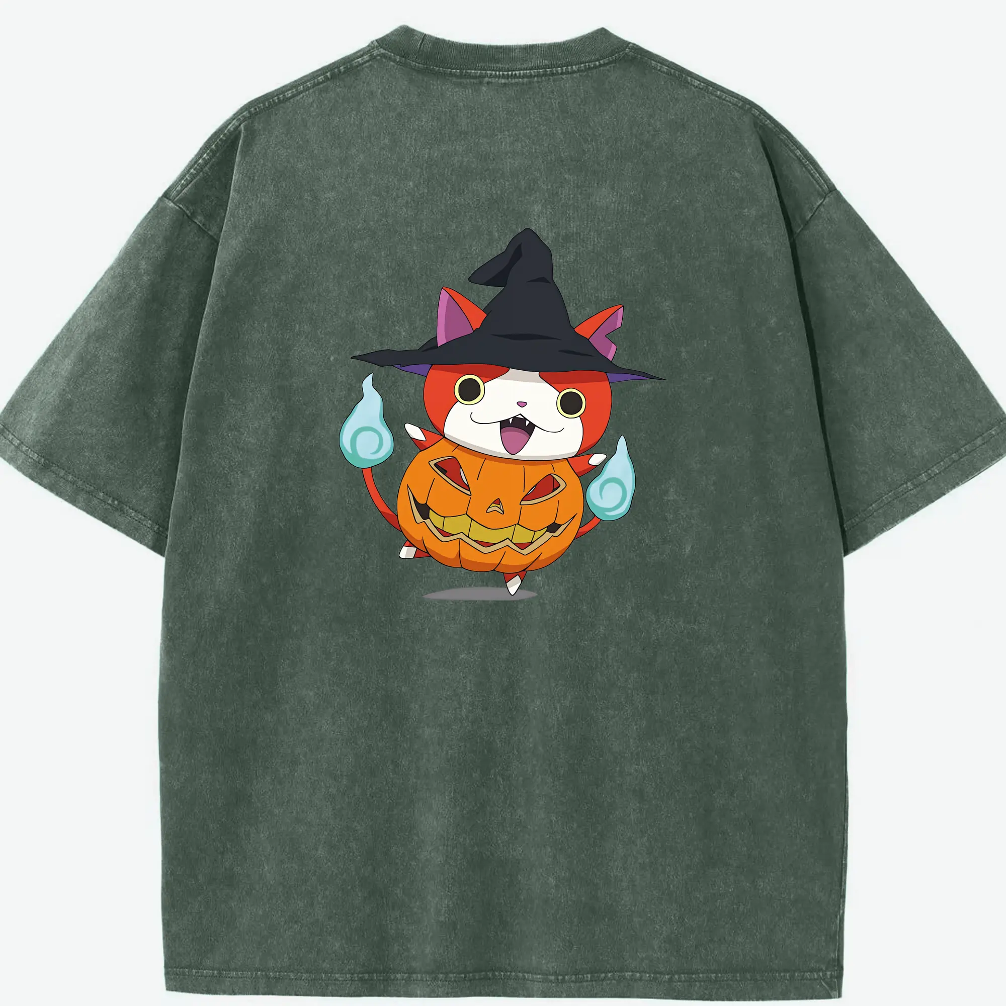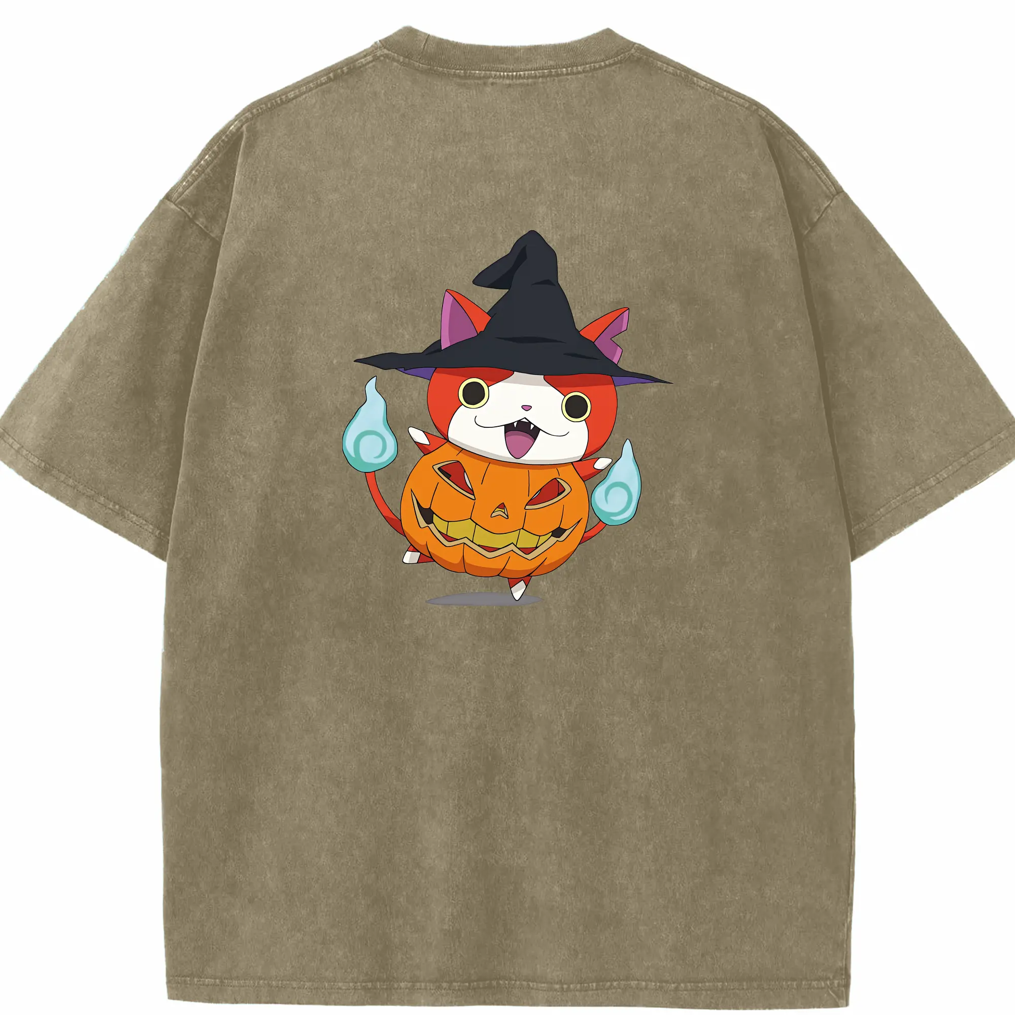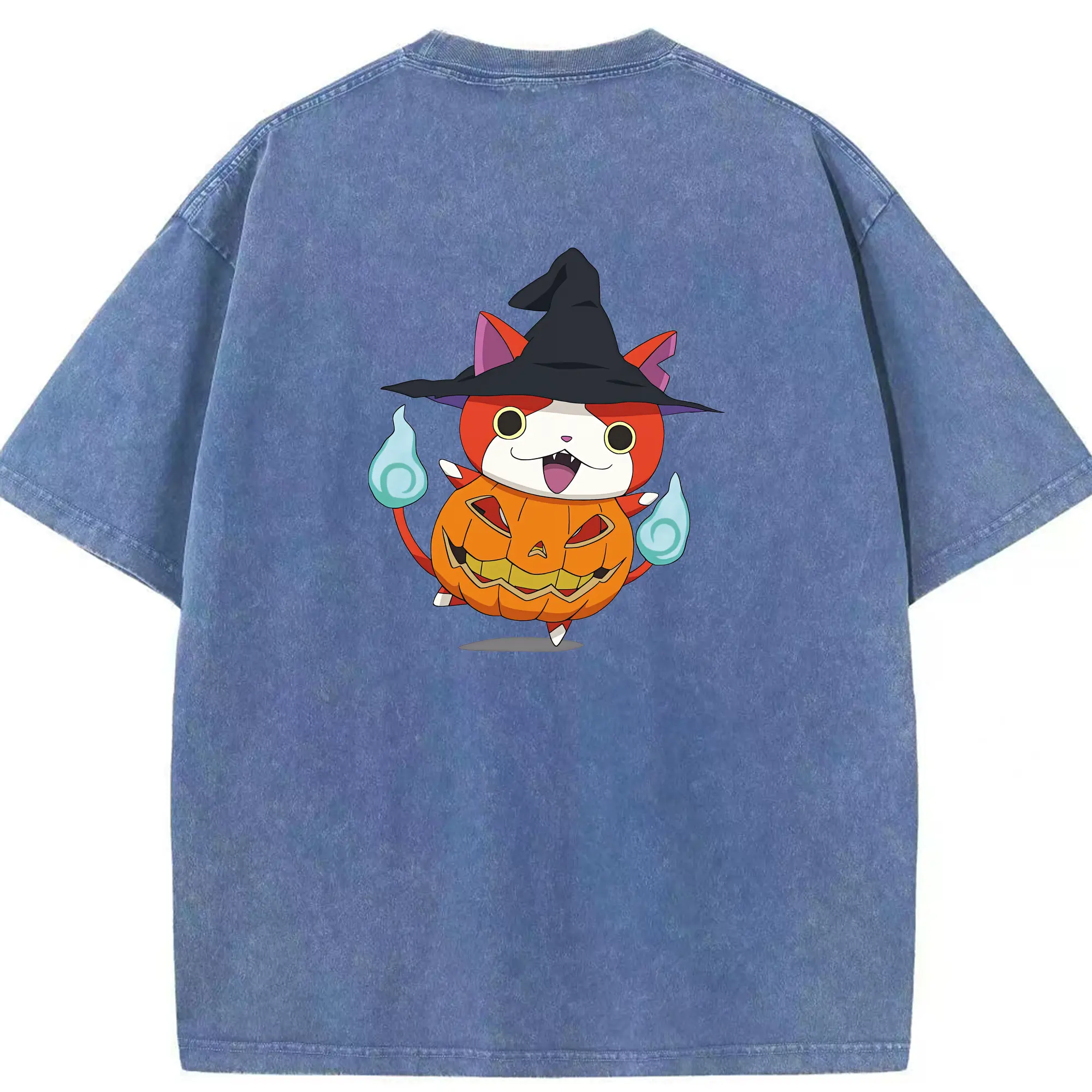 妖怪ウォッチ グッズ,ジバニャン - 綿100% ヴィンテージ風 半袖Tシャツ ・ フロントプリント ・ 柔らか肌触り ・ 通気性 快適 ・ スポーツ カジュアル 外出用