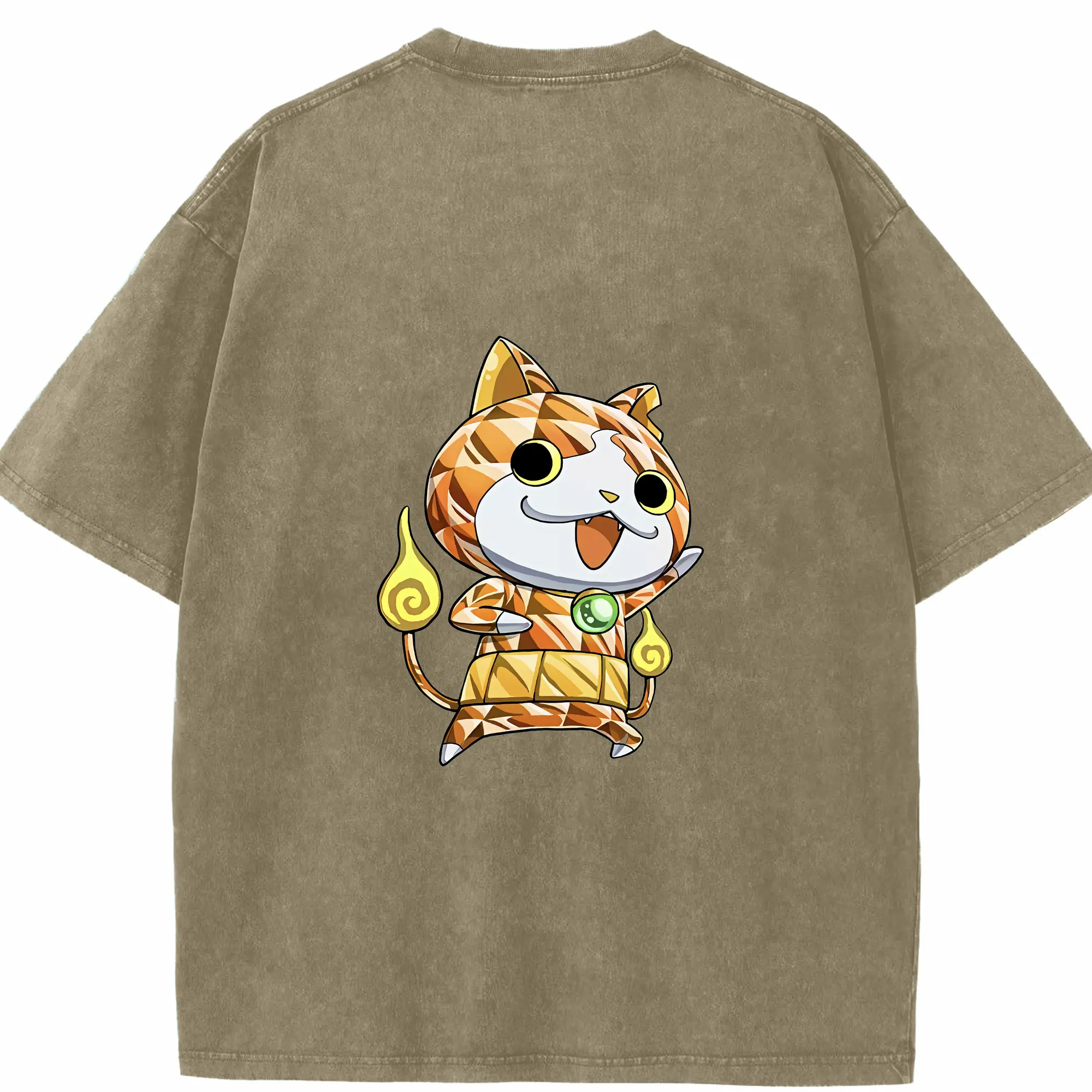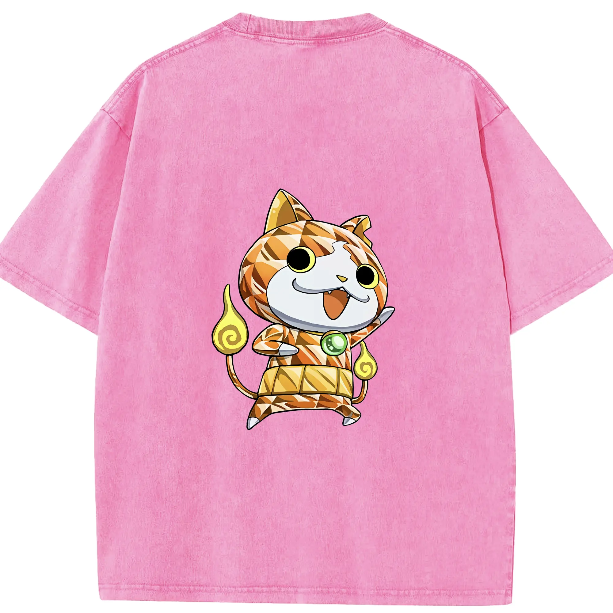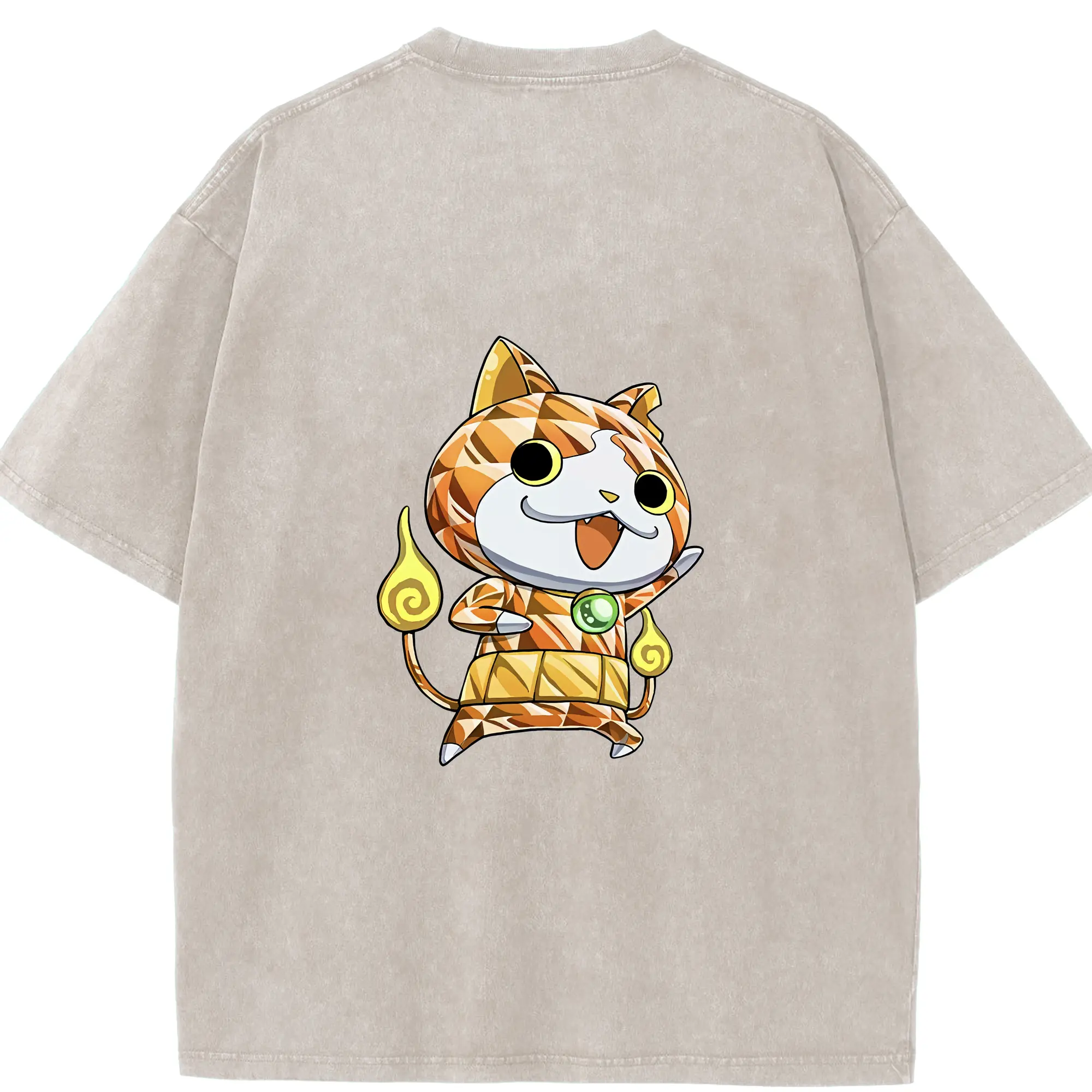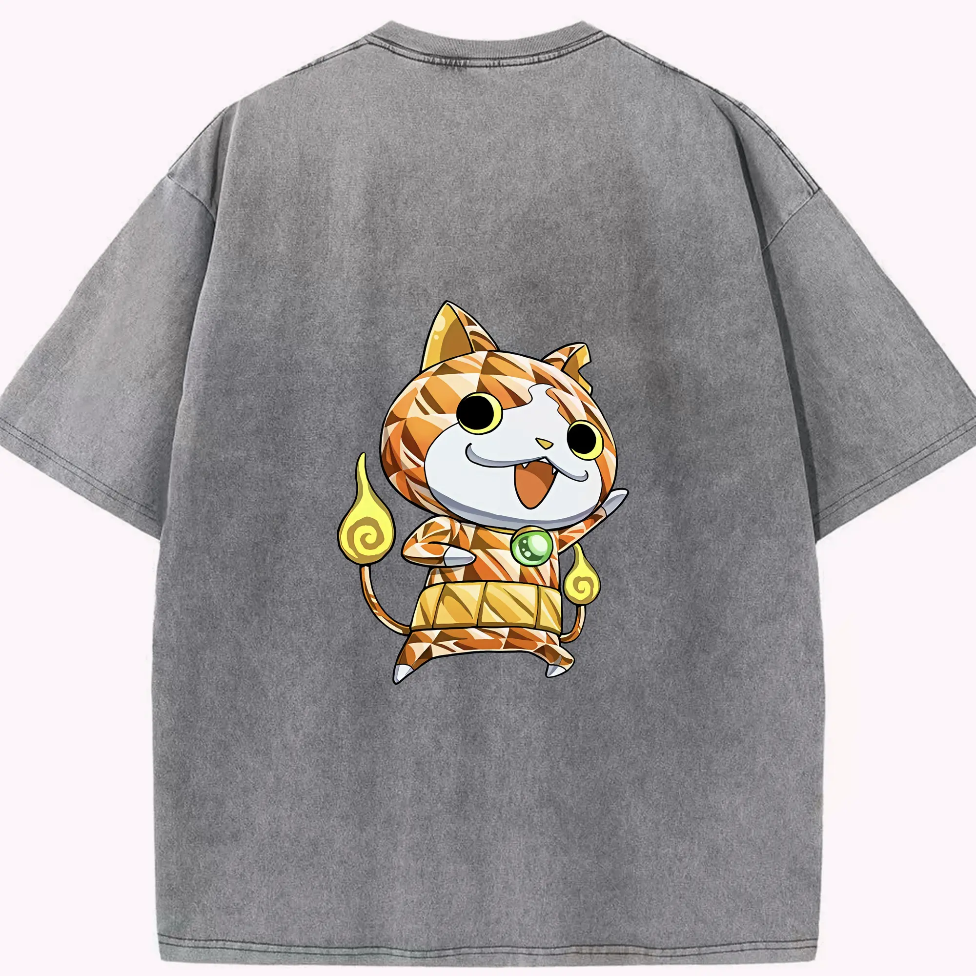 妖怪ウォッチ グッズ,ジバニャン - 綿100% ヴィンテージ風 半袖Tシャツ ・ フロントプリント ・ 柔らか肌触り ・ 通気性 快適 ・ スポーツ カジュアル 外出用