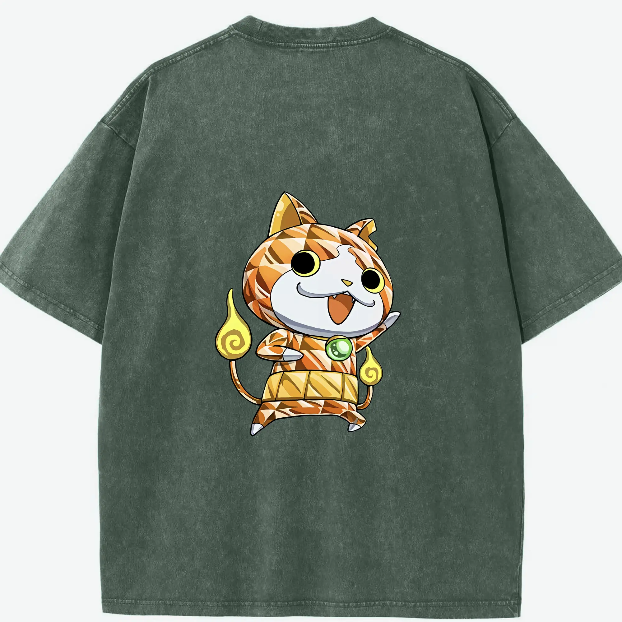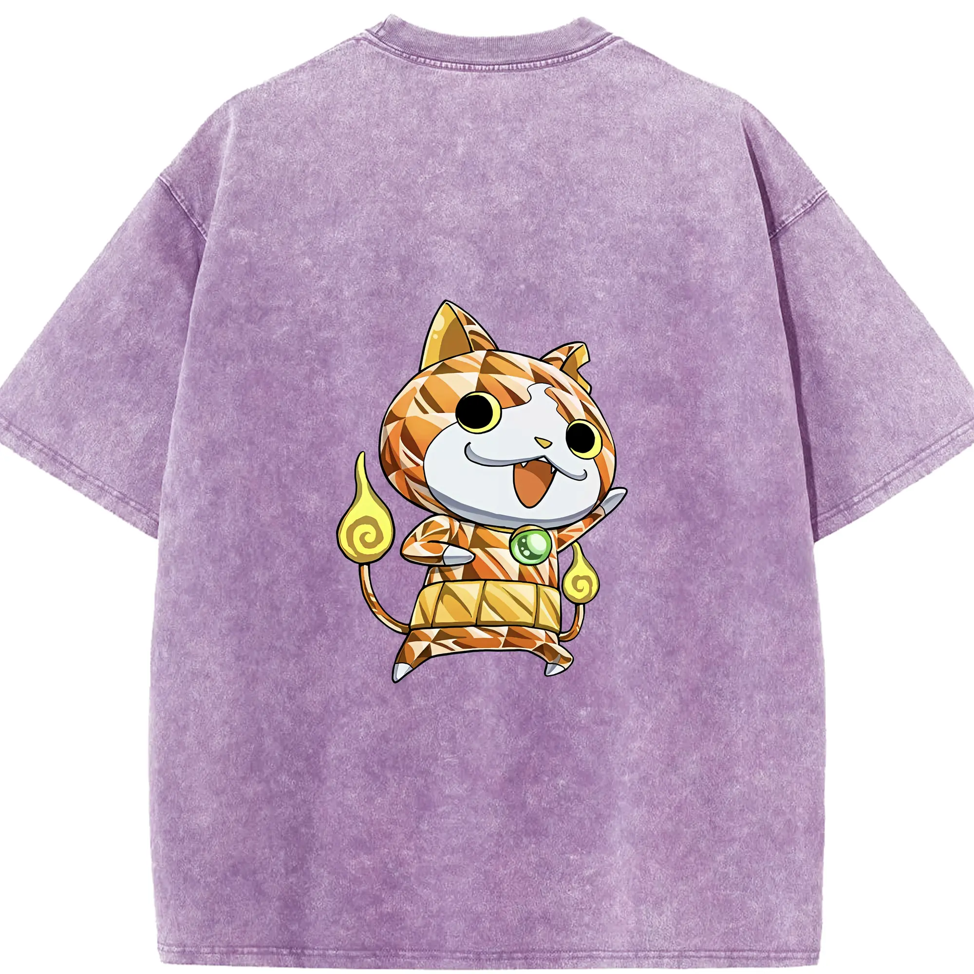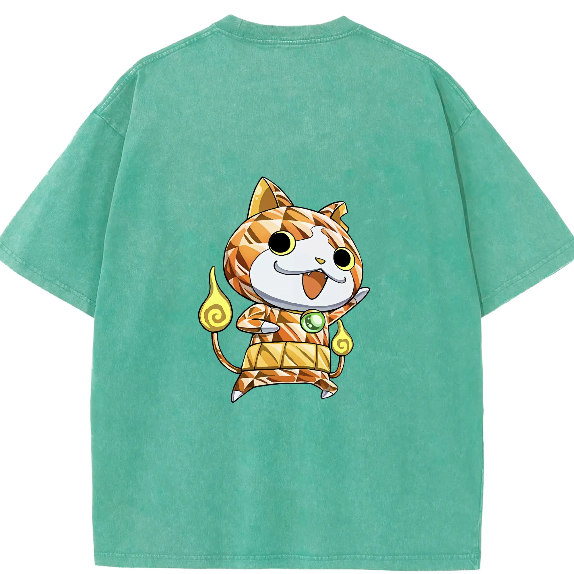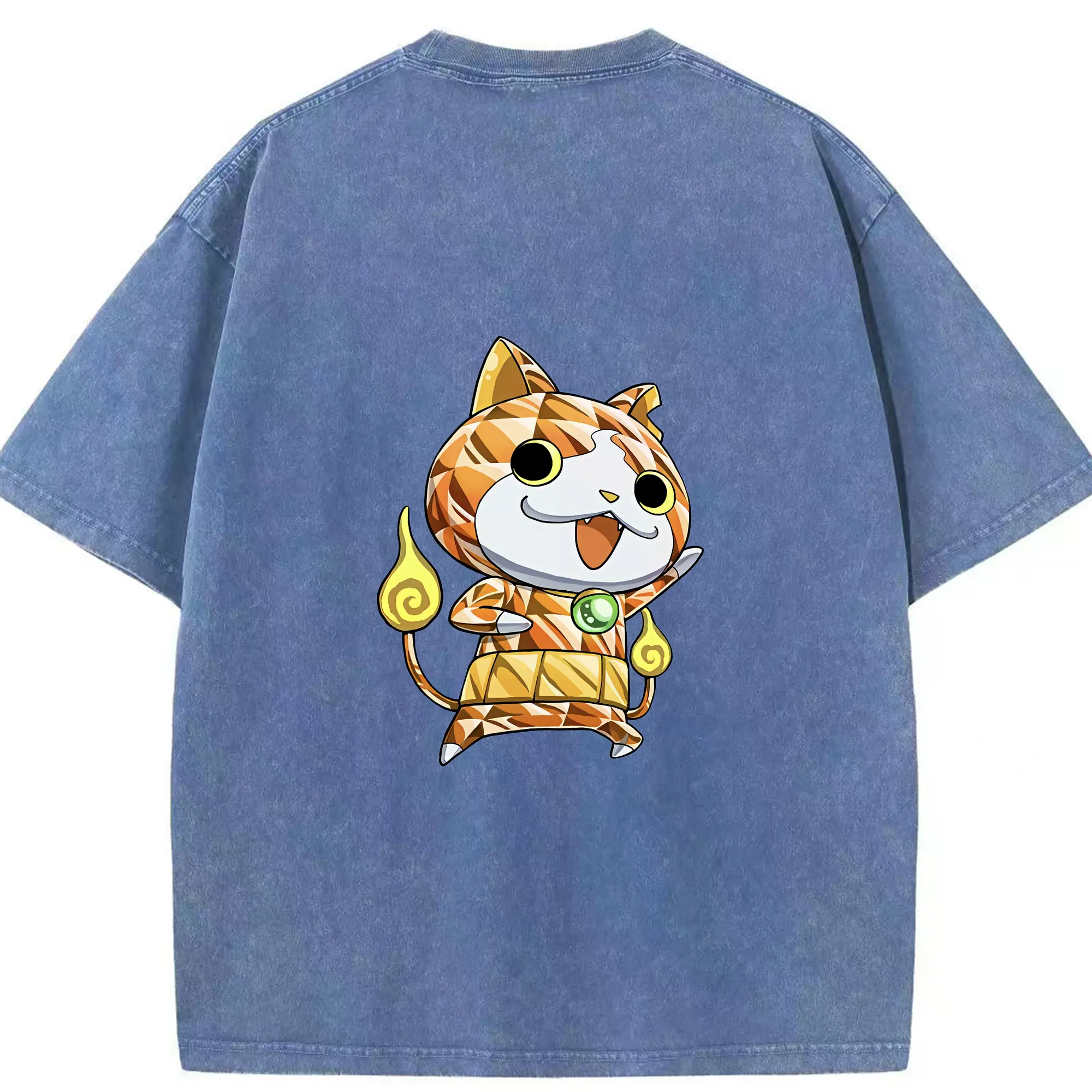 妖怪ウォッチ グッズ,ジバニャン - 綿100% ヴィンテージ風 半袖Tシャツ ・ フロントプリント ・ 柔らか肌触り ・ 通気性 快適 ・ スポーツ カジュアル 外出用