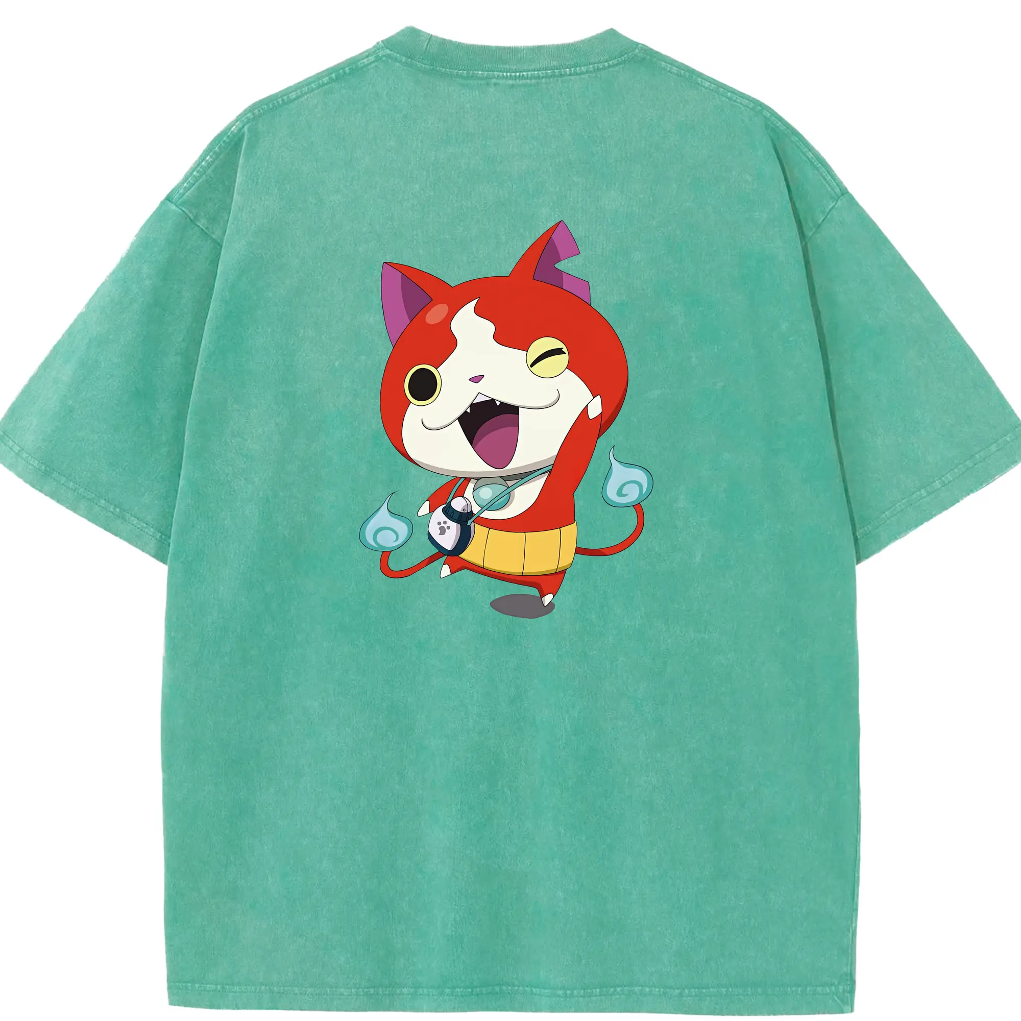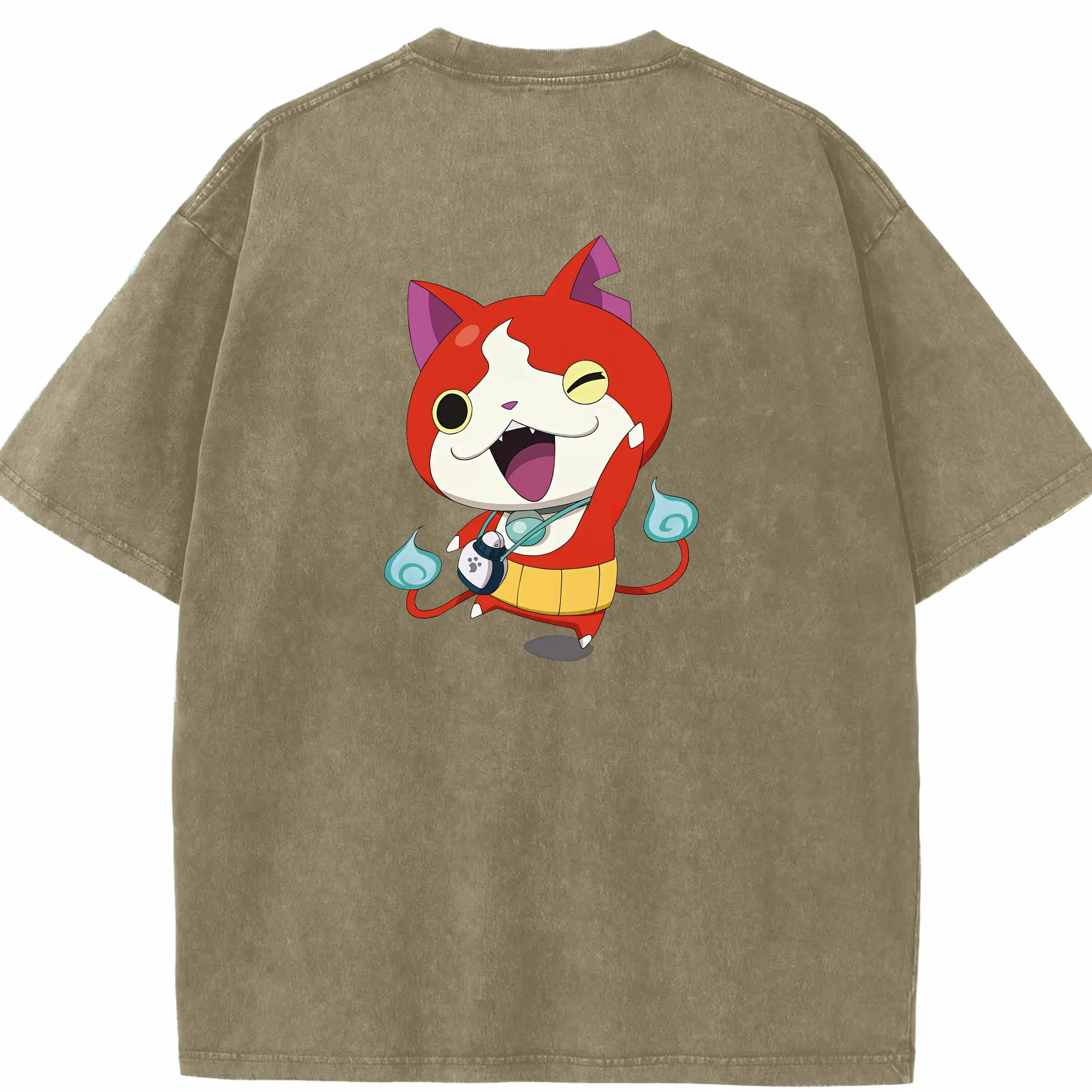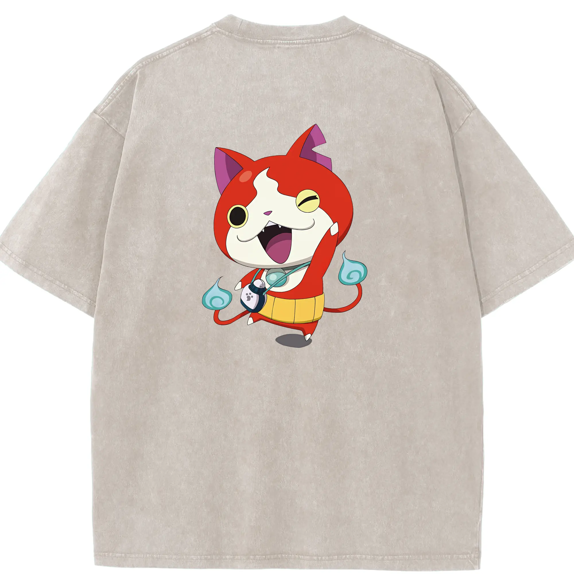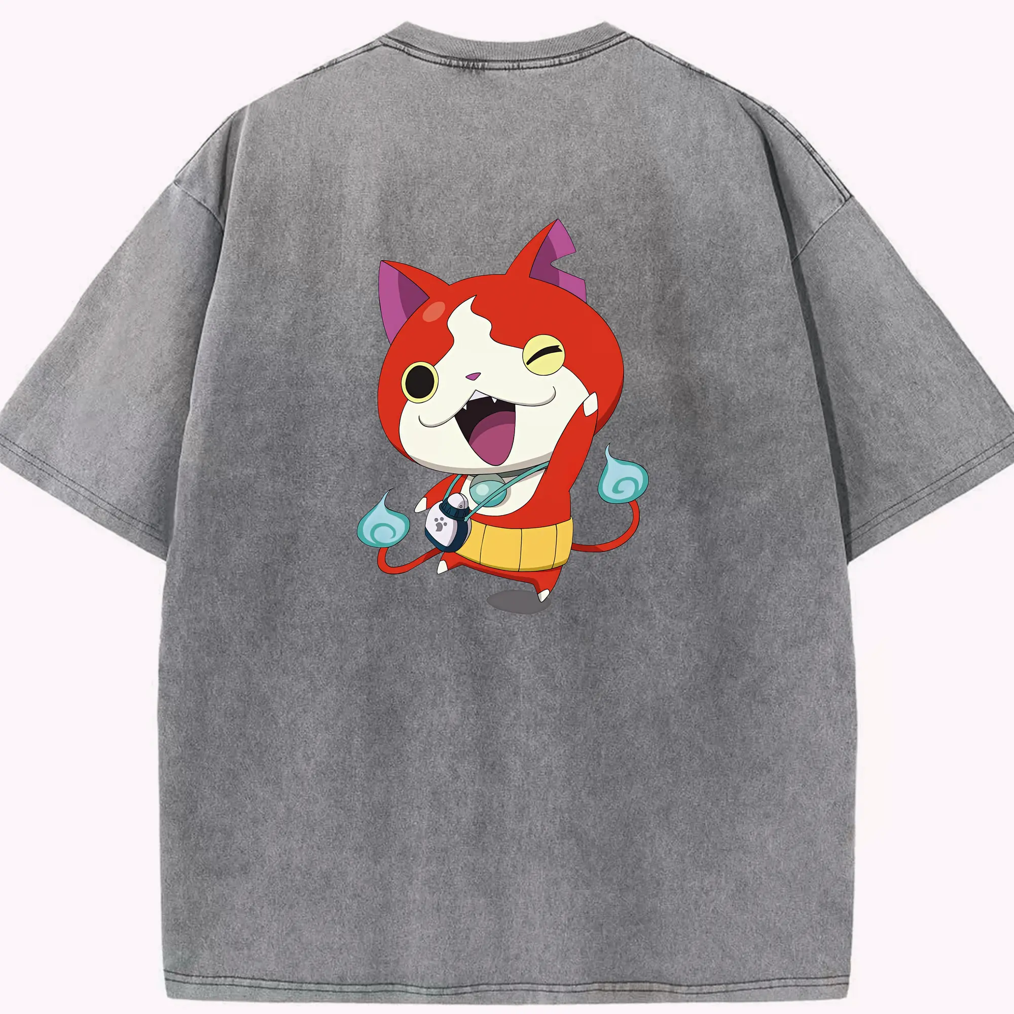 妖怪ウォッチ グッズ,ジバニャン - 綿100% ヴィンテージ風 半袖Tシャツ ・ フロントプリント ・ 柔らか肌触り ・ 通気性 快適 ・ スポーツ カジュアル 外出用