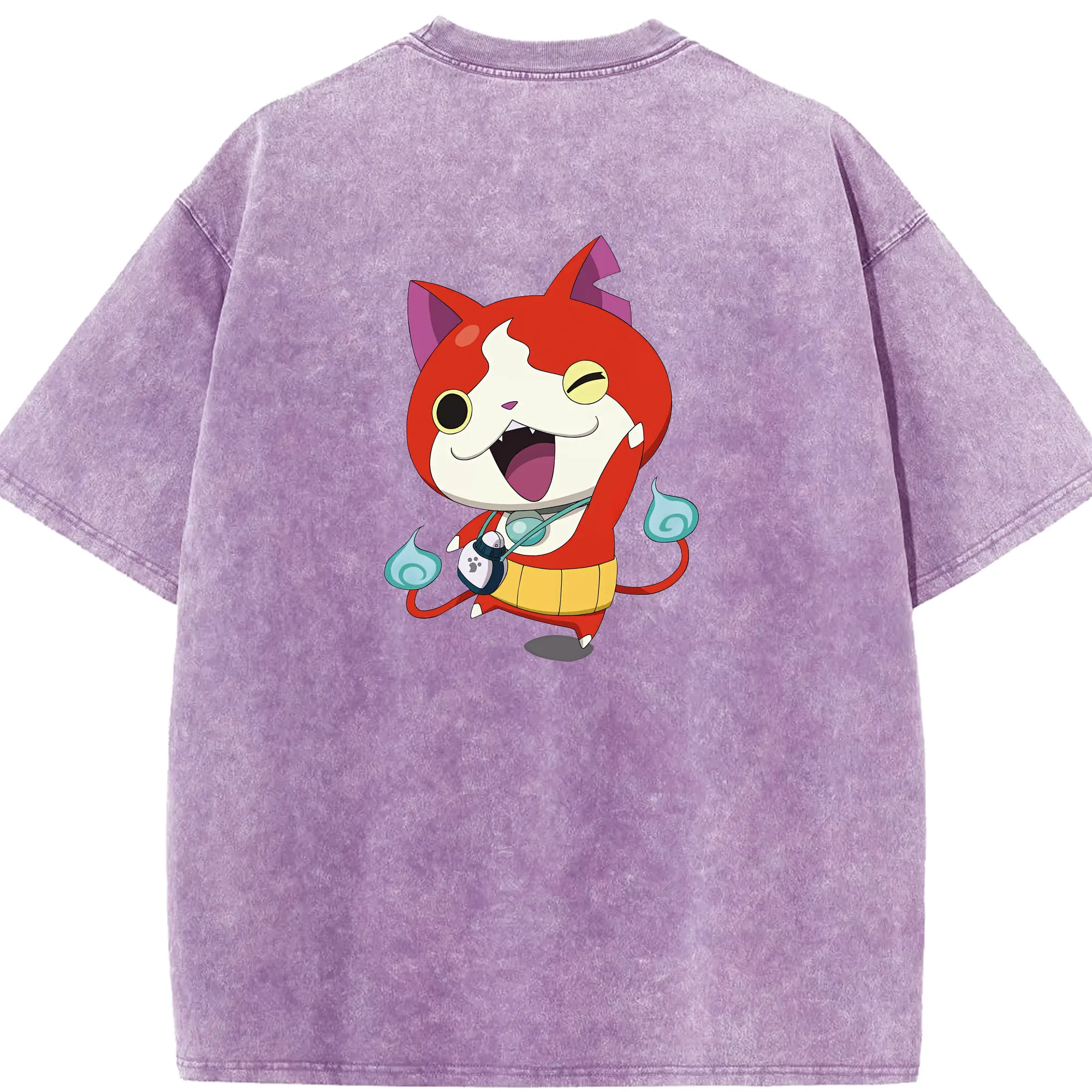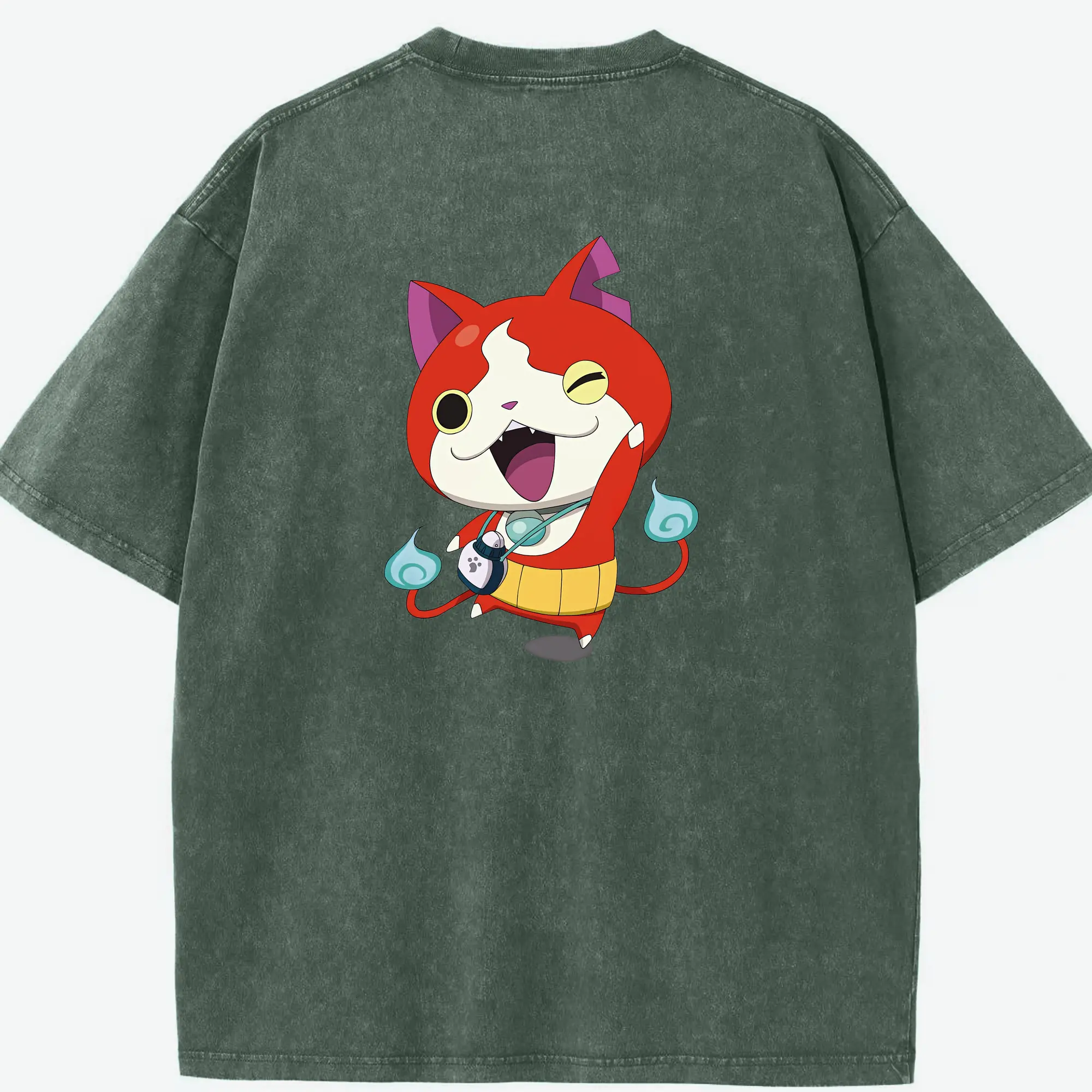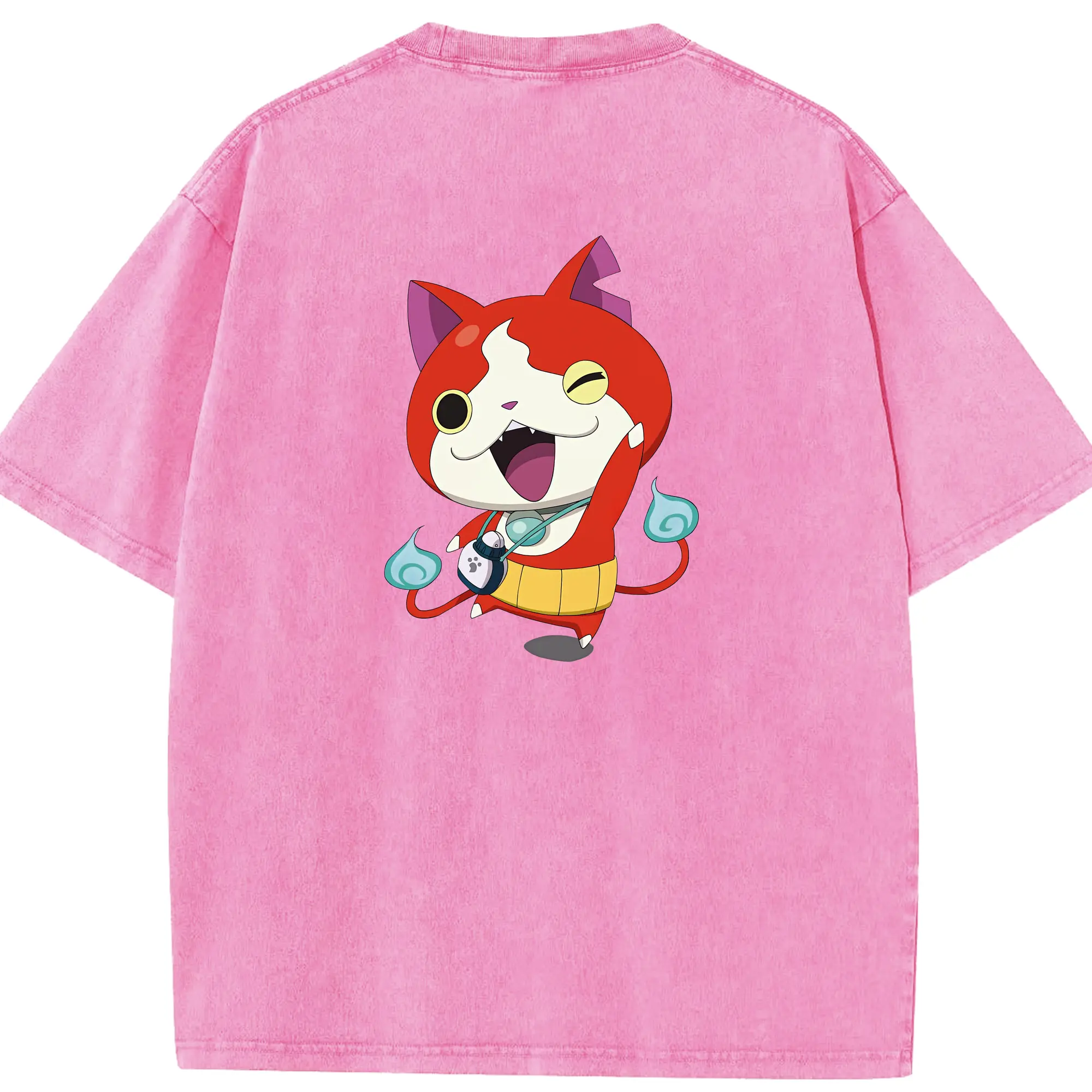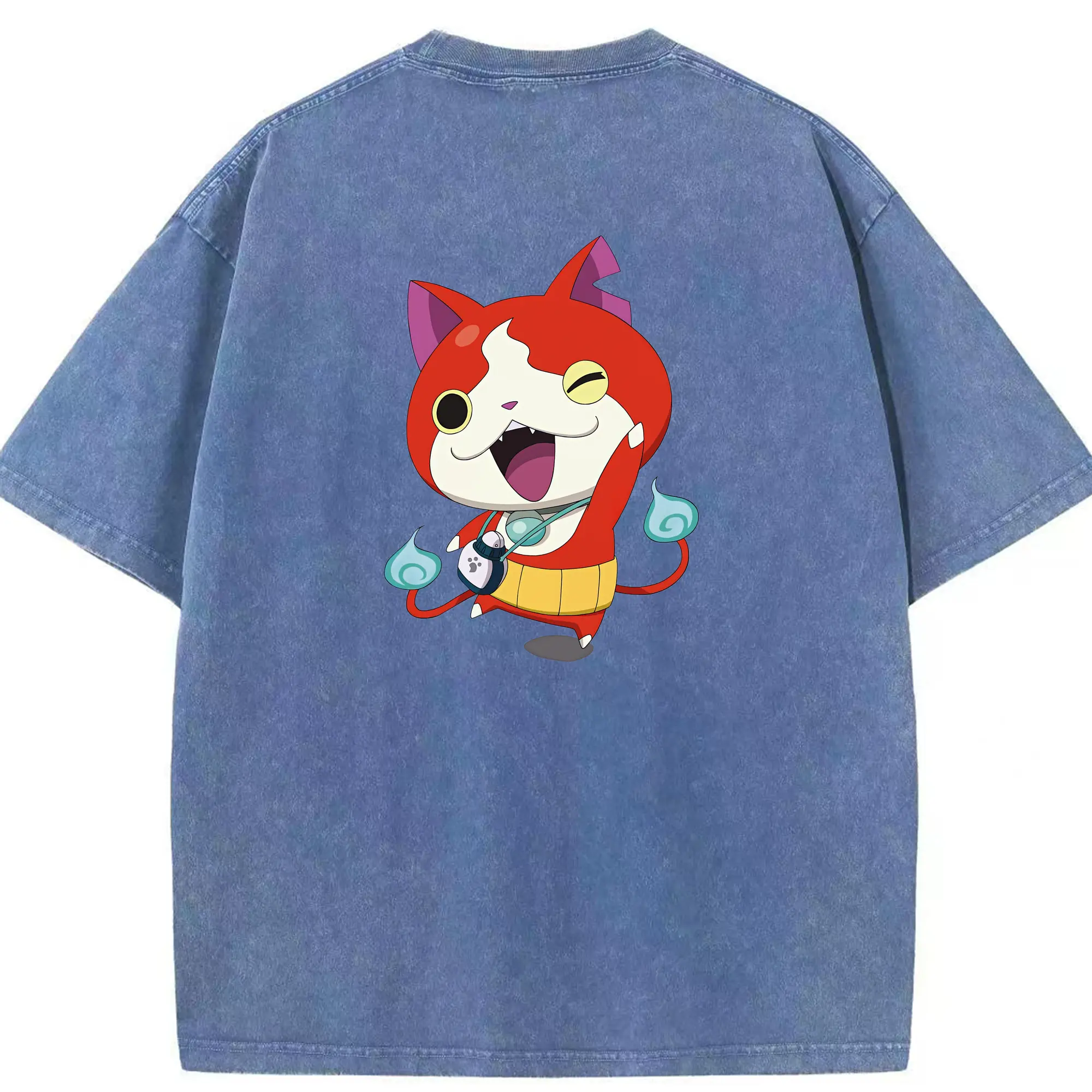 妖怪ウォッチ グッズ,ジバニャン - 綿100% ヴィンテージ風 半袖Tシャツ ・ フロントプリント ・ 柔らか肌触り ・ 通気性 快適 ・ スポーツ カジュアル 外出用