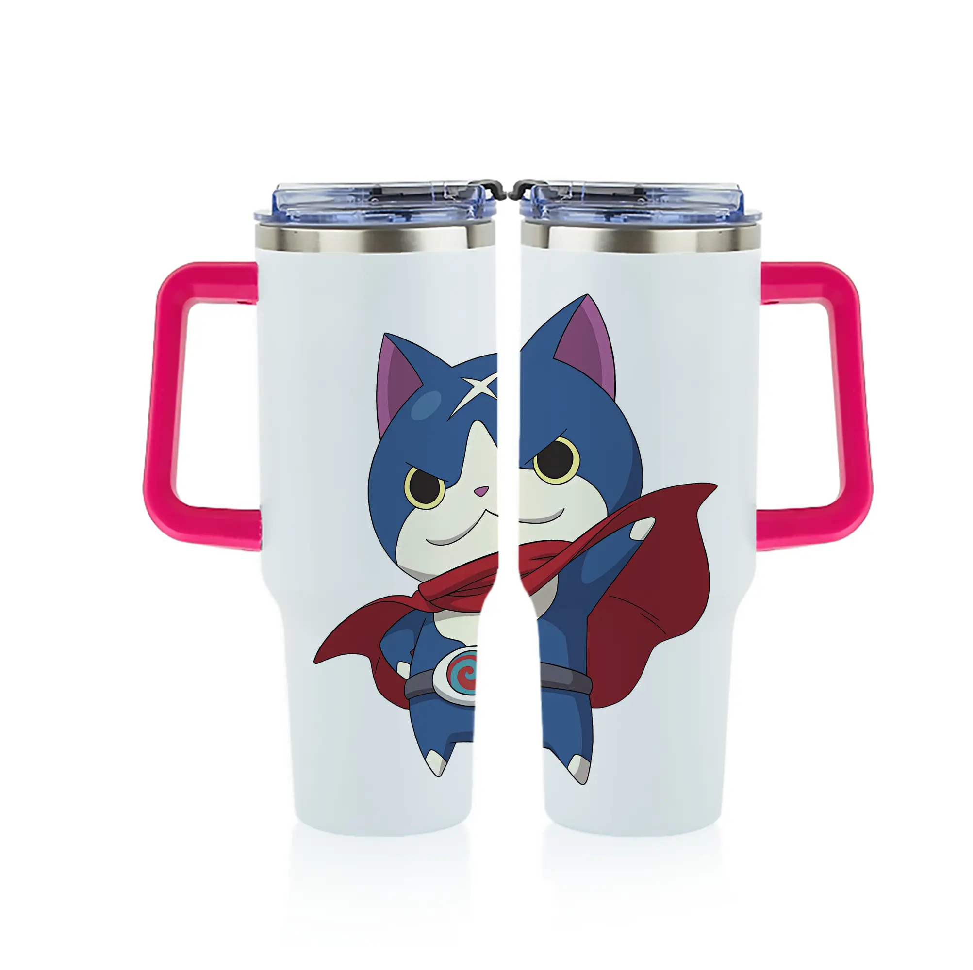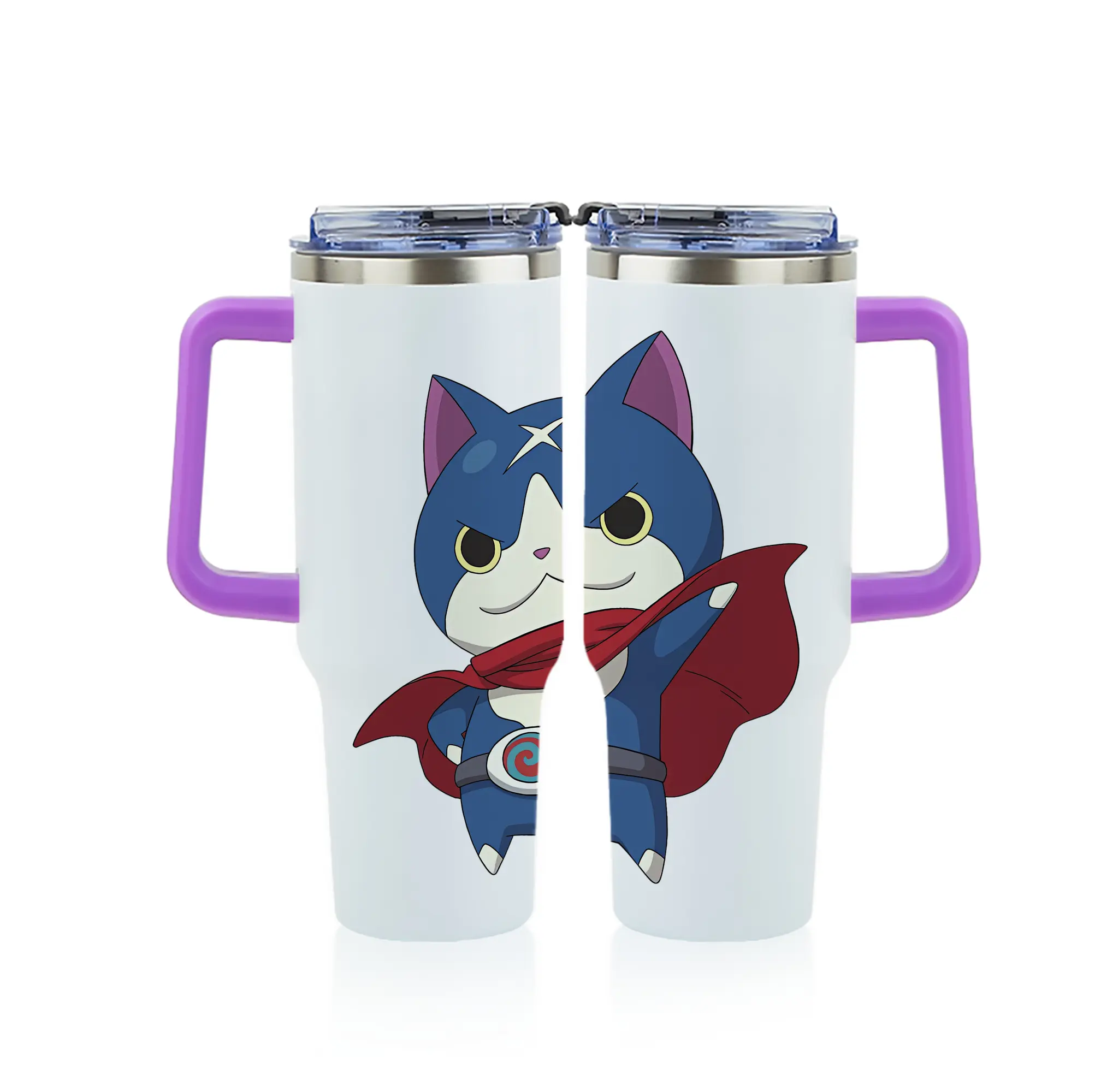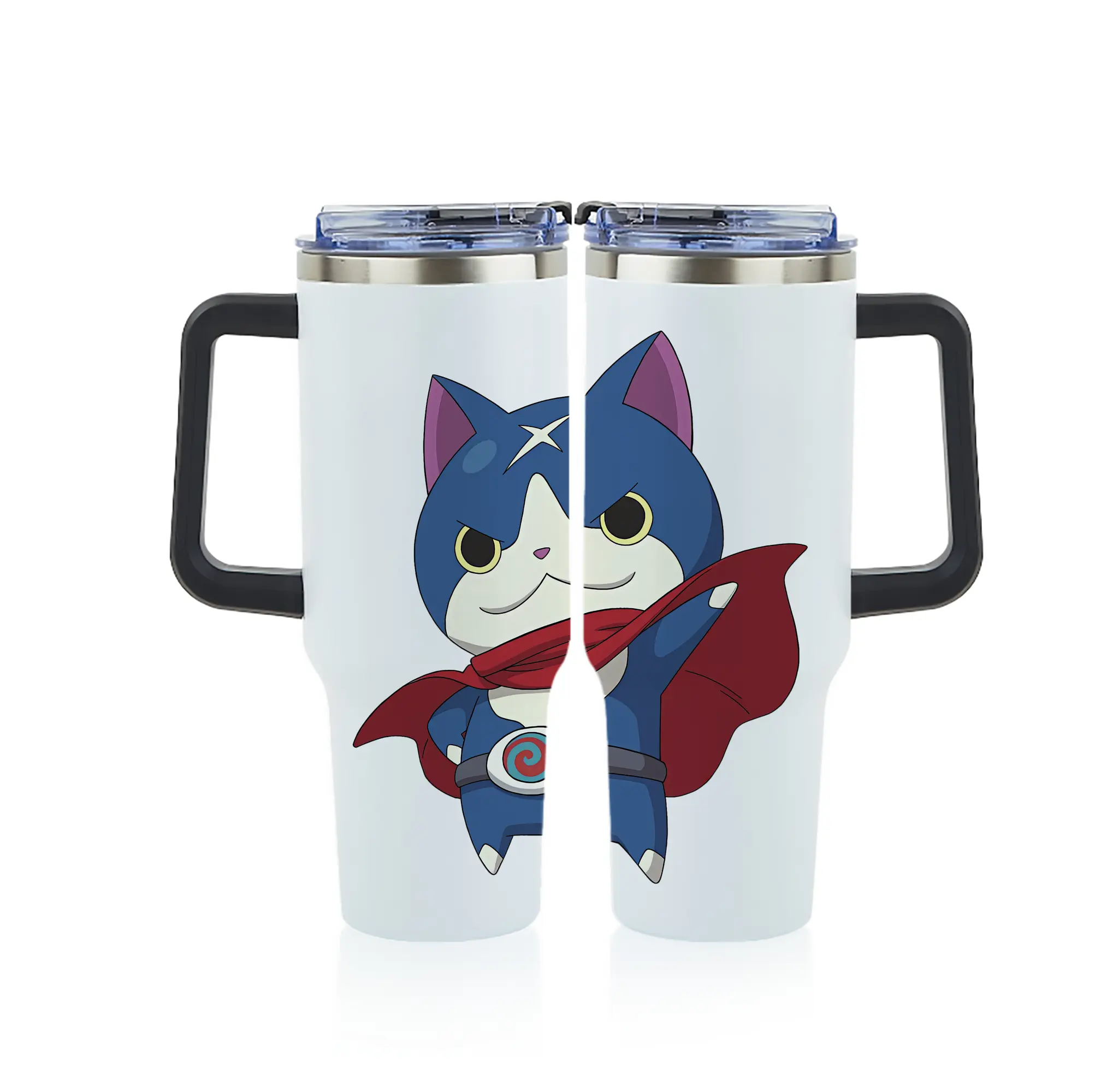 妖怪ウォッチ グッズ,ダークニャン - 1200mL フルプリント車用タンブラー ・ 304ステンレス 内側 ・ 201ステンレス 外側 ・ 保温 保冷 ・ 通勤 ドライブ アウトドア用