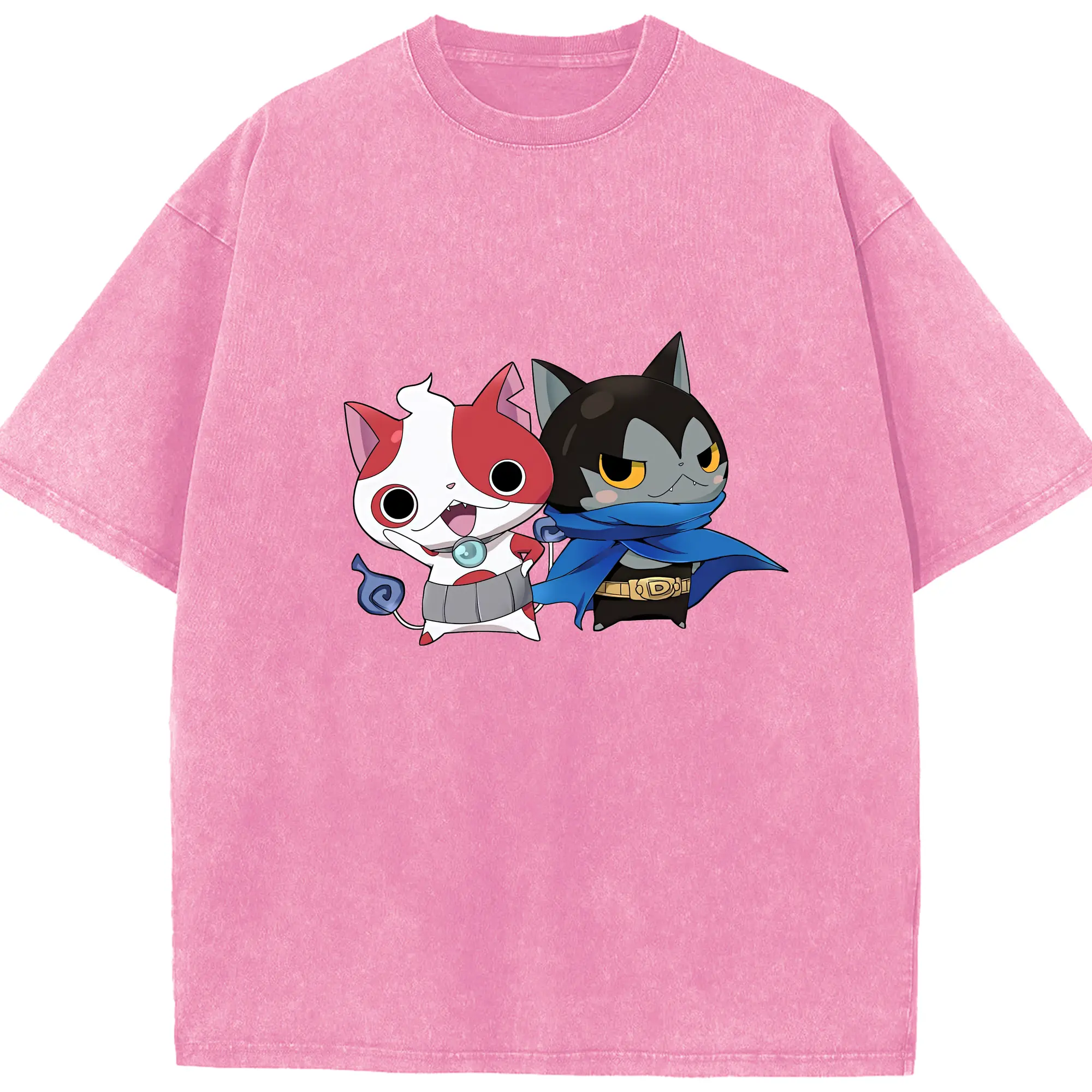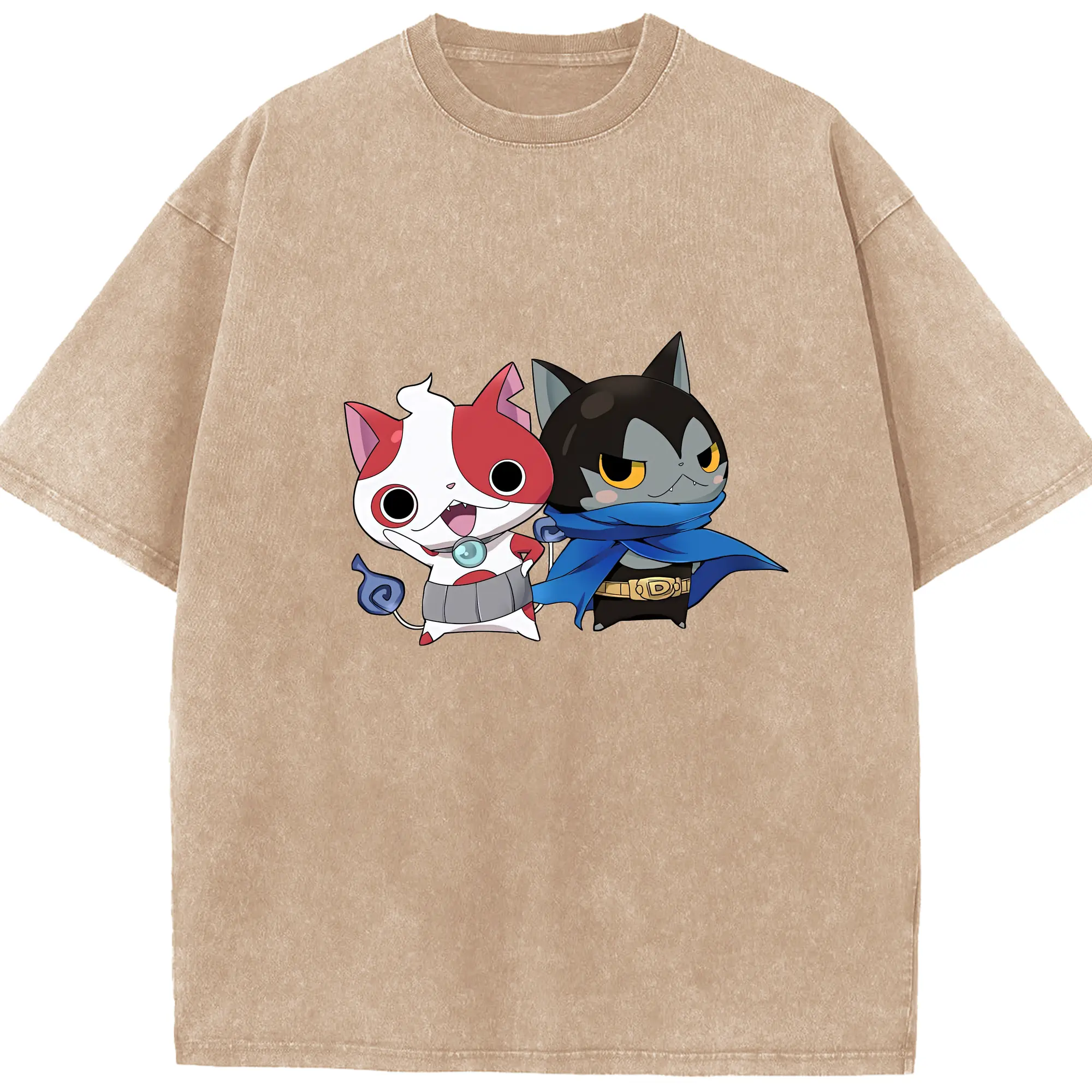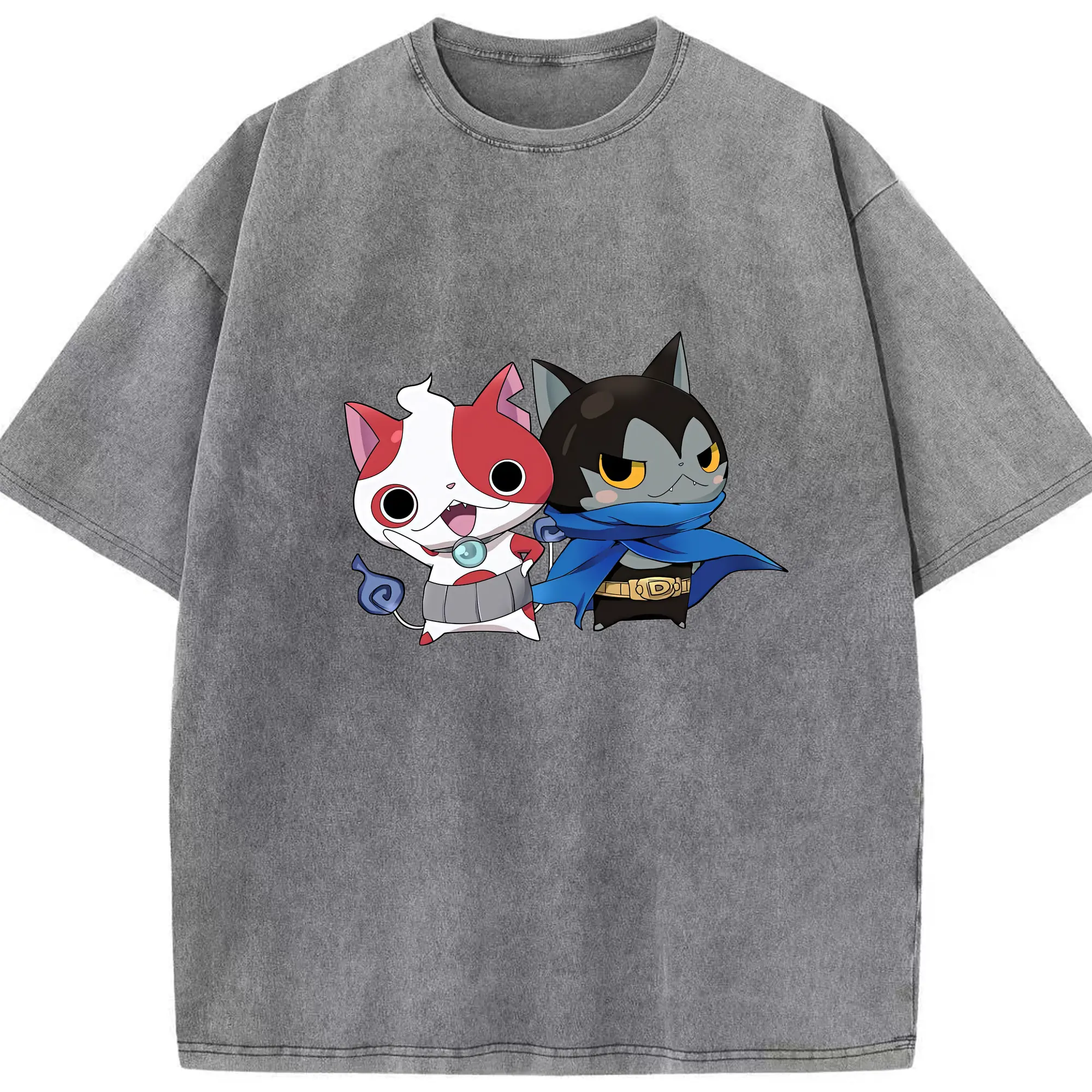 妖怪ウォッチ グッズ,ダークニャン - 綿100% ヴィンテージ風 半袖Tシャツ ・ 背面プリント ・ 柔らか肌触り ・ 通気性 快適 ・ スポーツ カジュアル 外出用
