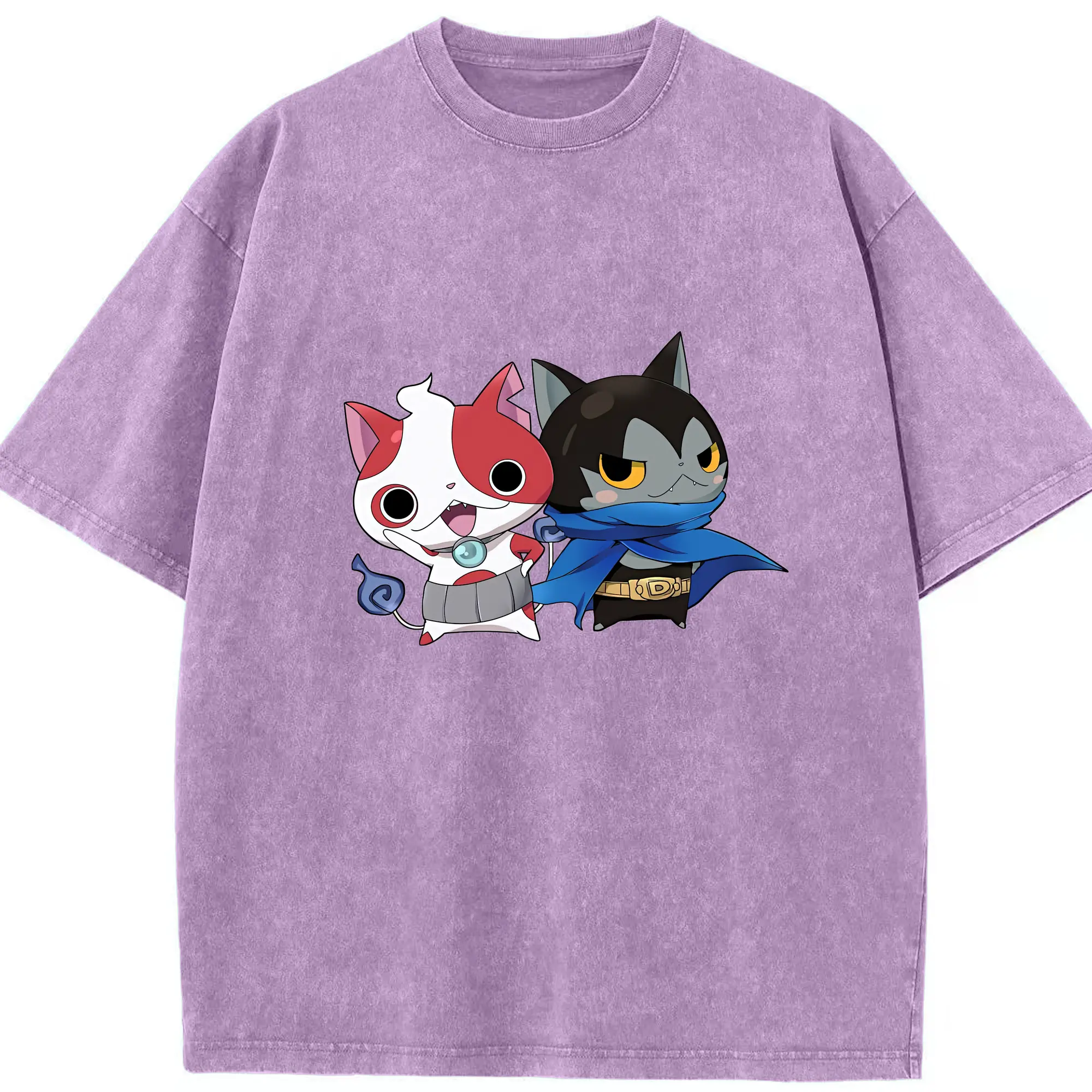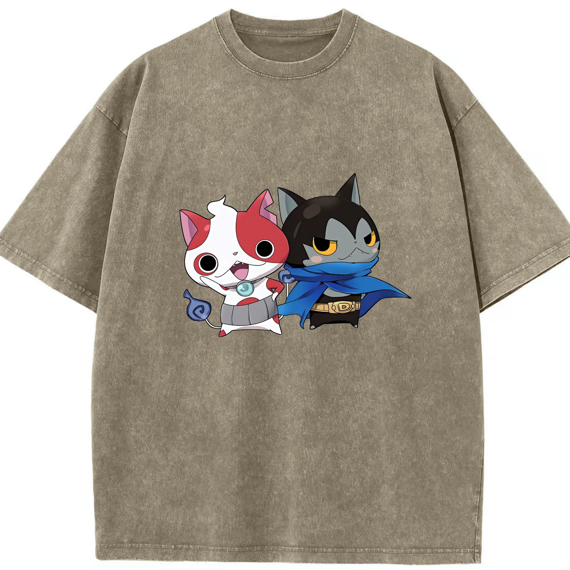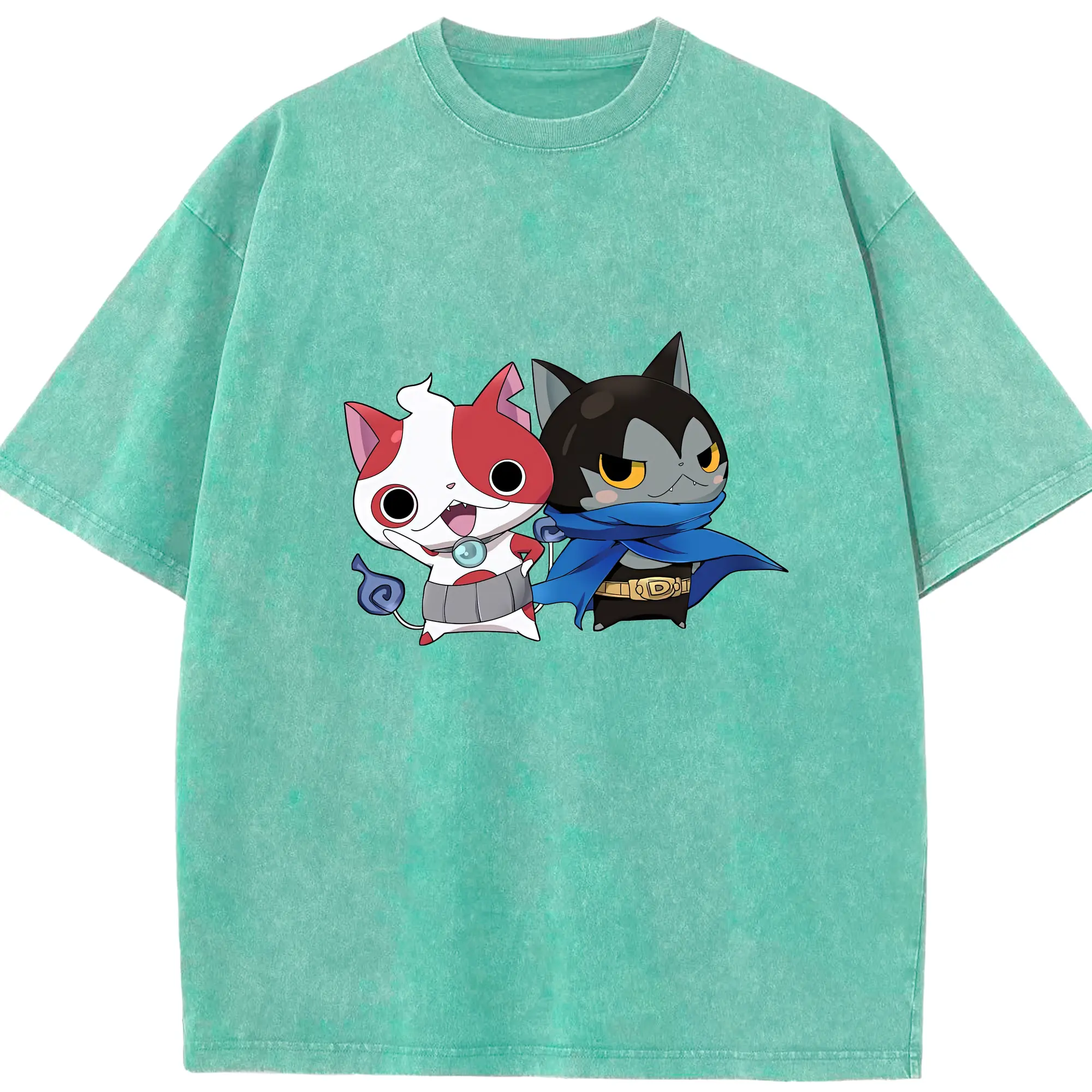 妖怪ウォッチ グッズ,ダークニャン - 綿100% ヴィンテージ風 半袖Tシャツ ・ 背面プリント ・ 柔らか肌触り ・ 通気性 快適 ・ スポーツ カジュアル 外出用