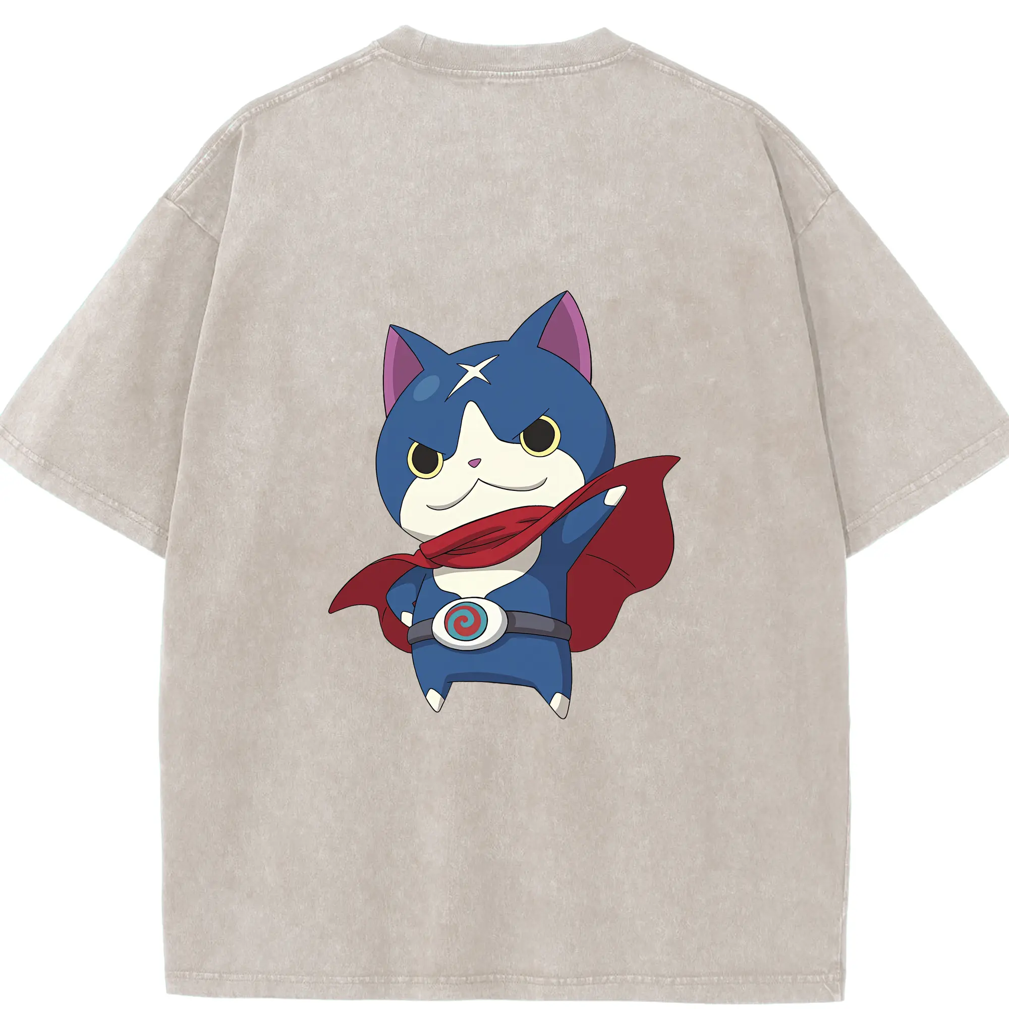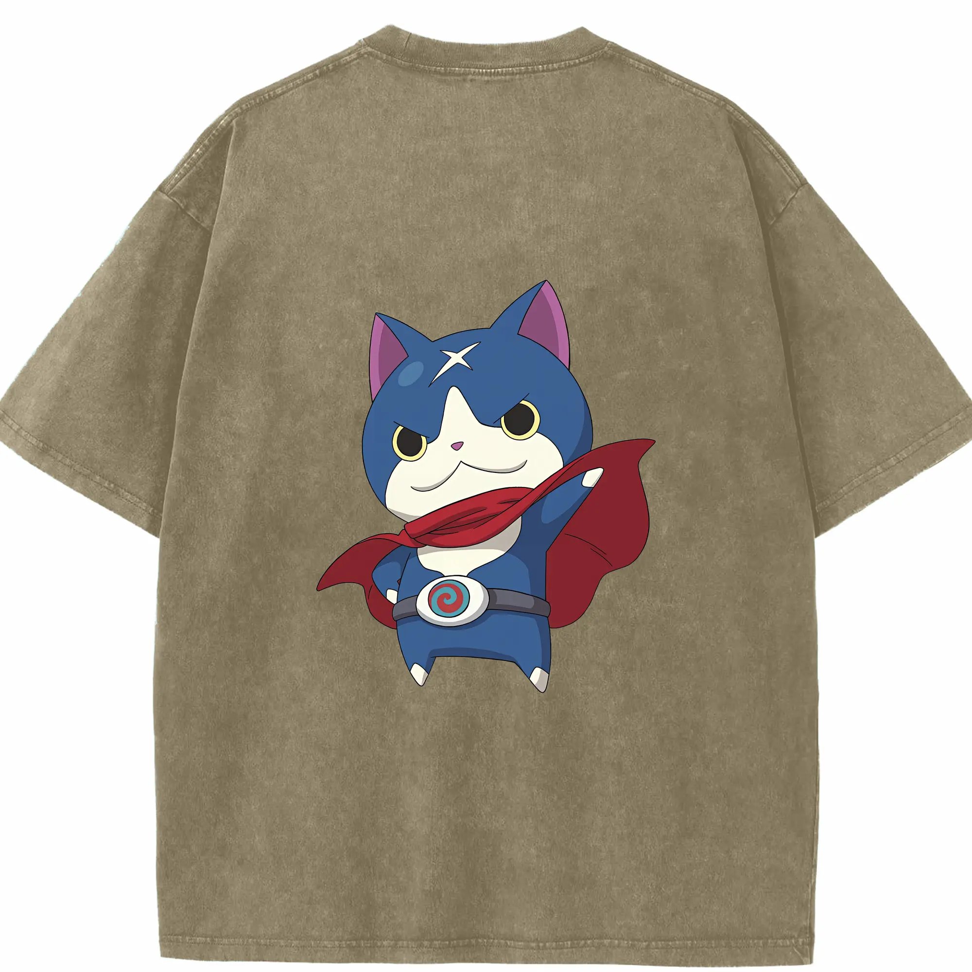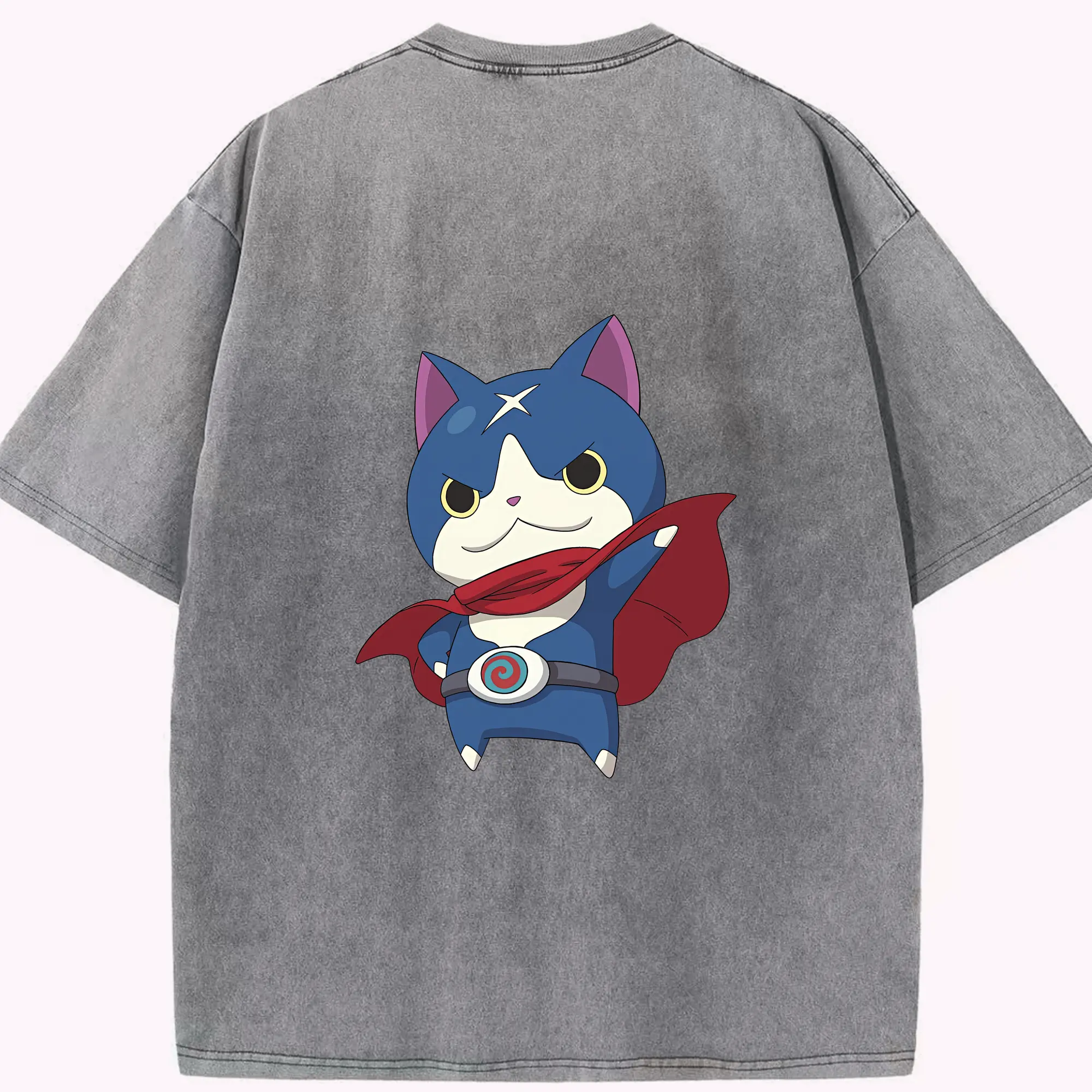 妖怪ウォッチ グッズ,ダークニャン - 綿100% ヴィンテージ風 半袖Tシャツ ・ フロントプリント ・ 柔らか肌触り ・ 通気性 快適 ・ スポーツ カジュアル 外出用