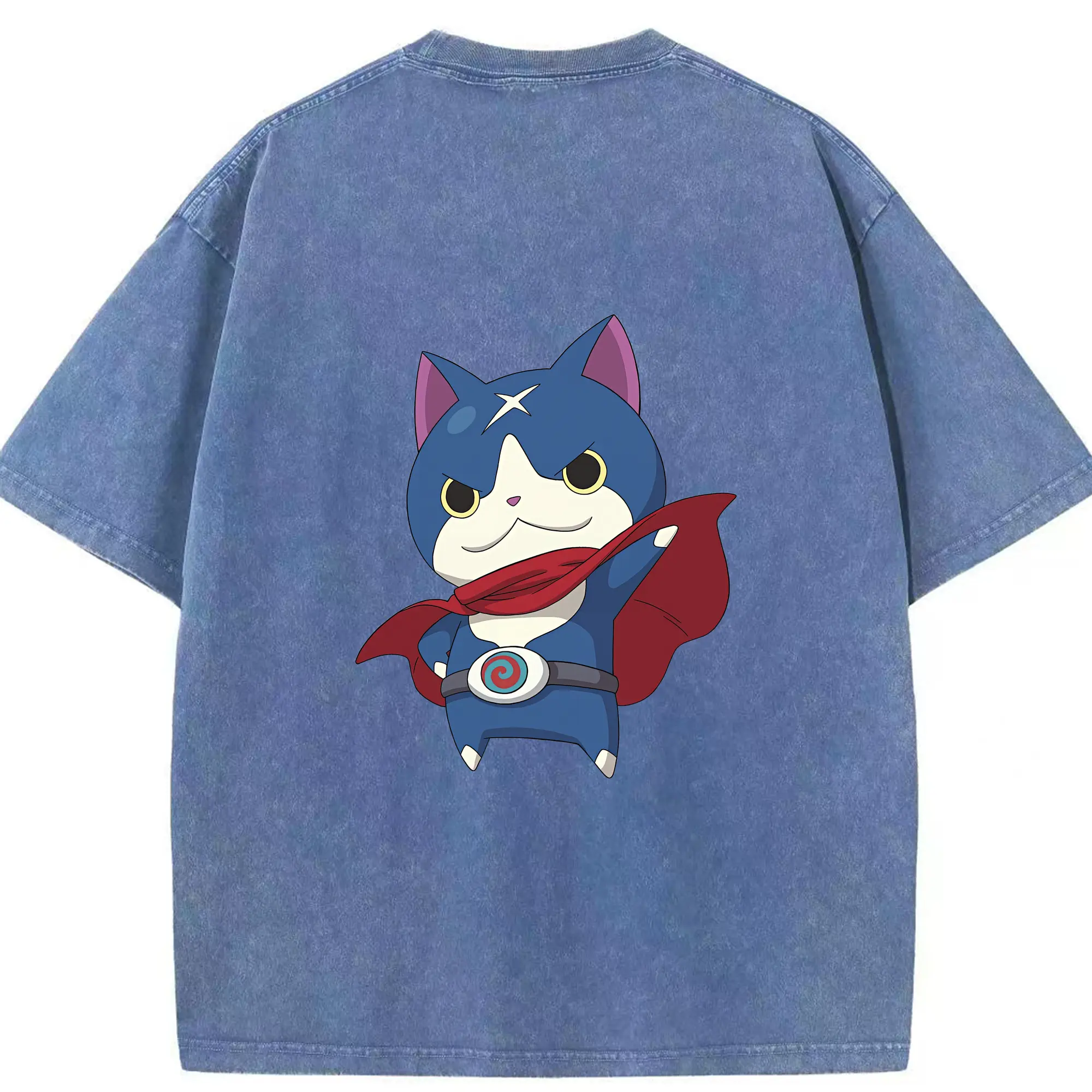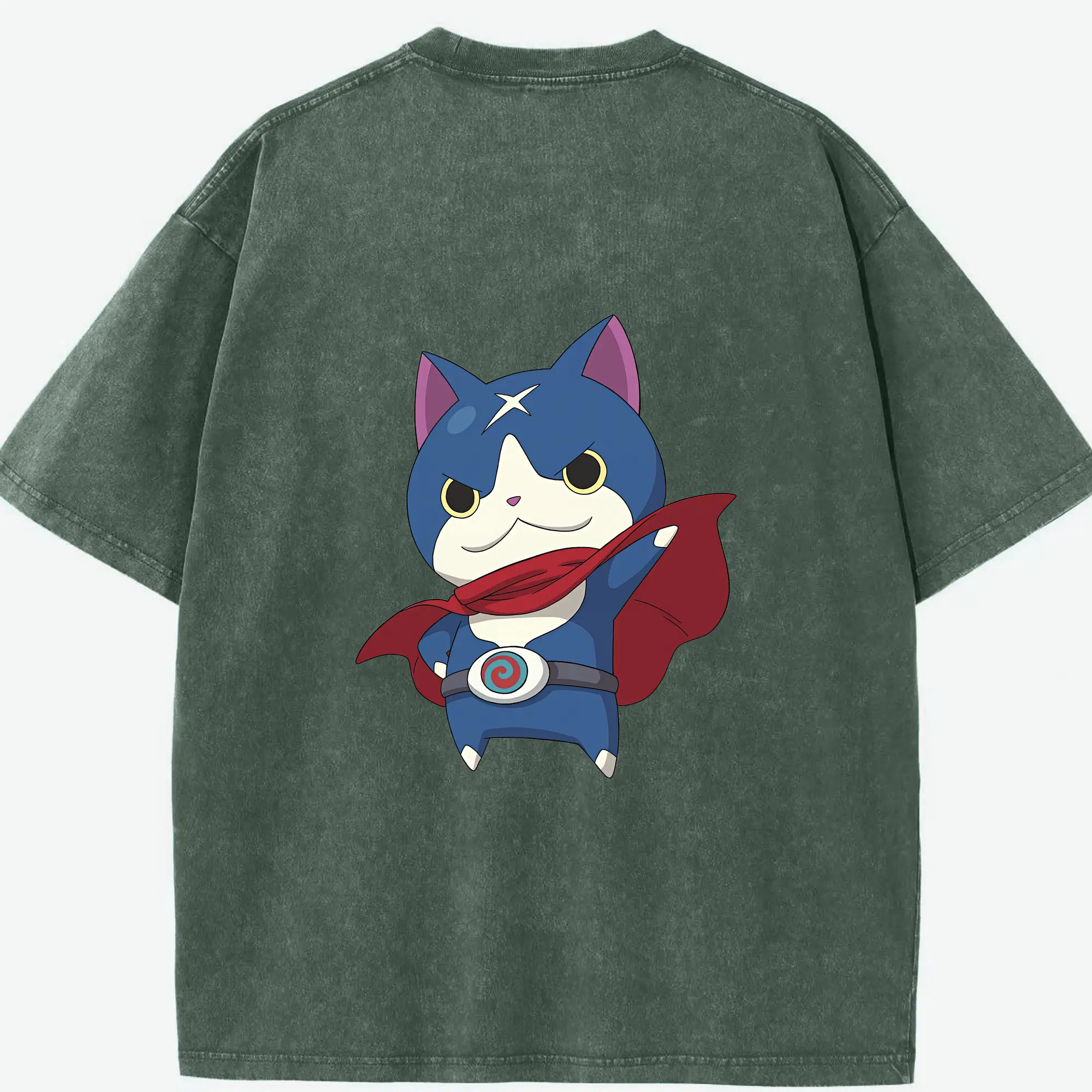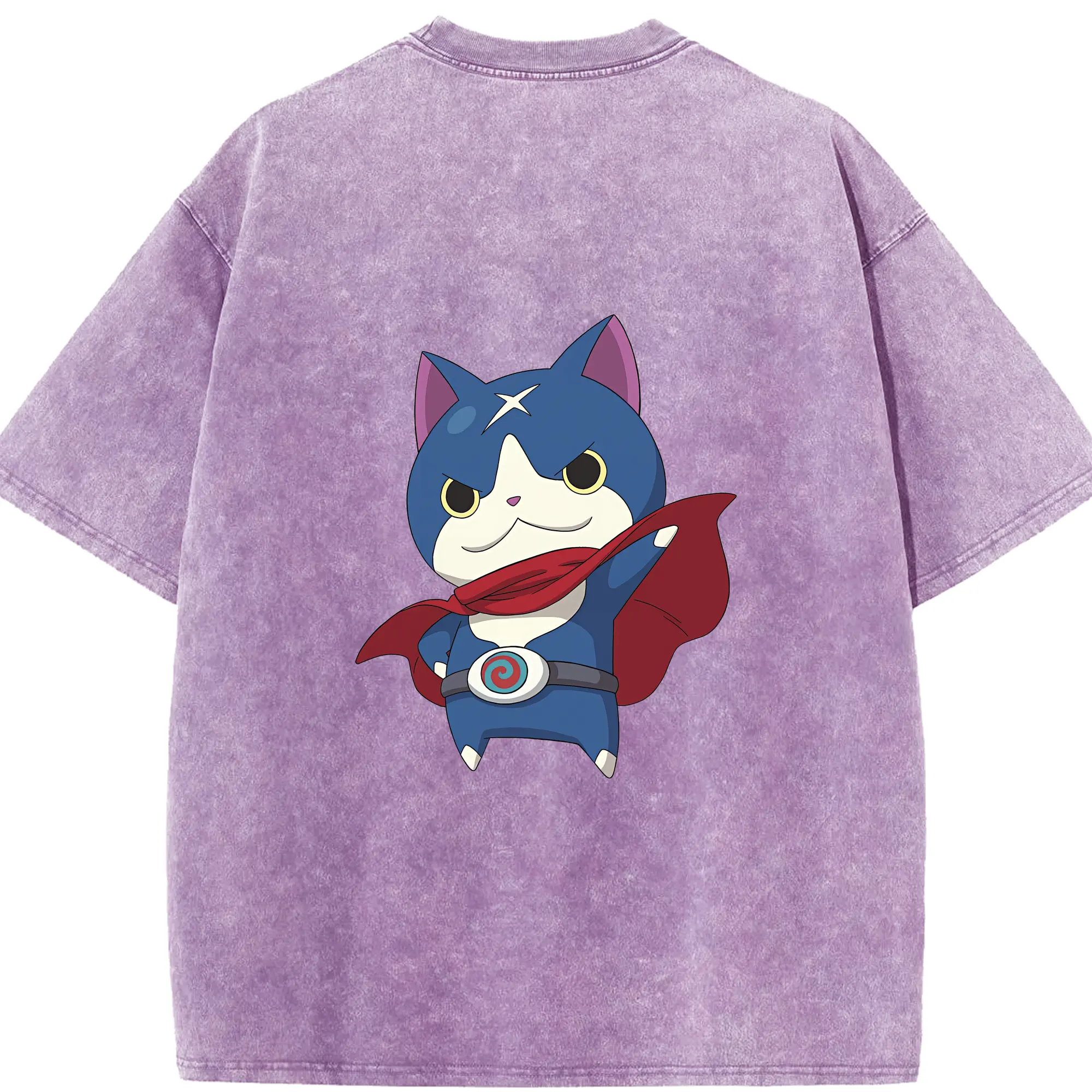妖怪ウォッチ グッズ,ダークニャン - 綿100% ヴィンテージ風 半袖Tシャツ ・ フロントプリント ・ 柔らか肌触り ・ 通気性 快適 ・ スポーツ カジュアル 外出用