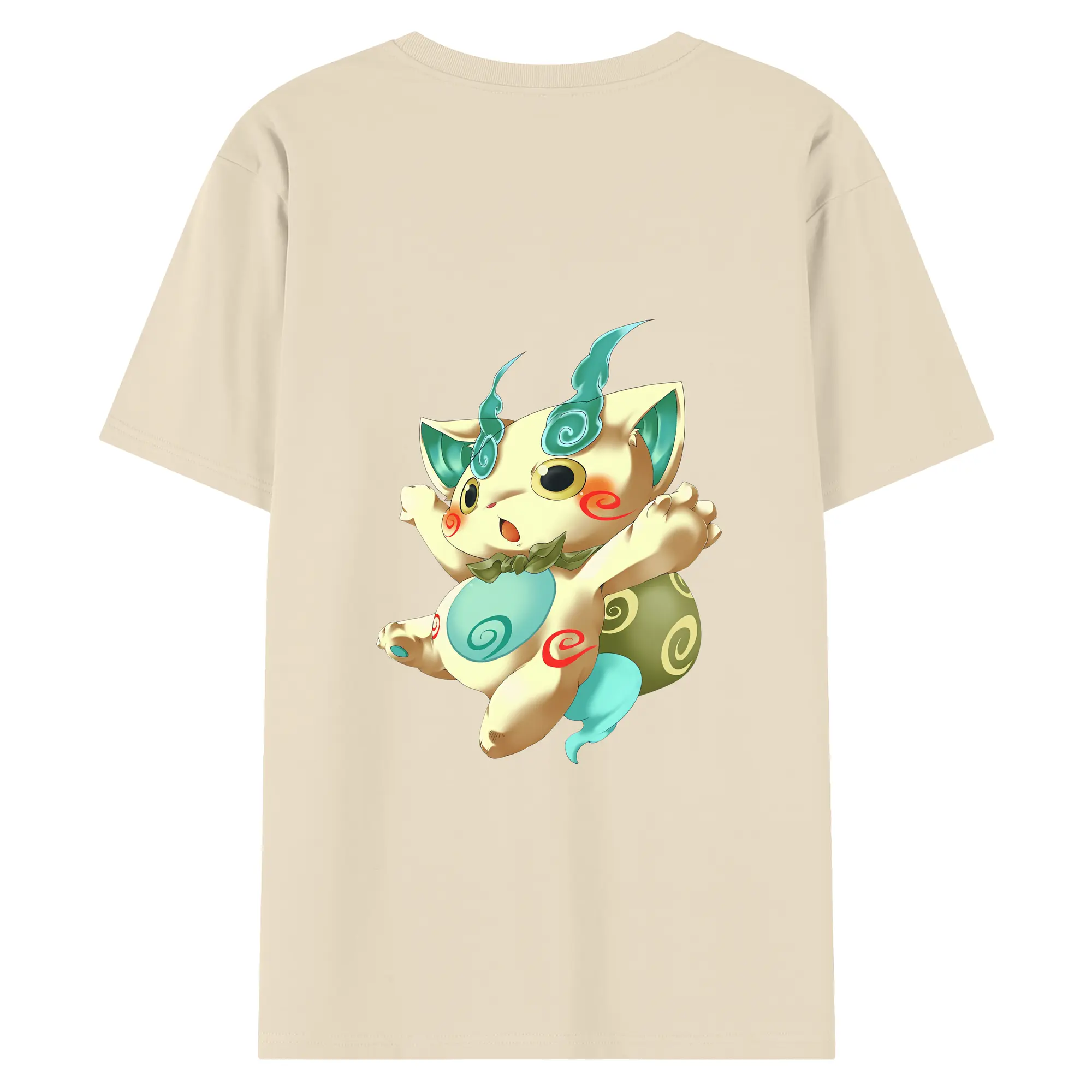 妖怪ウォッチ グッズ,コマさん - 綿100% ヴィンテージ風 半袖Tシャツ ・ 背面プリント ・ 柔らか肌触り ・ 通気性 快適 ・ スポーツ カジュアル 外出用
