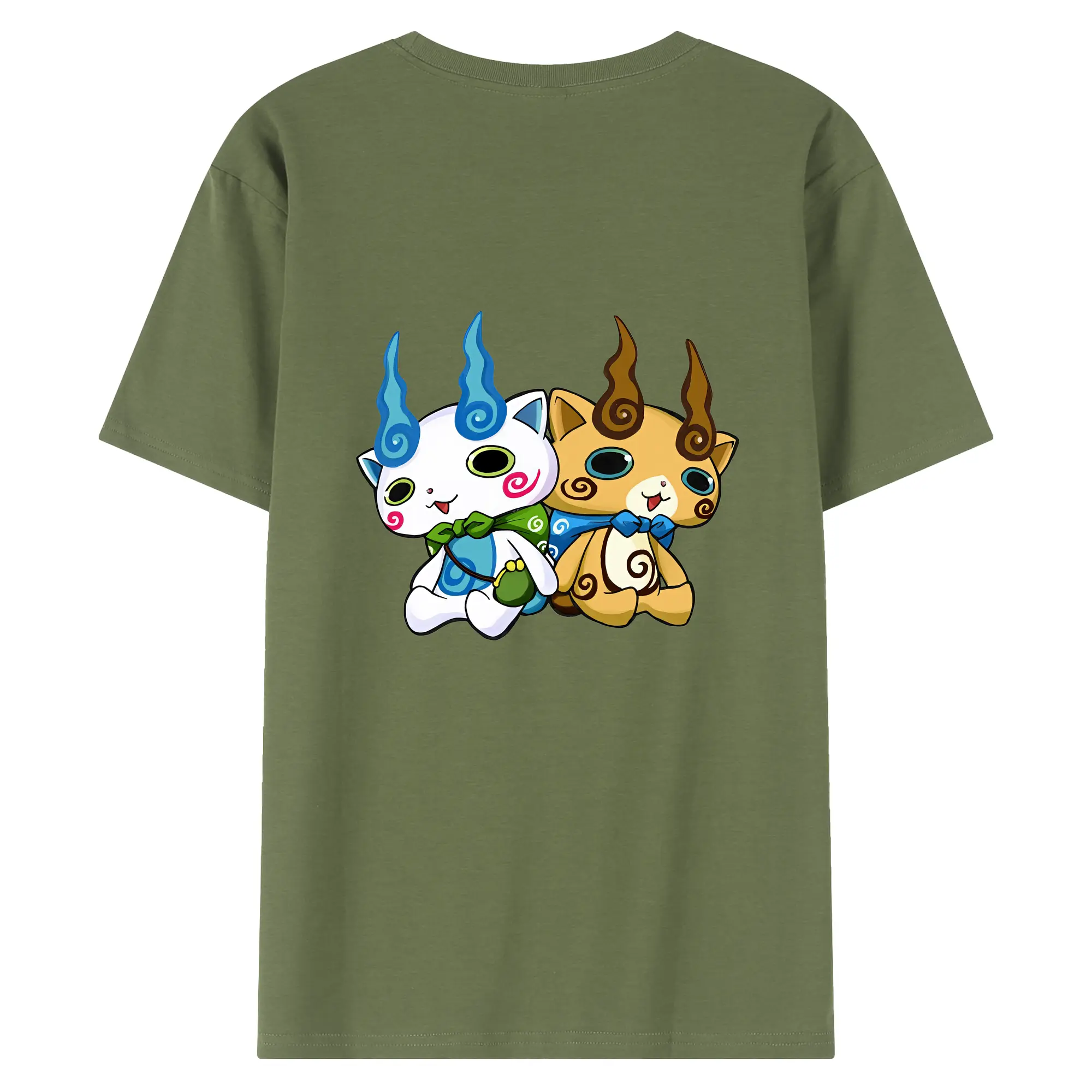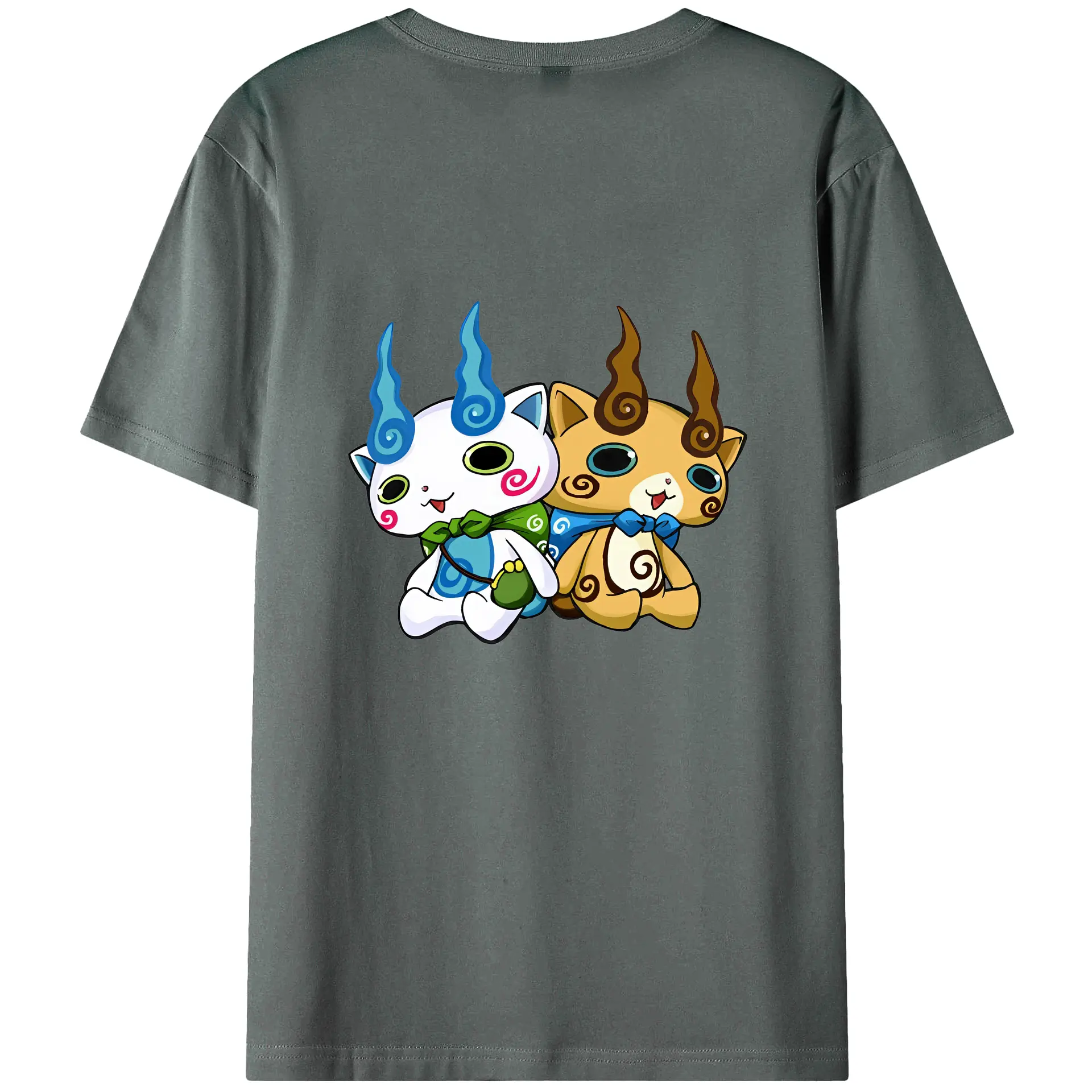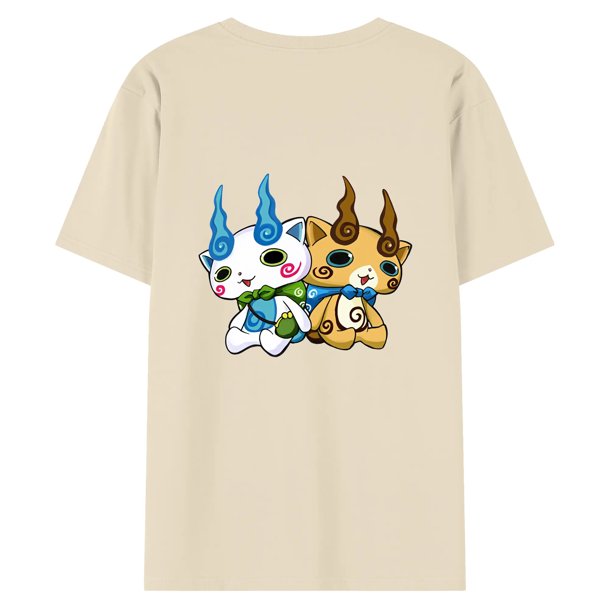 妖怪ウォッチ グッズ,コマさん - 綿100% ヴィンテージ風 半袖Tシャツ ・ 背面プリント ・ 柔らか肌触り ・ 通気性 快適 ・ スポーツ カジュアル 外出用