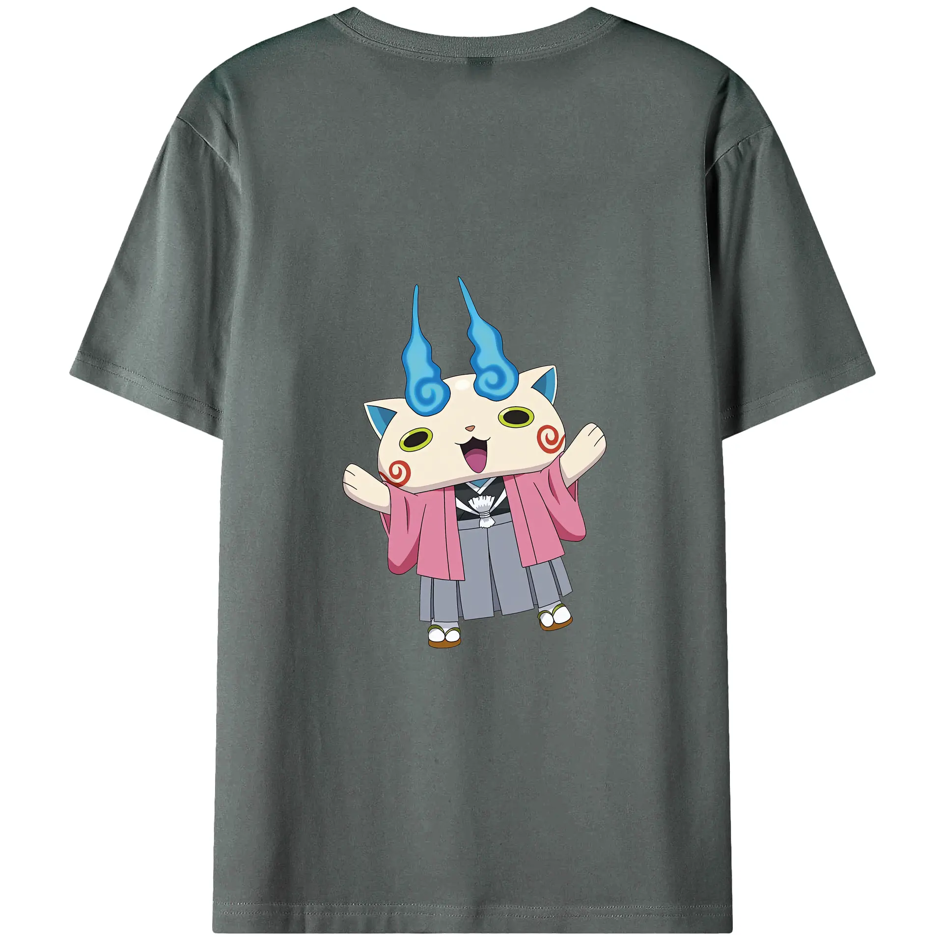 妖怪ウォッチ グッズ,コマさん - 綿100% ヴィンテージ風 半袖Tシャツ ・ 背面プリント ・ 柔らか肌触り ・ 通気性 快適 ・ スポーツ カジュアル 外出用