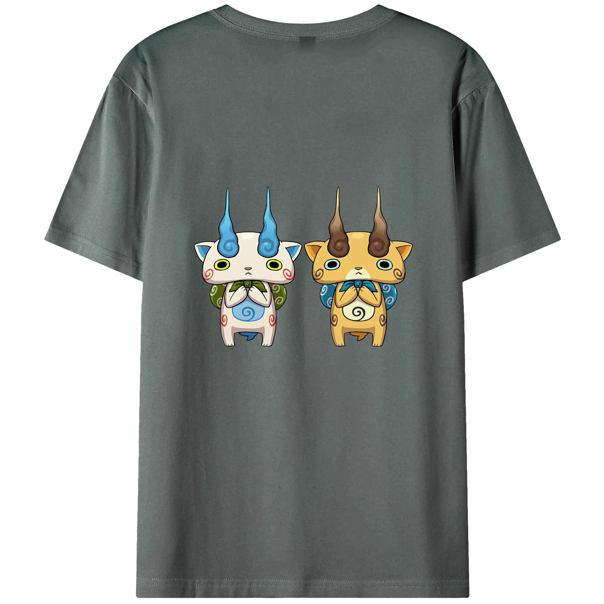 妖怪ウォッチ グッズ,コマさん - 綿100% ヴィンテージ風 半袖Tシャツ ・ 背面プリント ・ 柔らか肌触り ・ 通気性 快適 ・ スポーツ カジュアル 外出用