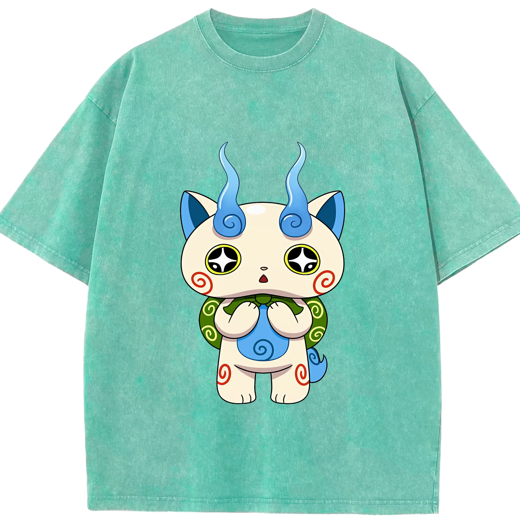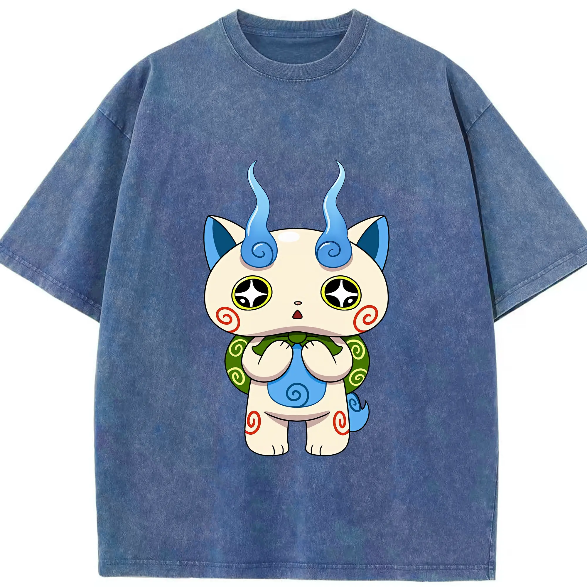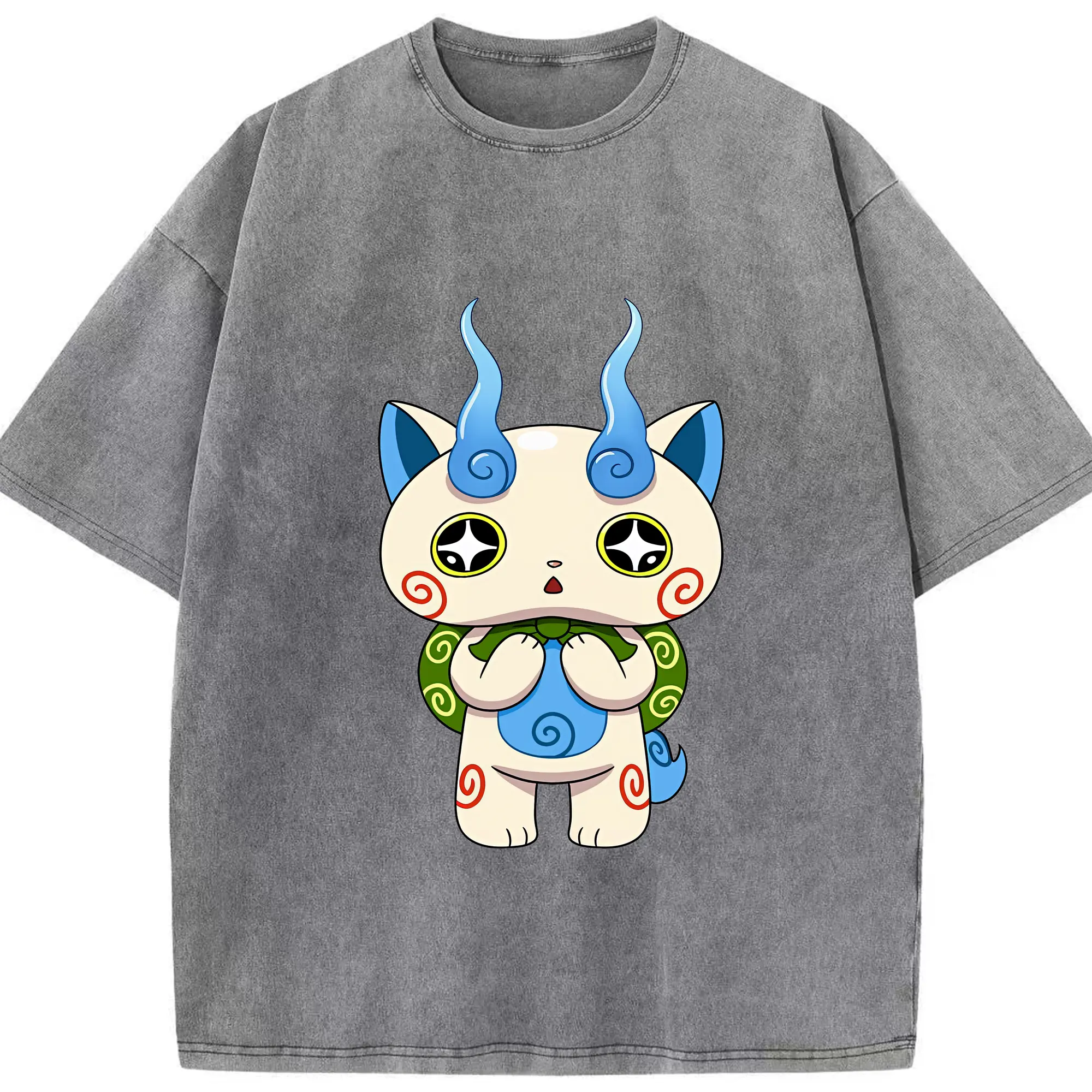妖怪ウォッチ グッズ,コマさん - 綿100% ヴィンテージ風 半袖Tシャツ ・ 背面プリント ・ 柔らか肌触り ・ 通気性 快適 ・ スポーツ カジュアル 外出用