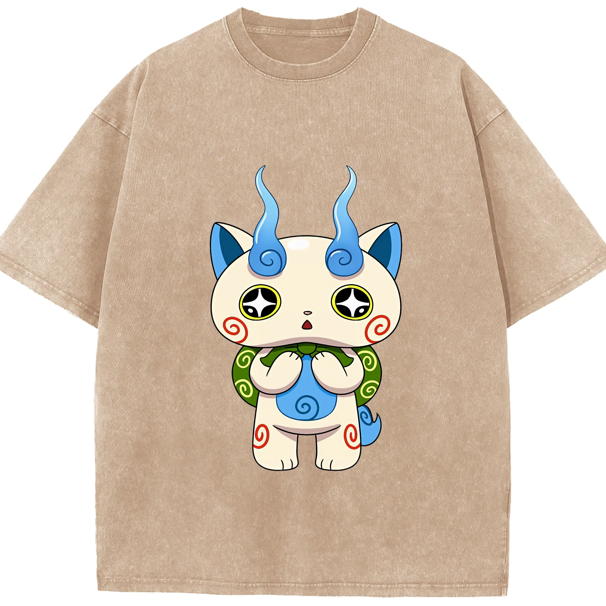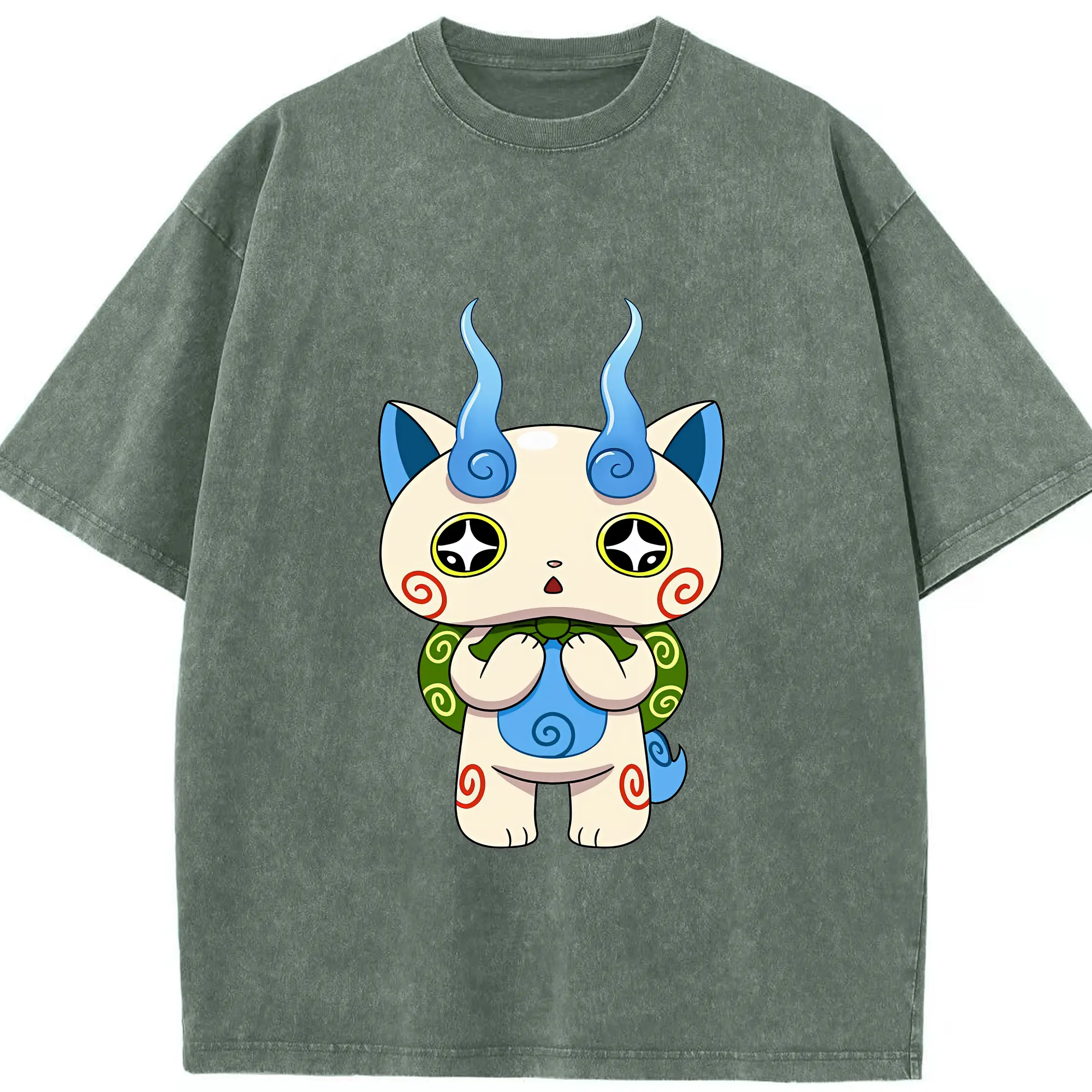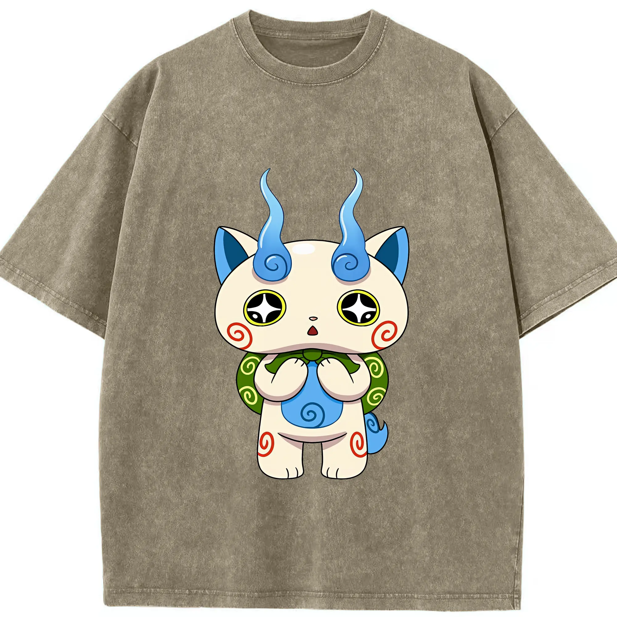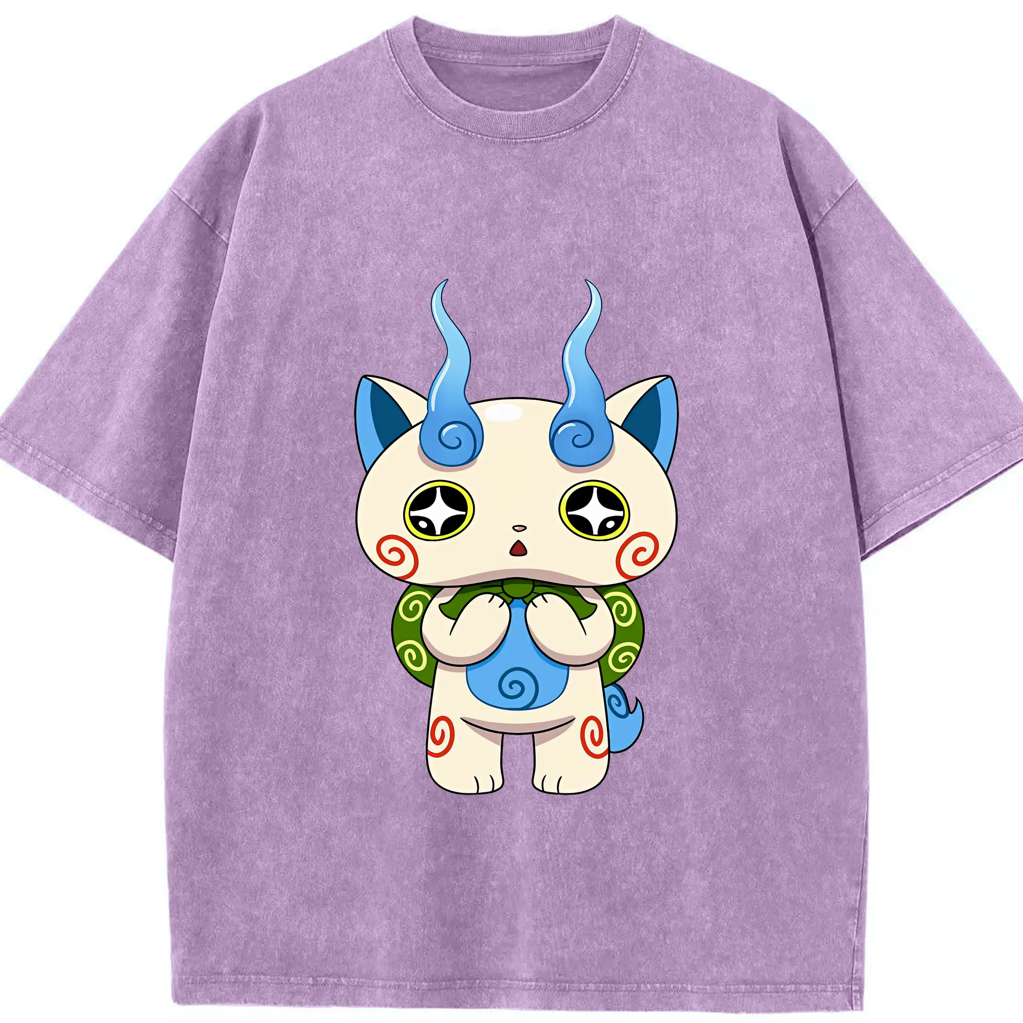 妖怪ウォッチ グッズ,コマさん - 綿100% ヴィンテージ風 半袖Tシャツ ・ 背面プリント ・ 柔らか肌触り ・ 通気性 快適 ・ スポーツ カジュアル 外出用