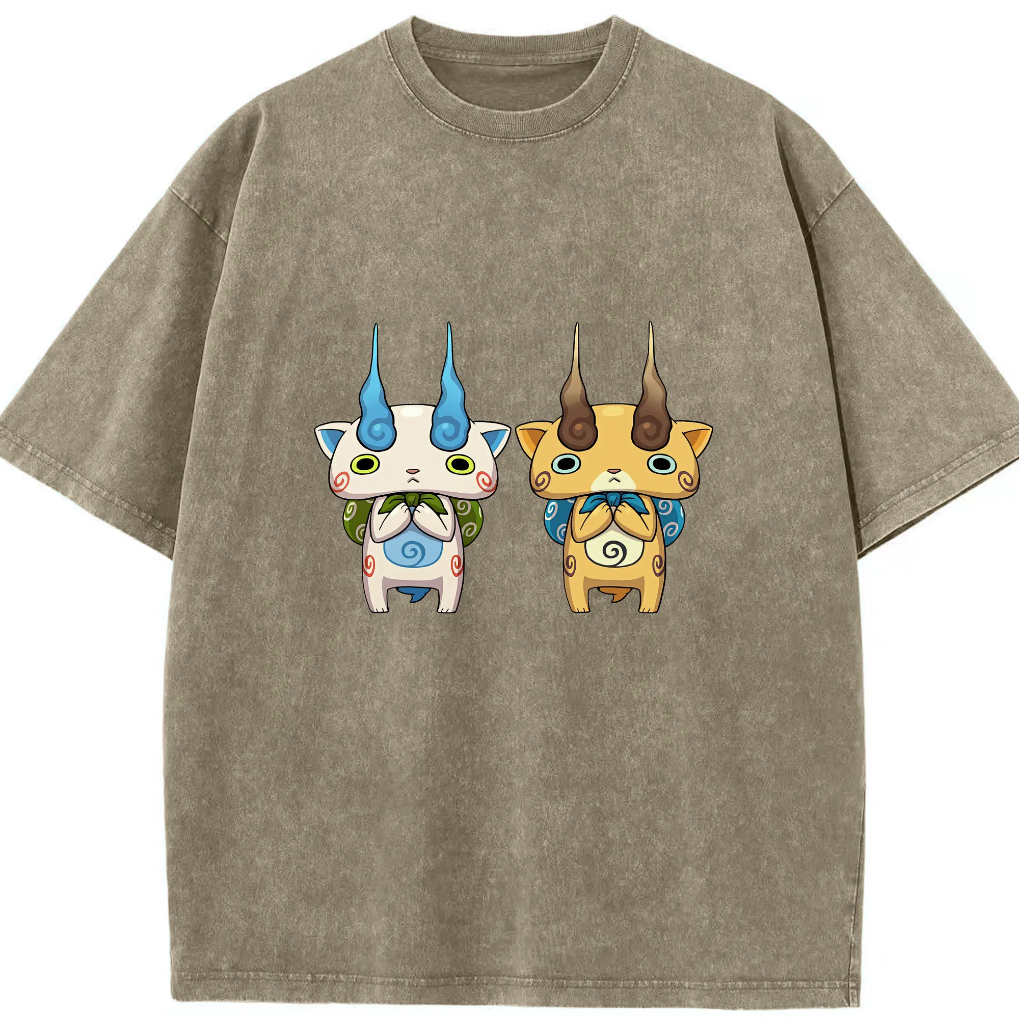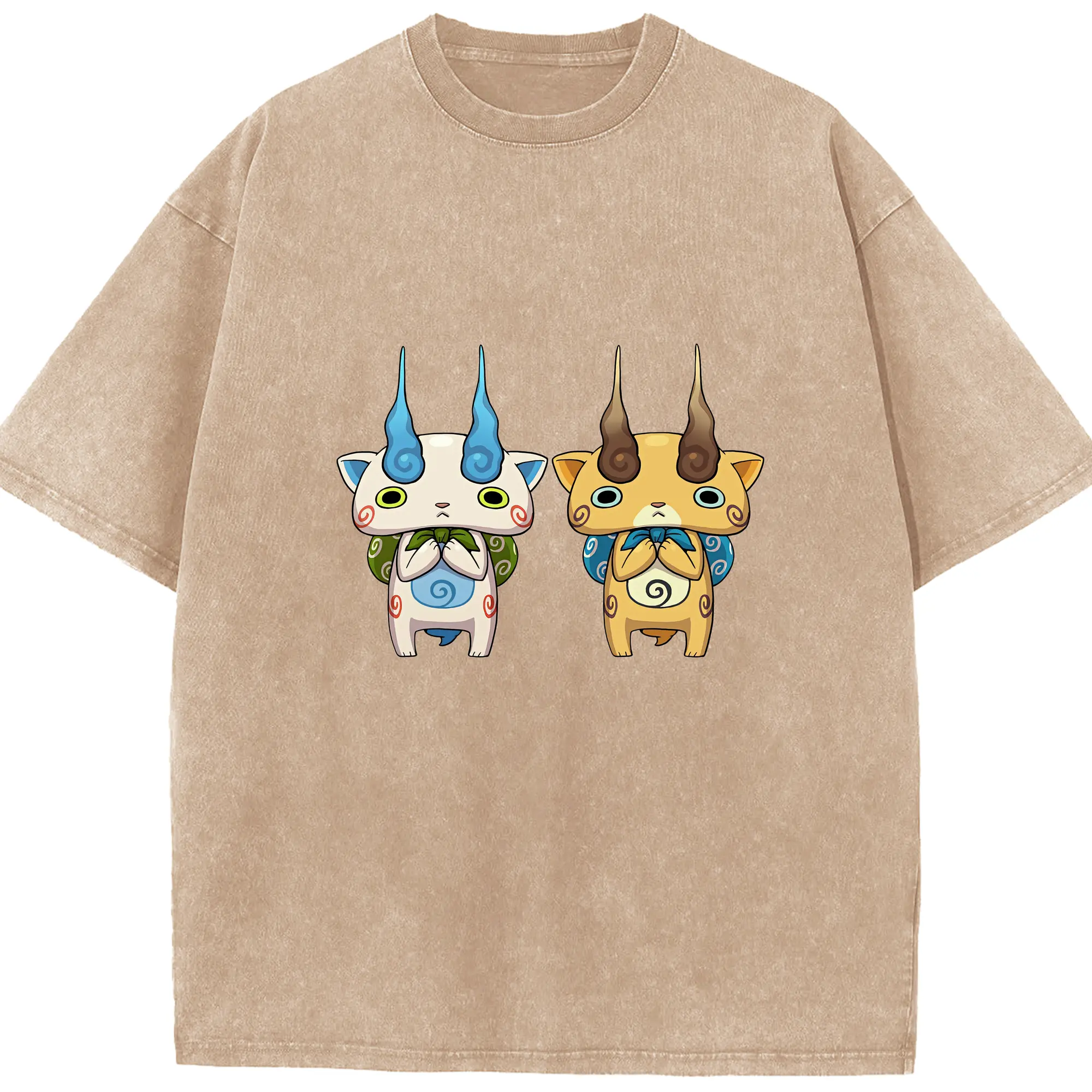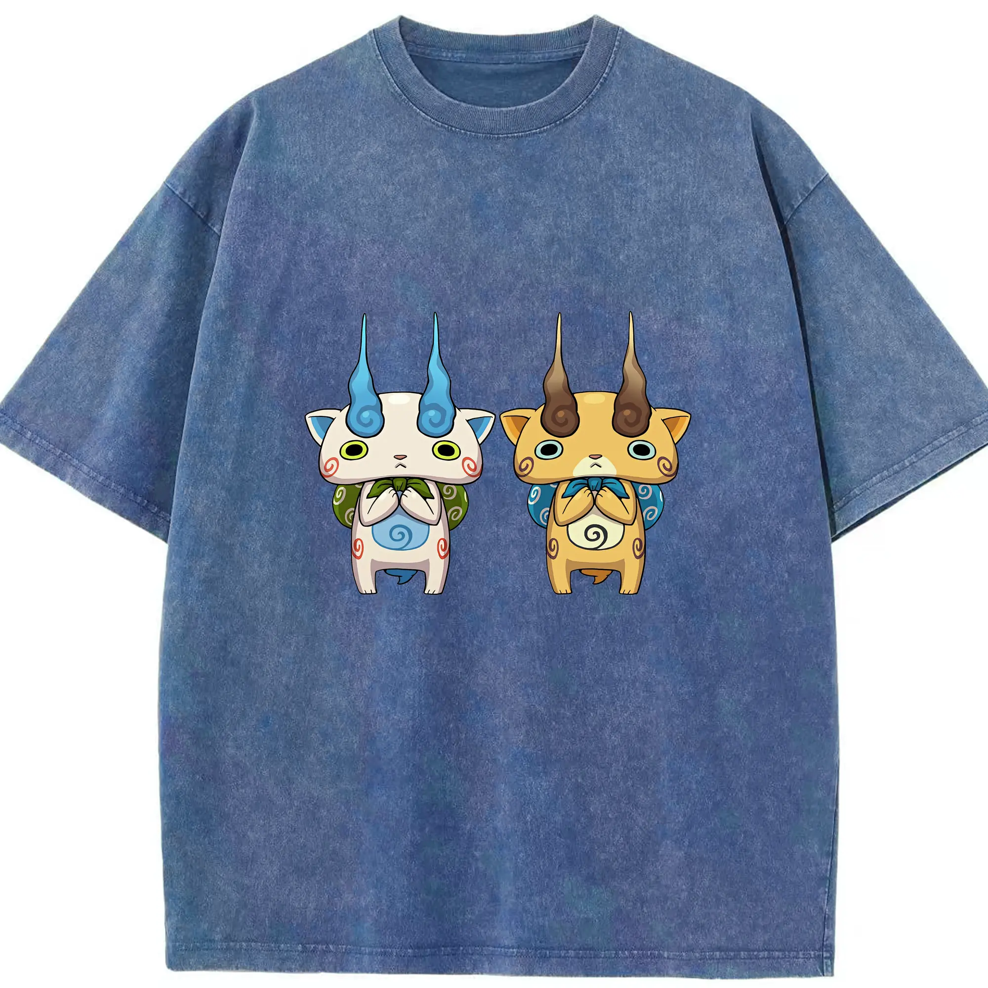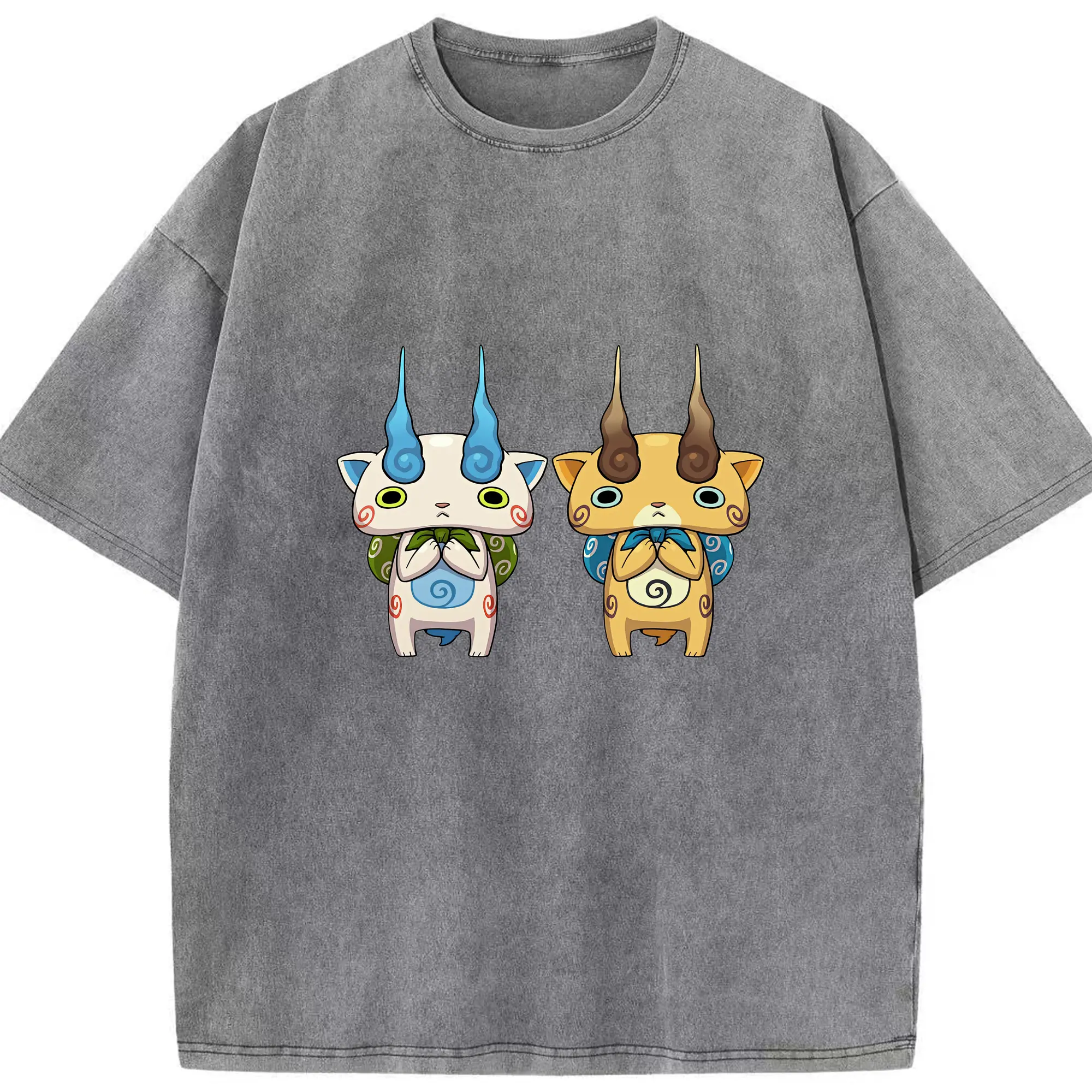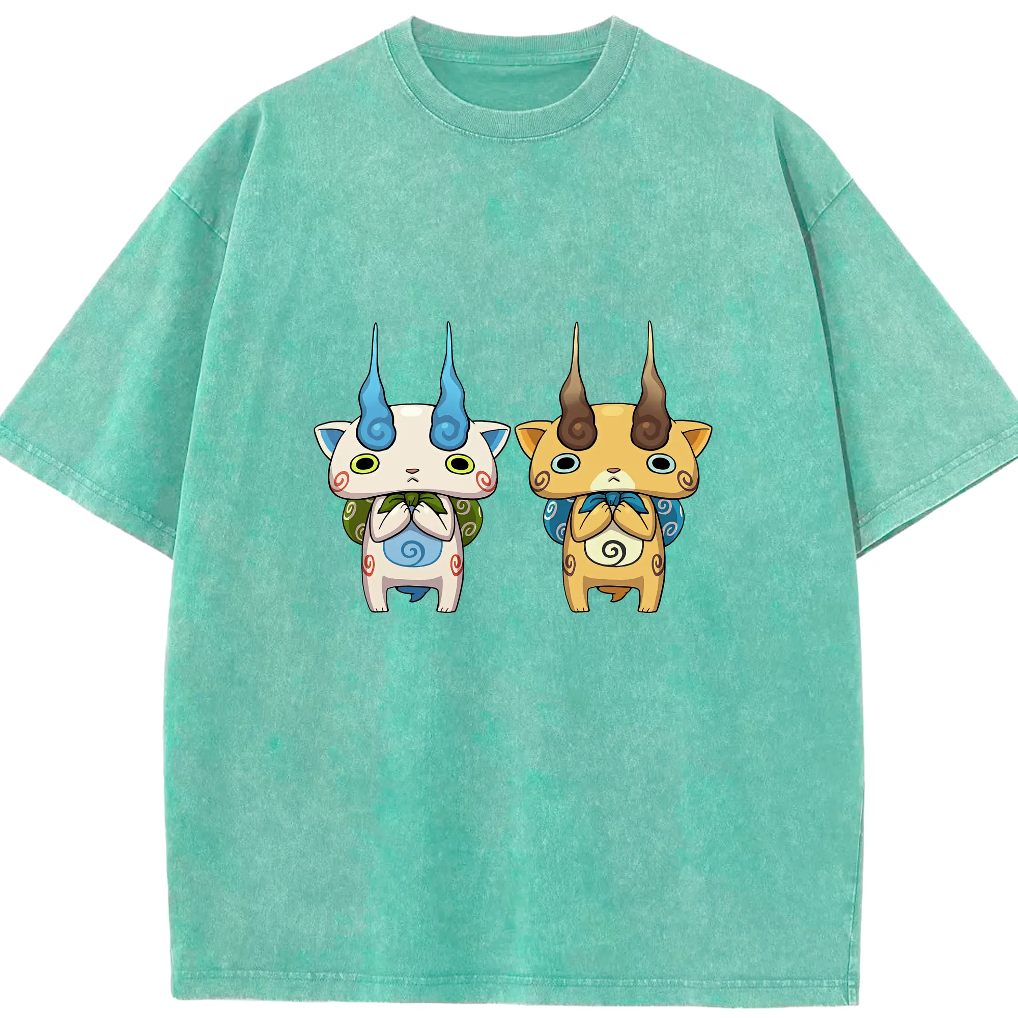 妖怪ウォッチ グッズ,コマさん - 綿100% ヴィンテージ風 半袖Tシャツ ・ 背面プリント ・ 柔らか肌触り ・ 通気性 快適 ・ スポーツ カジュアル 外出用