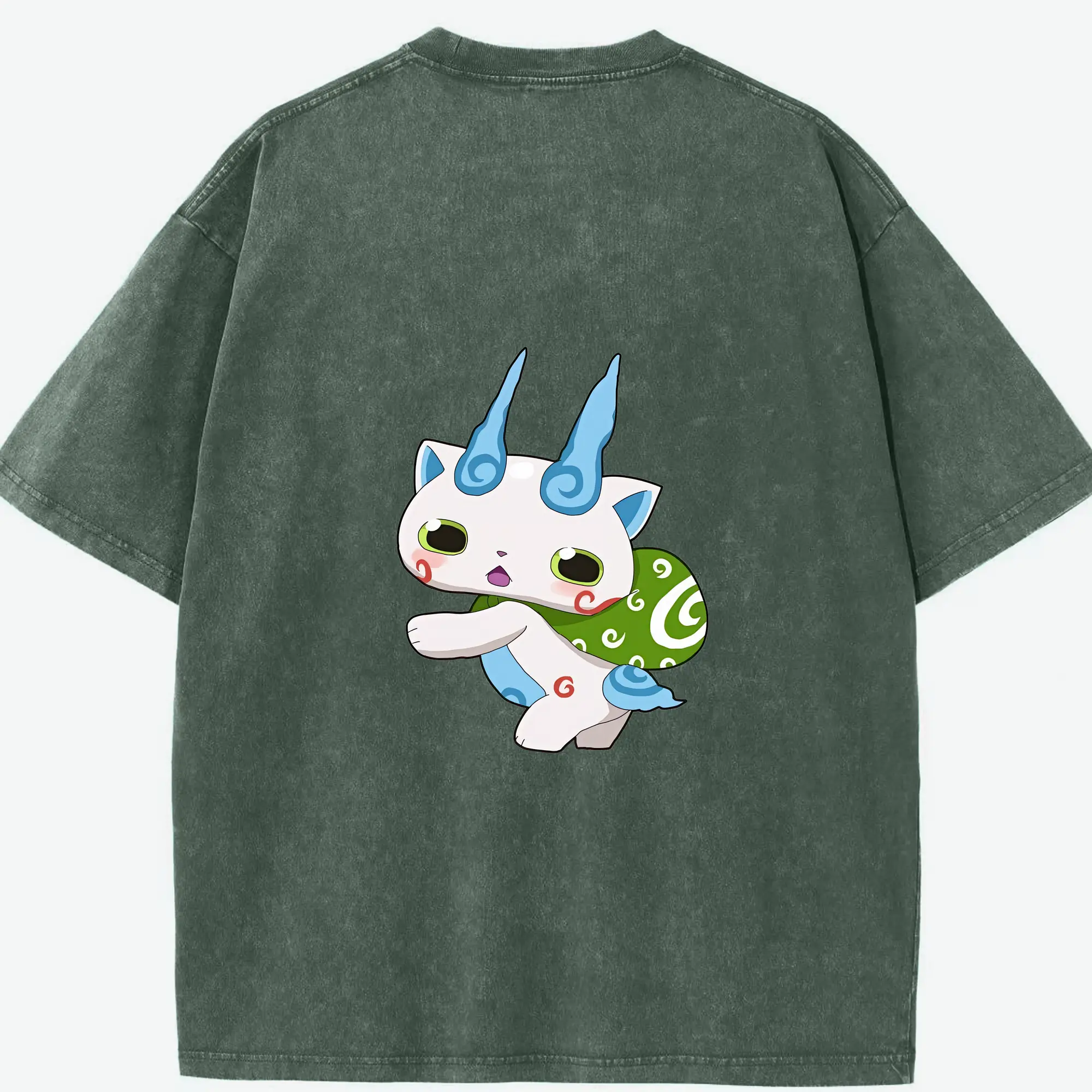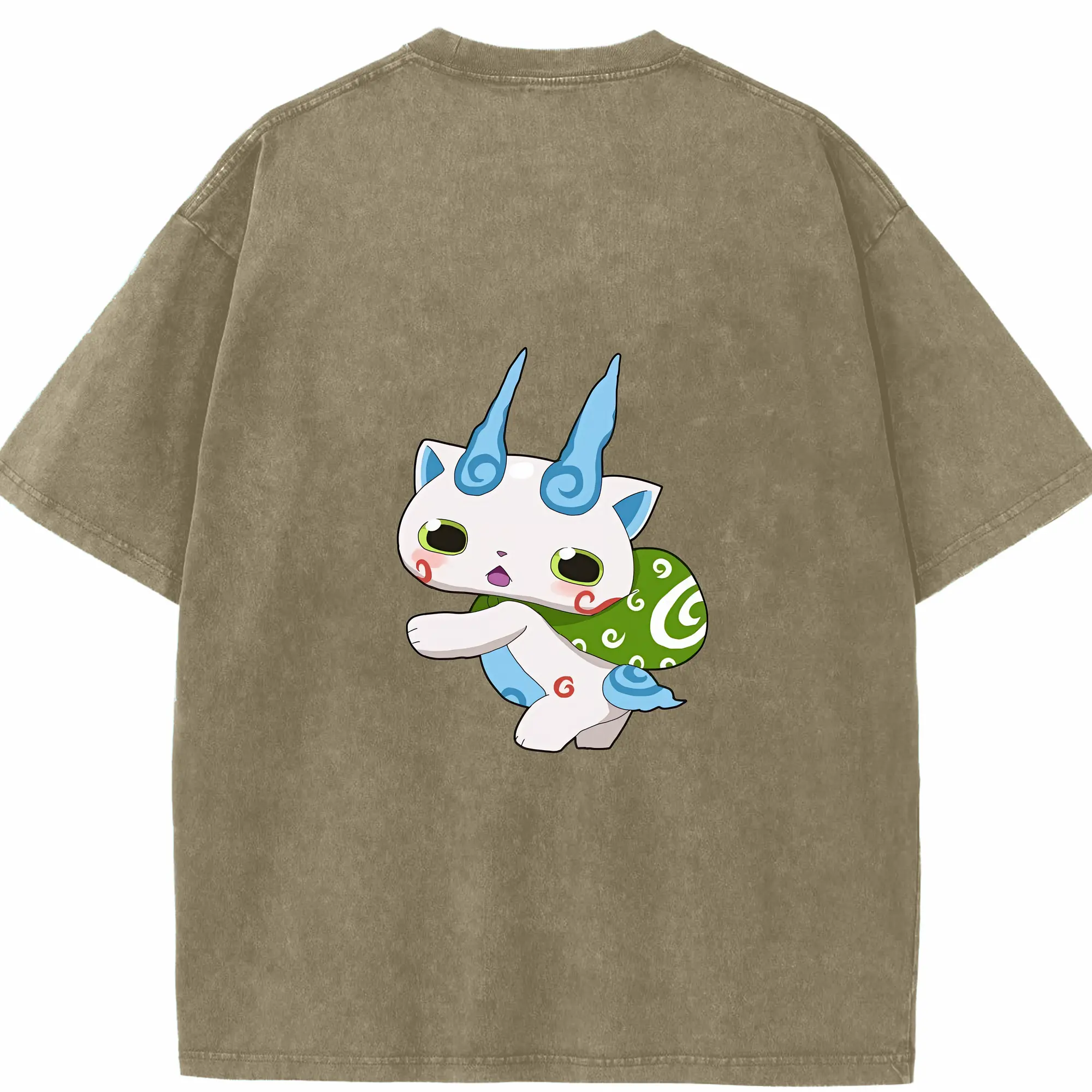 妖怪ウォッチ グッズ,コマさん - 綿100% ヴィンテージ風 半袖Tシャツ ・ フロントプリント ・ 柔らか肌触り ・ 通気性 快適 ・ スポーツ カジュアル 外出用