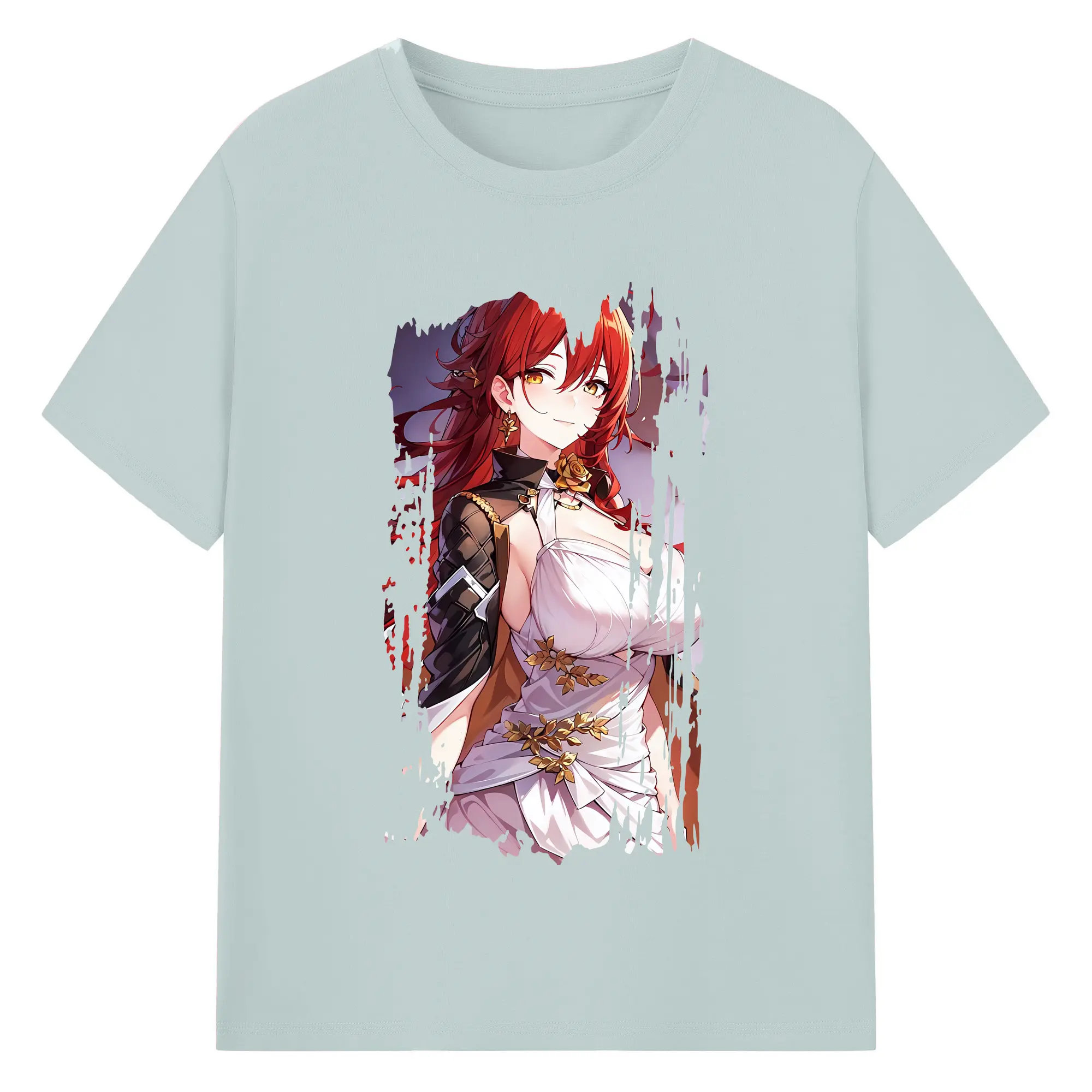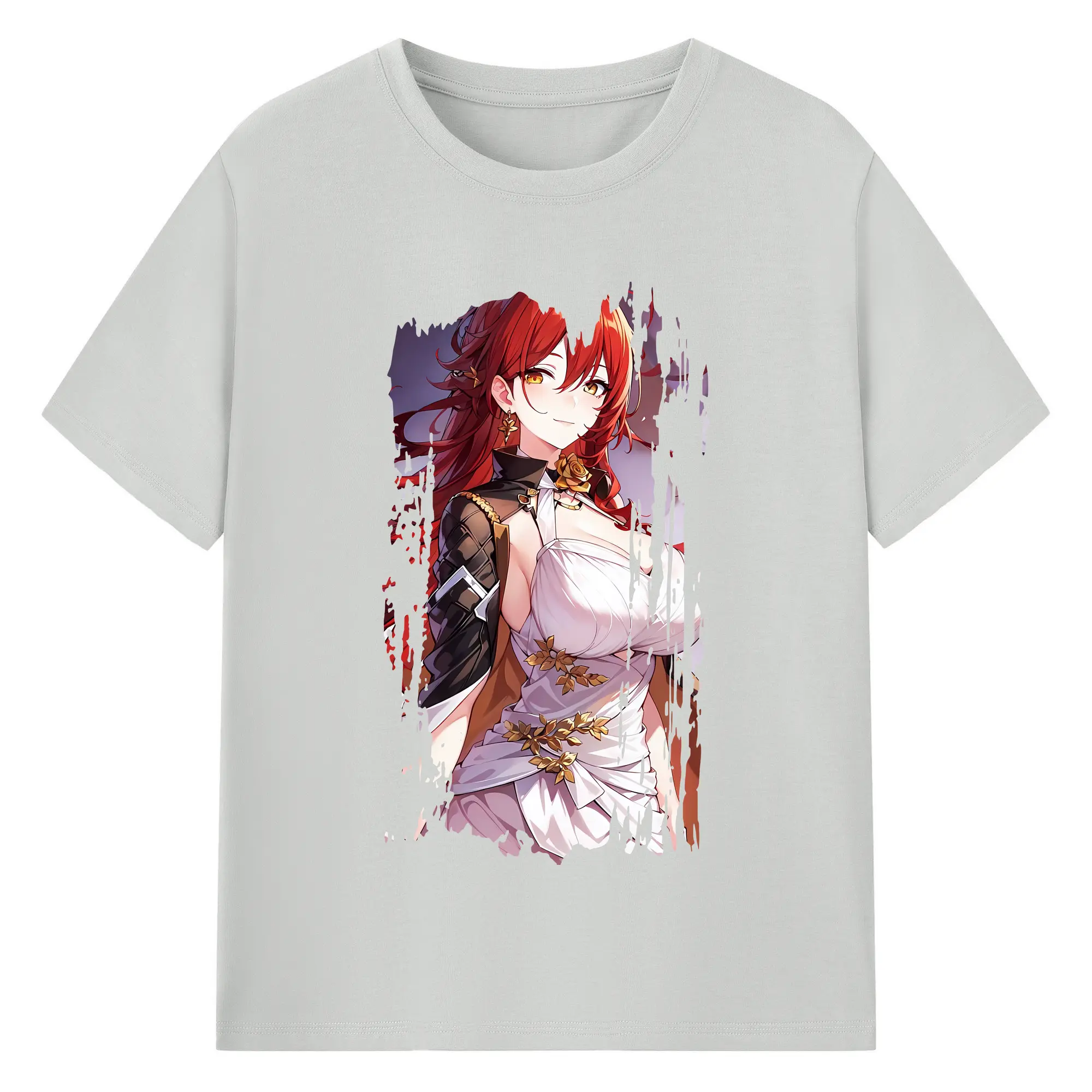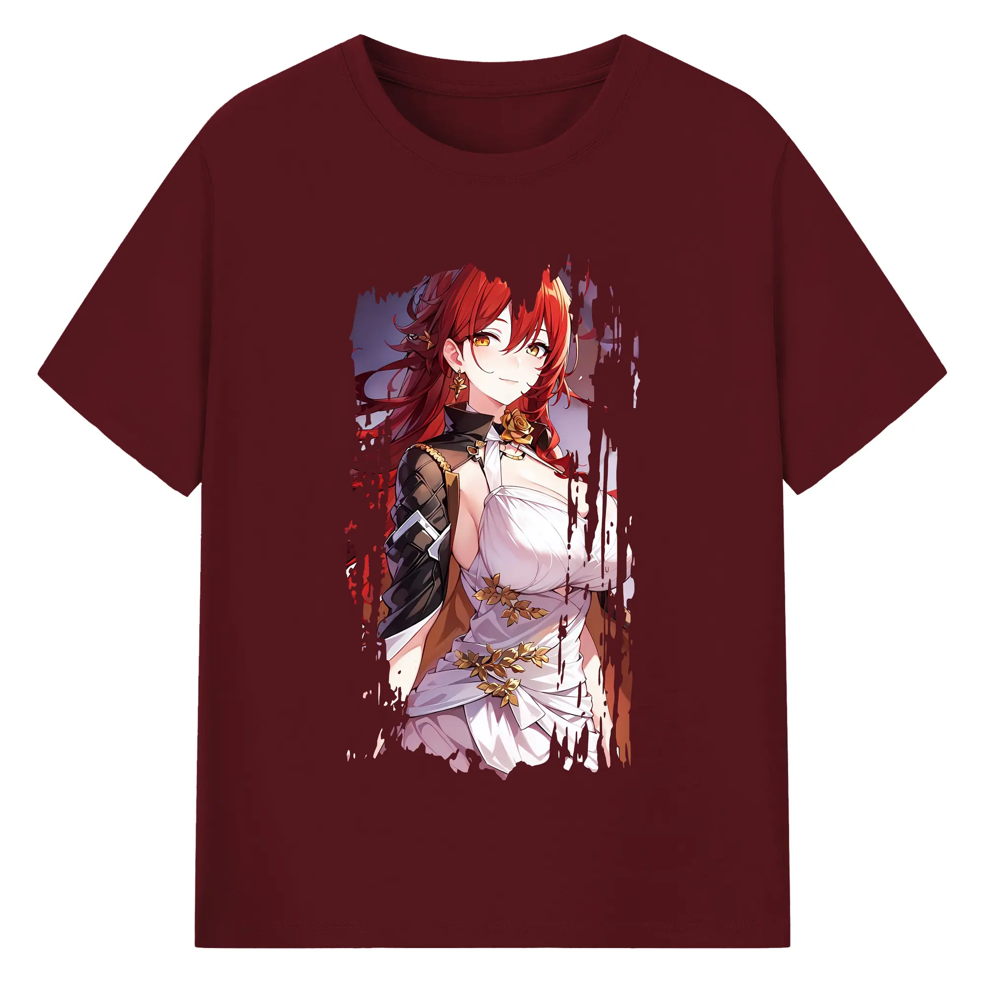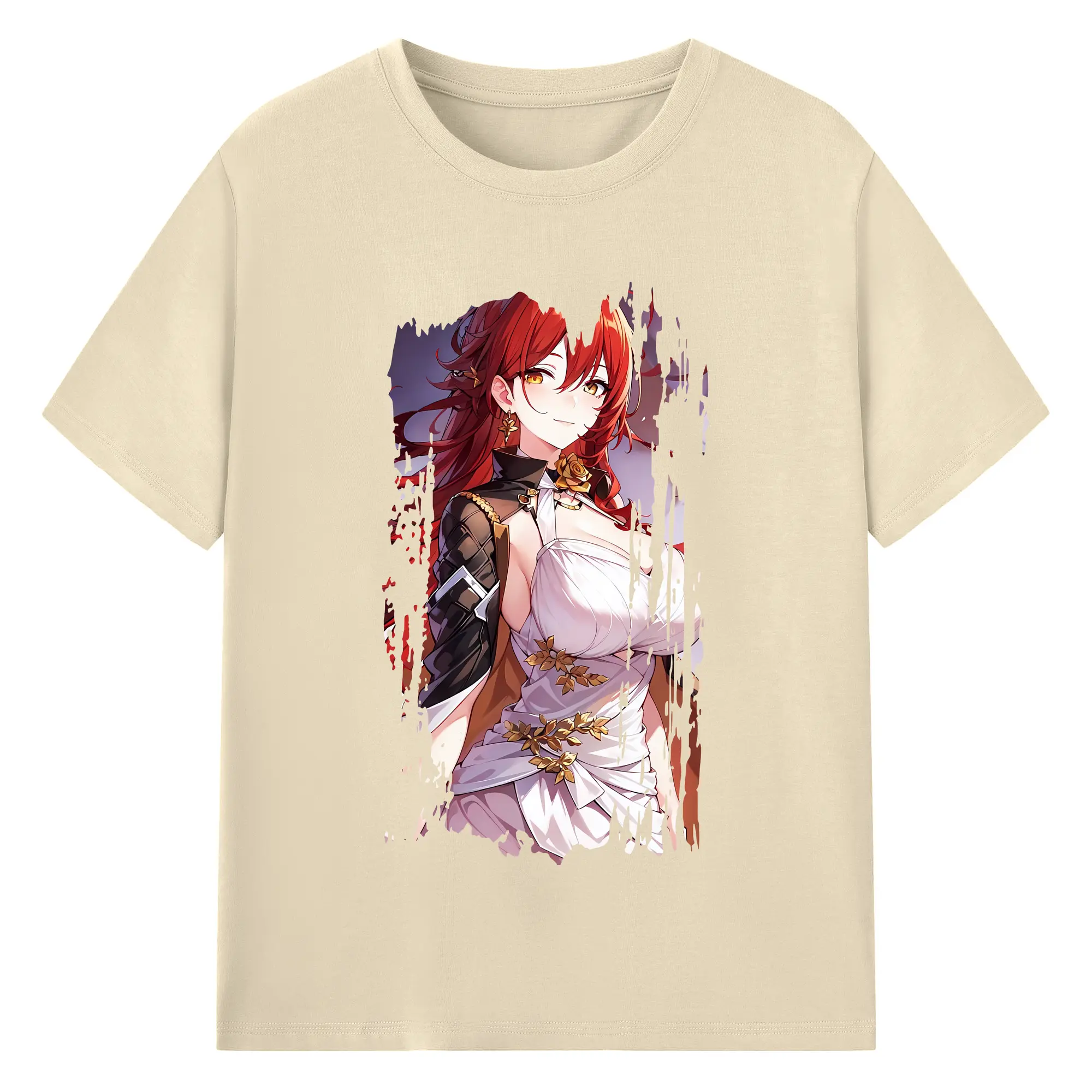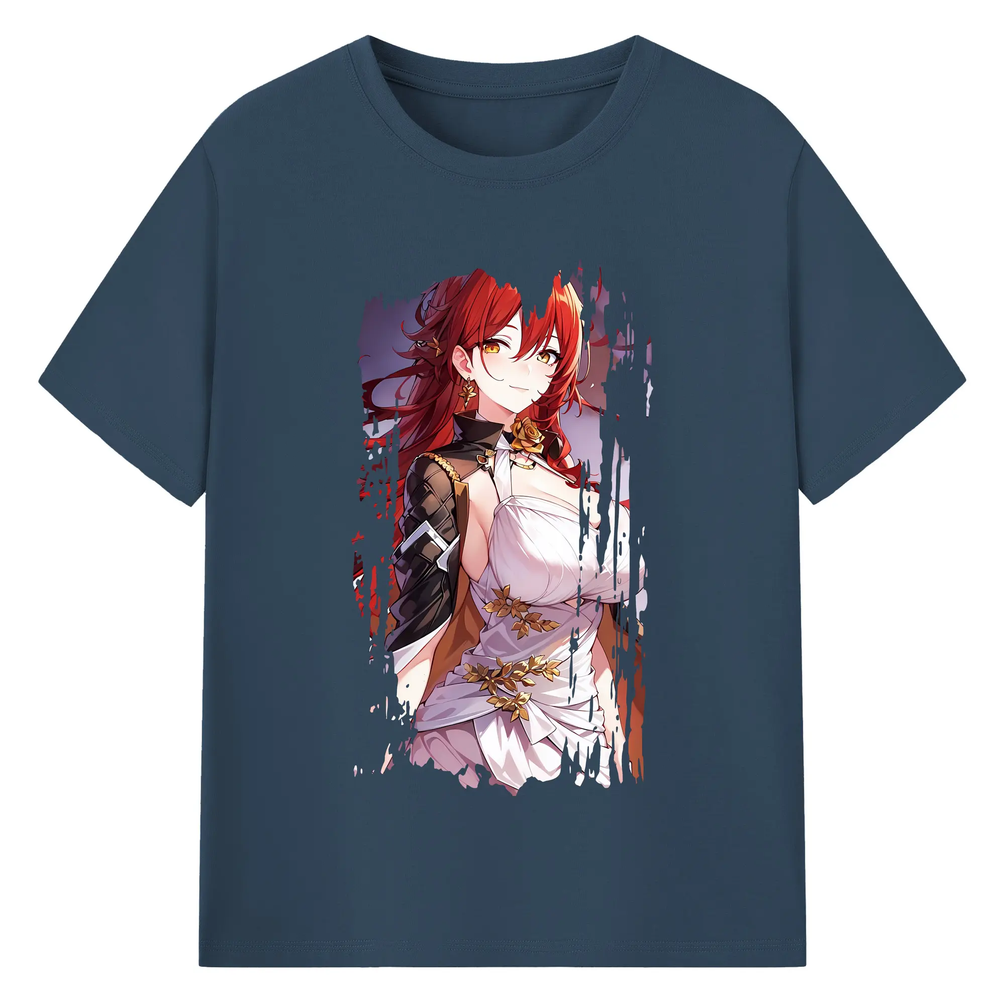 崩壊:スターレイル グッズ 姫子 - 綿100% ヴィンテージ風 半袖Tシャツ ・ フロントプリント ・ 柔らか肌触り ・ 通気性 快適 ・ スポーツ カジュアル 外出用