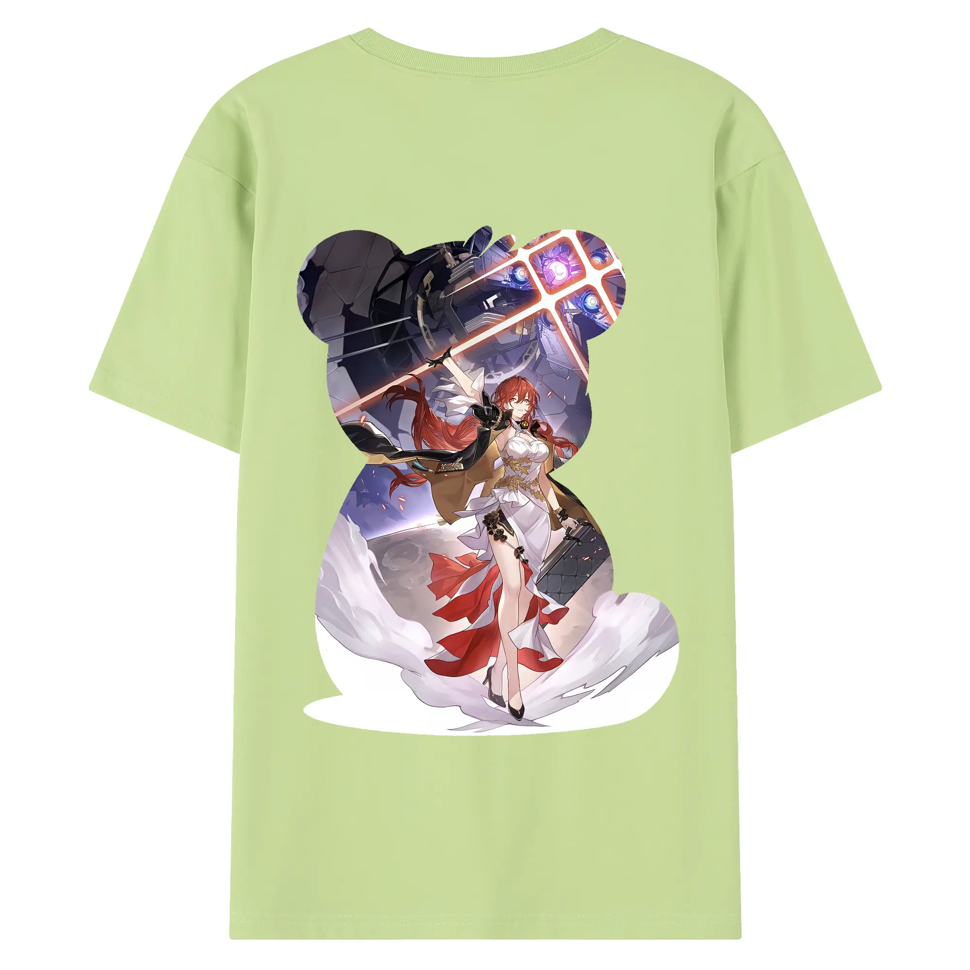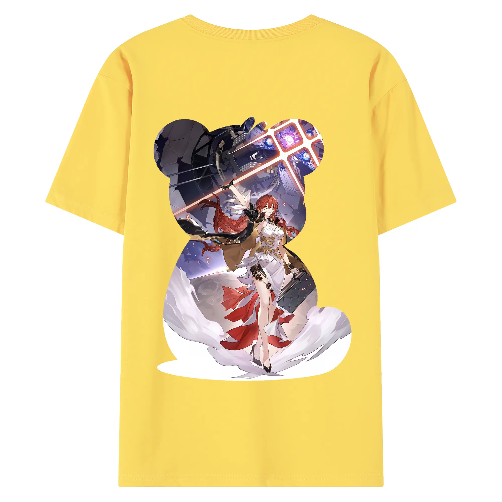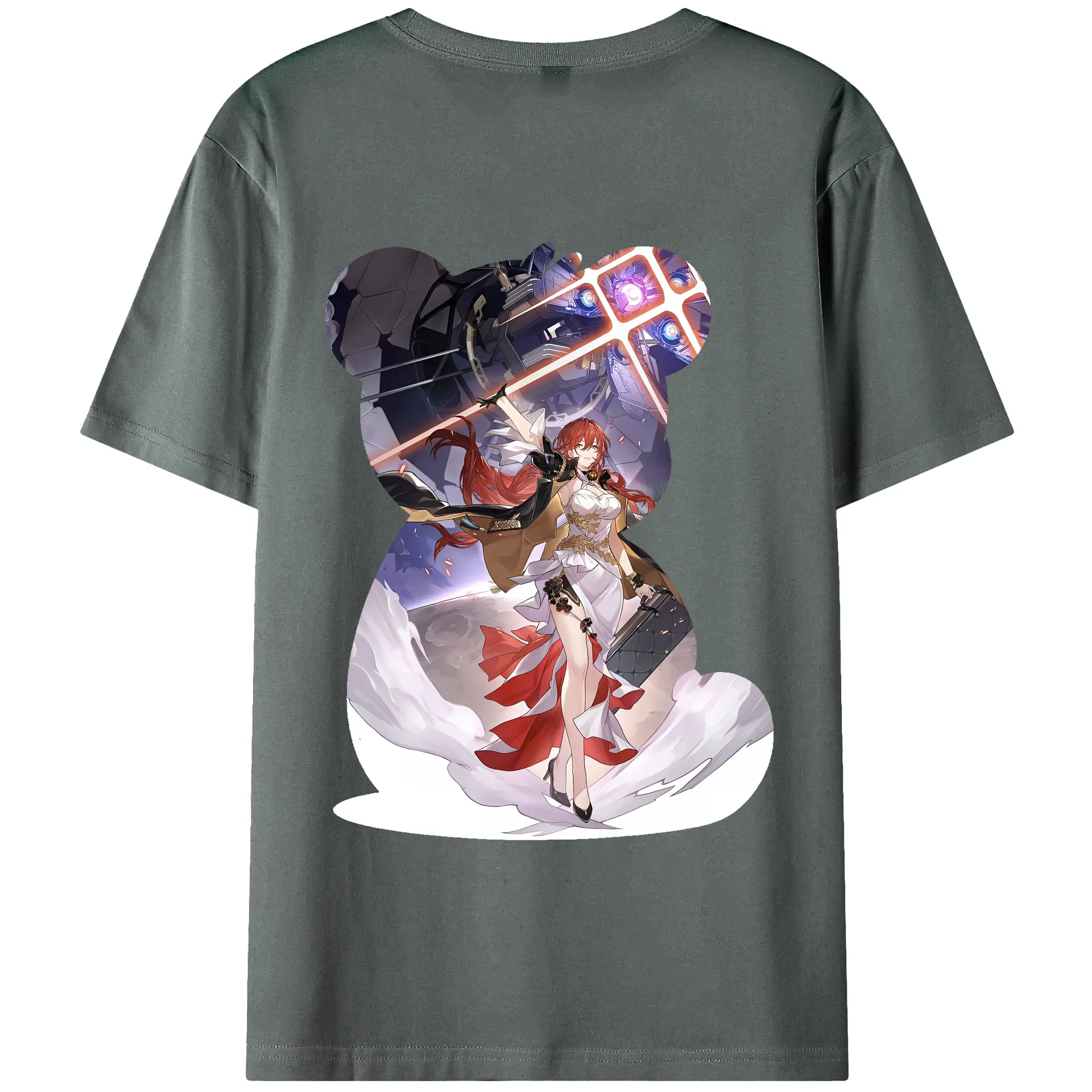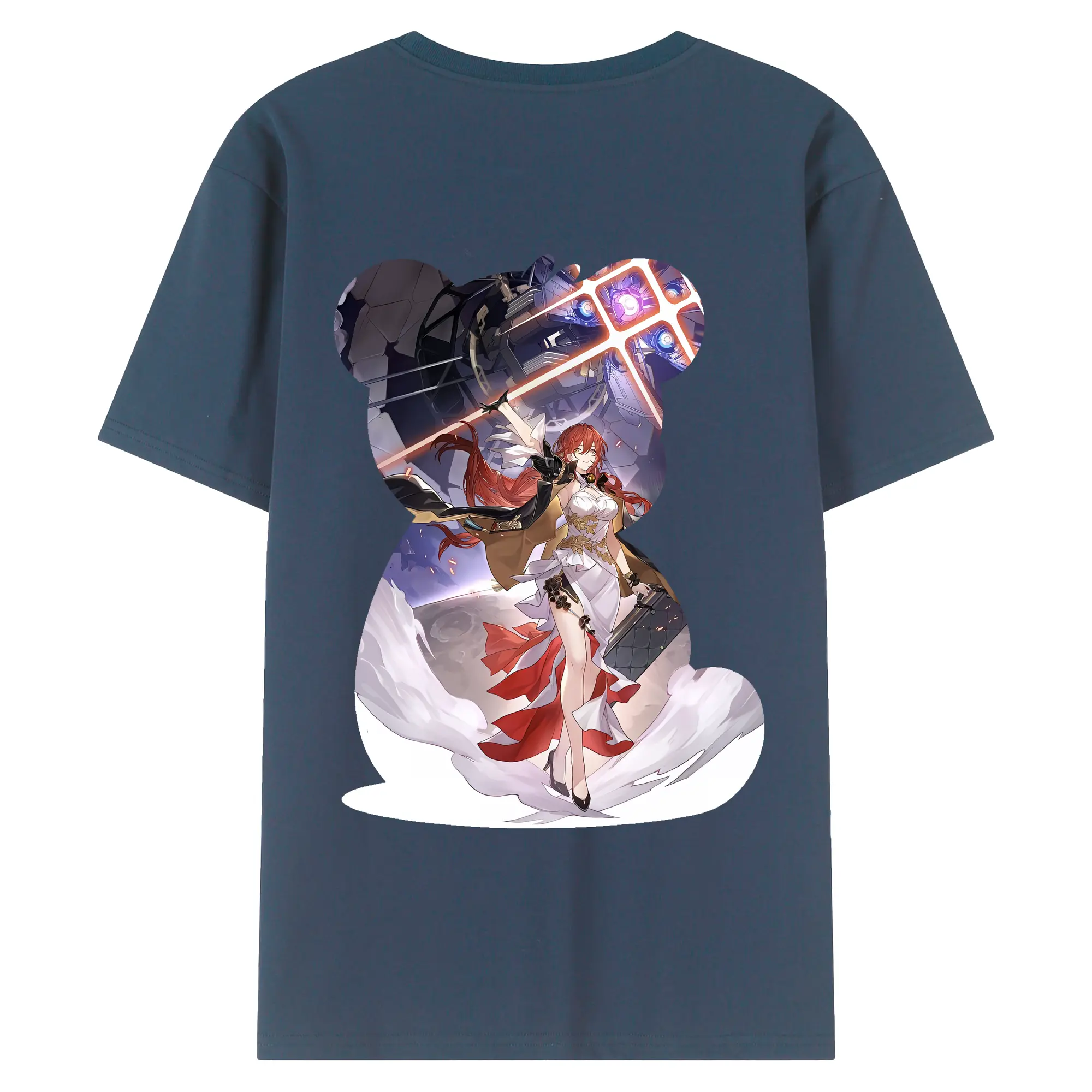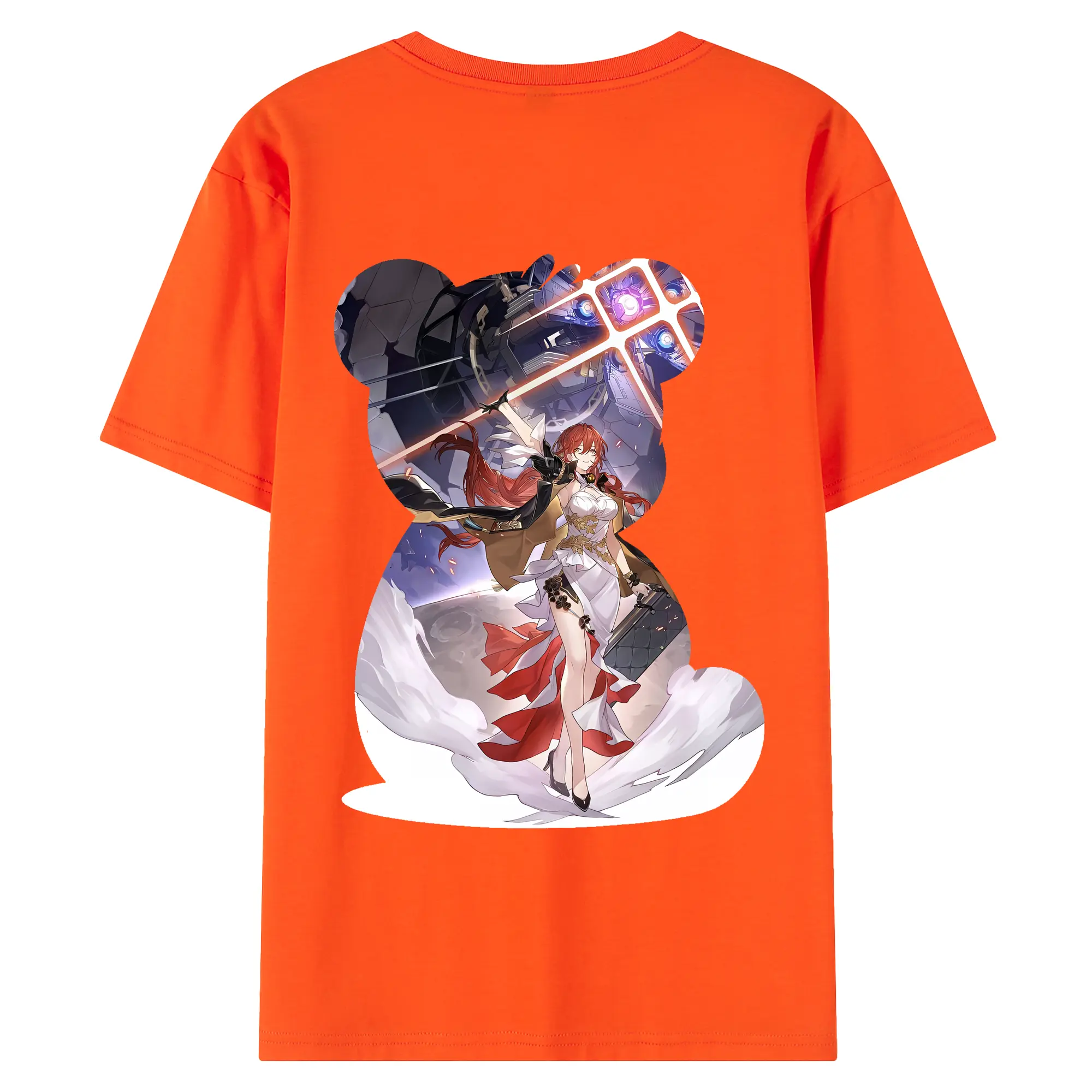 崩壊:スターレイル グッズ 姫子 - 綿100% ヴィンテージ風 半袖Tシャツ ・ 背面プリント ・ 柔らか肌触り ・ 通気性 快適 ・ スポーツ カジュアル 外出用