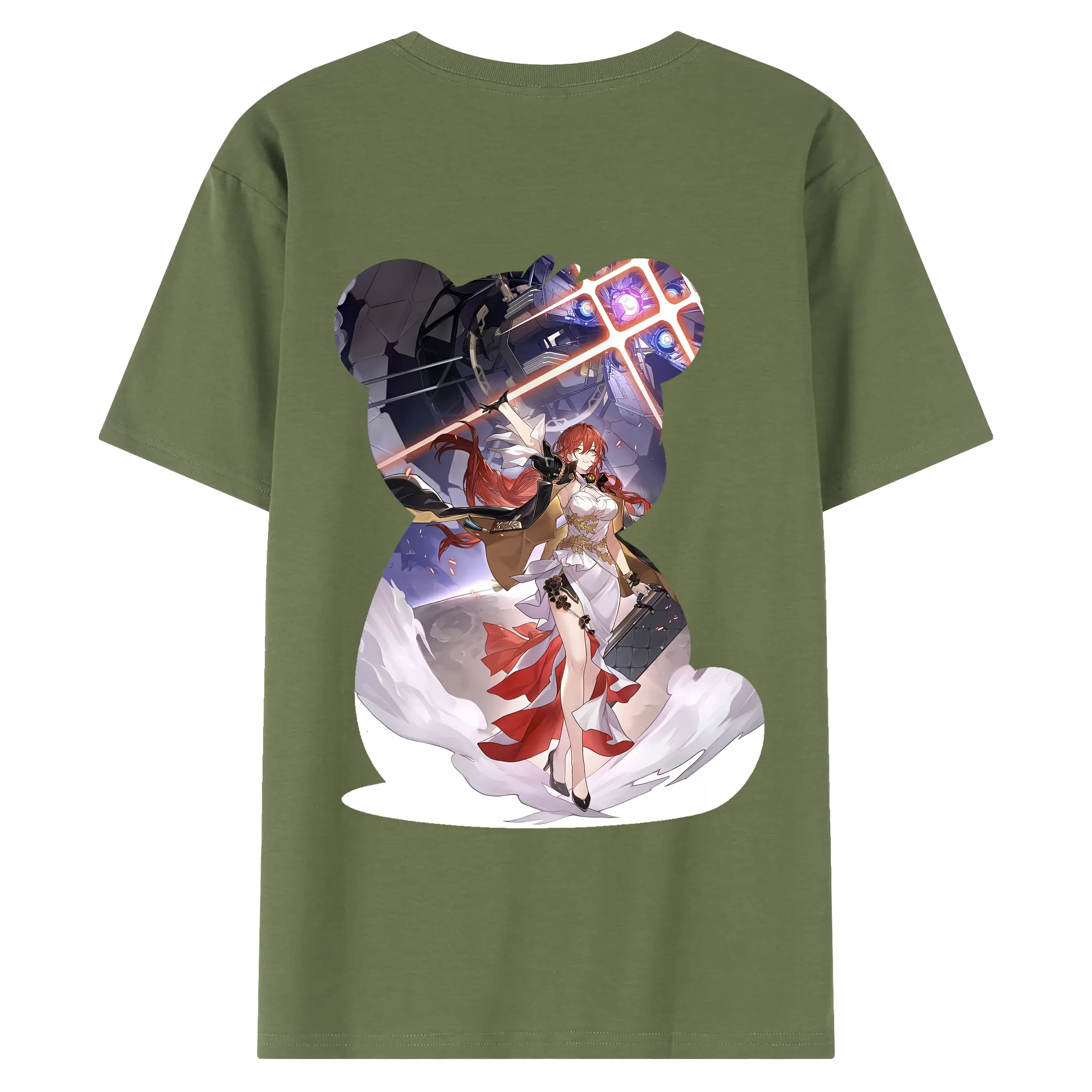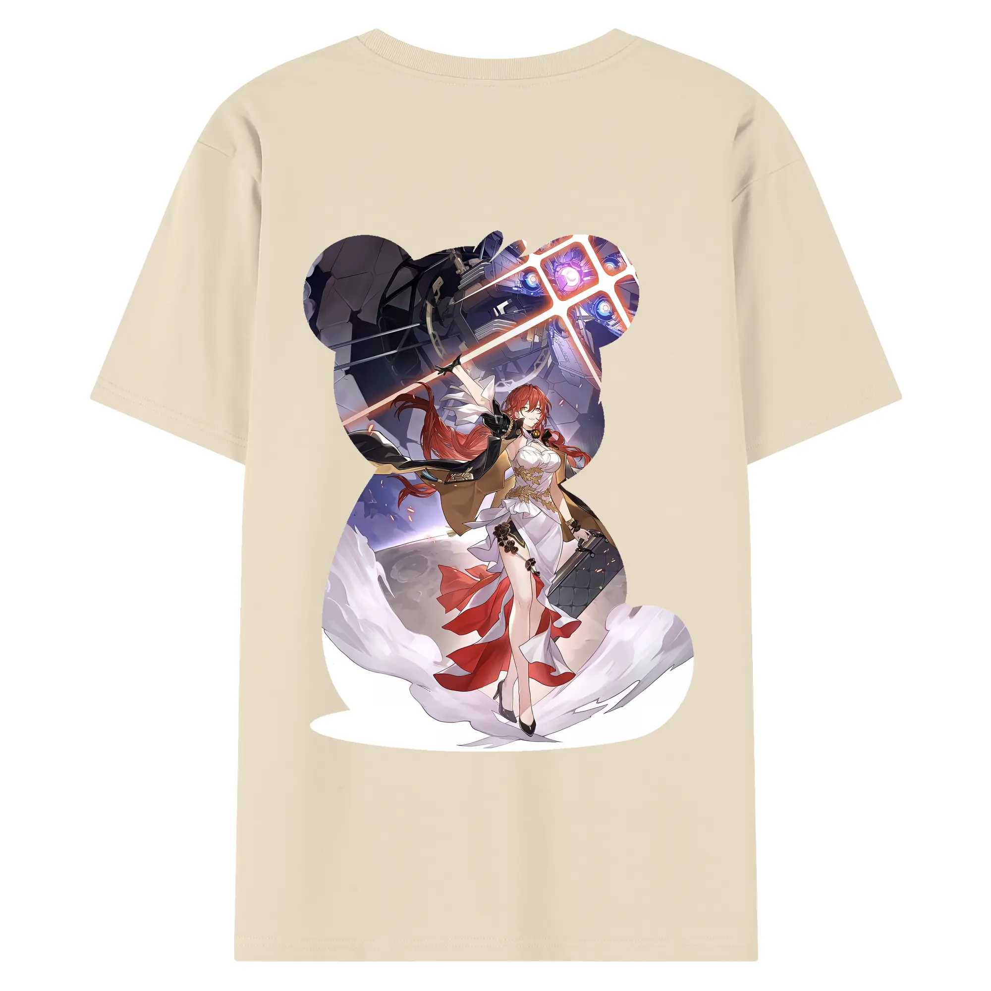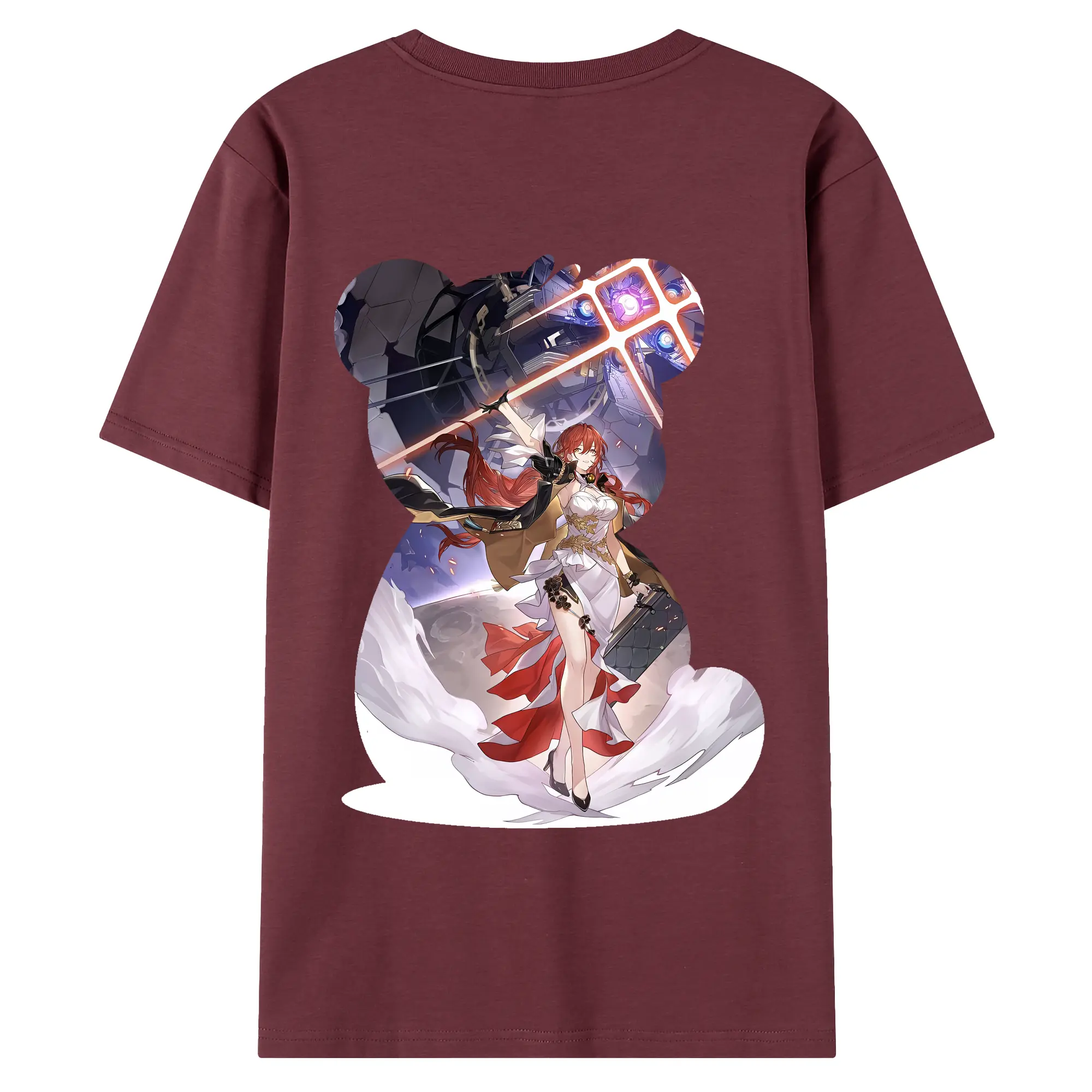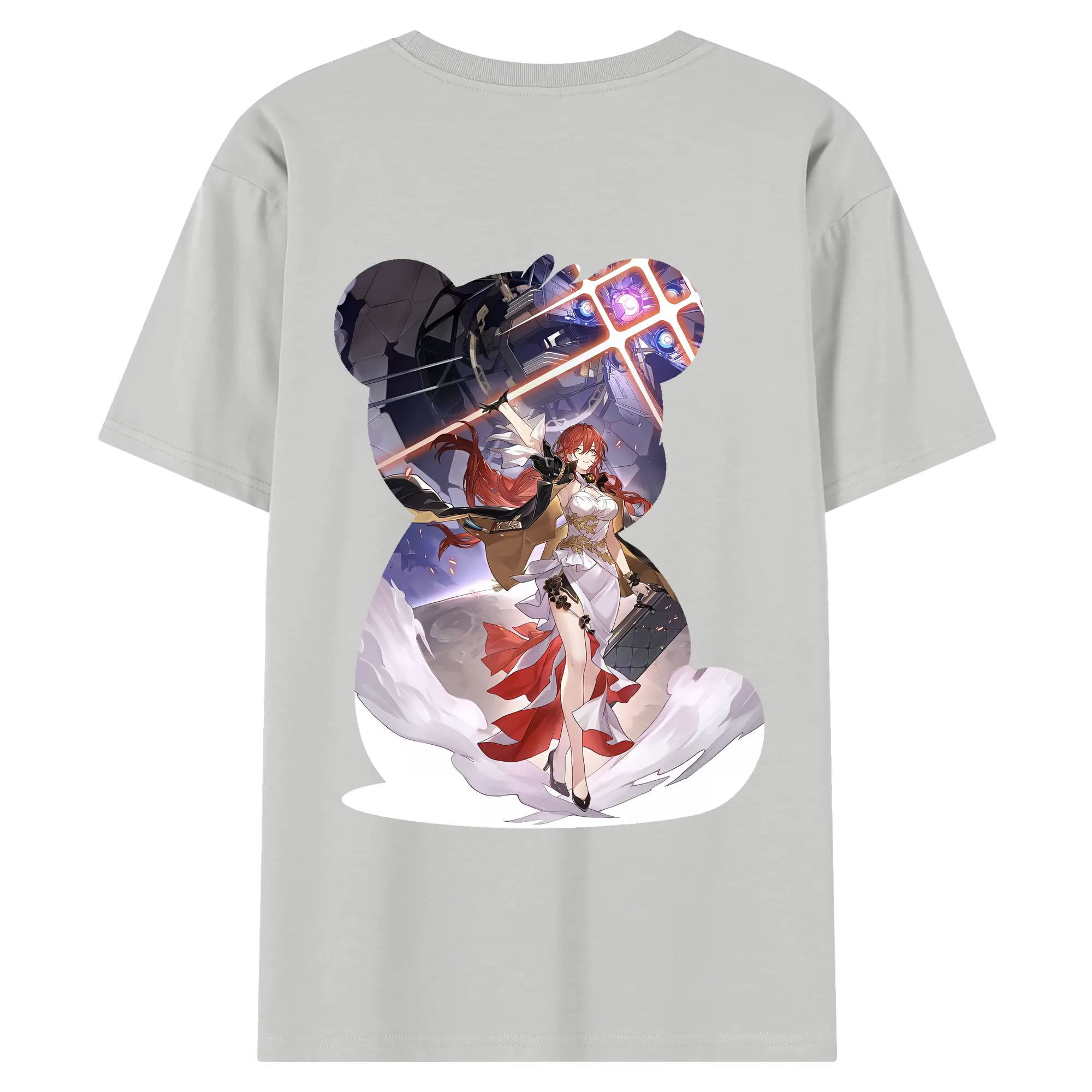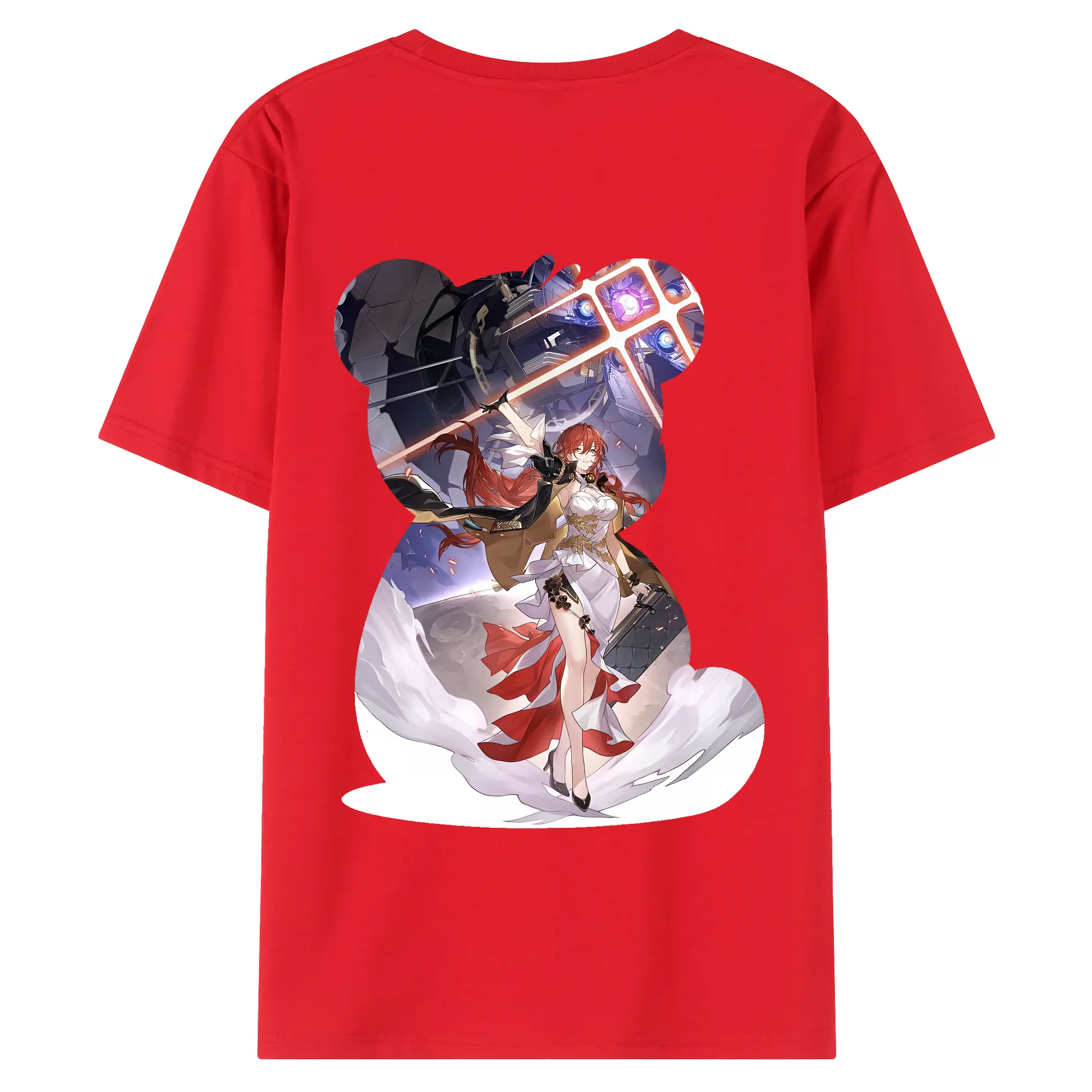 崩壊:スターレイル グッズ 姫子 - 綿100% ヴィンテージ風 半袖Tシャツ ・ 背面プリント ・ 柔らか肌触り ・ 通気性 快適 ・ スポーツ カジュアル 外出用