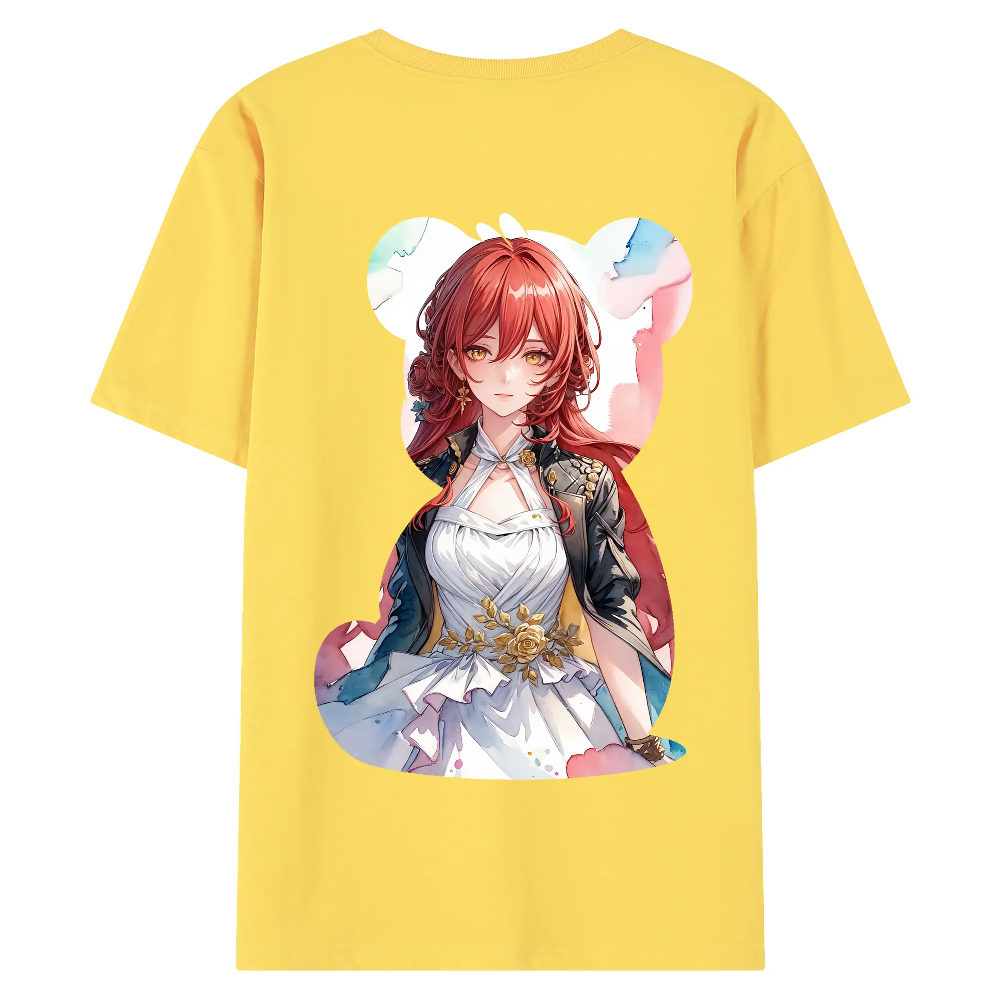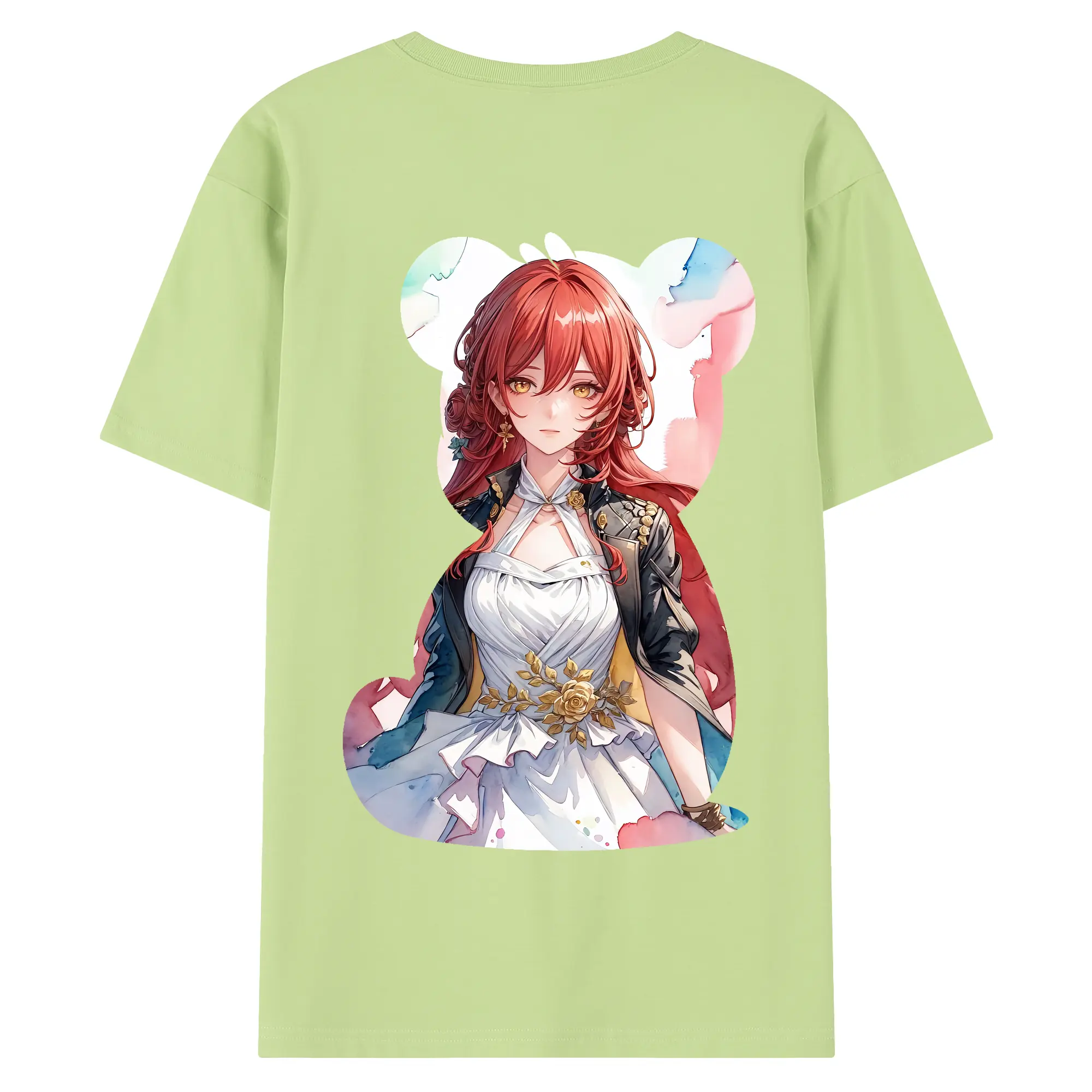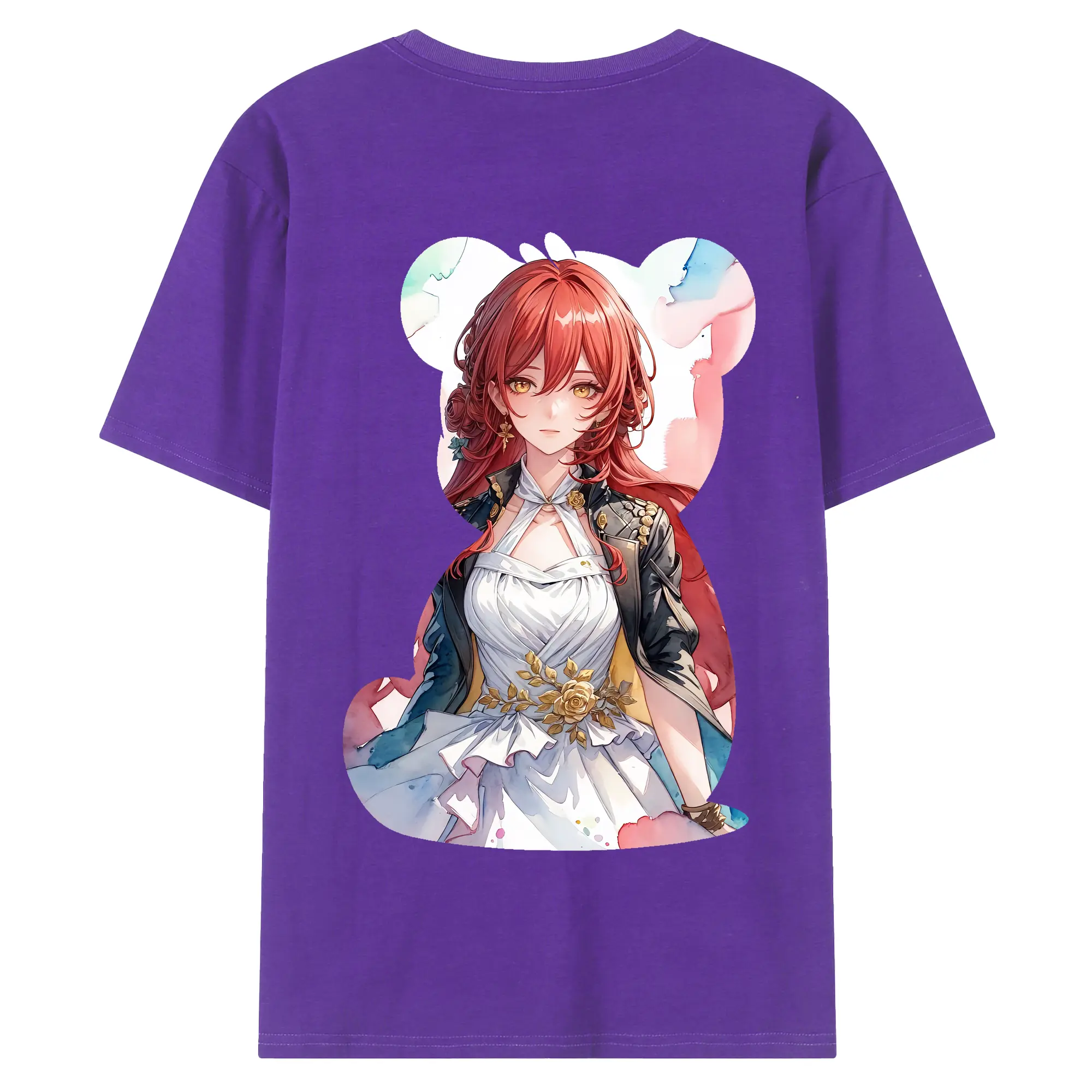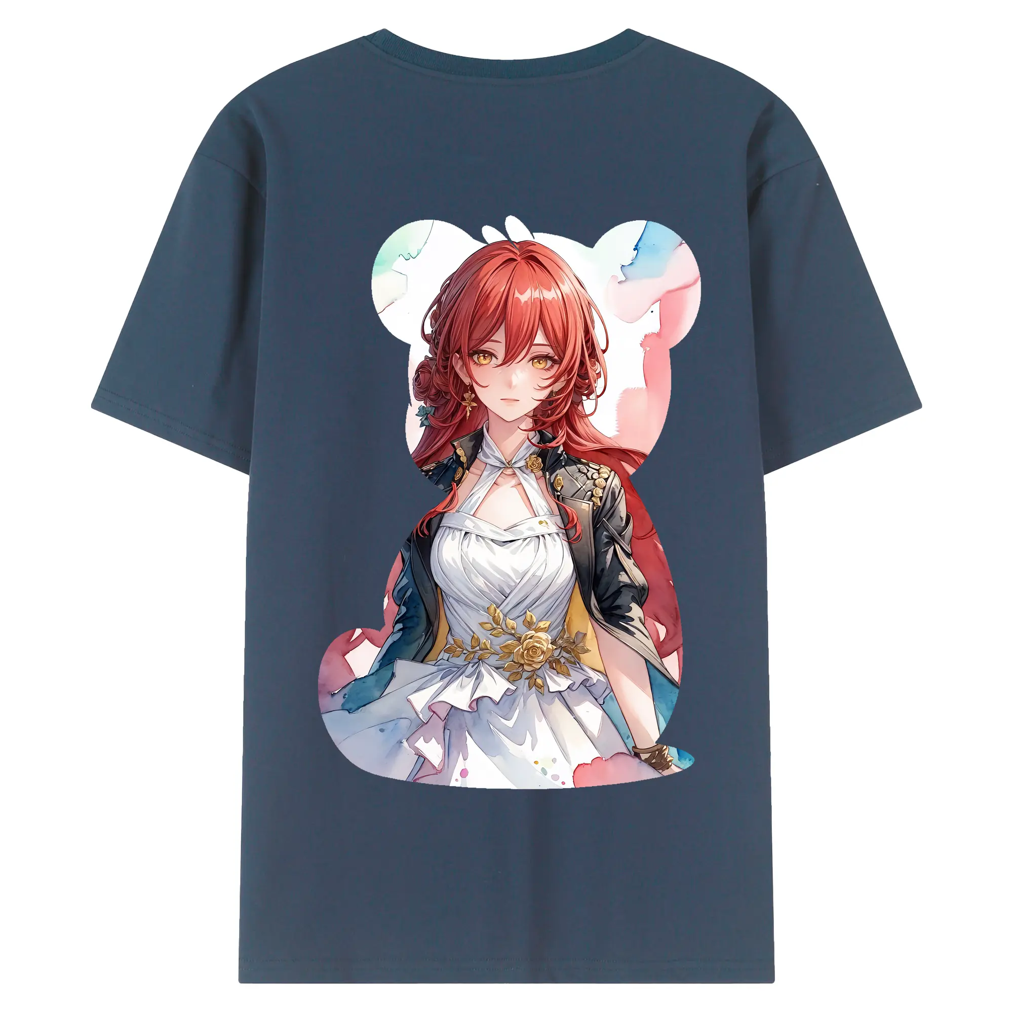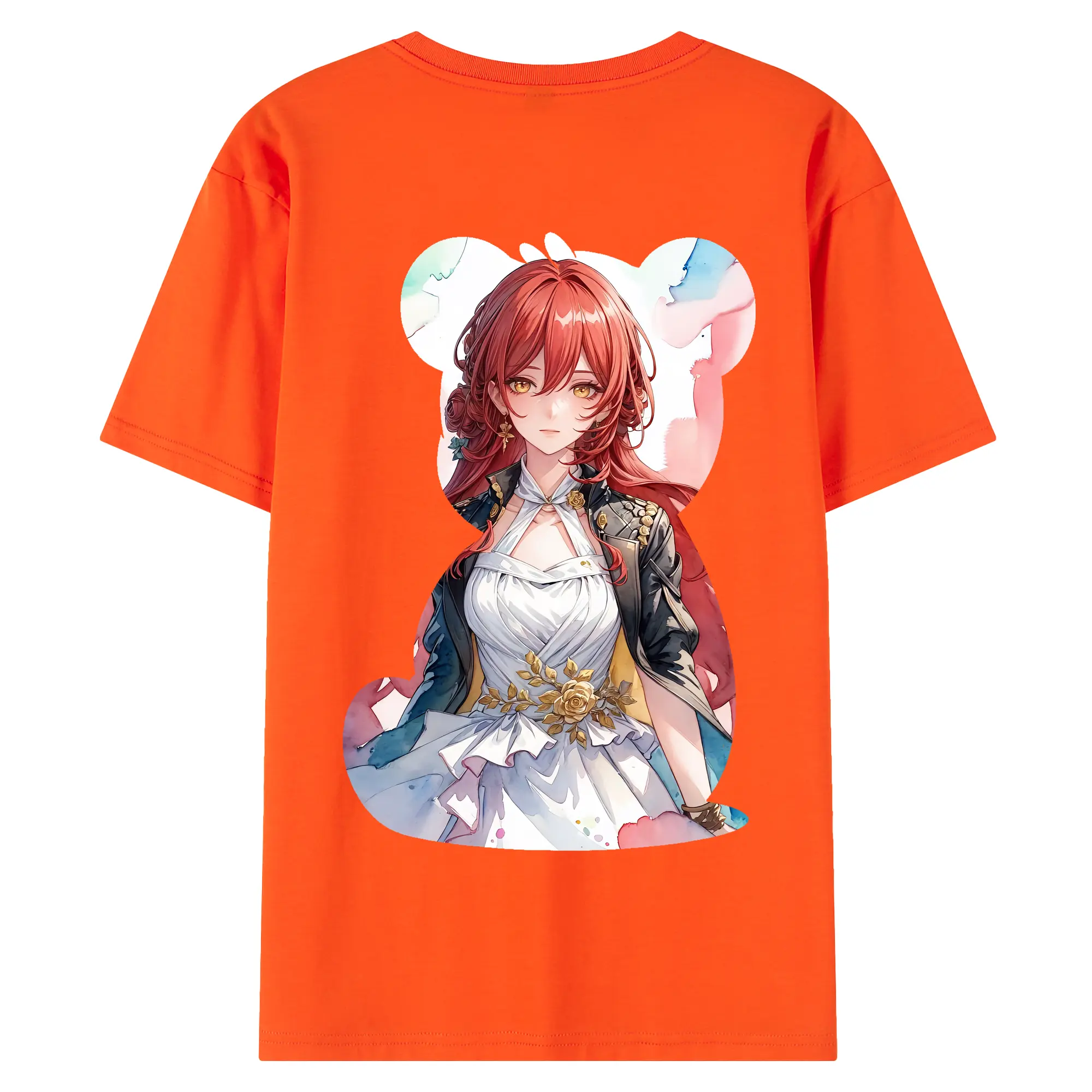 崩壊:スターレイル グッズ 姫子 - 綿100% ヴィンテージ風 半袖Tシャツ ・ 背面プリント ・ 柔らか肌触り ・ 通気性 快適 ・ スポーツ カジュアル 外出用