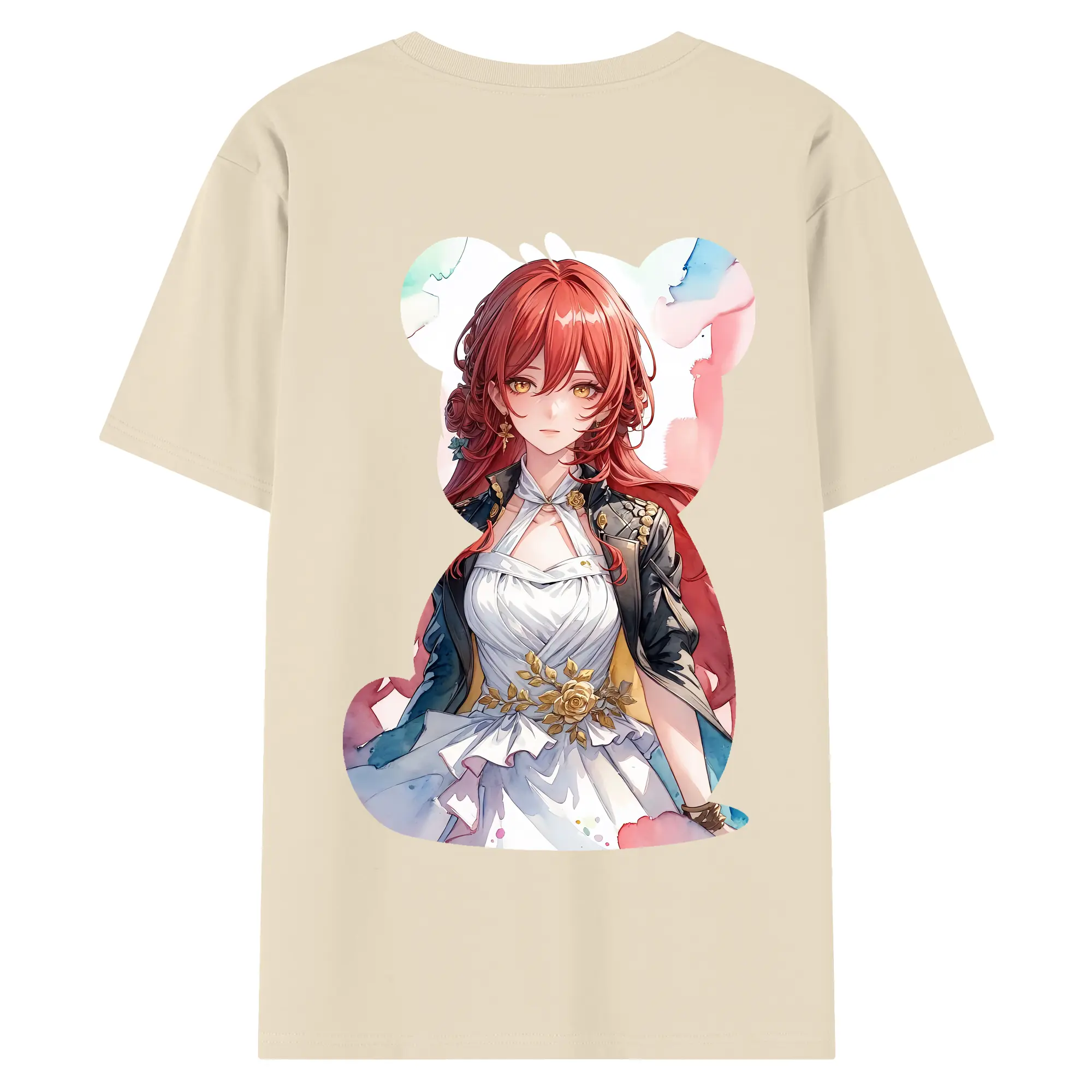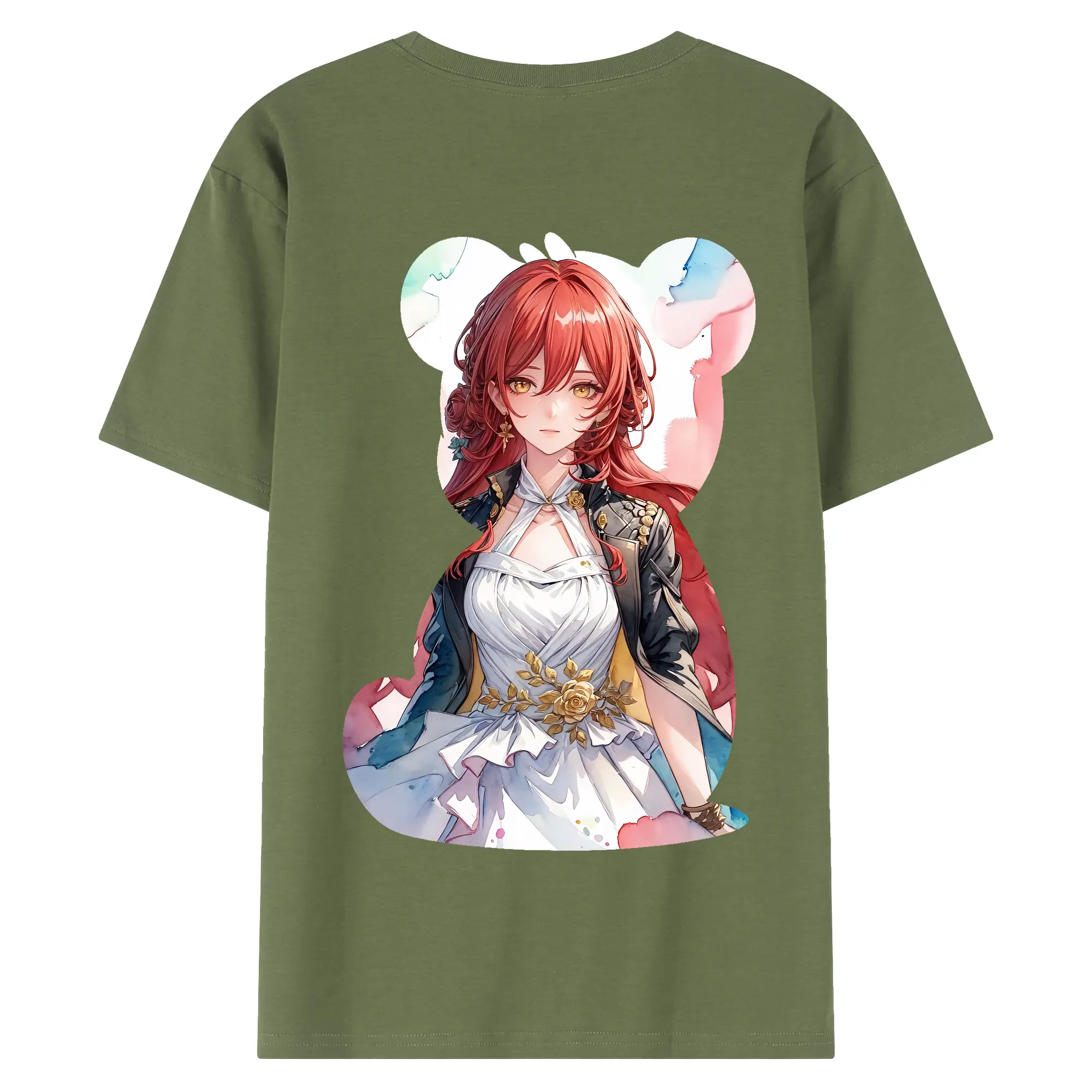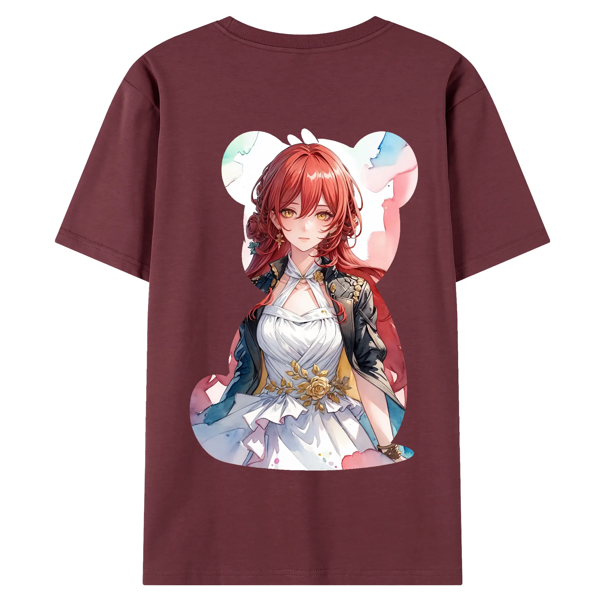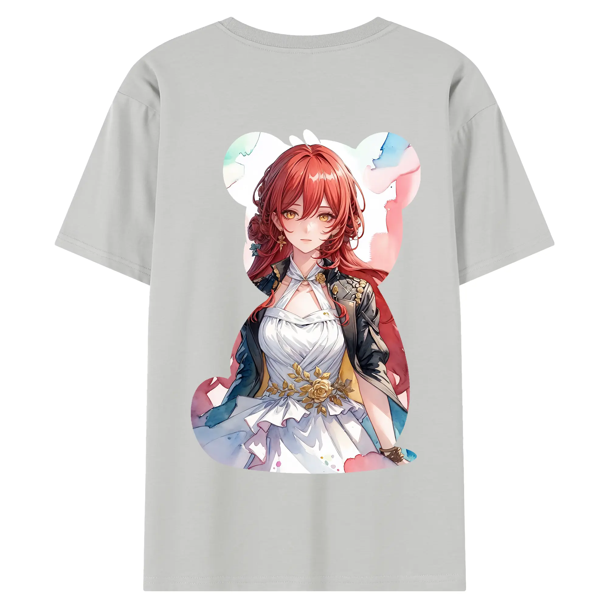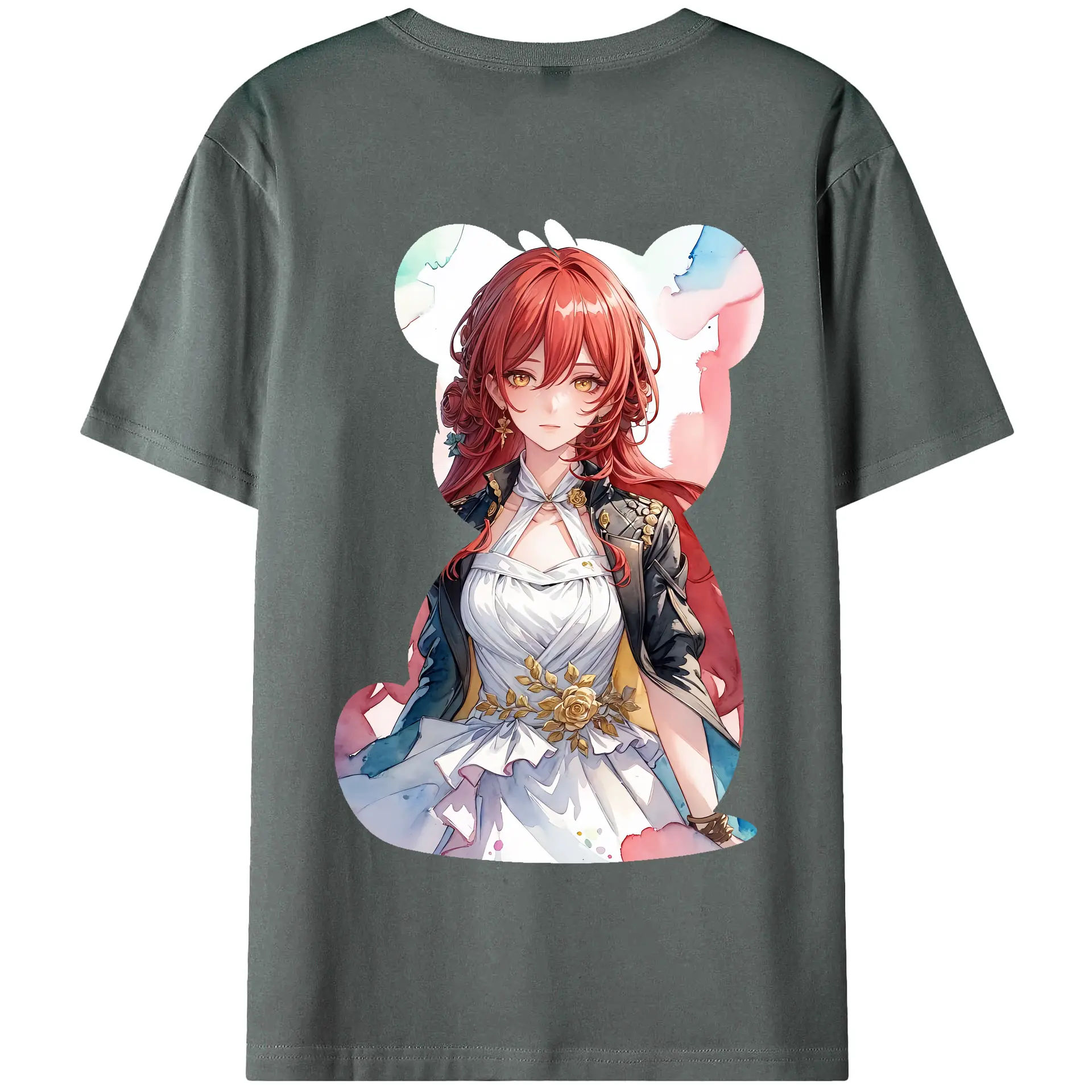 崩壊:スターレイル グッズ 姫子 - 綿100% ヴィンテージ風 半袖Tシャツ ・ 背面プリント ・ 柔らか肌触り ・ 通気性 快適 ・ スポーツ カジュアル 外出用