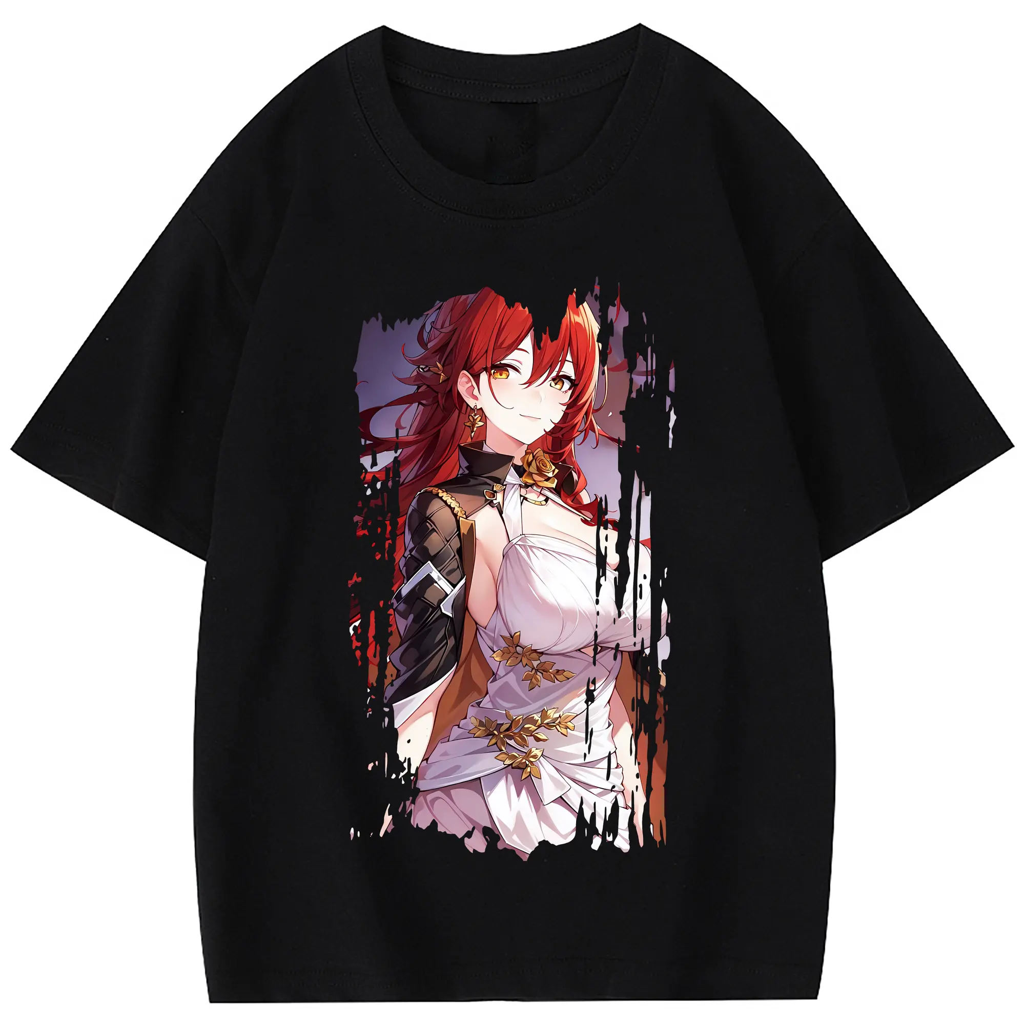 崩壊:スターレイル グッズ 姫子 - 綿100% ヴィンテージ風 半袖Tシャツ ・ フロントプリント ・ 柔らか肌触り ・ 通気性 快適 ・ スポーツ カジュアル 外出用