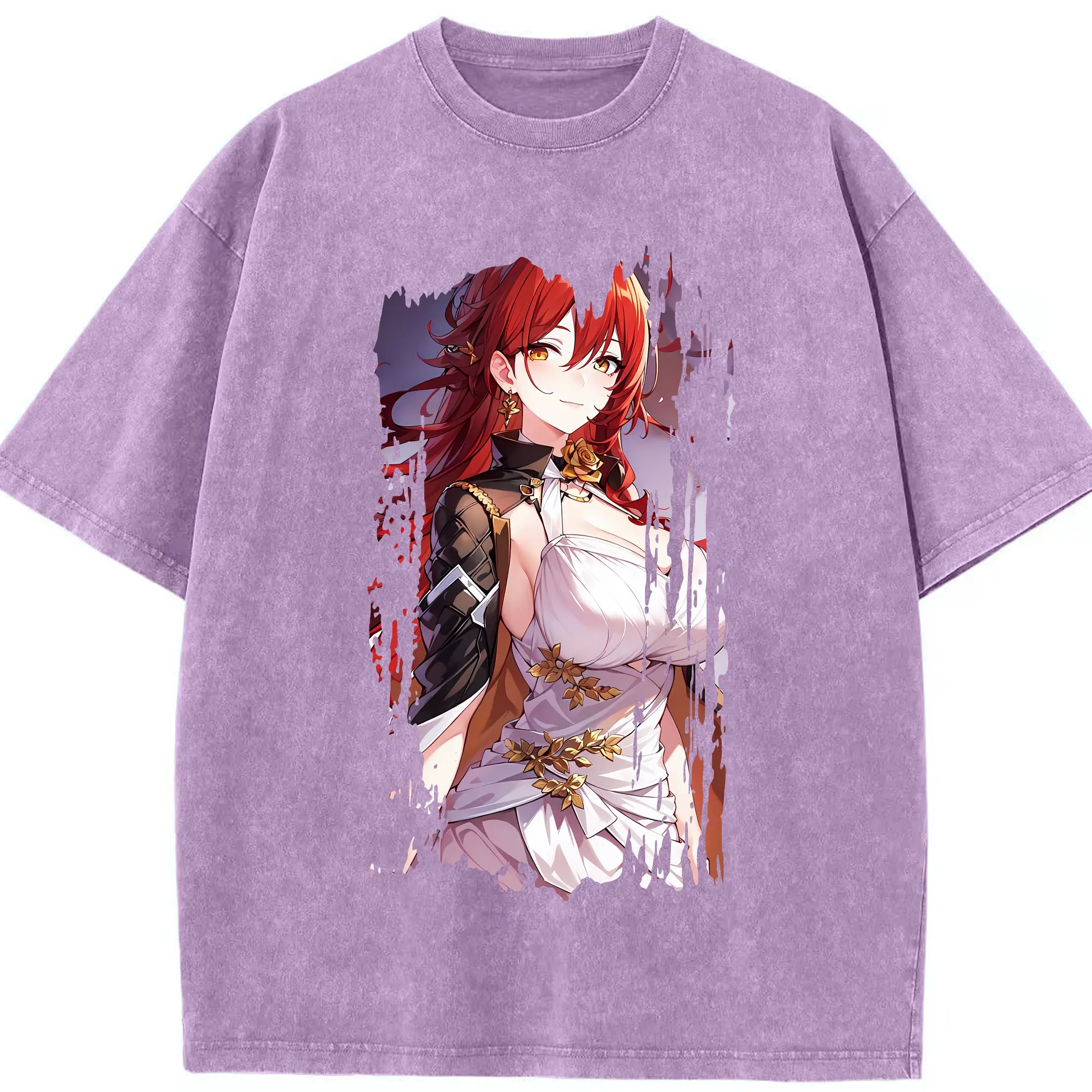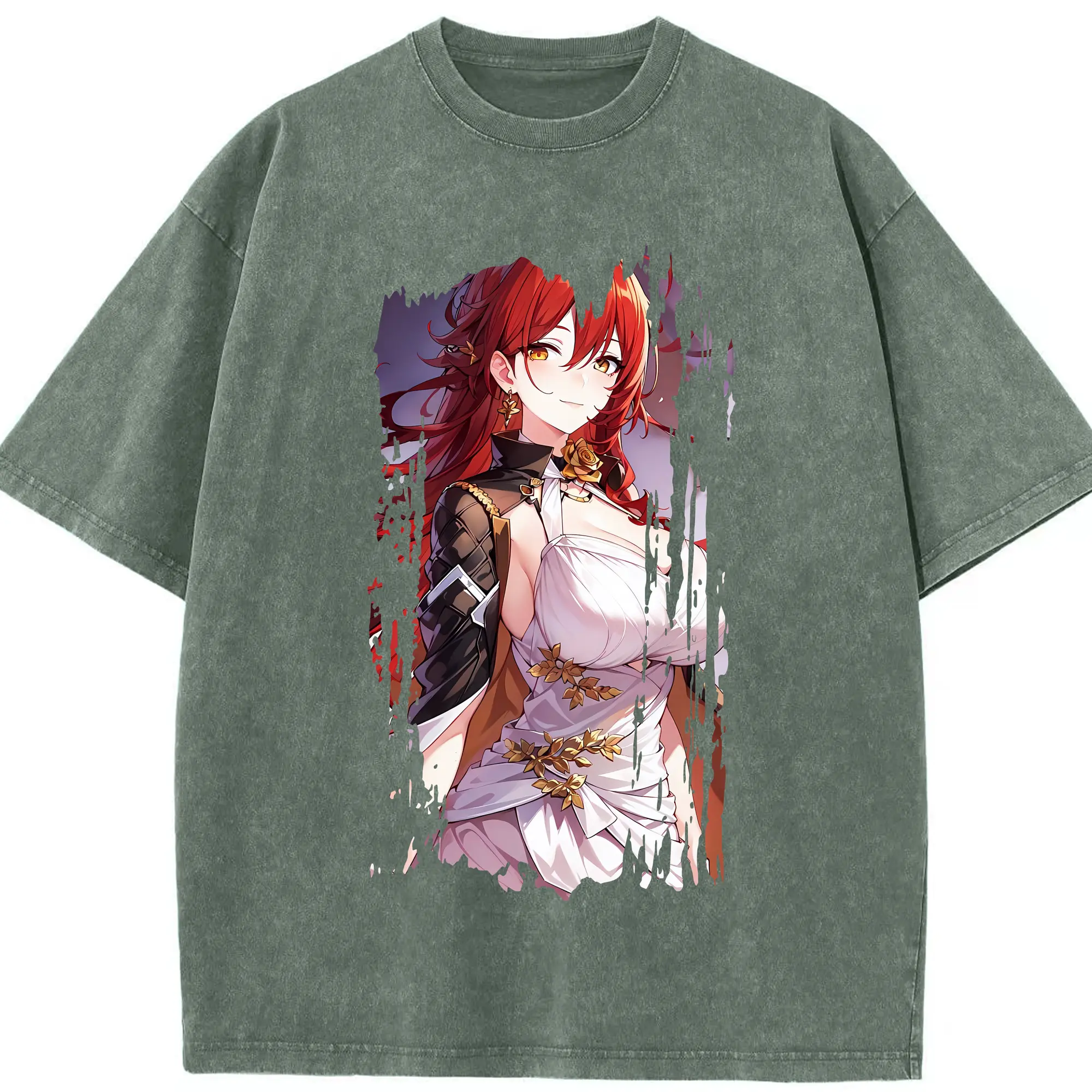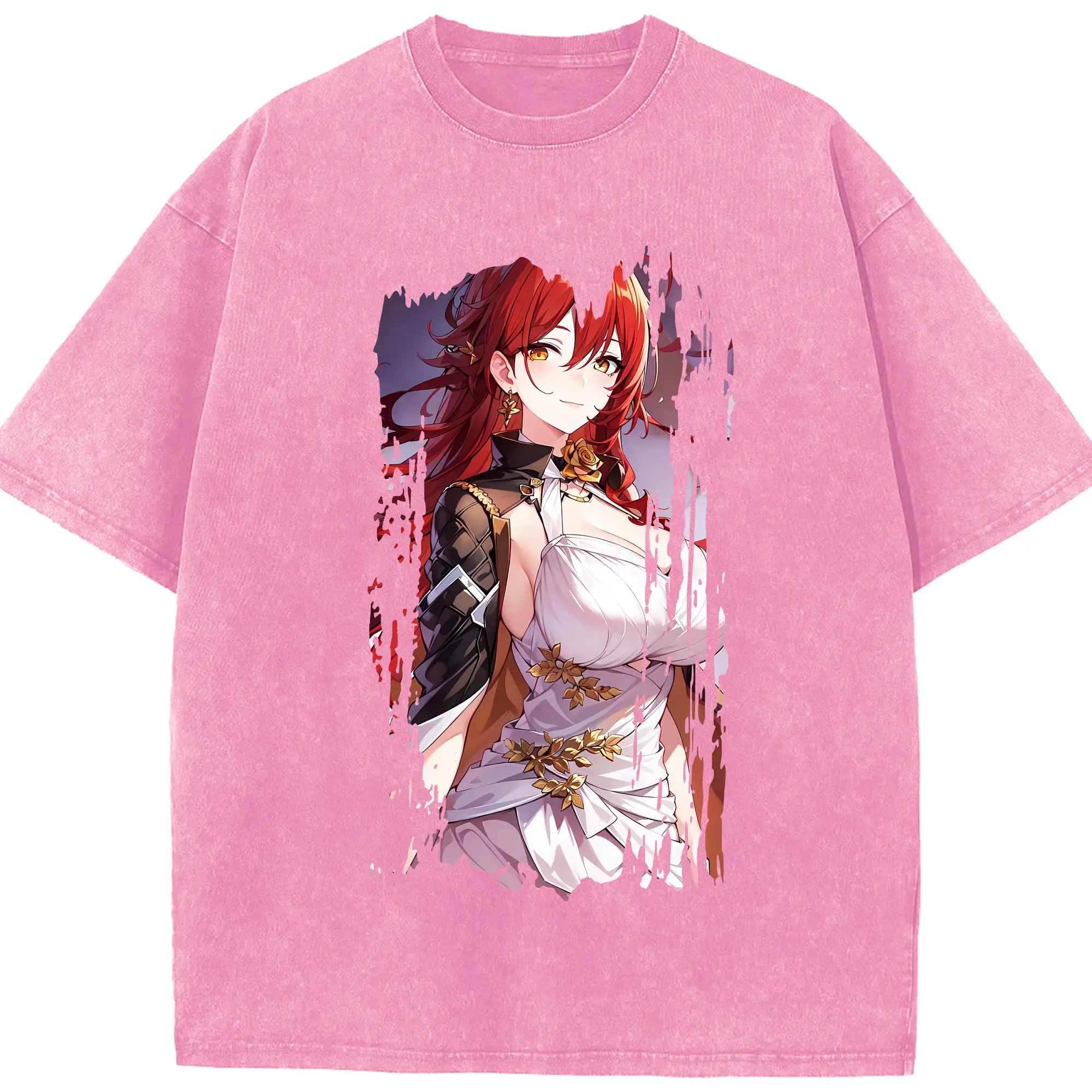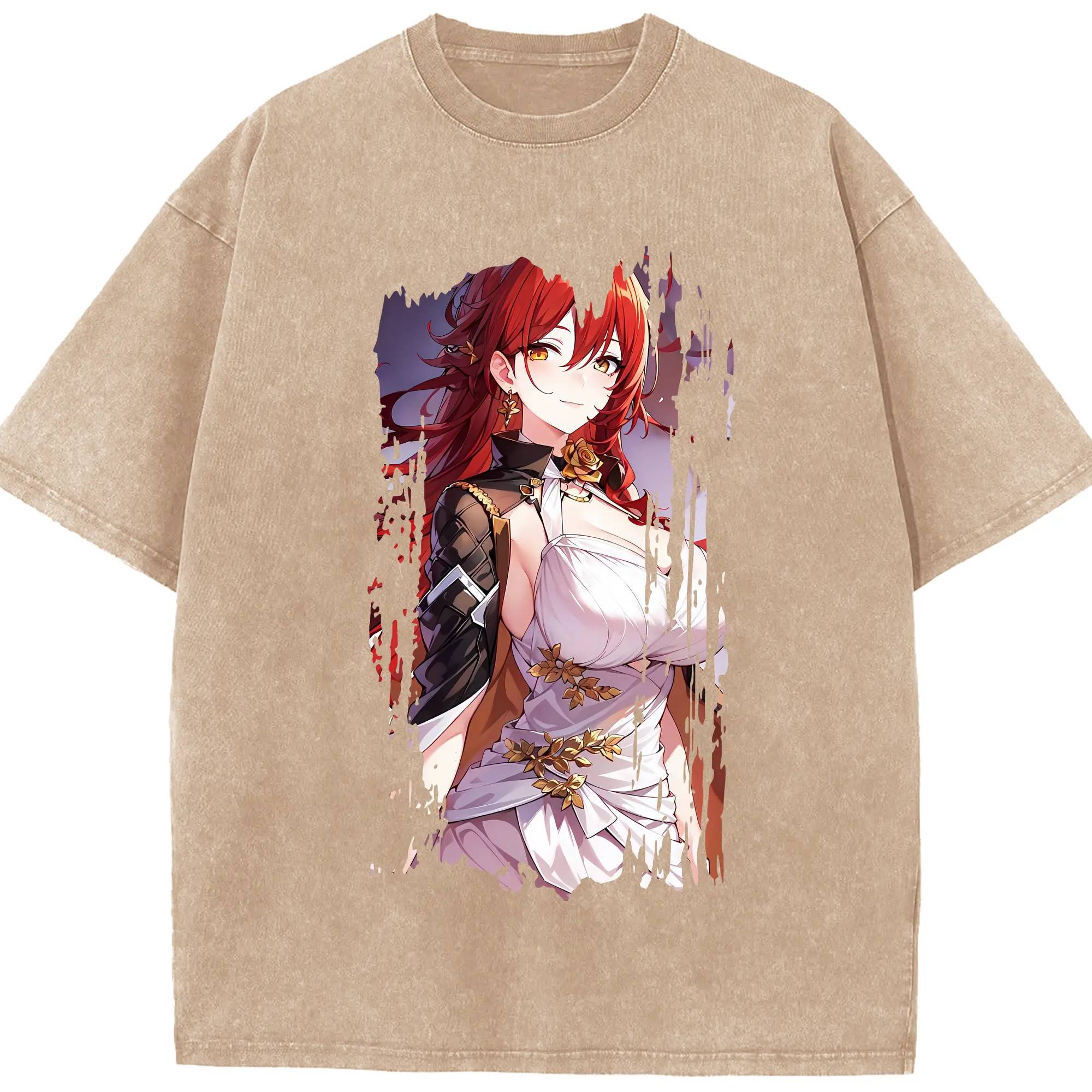 崩壊:スターレイル グッズ 姫子 - 綿100% ヴィンテージ風 半袖Tシャツ ・ 背面プリント ・ 柔らか肌触り ・ 通気性 快適 ・ スポーツ カジュアル 外出用