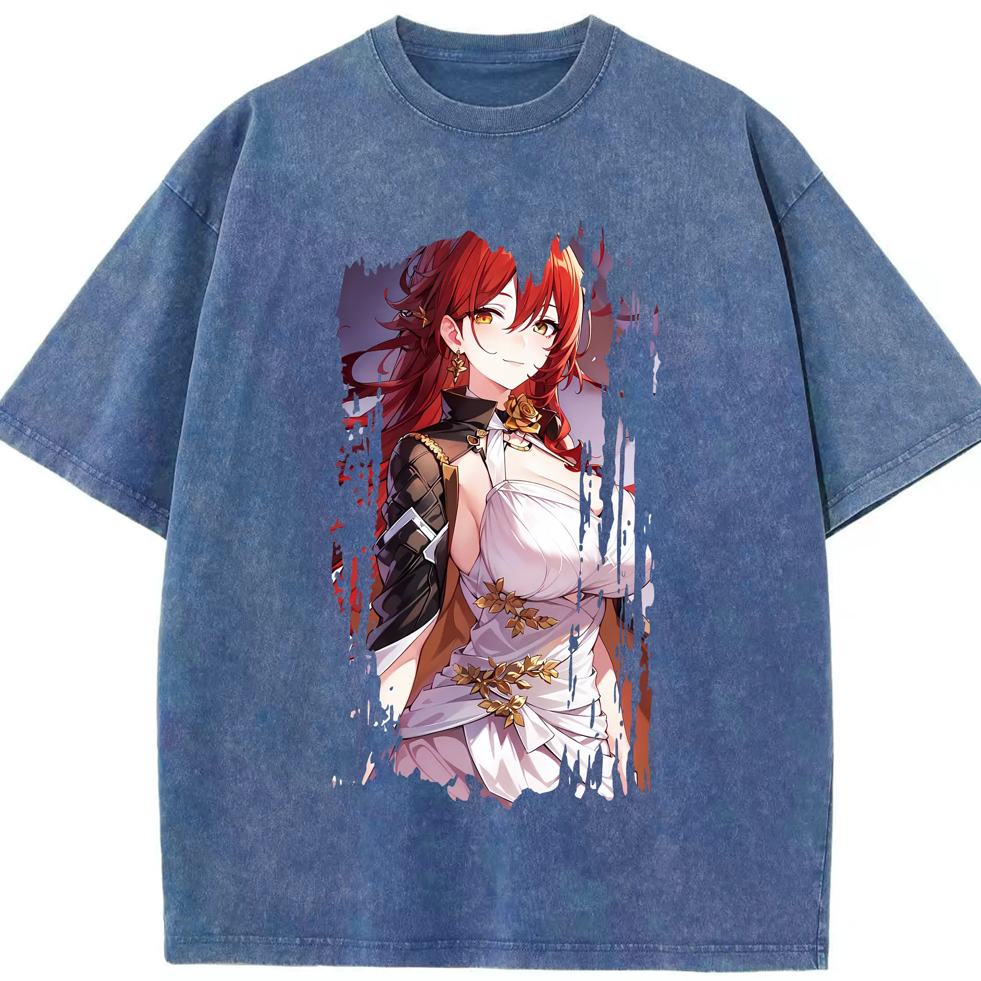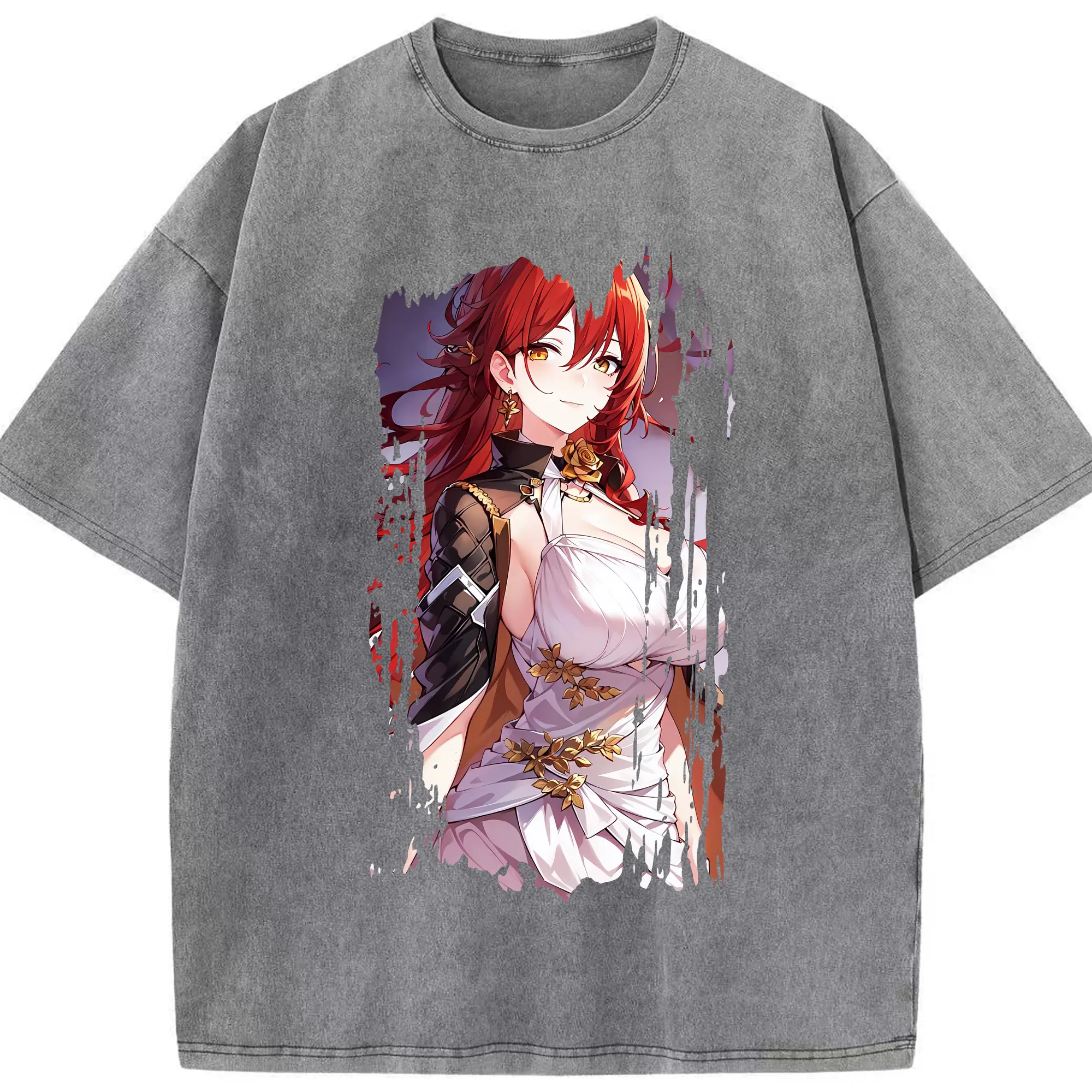 崩壊:スターレイル グッズ 白露 - 綿100% ヴィンテージ風 半袖Tシャツ ・ フロントプリント ・ 柔らか肌触り ・ 通気性 快適 ・ スポーツ カジュアル 外出用