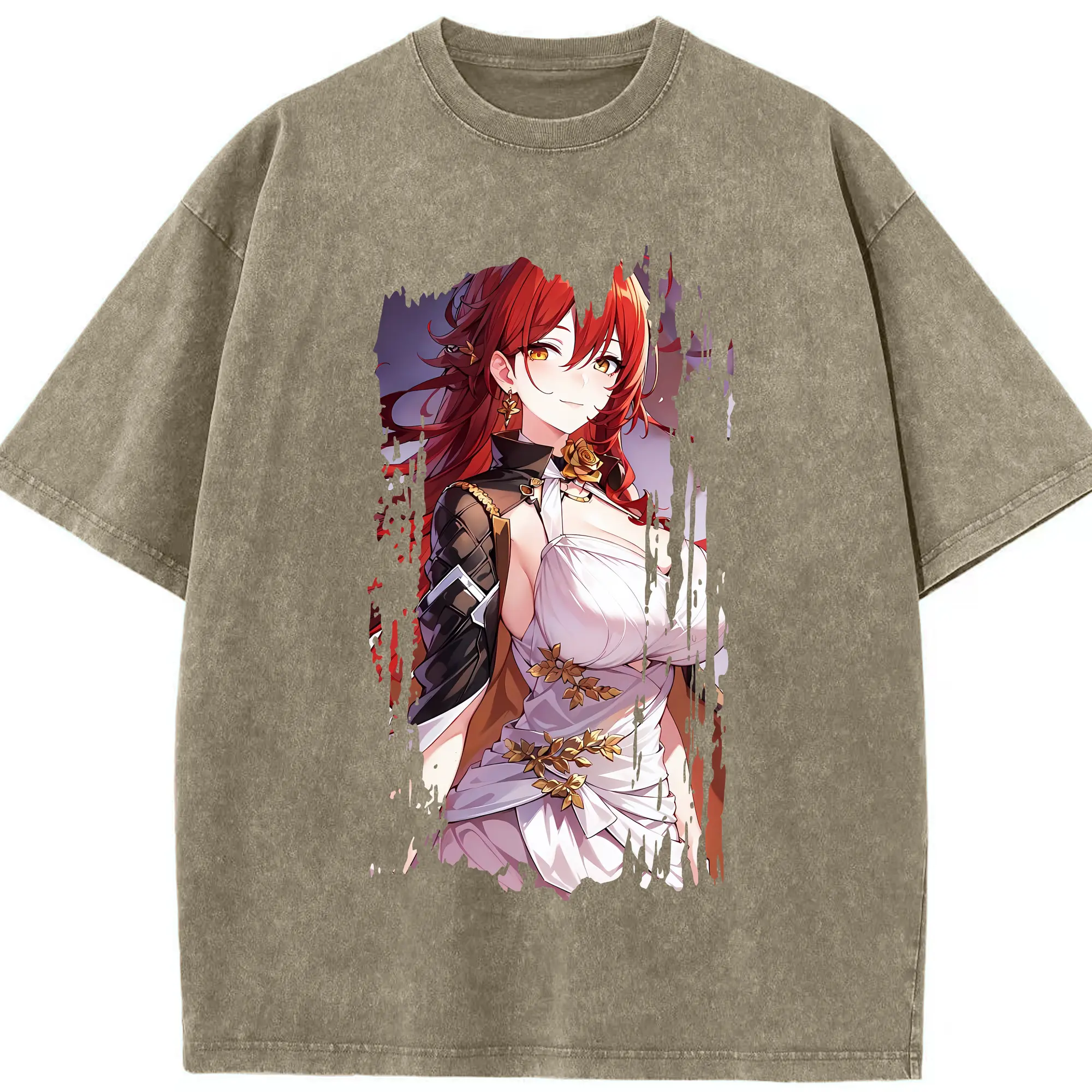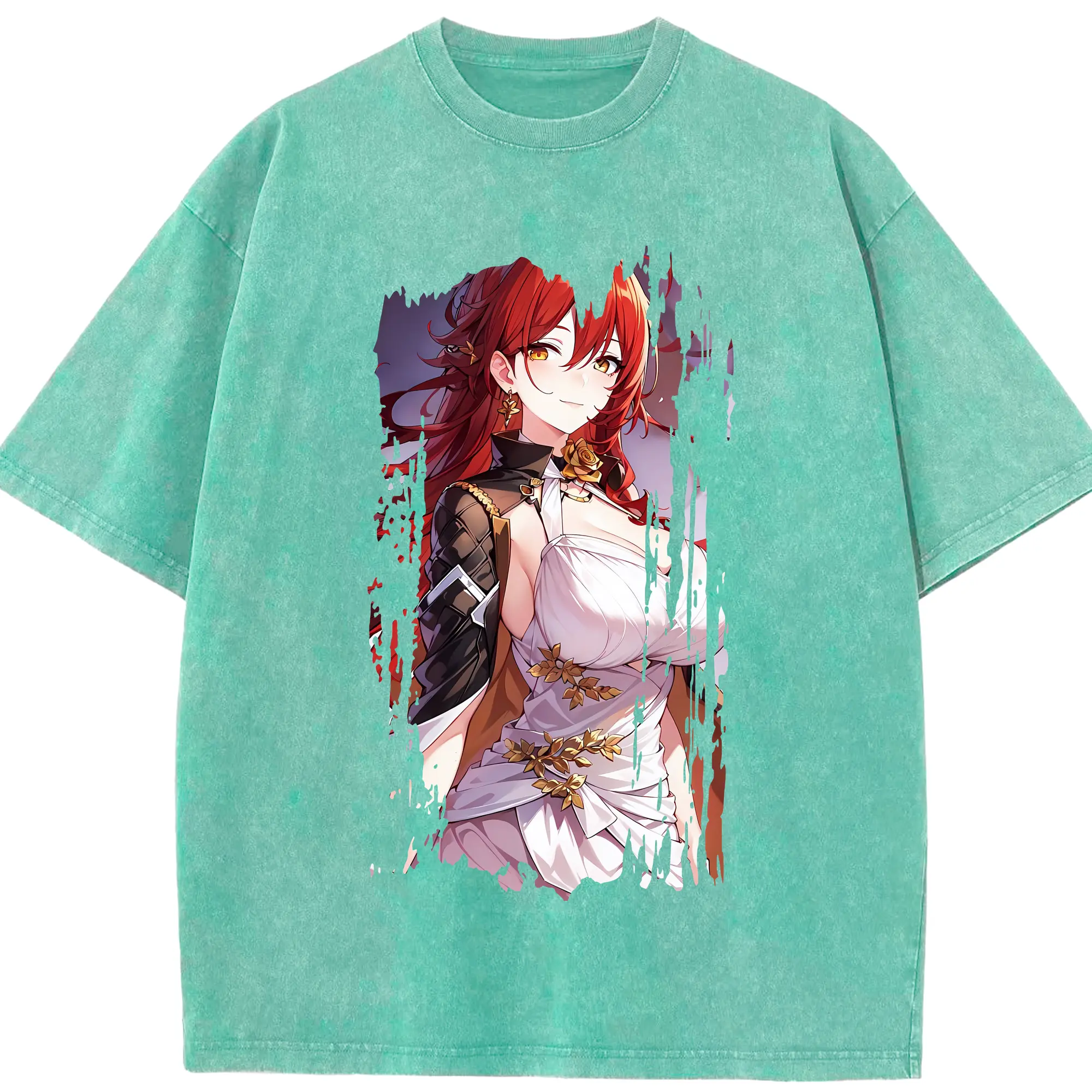 鳴潮 グッズ アンコ - 綿100% ヴィンテージ風 半袖Tシャツ ・ フロントプリント ・ 柔らか肌触り ・ 通気性 快適 ・ スポーツ カジュアル 外出用