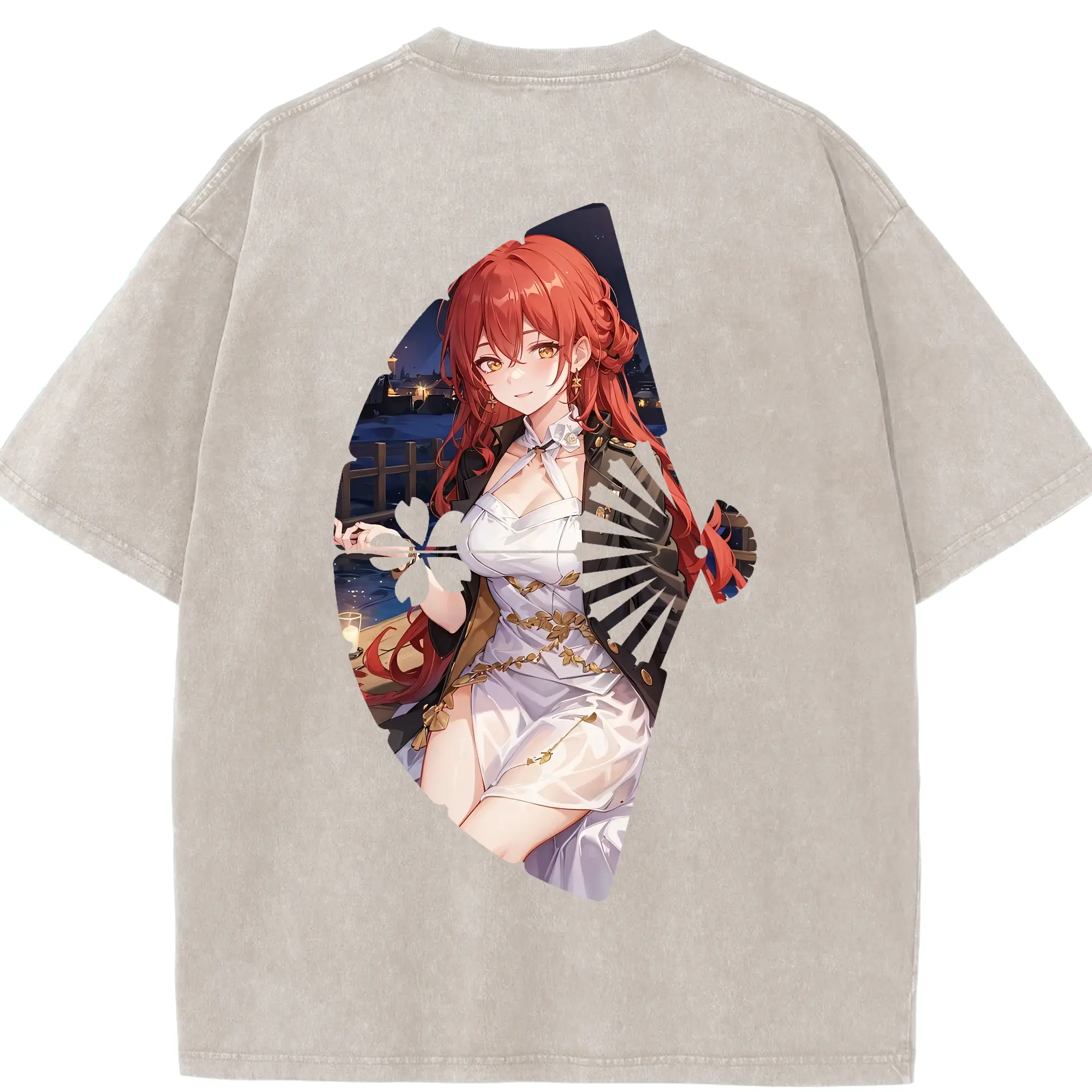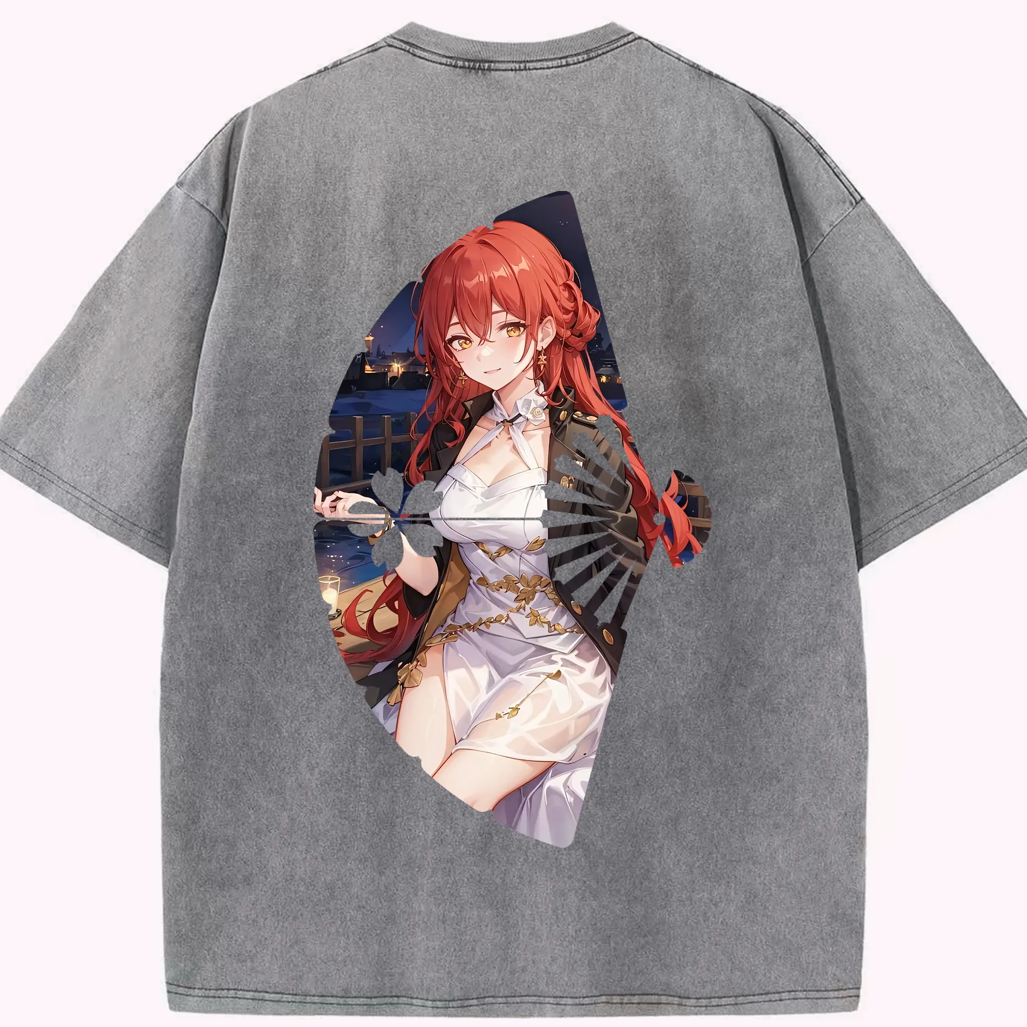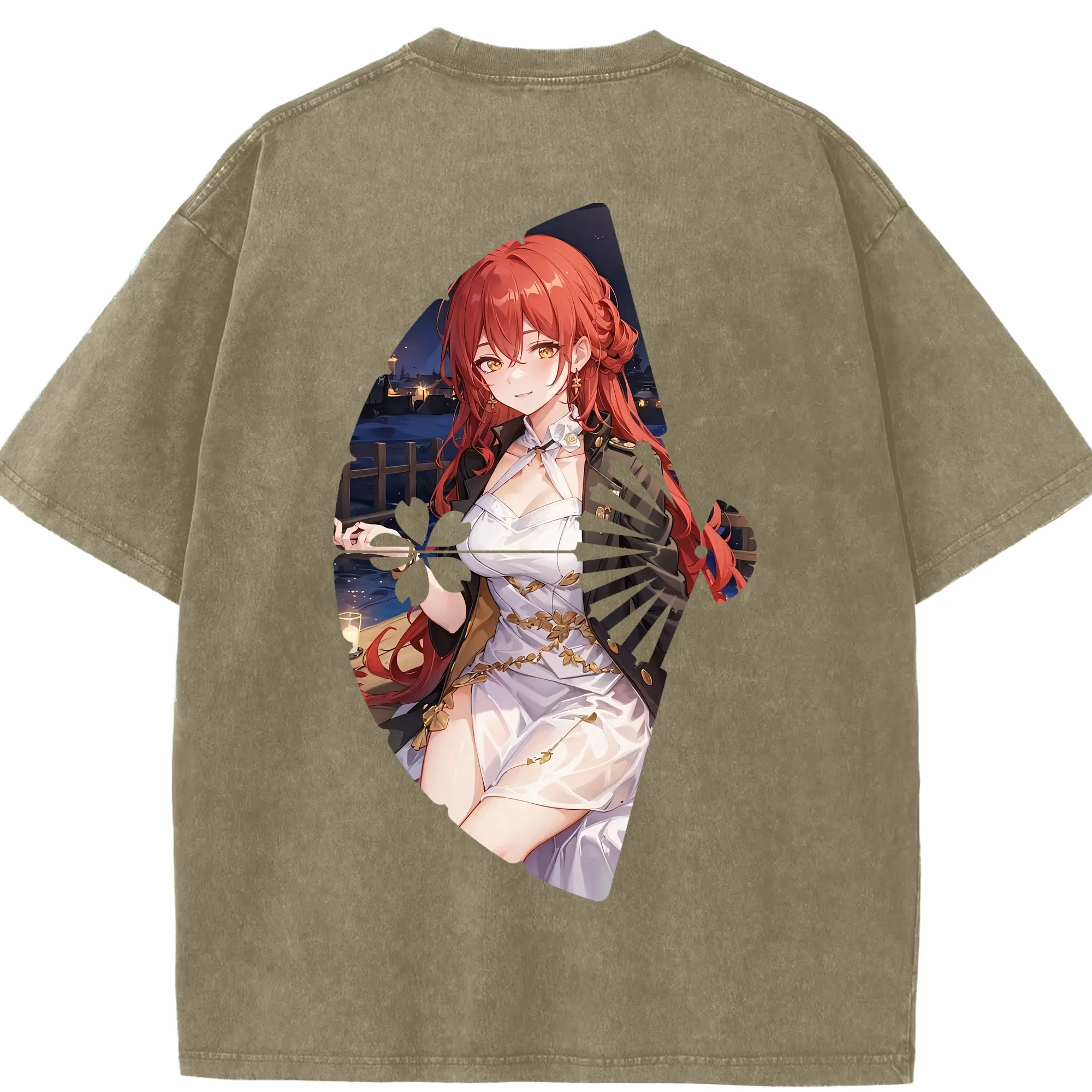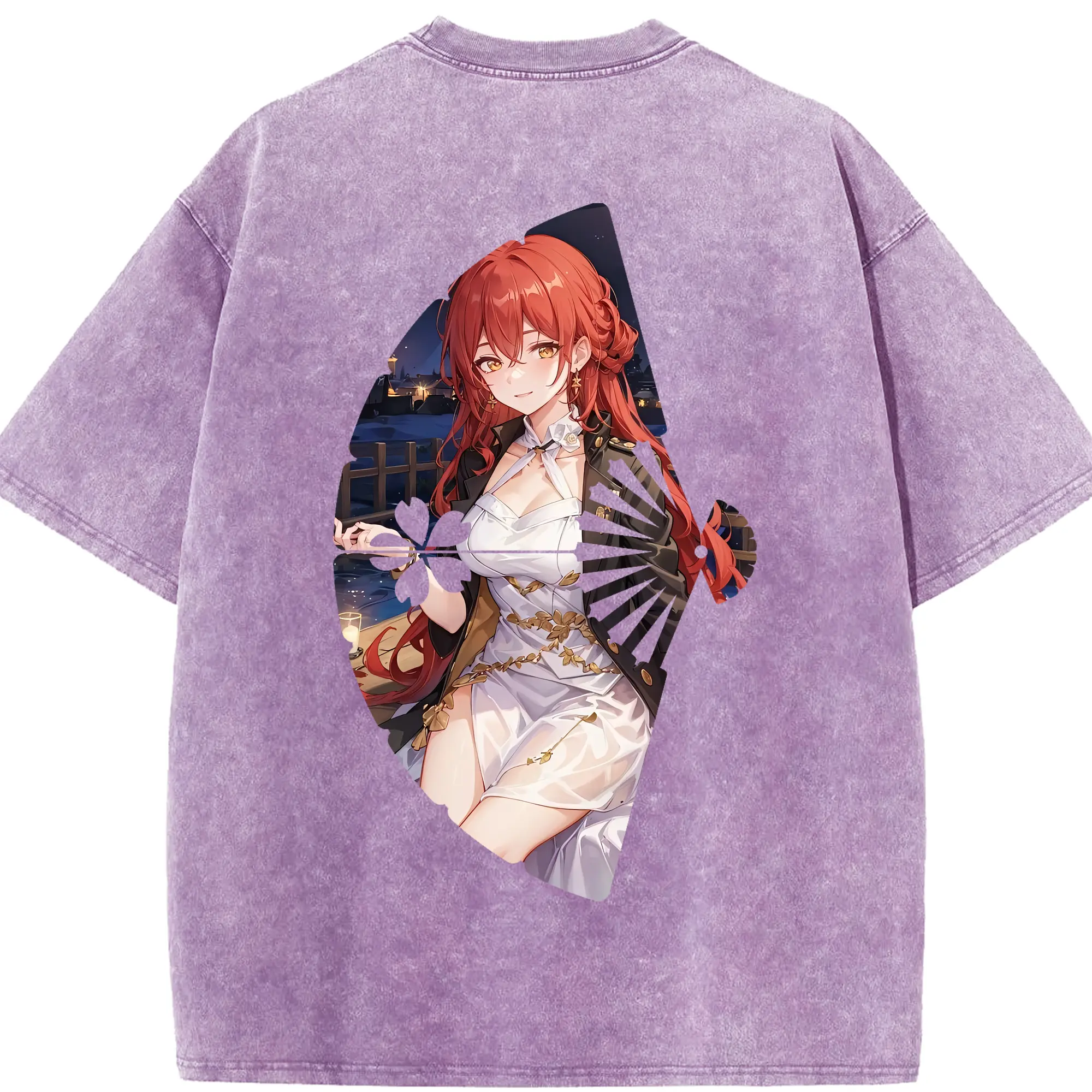 崩壊:スターレイル グッズ 姫子 - 綿100% ヴィンテージ風 半袖Tシャツ ・ フロントプリント ・ 柔らか肌触り ・ 通気性 快適 ・ スポーツ カジュアル 外出用