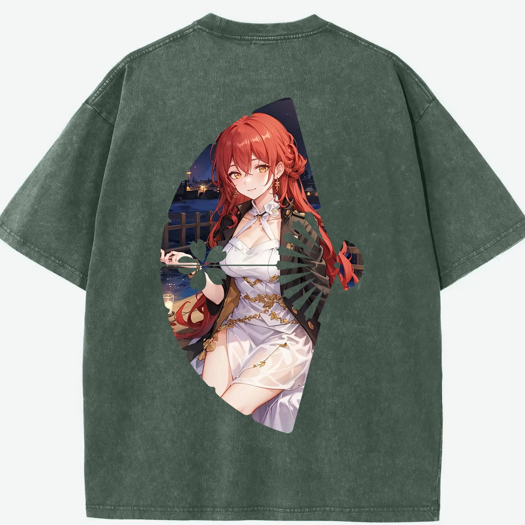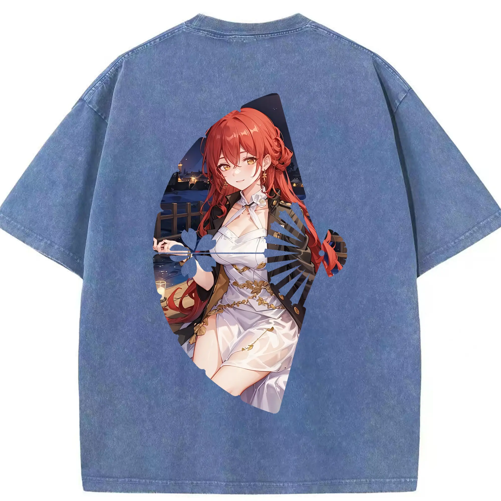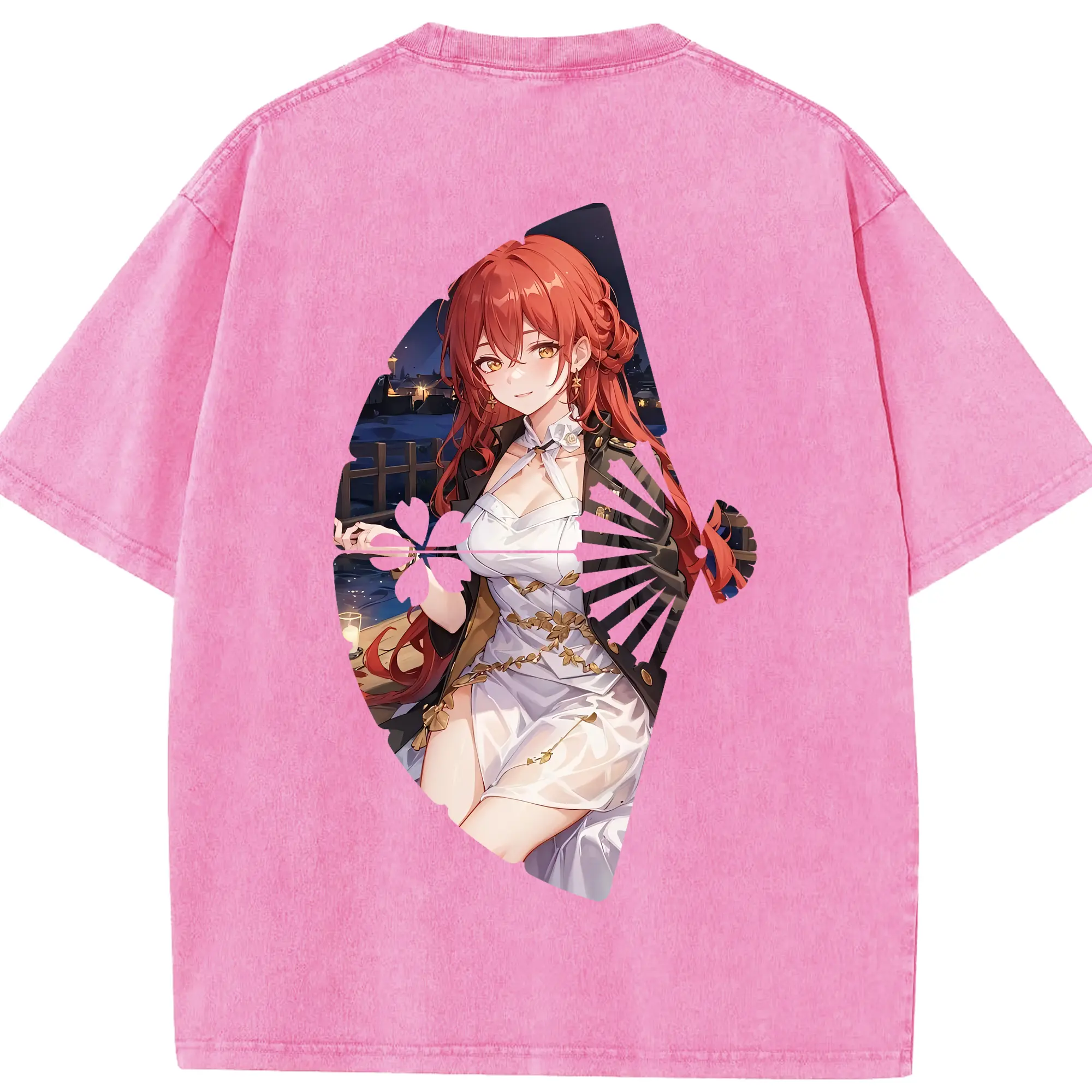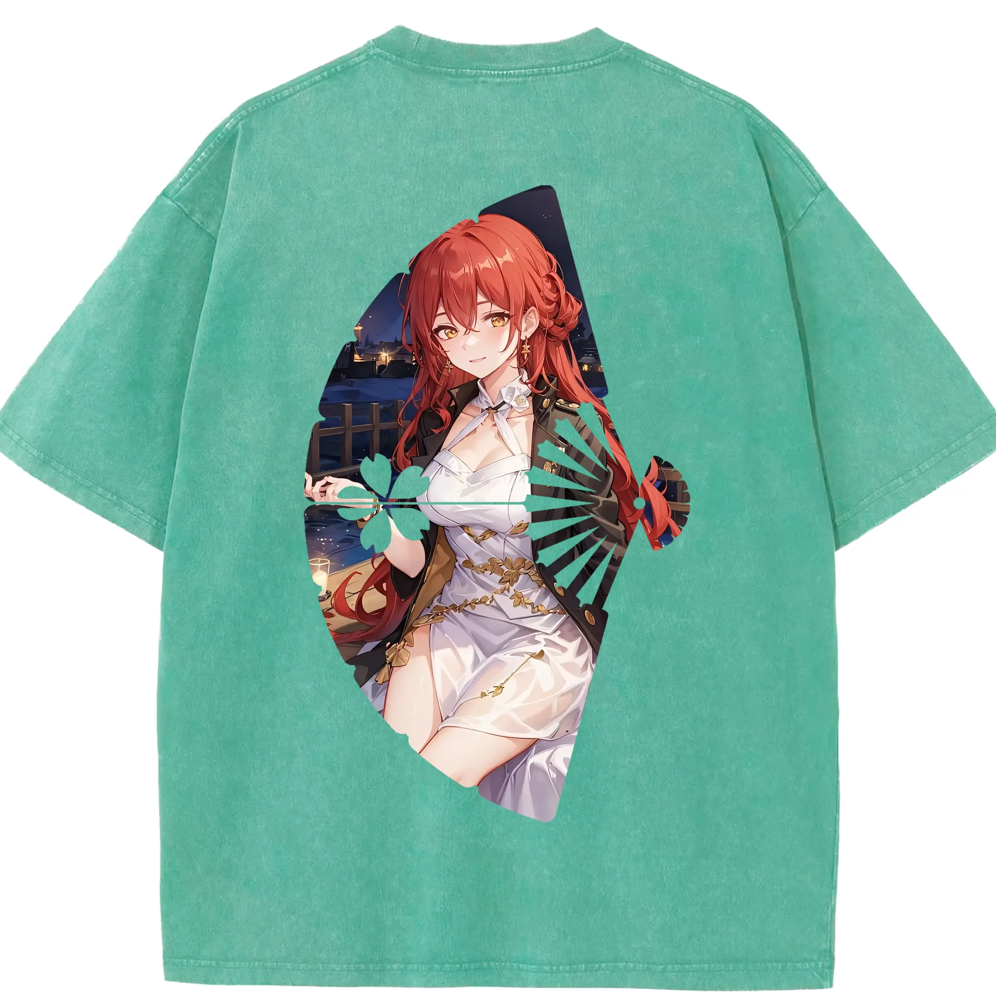 崩壊:スターレイル グッズ 姫子 - 綿100% ヴィンテージ風 半袖Tシャツ ・ フロントプリント ・ 柔らか肌触り ・ 通気性 快適 ・ スポーツ カジュアル 外出用