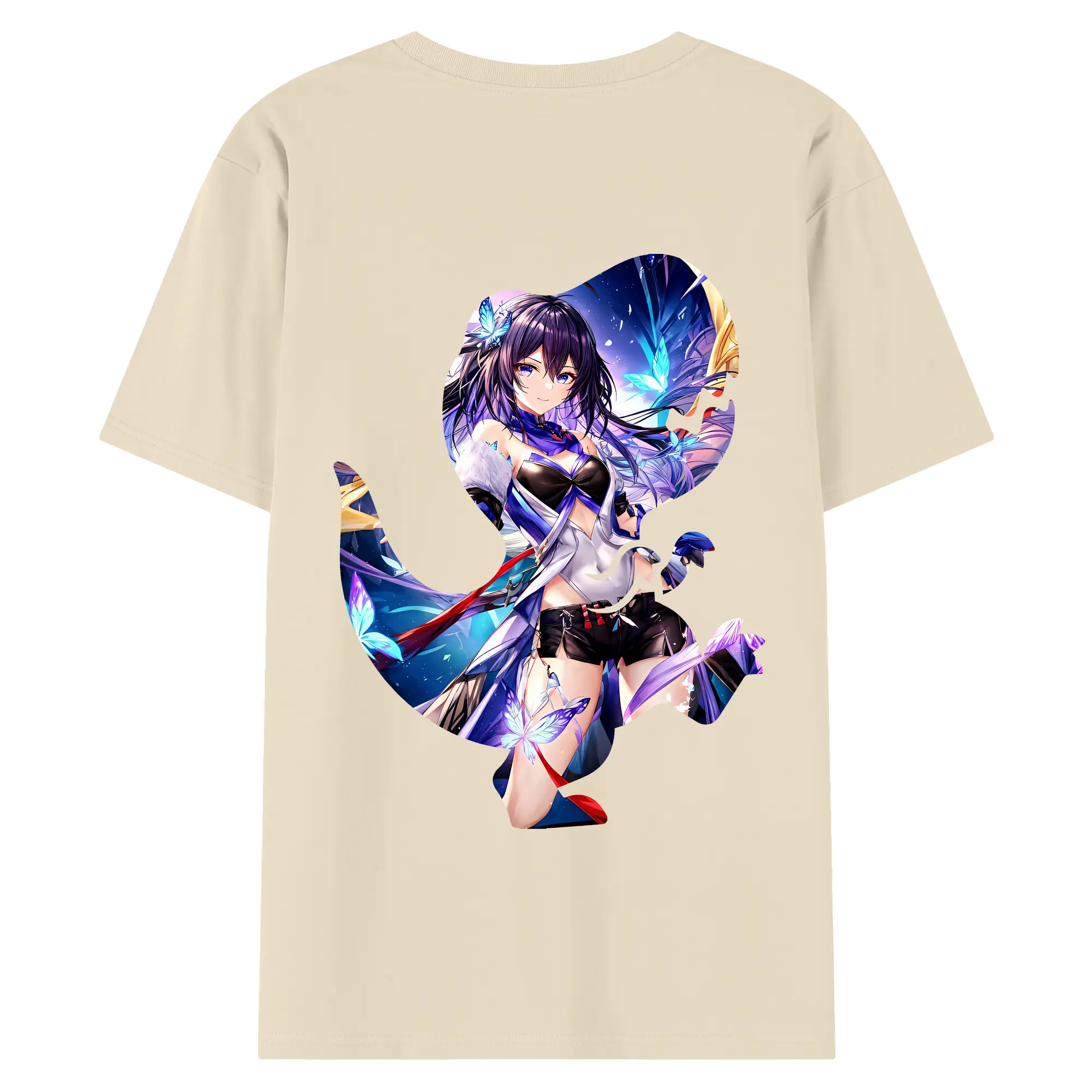 崩壊:スターレイル グッズ ゼーレ - 綿100% ヴィンテージ風 半袖Tシャツ ・ 背面プリント ・ 柔らか肌触り ・ 通気性 快適 ・ スポーツ カジュアル 外出用