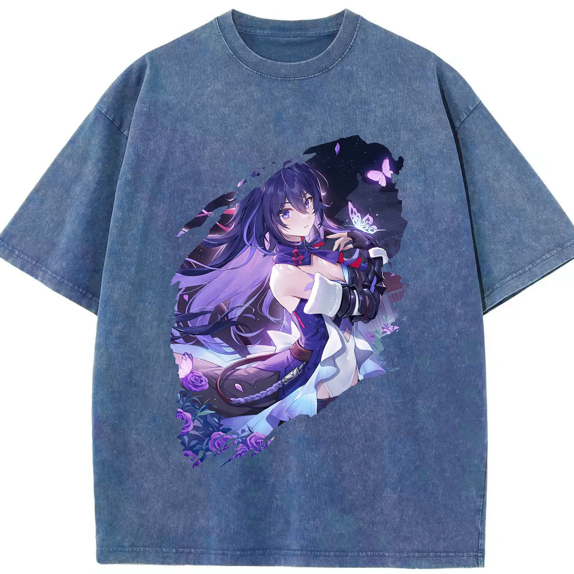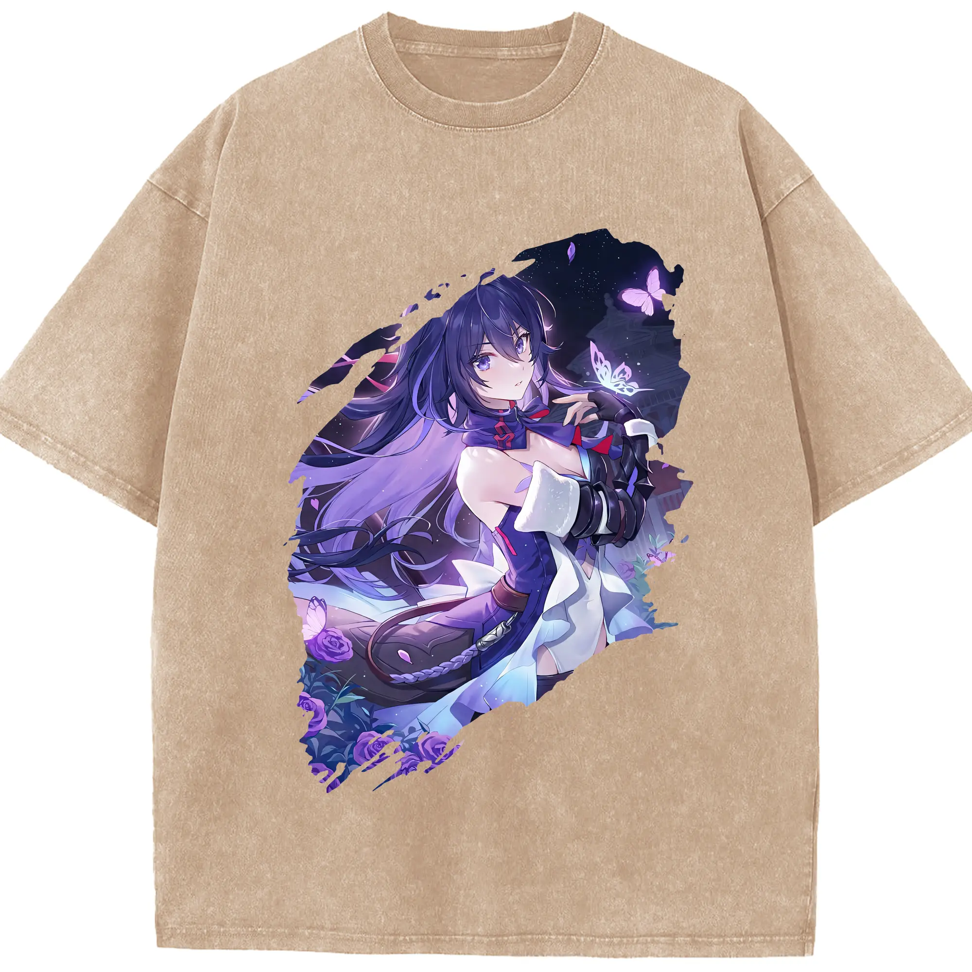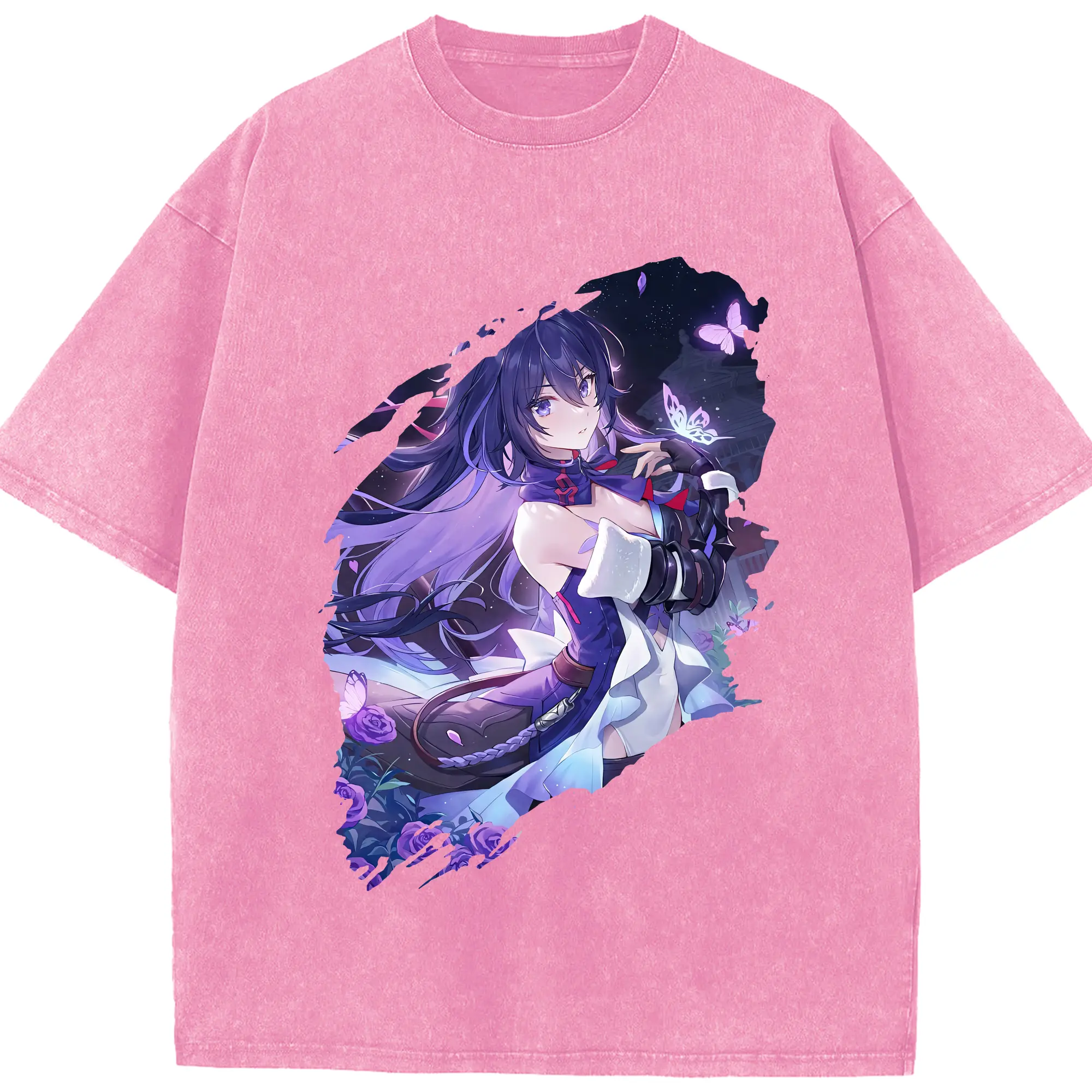 原 神 グッズ 雷電将軍 - 綿100% ヴィンテージ風 半袖Tシャツ ・ フロントプリント ・ 柔らか肌触り ・ 通気性 快適 ・ スポーツ カジュアル 外出用