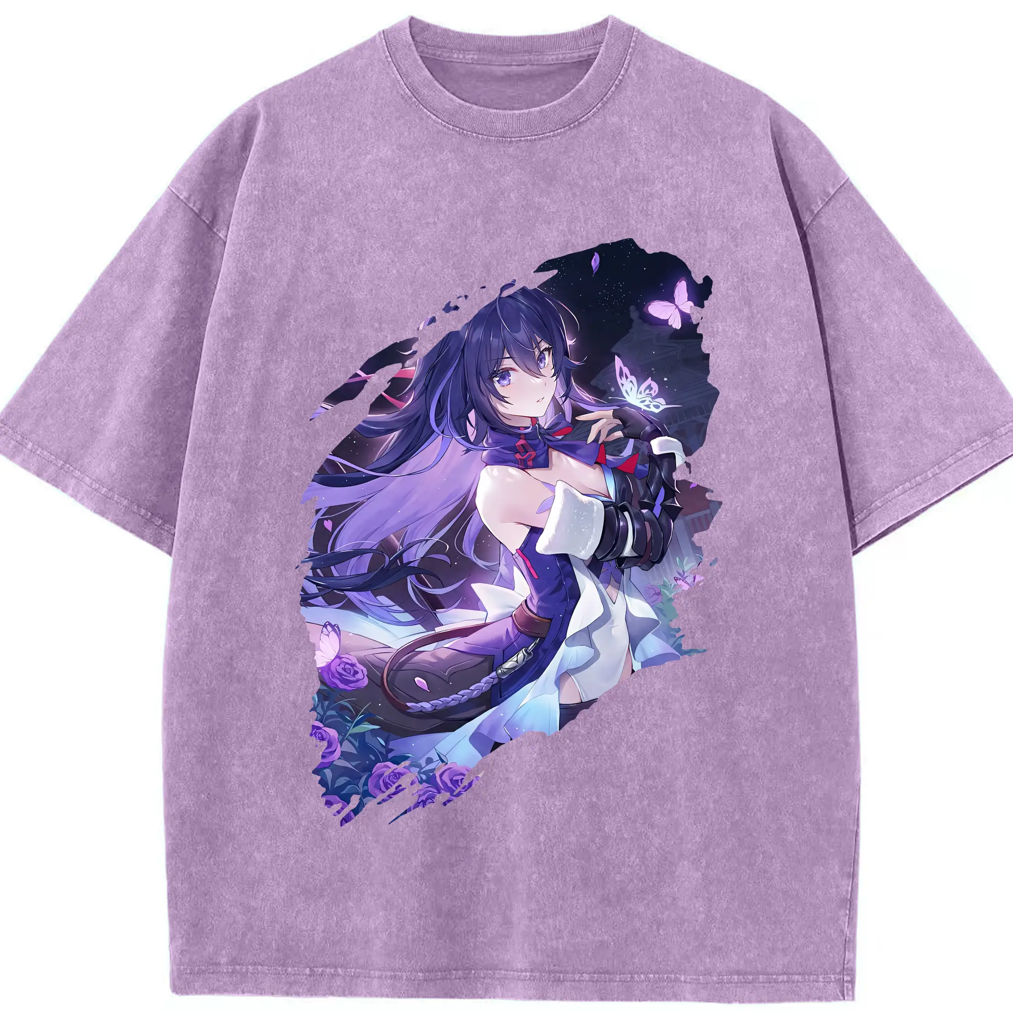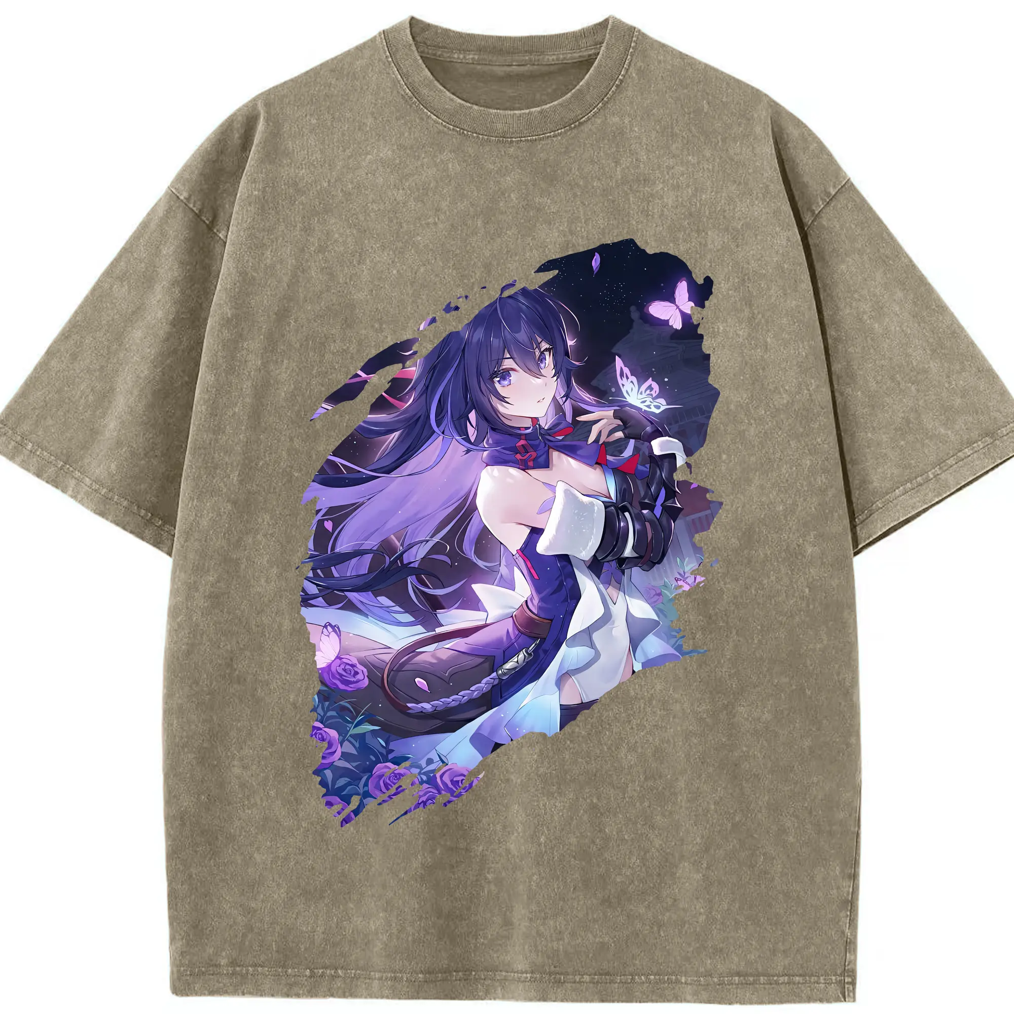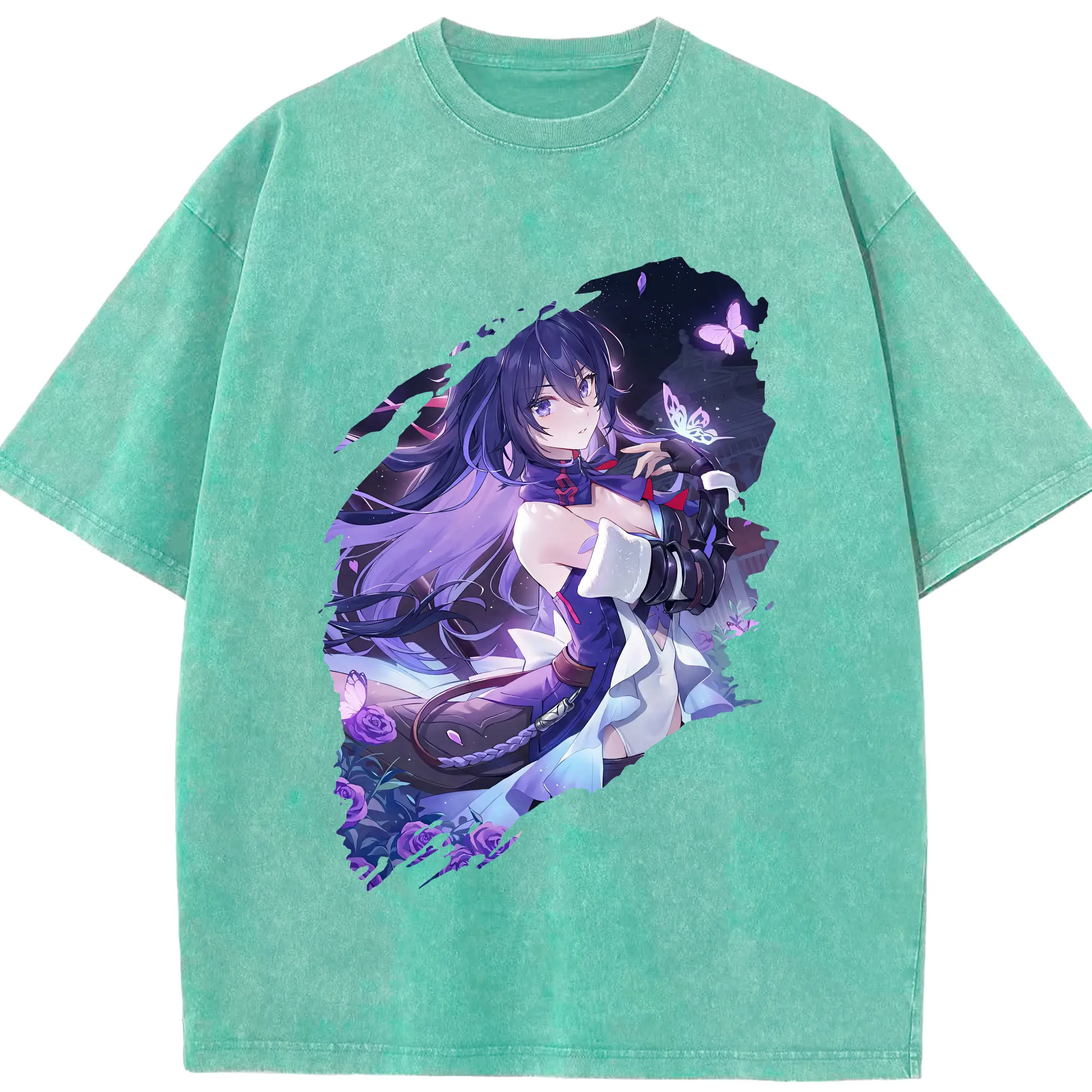 原 神 グッズ 雷電将軍 - 綿100% ヴィンテージ風 半袖Tシャツ ・ フロントプリント ・ 柔らか肌触り ・ 通気性 快適 ・ スポーツ カジュアル 外出用