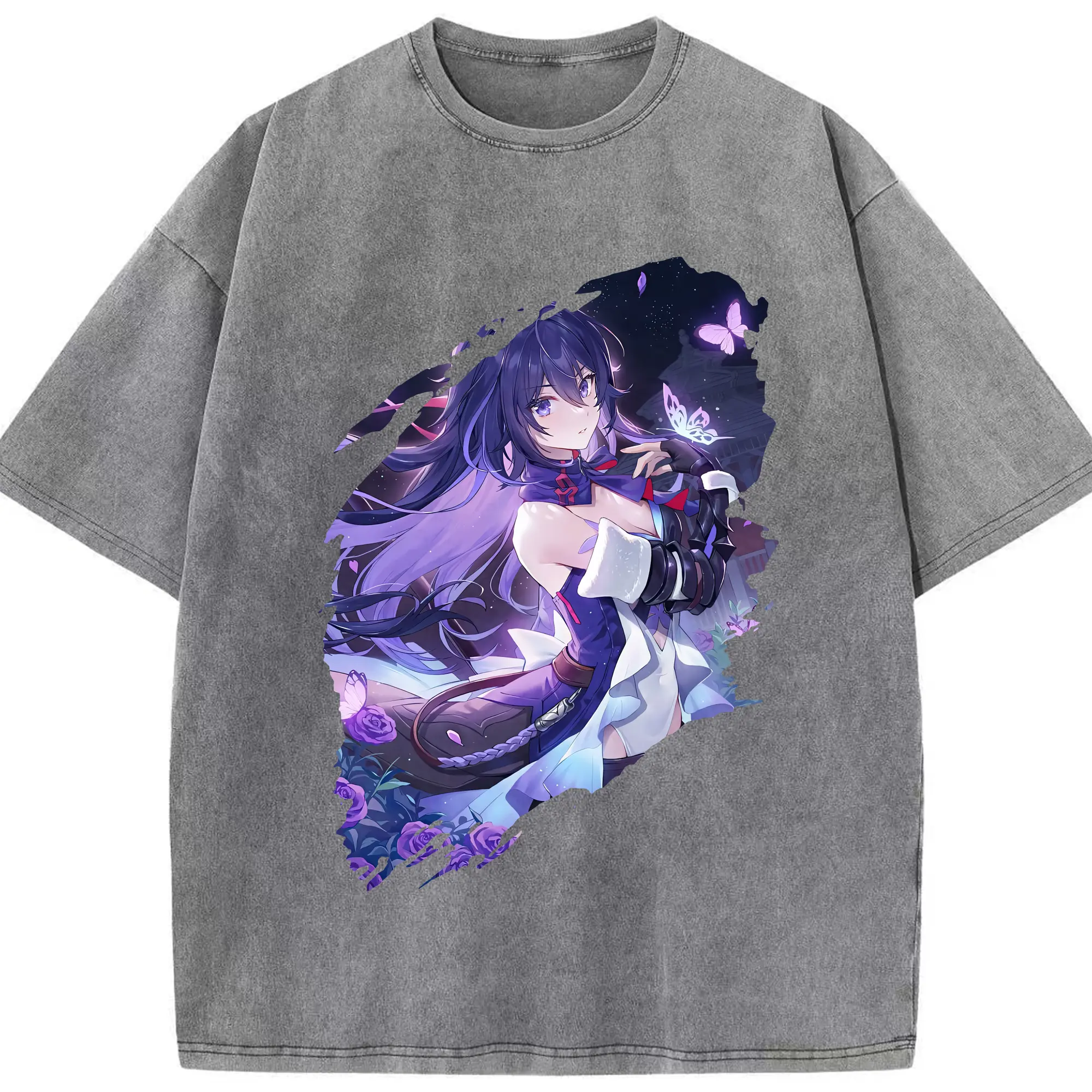 崩壊:スターレイル グッズ ゼーレ - 綿100% ヴィンテージ風 半袖Tシャツ ・ 背面プリント ・ 柔らか肌触り ・ 通気性 快適 ・ スポーツ カジュアル 外出用