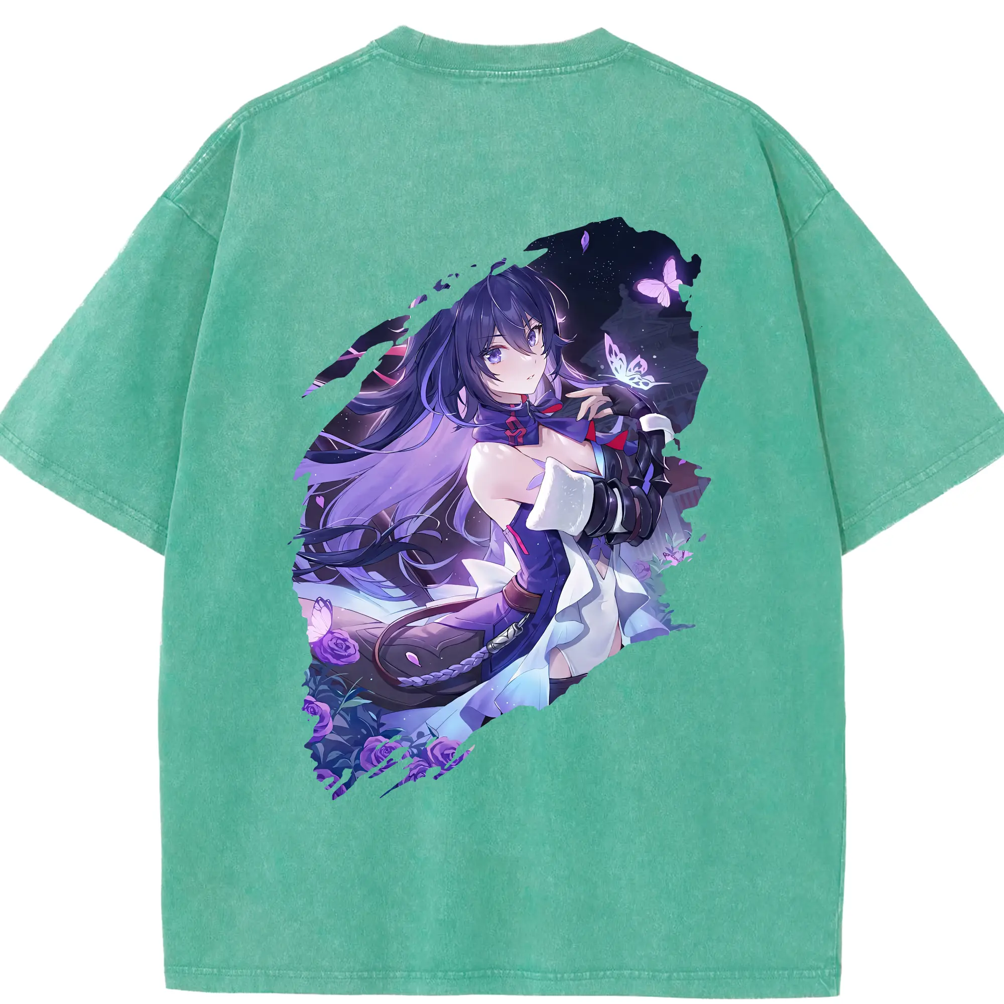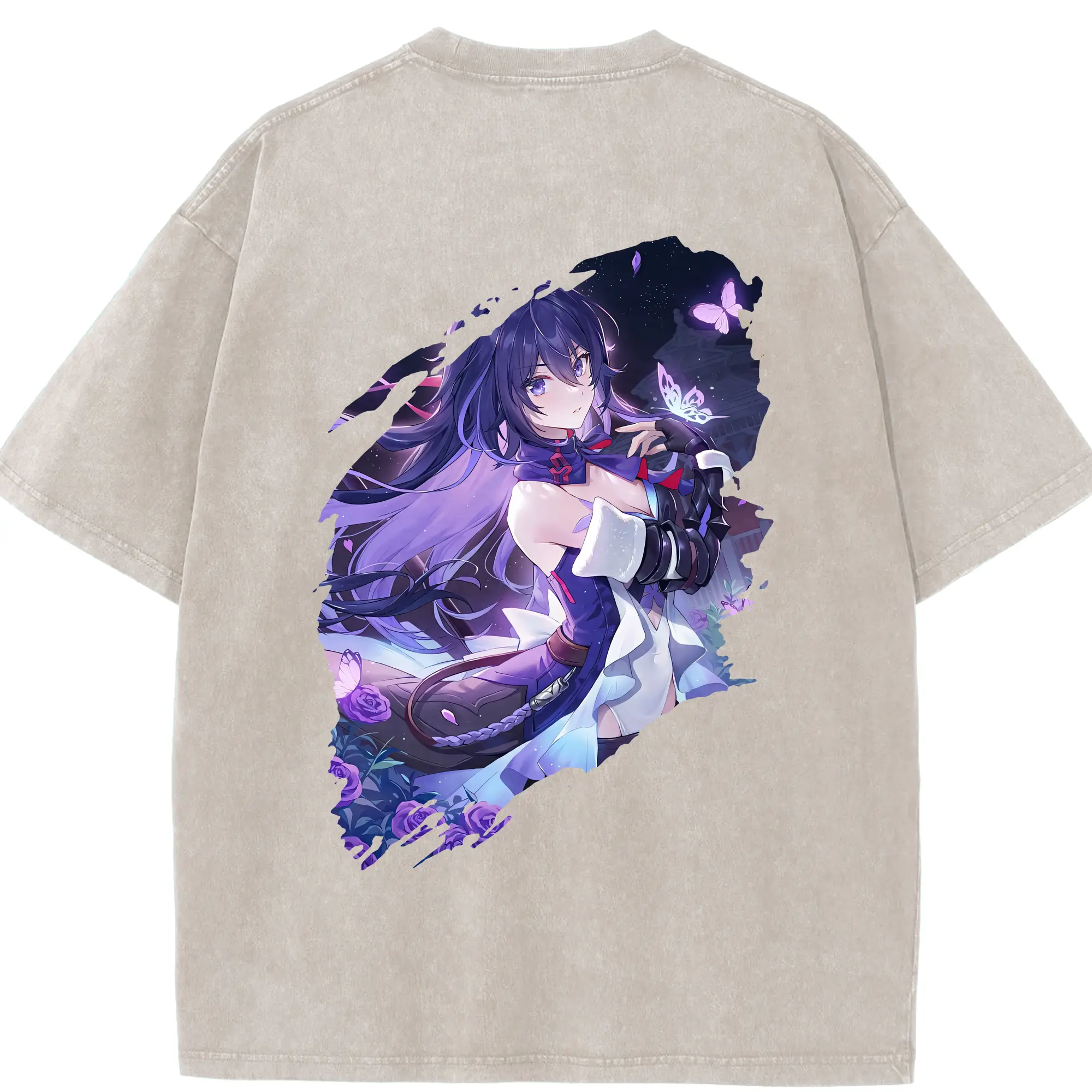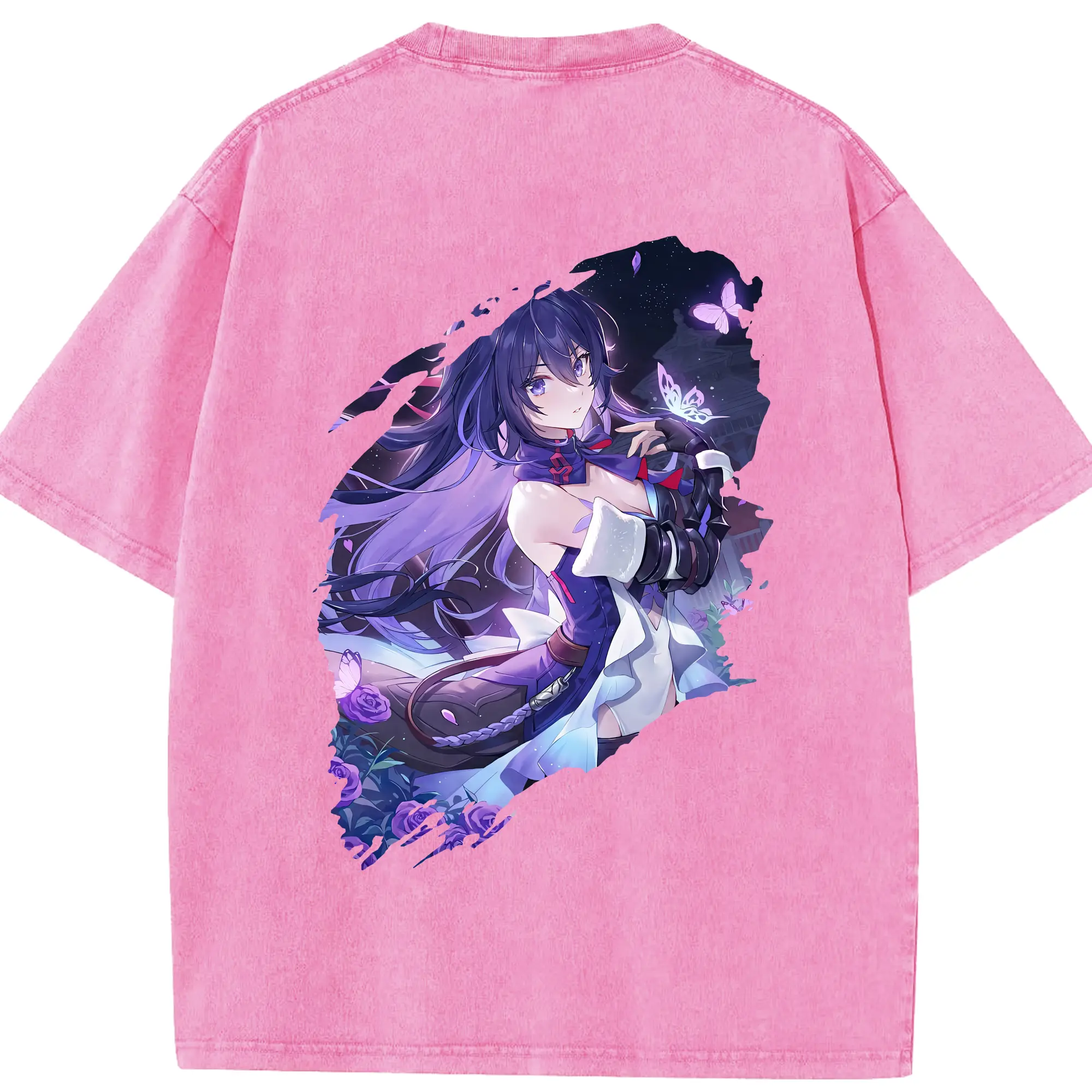 原 神 グッズ フータオ - 綿100% ヴィンテージ風 半袖Tシャツ ・ 背面プリント ・ 柔らか肌触り ・ 通気性 快適 ・ スポーツ カジュアル 外出用