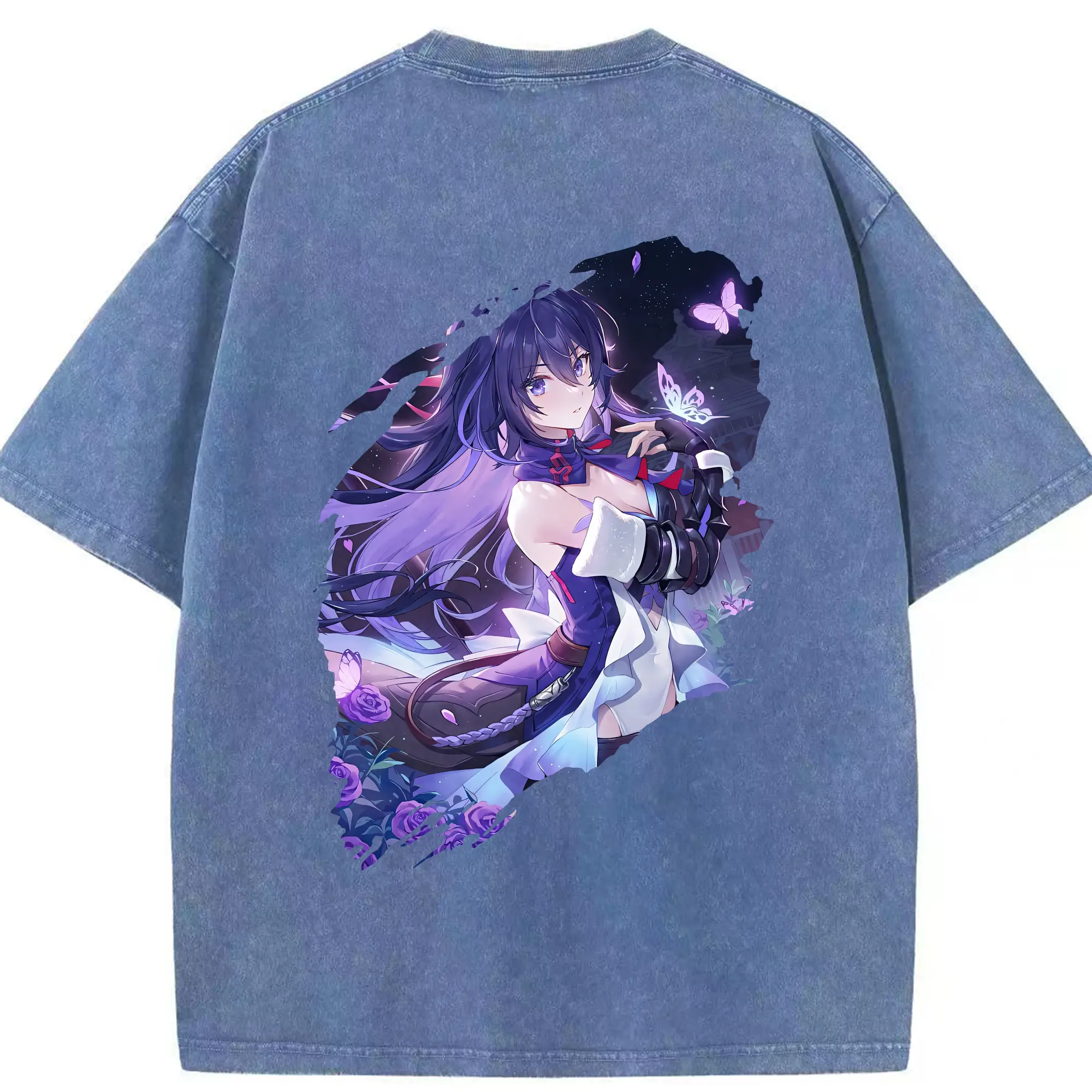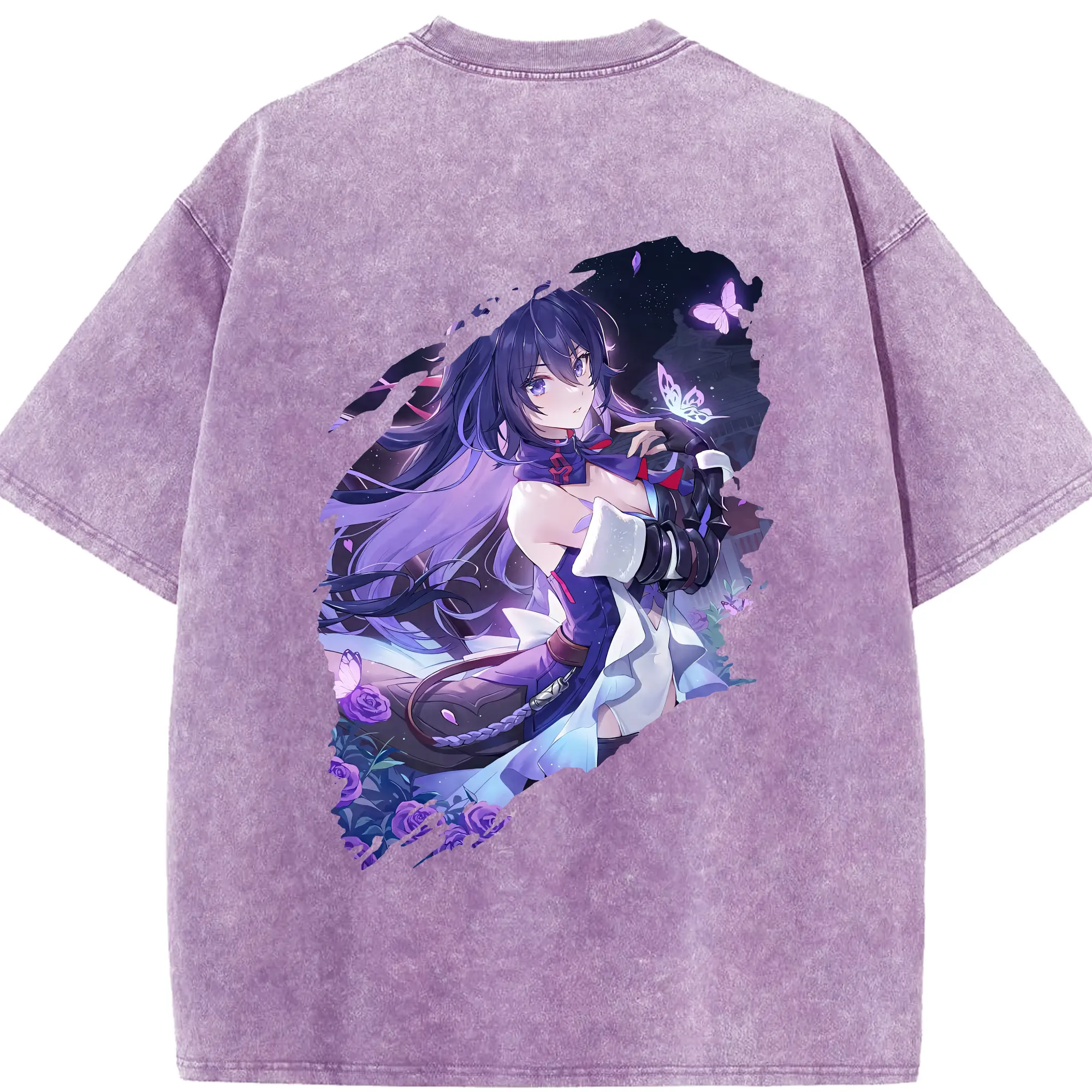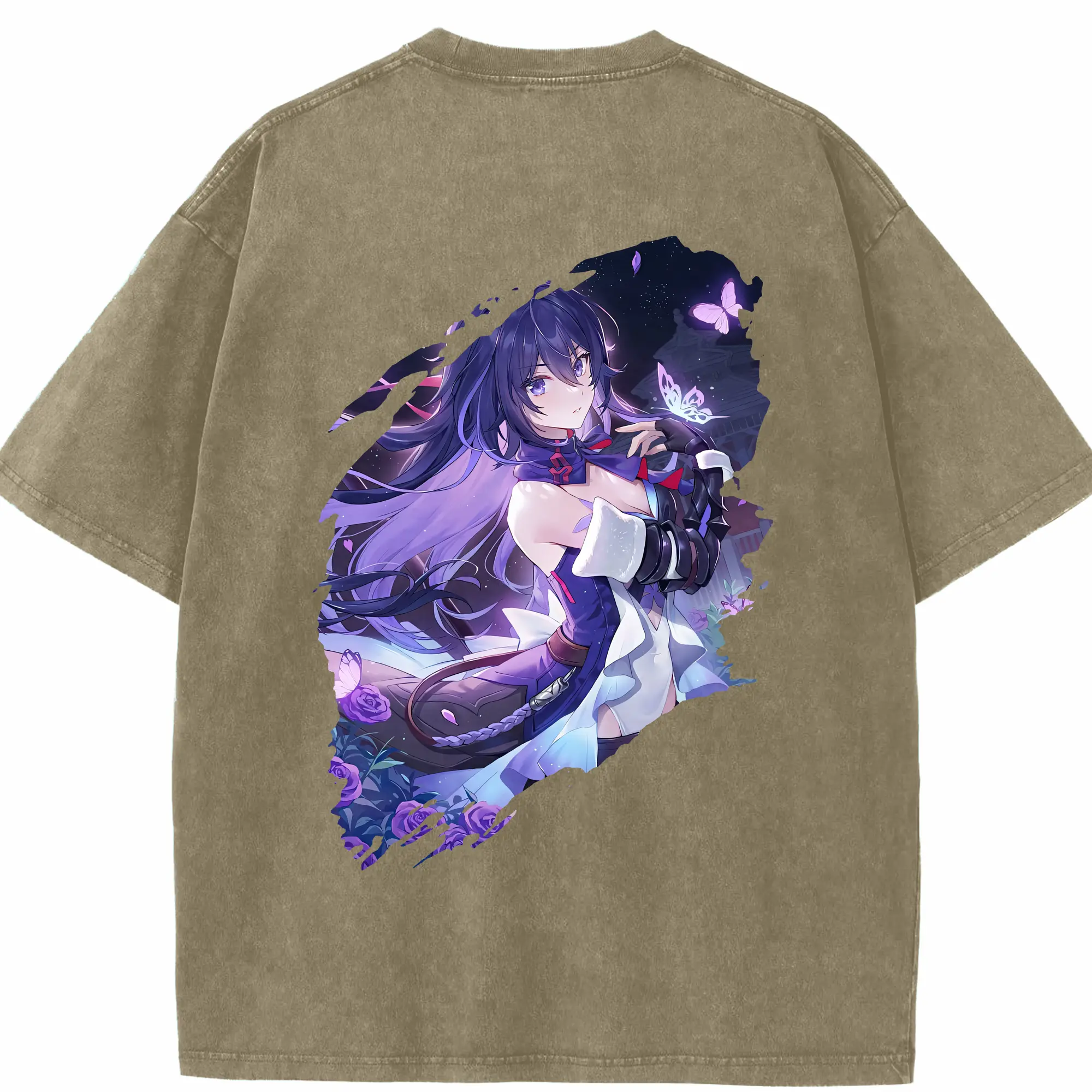原 神 グッズ フータオ - 綿100% ヴィンテージ風 半袖Tシャツ ・ 背面プリント ・ 柔らか肌触り ・ 通気性 快適 ・ スポーツ カジュアル 外出用