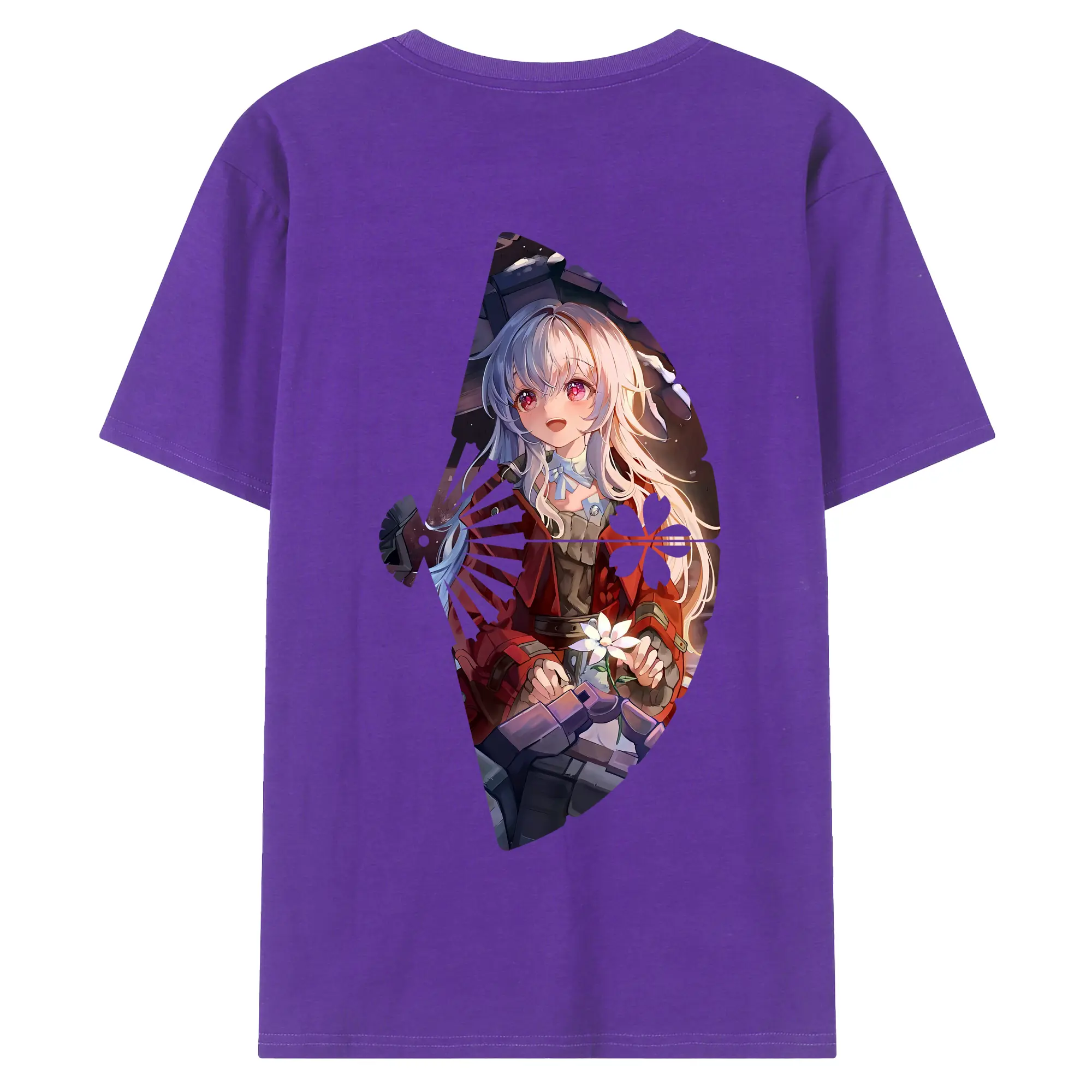 崩壊:スターレイル グッズ クラーラ - 綿100% ヴィンテージ風 半袖Tシャツ ・ 背面プリント ・ 柔らか肌触り ・ 通気性 快適 ・ スポーツ カジュアル 外出用