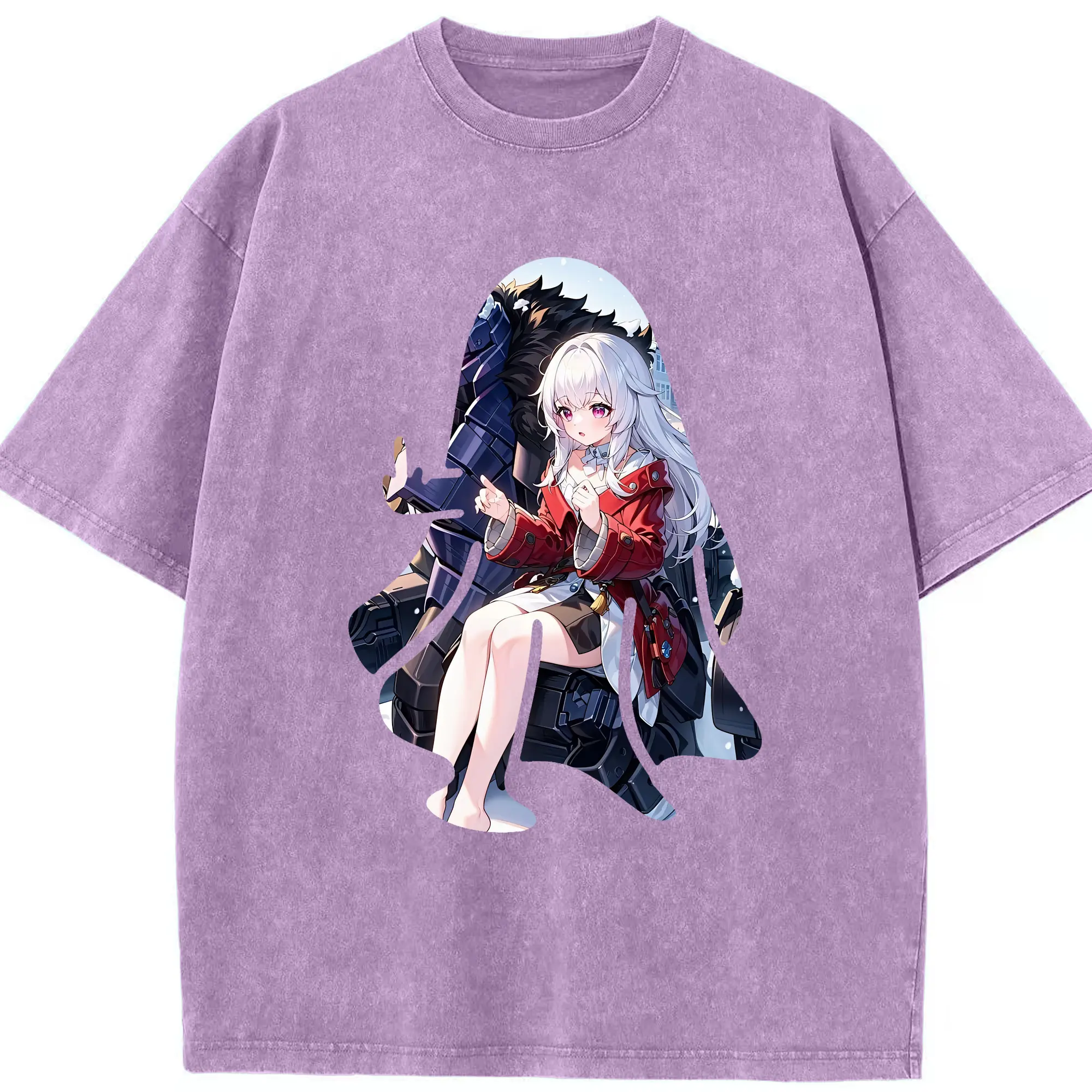 崩壊:スターレイル グッズ クラーラ - 綿100% ヴィンテージ風 半袖Tシャツ ・ 背面プリント ・ 柔らか肌触り ・ 通気性 快適 ・ スポーツ カジュアル 外出用