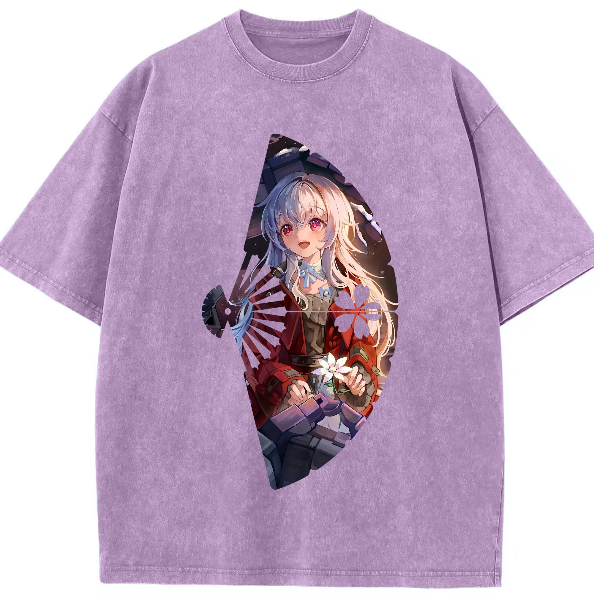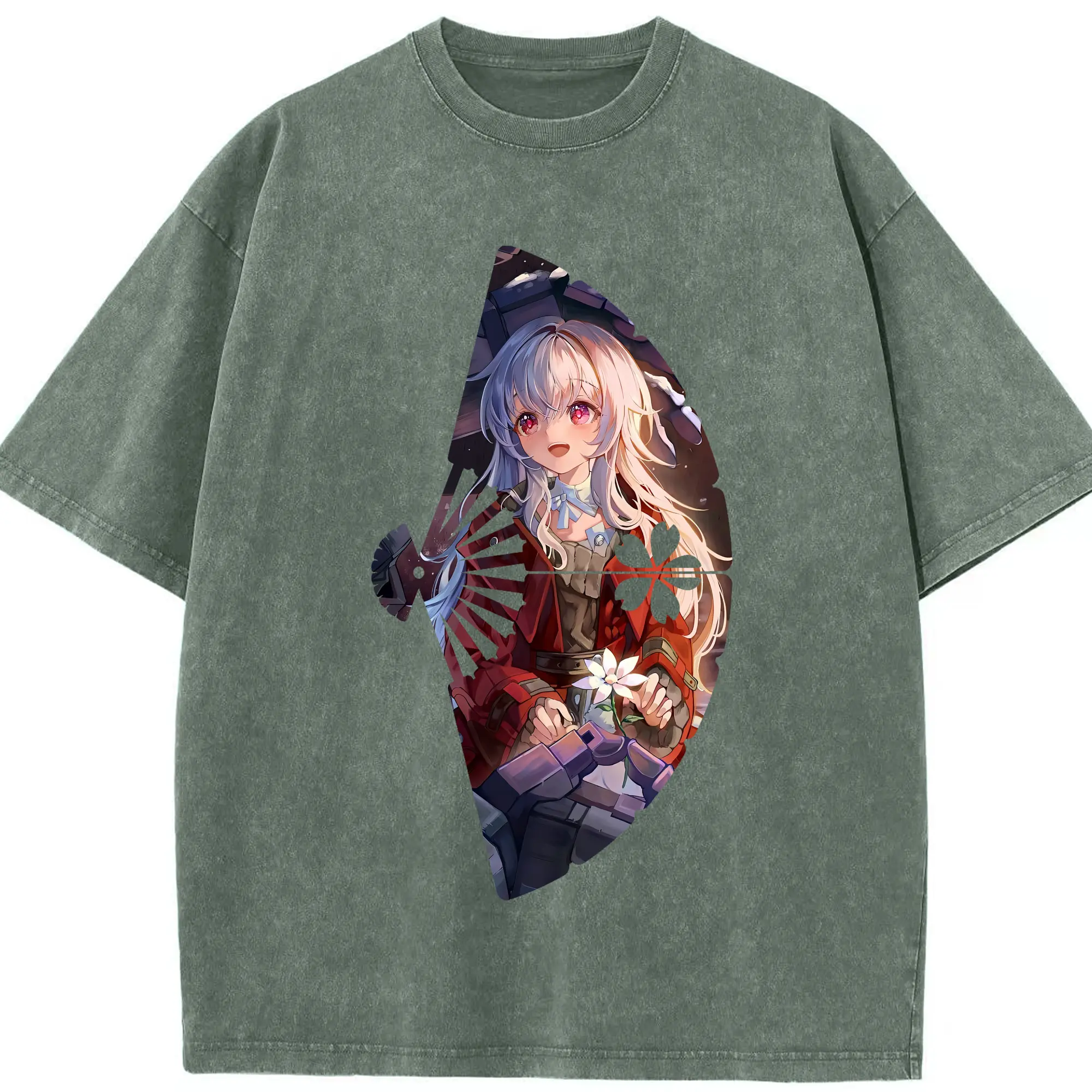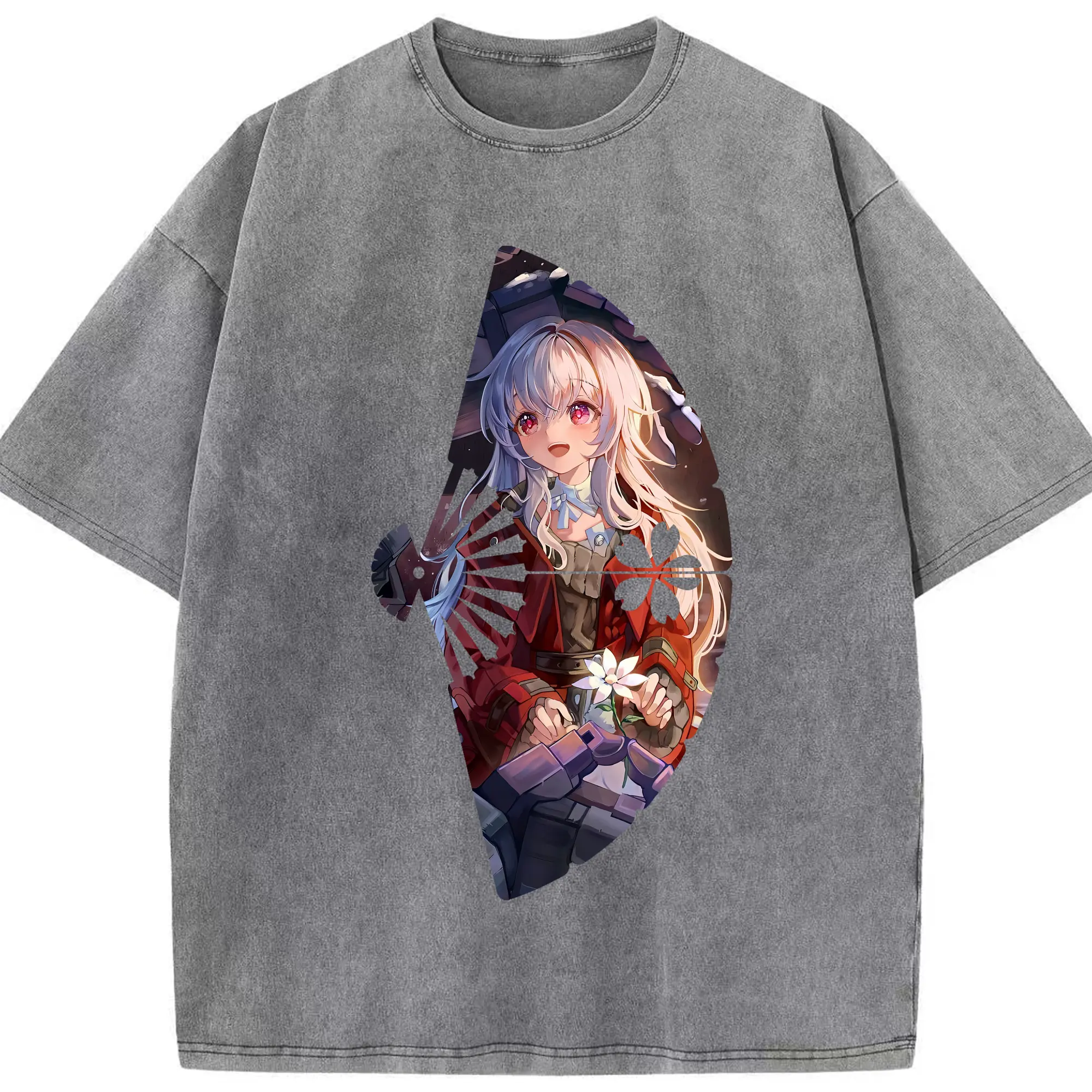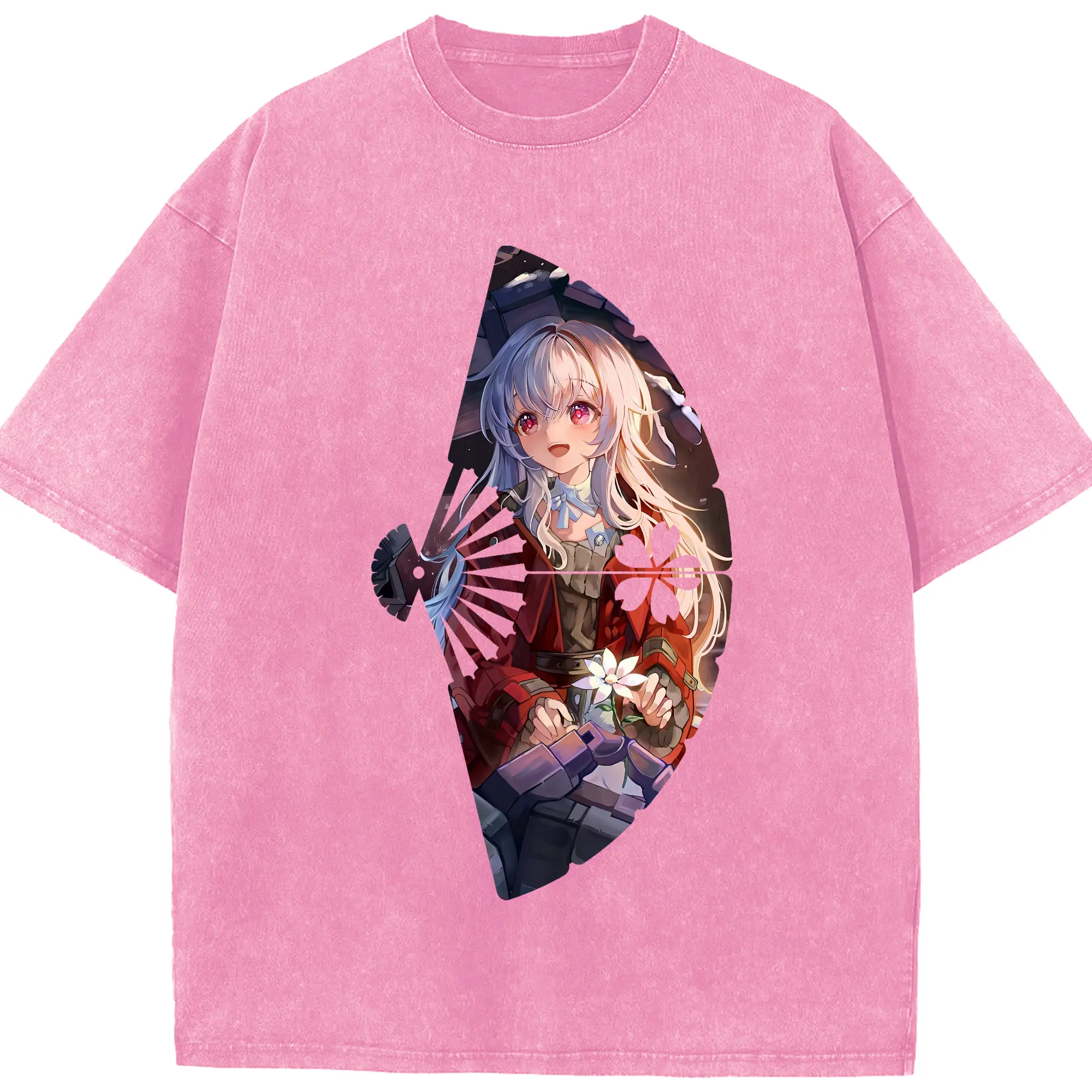 鳴潮 グッズ ツバキ - 綿100% ヴィンテージ風 半袖Tシャツ ・ フロントプリント ・ 柔らか肌触り ・ 通気性 快適 ・ スポーツ カジュアル 外出用