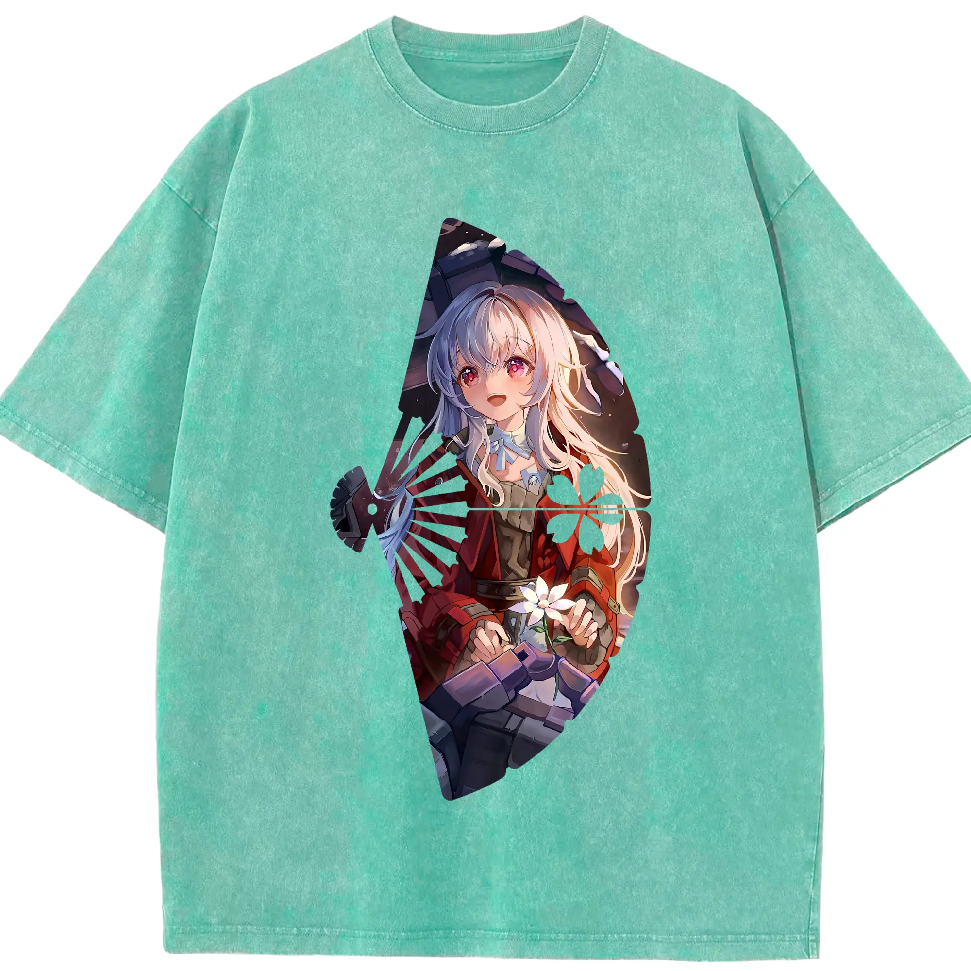鳴潮 グッズ ヤンヤン - 綿100% ヴィンテージ風 半袖Tシャツ ・ フロントプリント ・ 柔らか肌触り ・ 通気性 快適 ・ スポーツ カジュアル 外出用