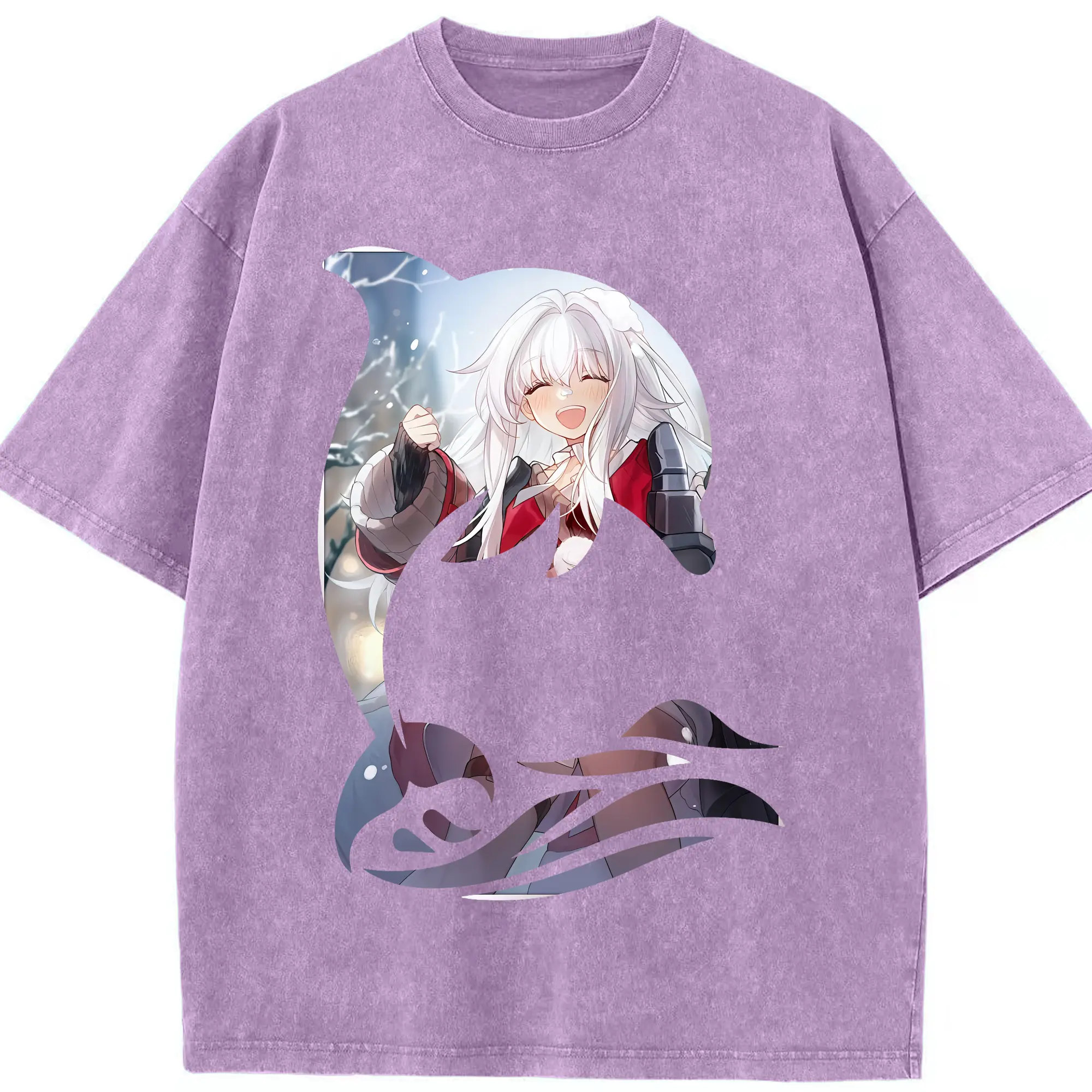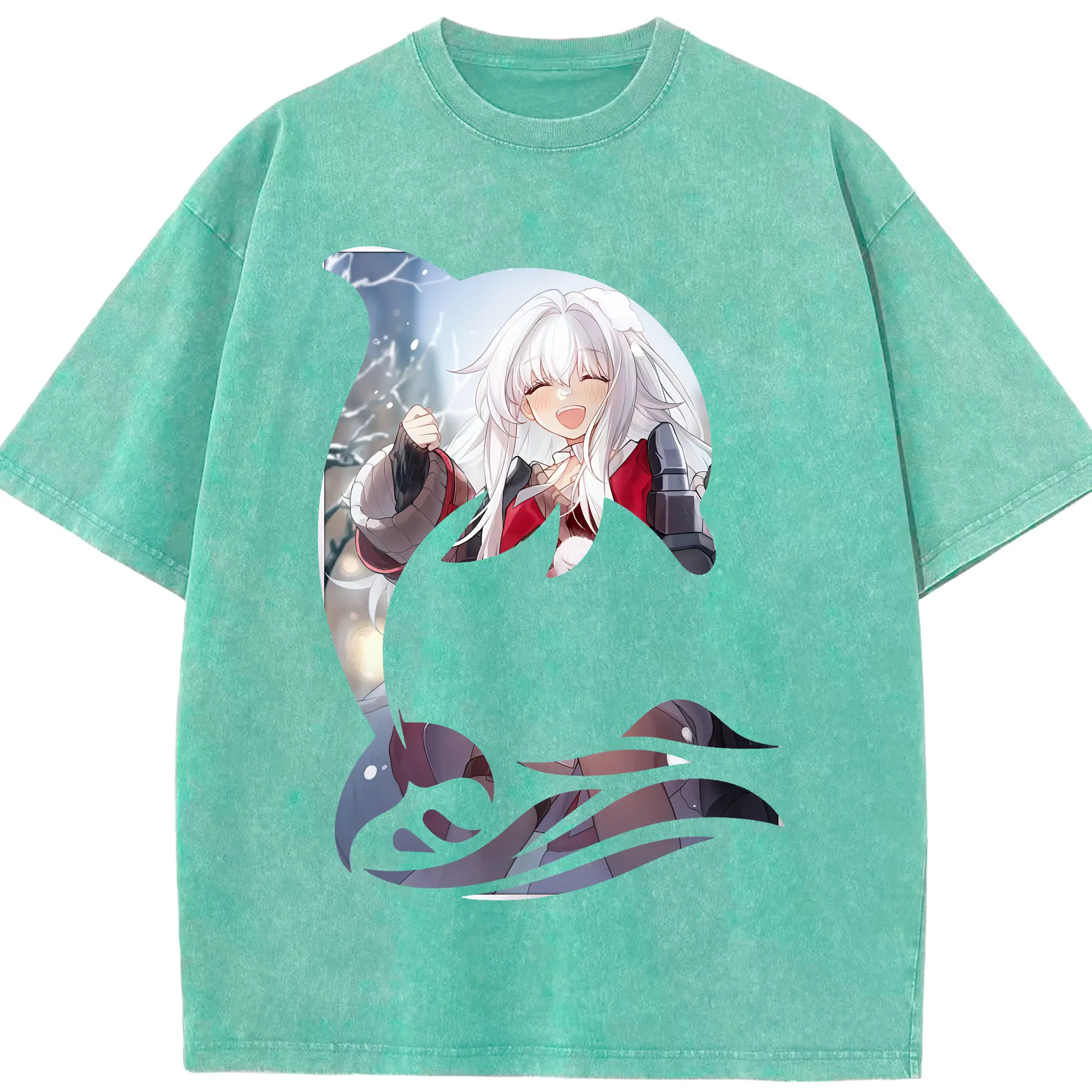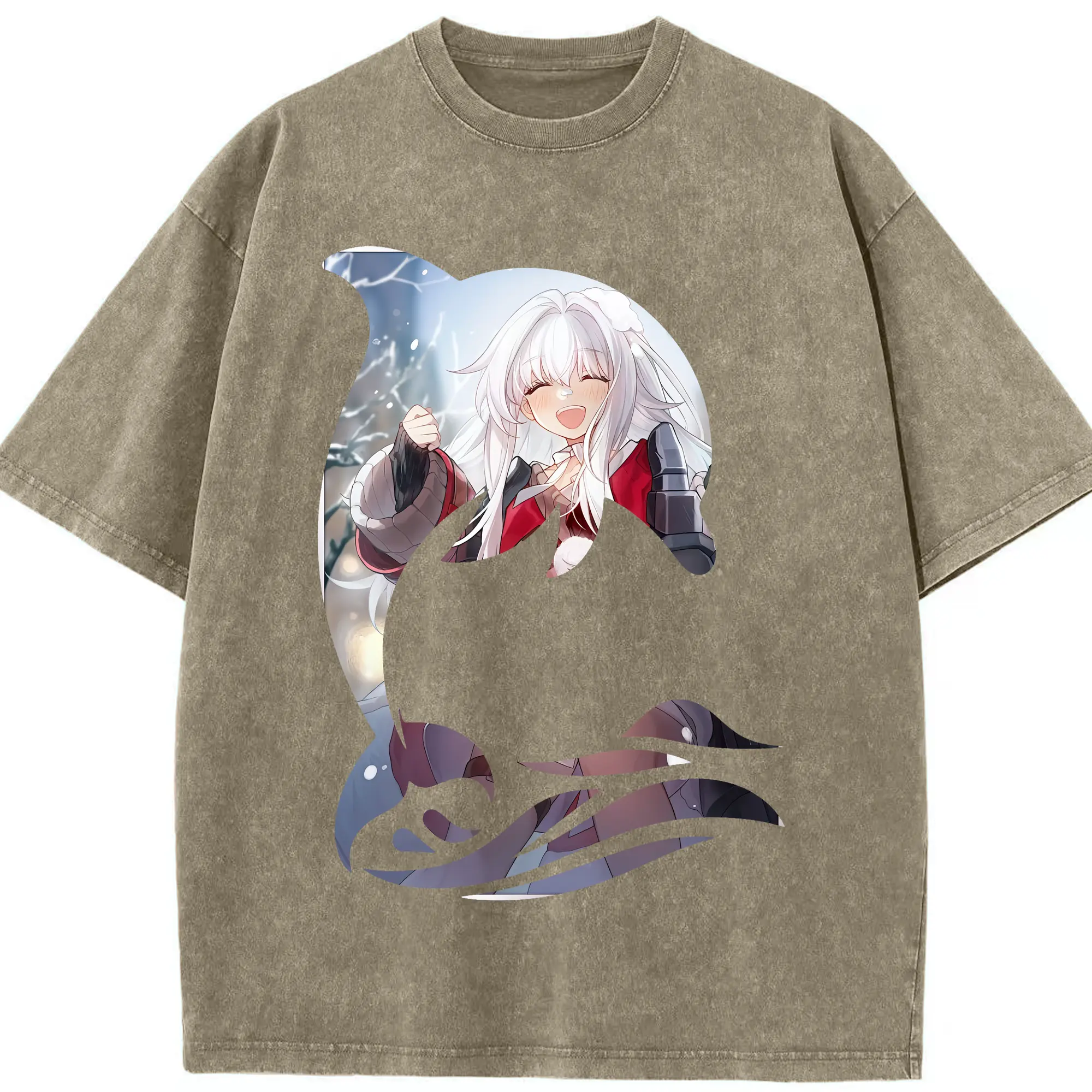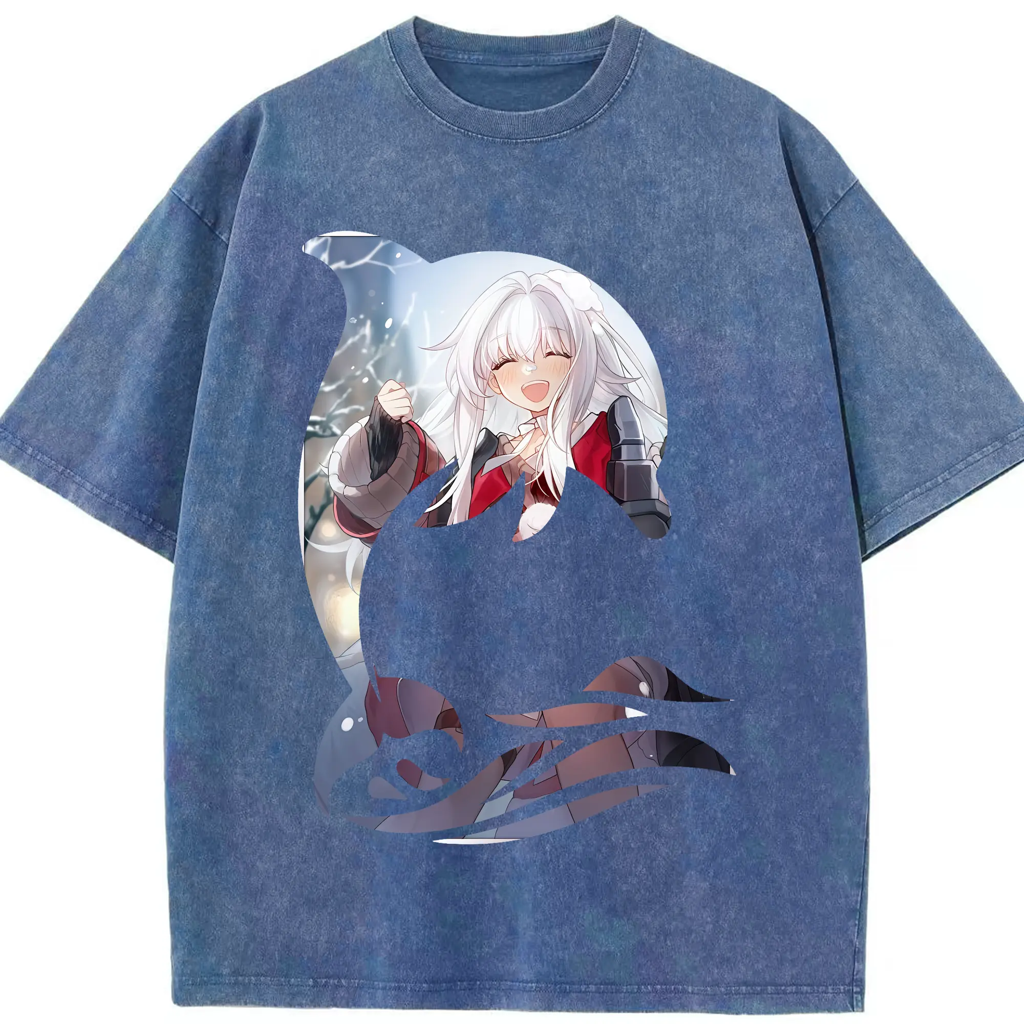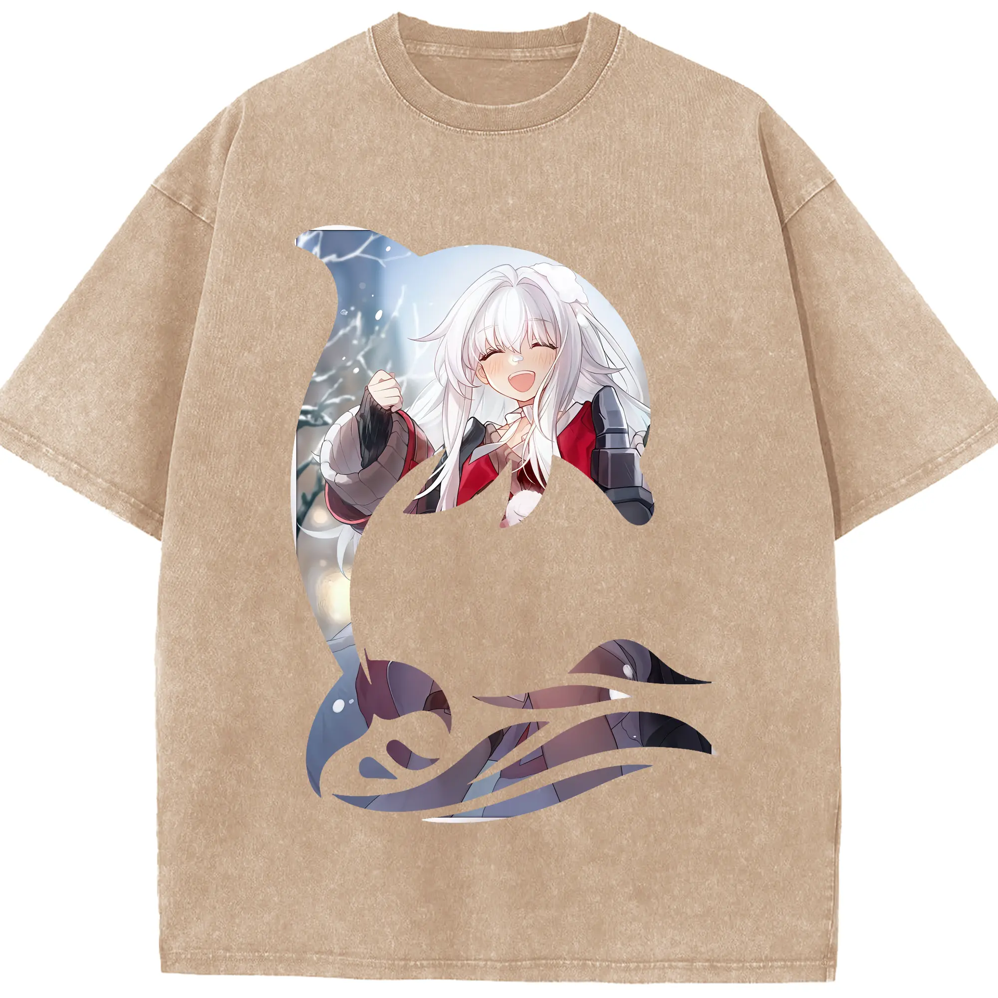 崩壊:スターレイル グッズ クラーラ - 綿100% ヴィンテージ風 半袖Tシャツ ・ 背面プリント ・ 柔らか肌触り ・ 通気性 快適 ・ スポーツ カジュアル 外出用