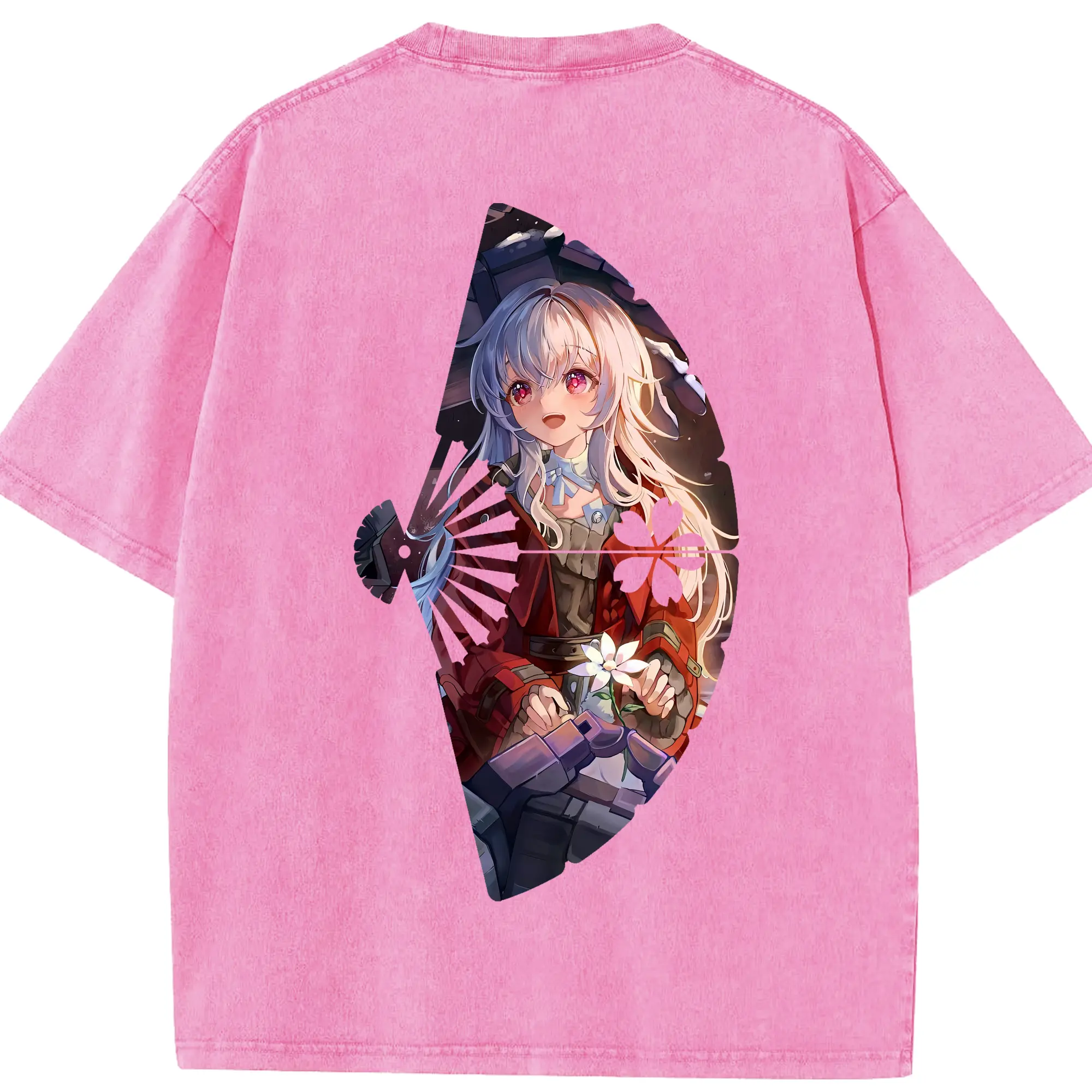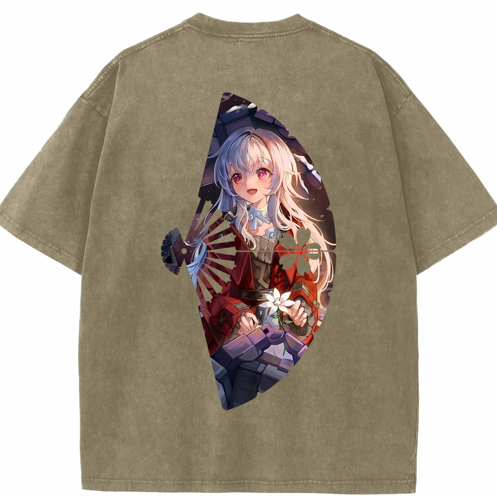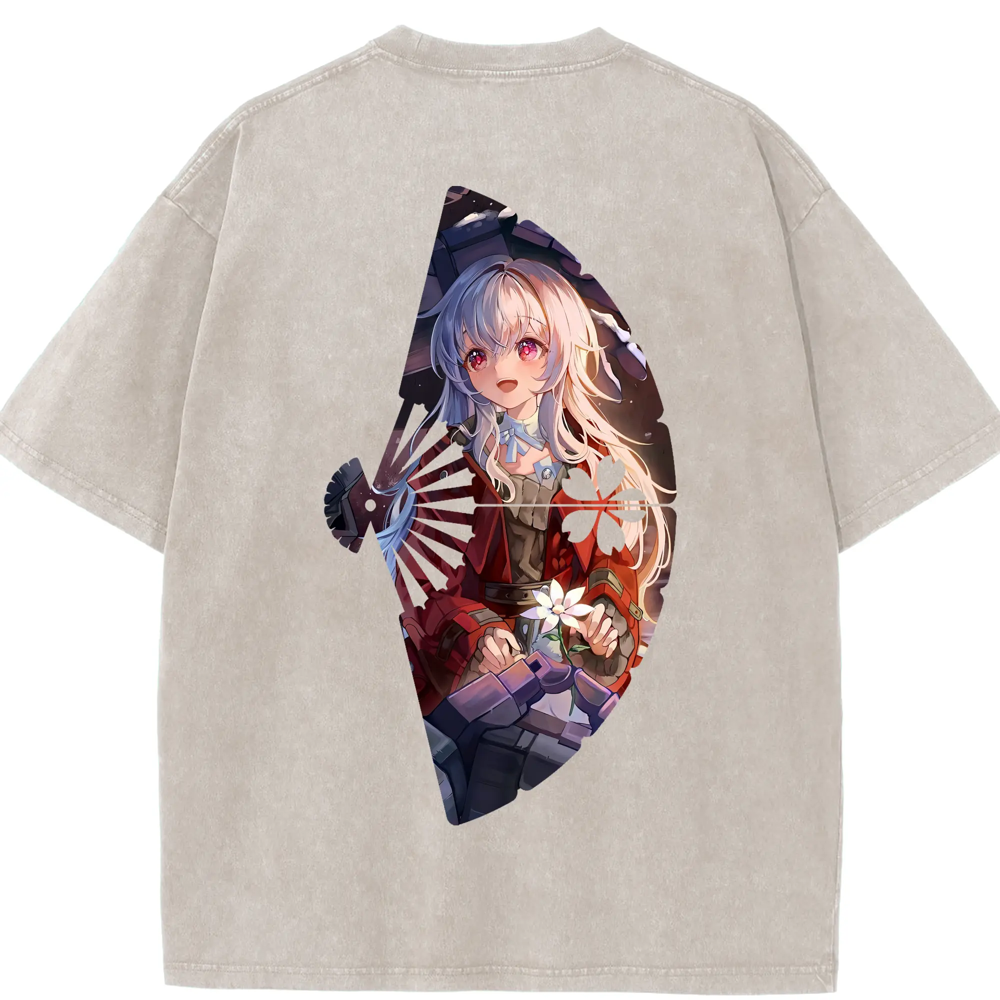 ブルーアーカイブ グッズ 小鳥遊ホシノ - 綿100% ヴィンテージ風 半袖Tシャツ ・ 背面プリント ・ 柔らか肌触り ・ 通気性 快適 ・ スポーツ カジュアル 外出用