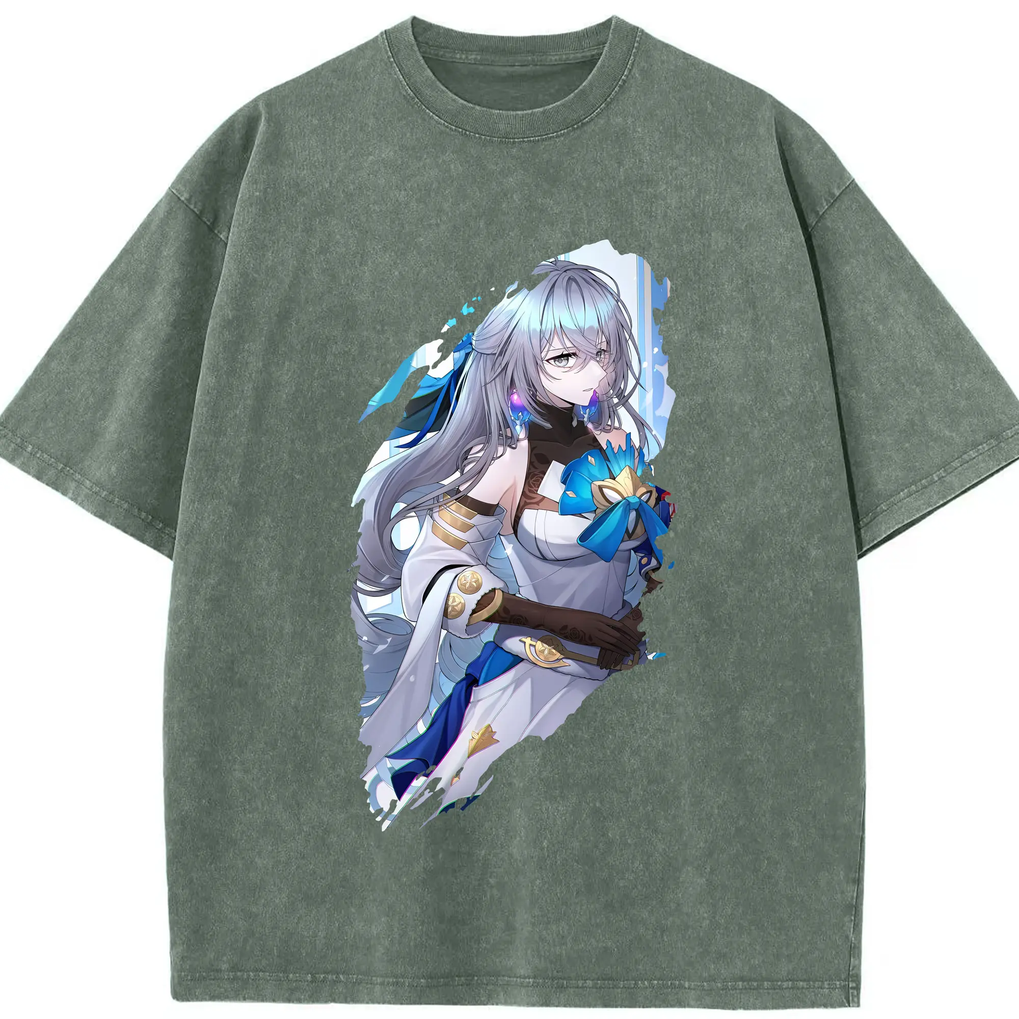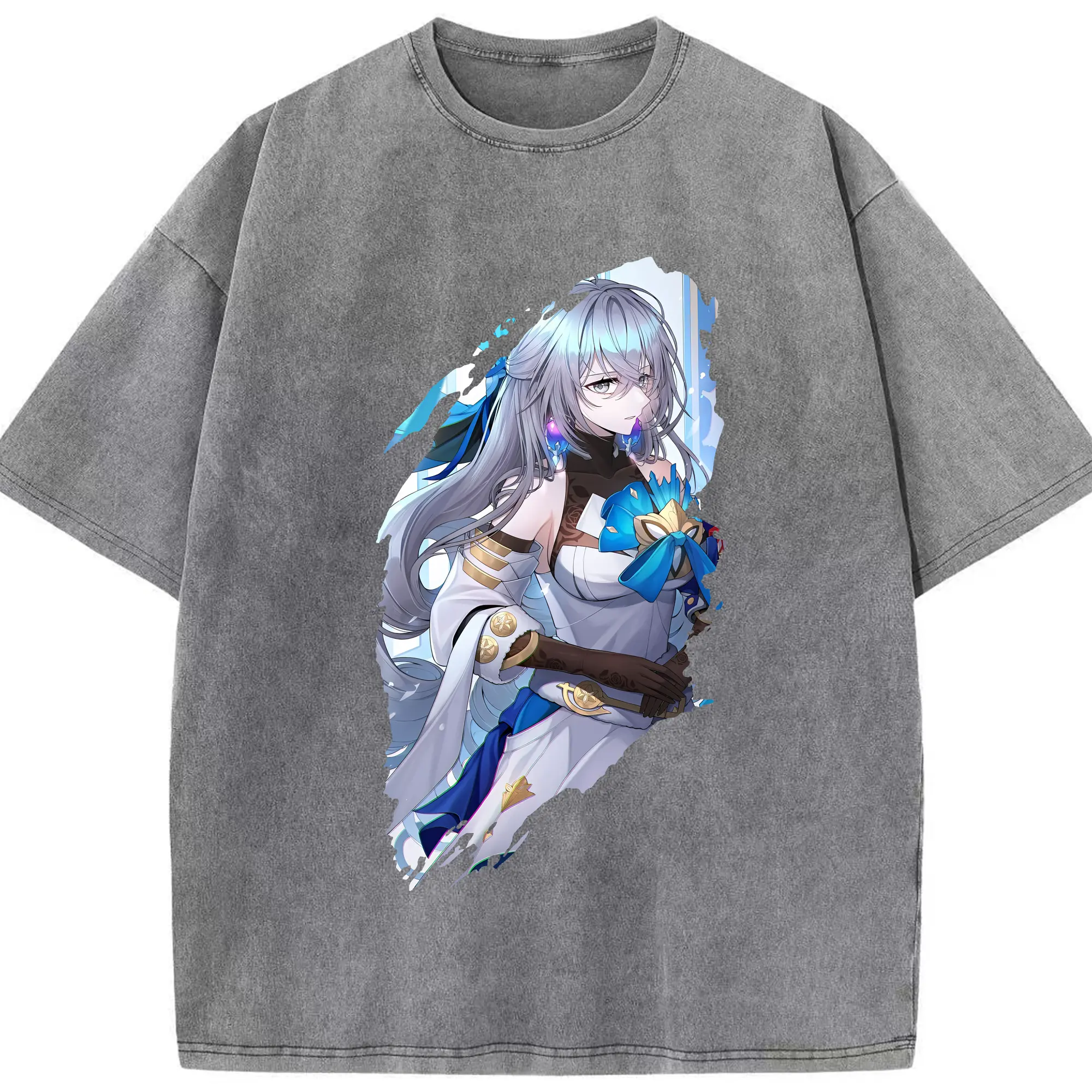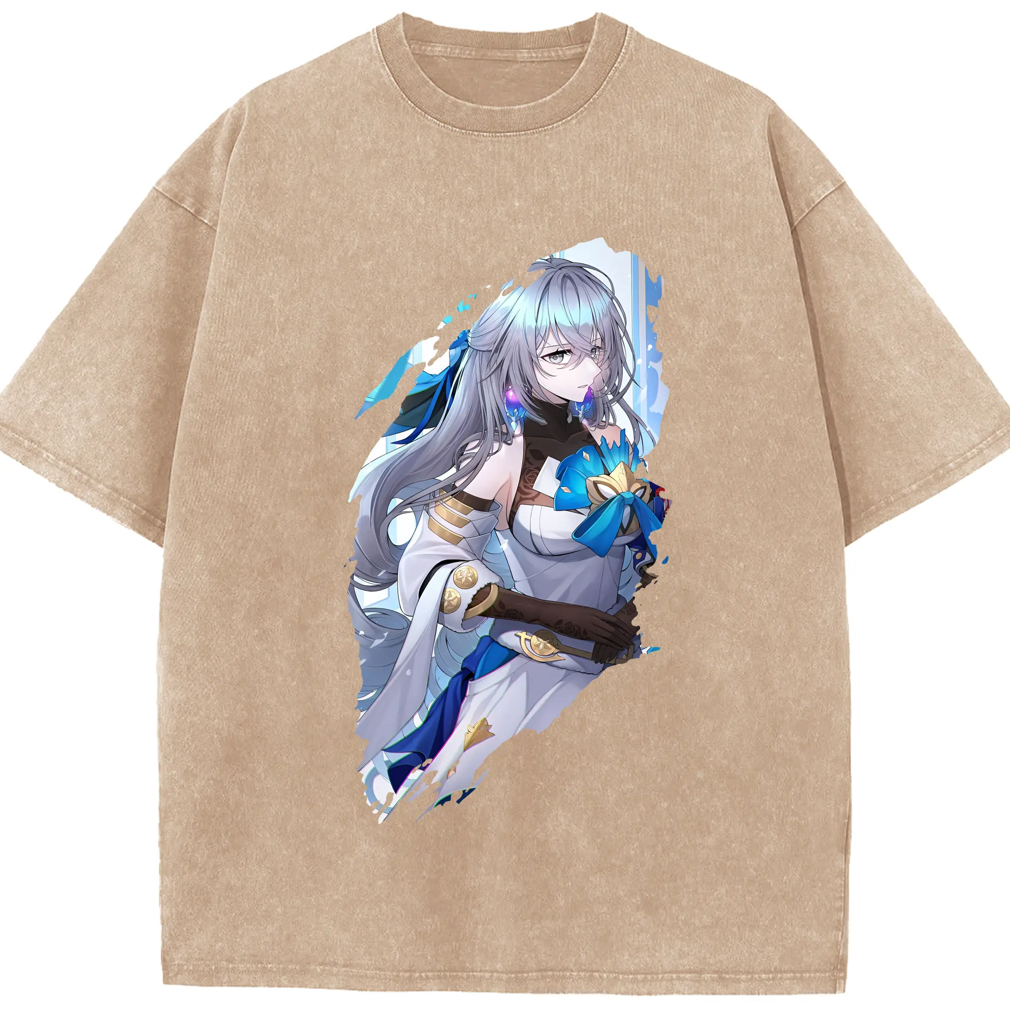 崩壊:スターレイル グッズ ブローニャ - 綿100% ヴィンテージ風 半袖Tシャツ ・ 背面プリント ・ 柔らか肌触り ・ 通気性 快適 ・ スポーツ カジュアル 外出用