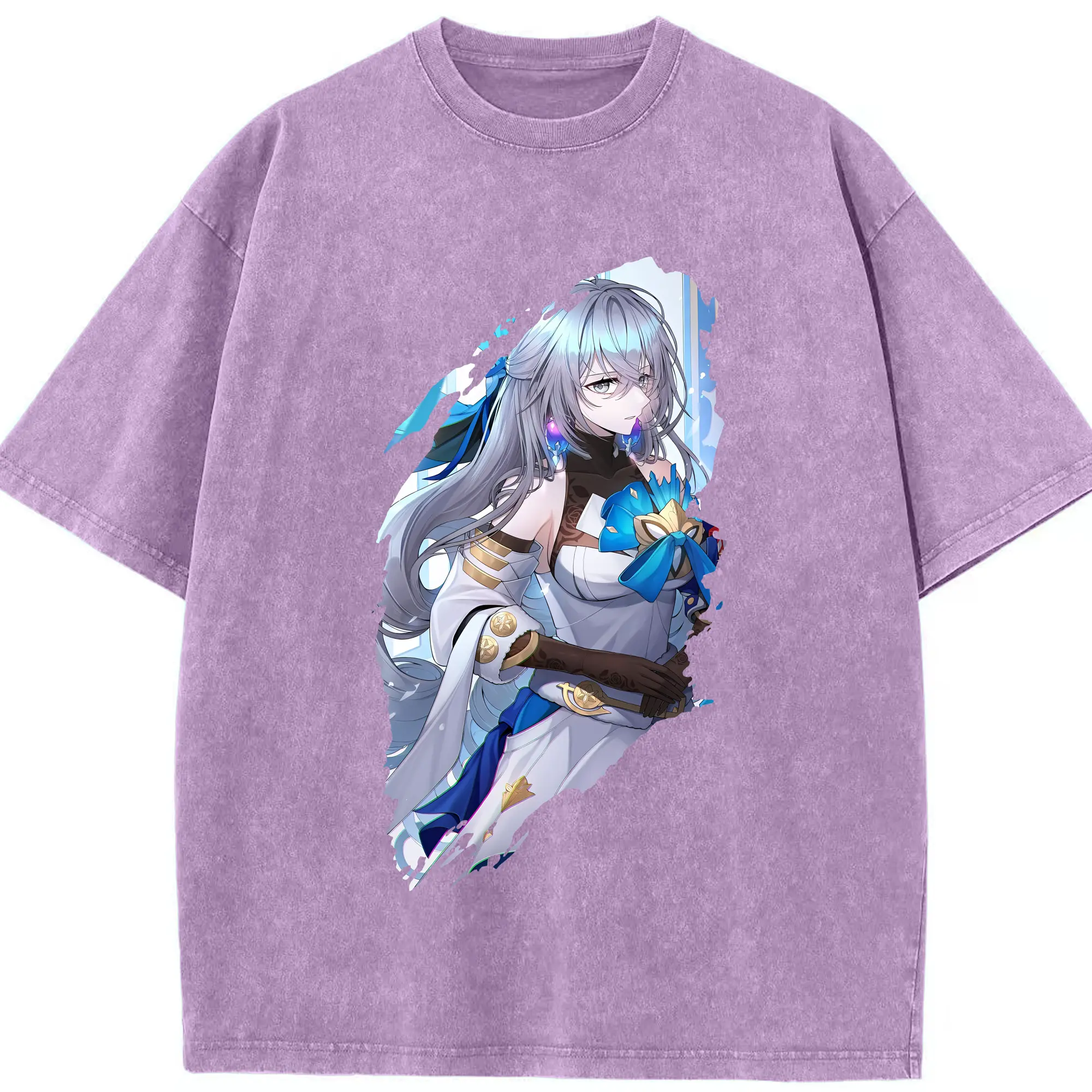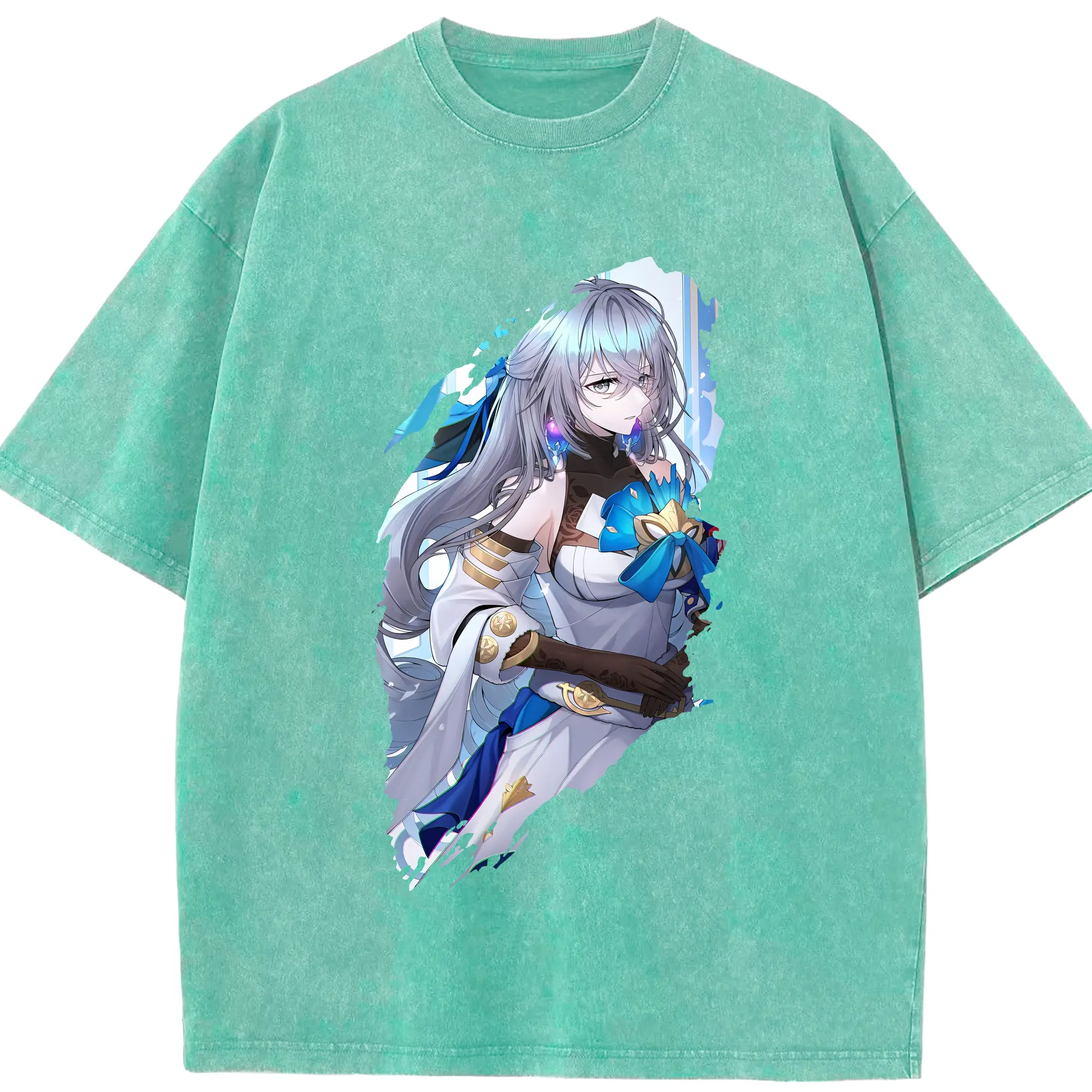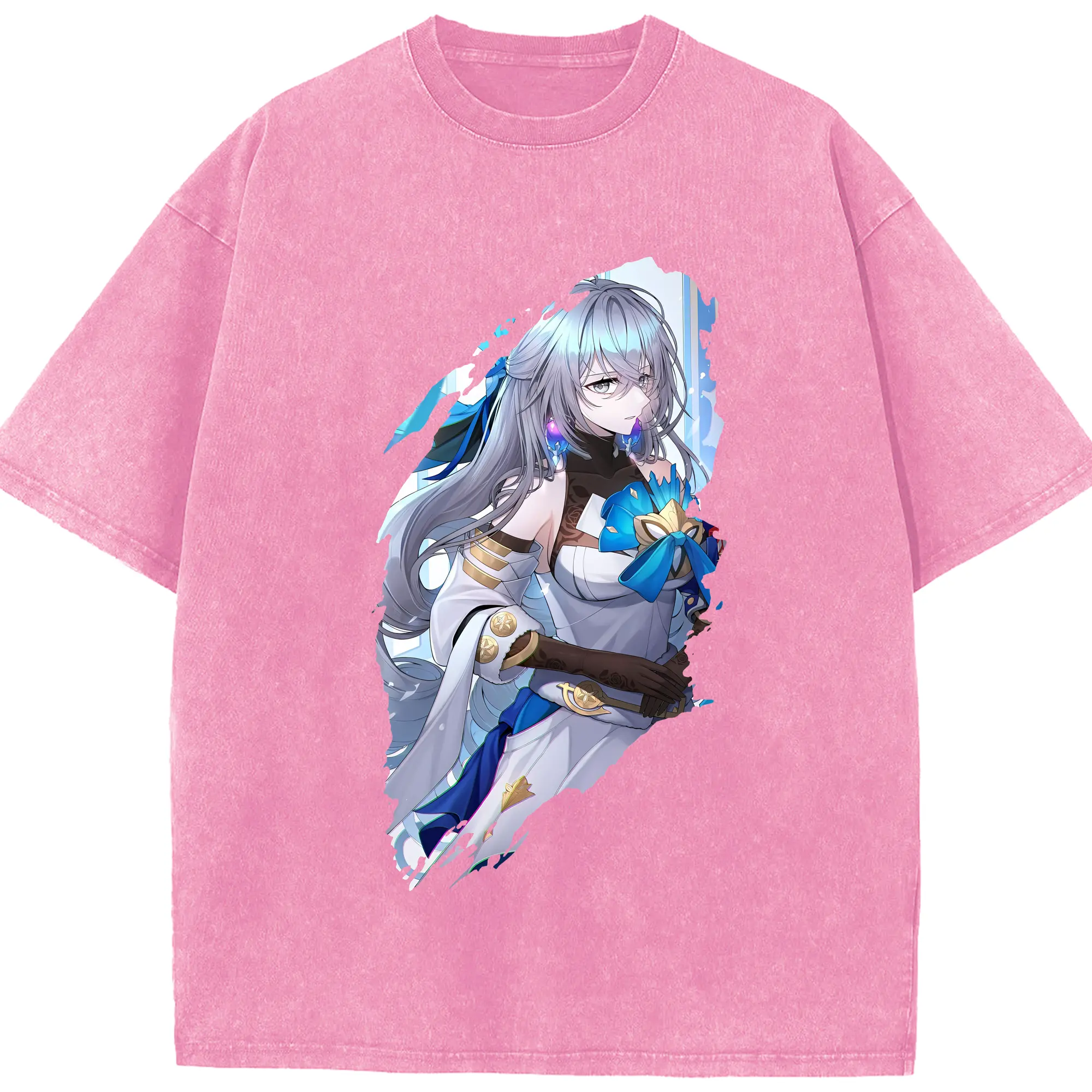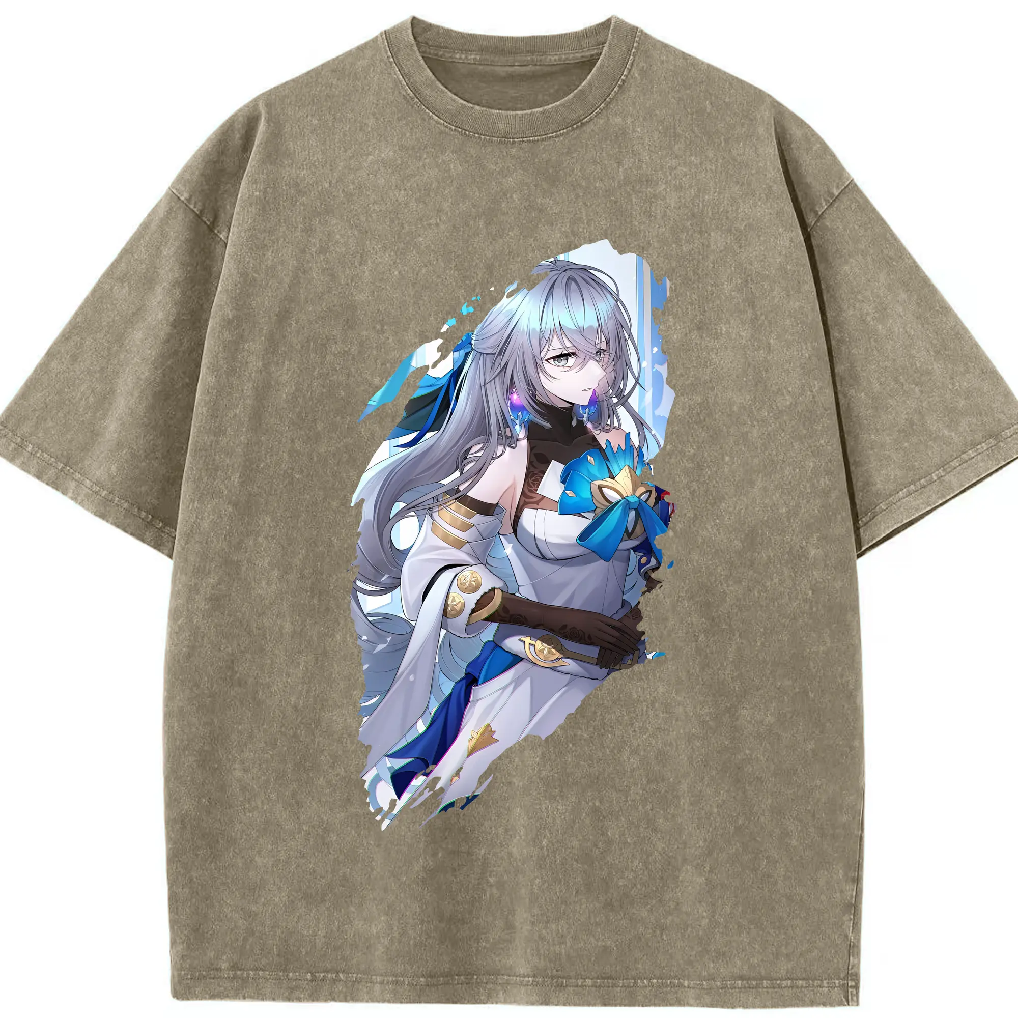 崩壊:スターレイル グッズ ブローニャ - 綿100% ヴィンテージ風 半袖Tシャツ ・ 背面プリント ・ 柔らか肌触り ・ 通気性 快適 ・ スポーツ カジュアル 外出用