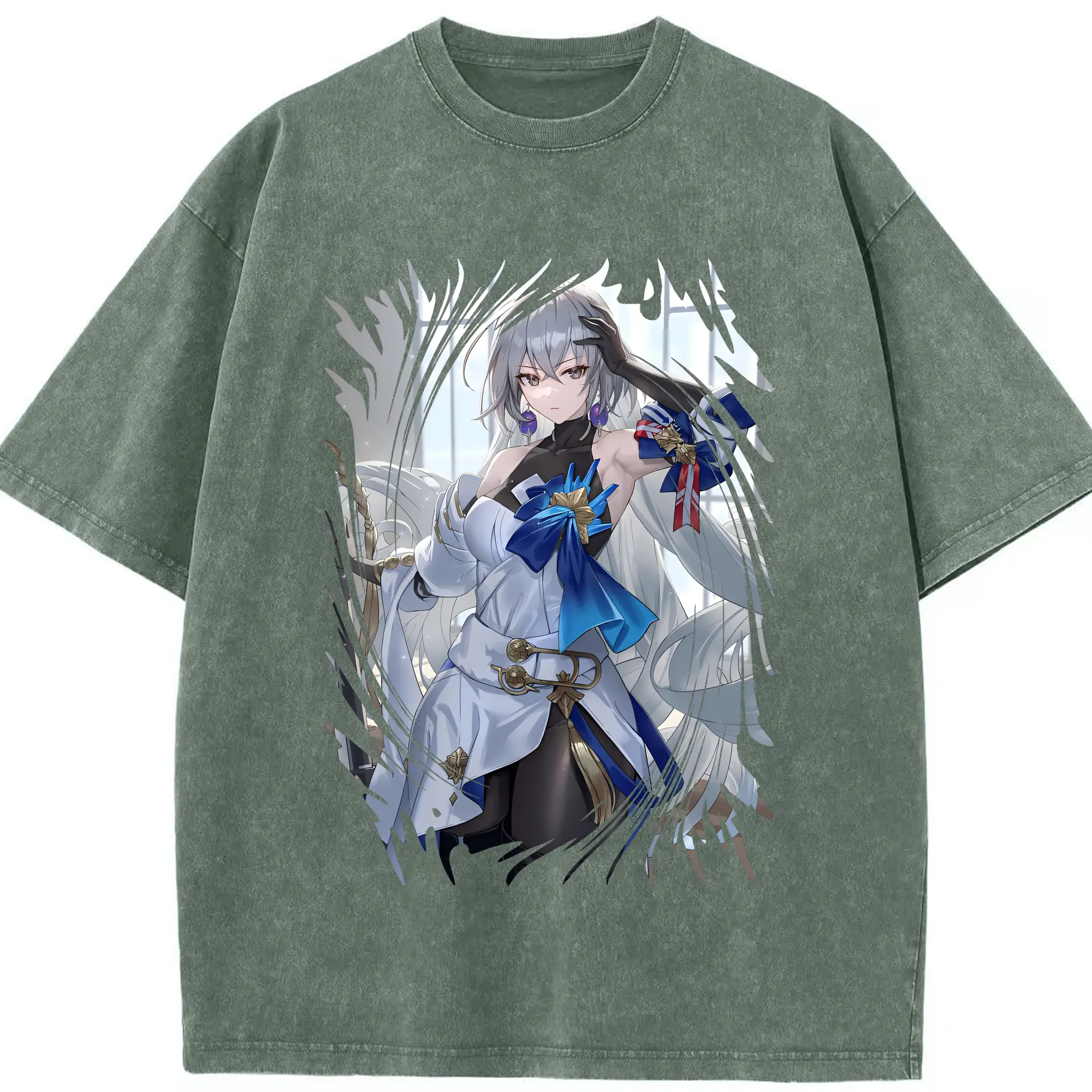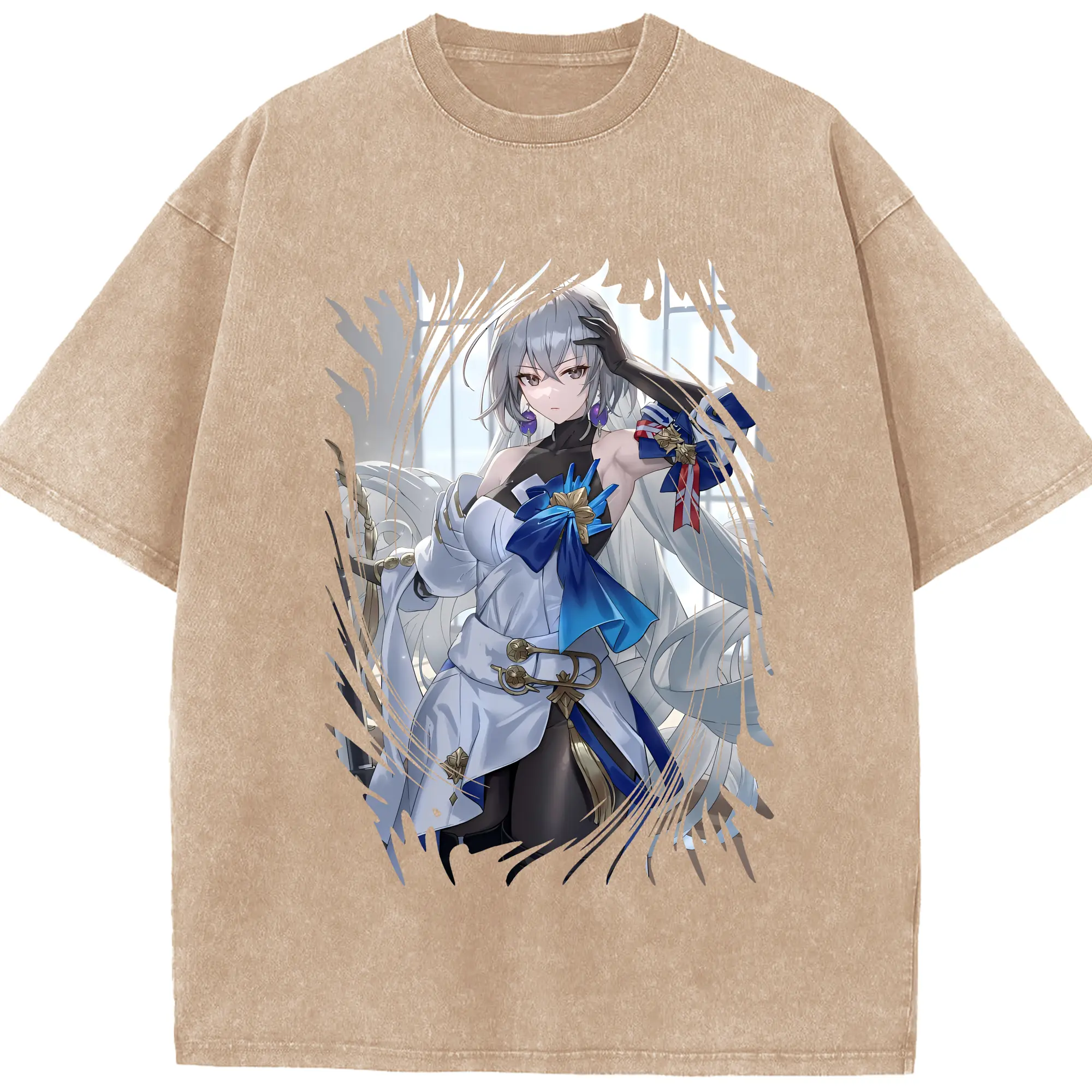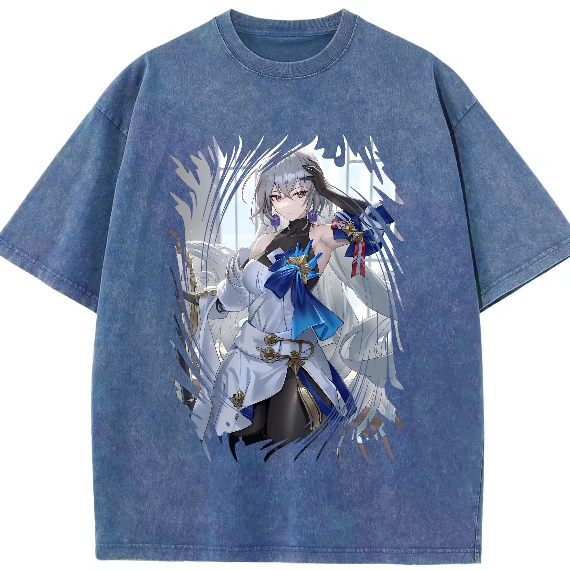 崩壊:スターレイル グッズ ブローニャ - 綿100% ヴィンテージ風 半袖Tシャツ ・ 背面プリント ・ 柔らか肌触り ・ 通気性 快適 ・ スポーツ カジュアル 外出用