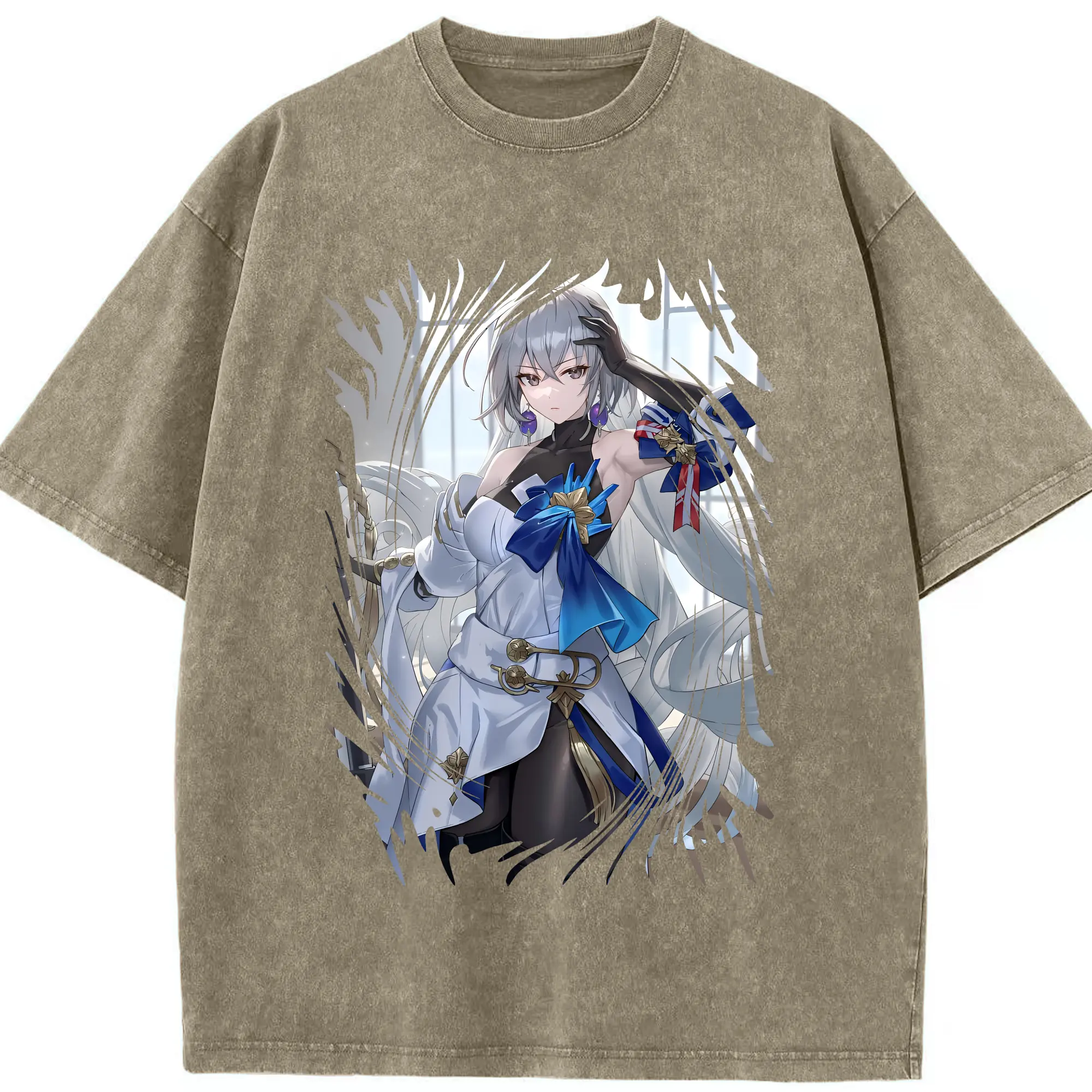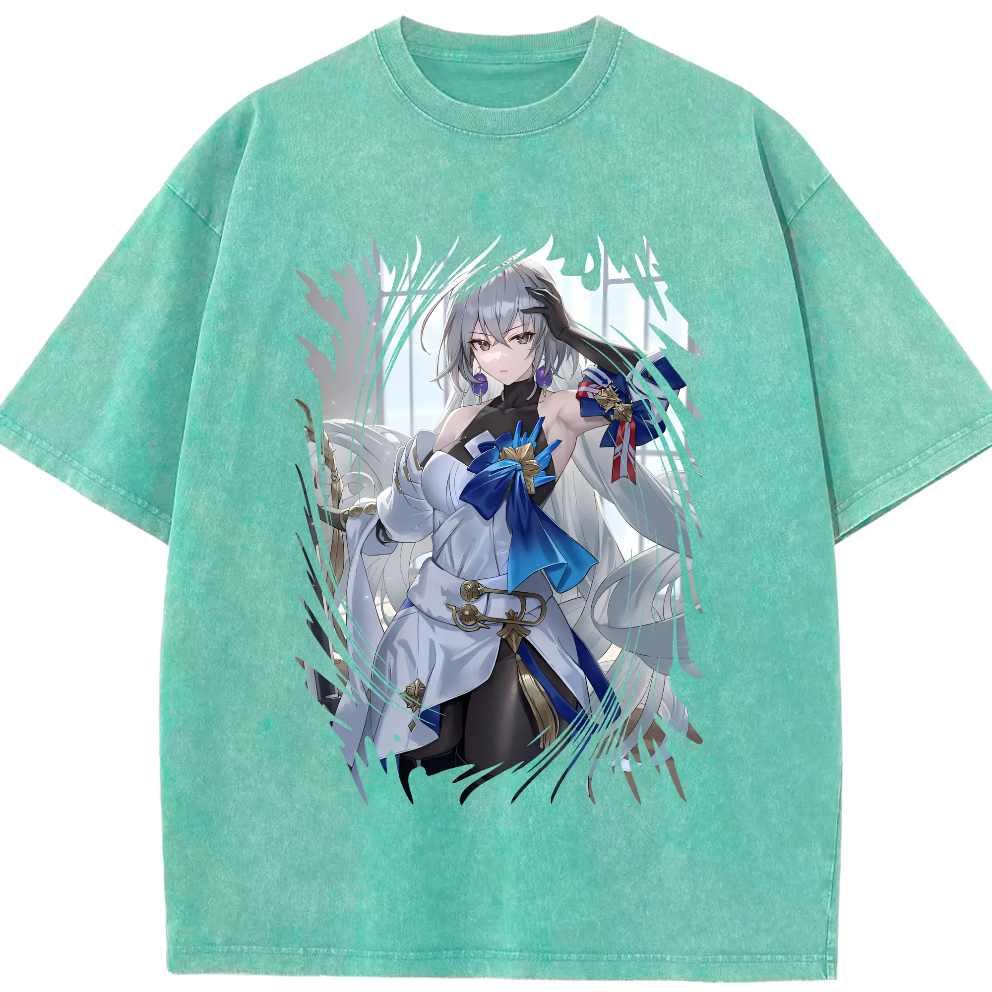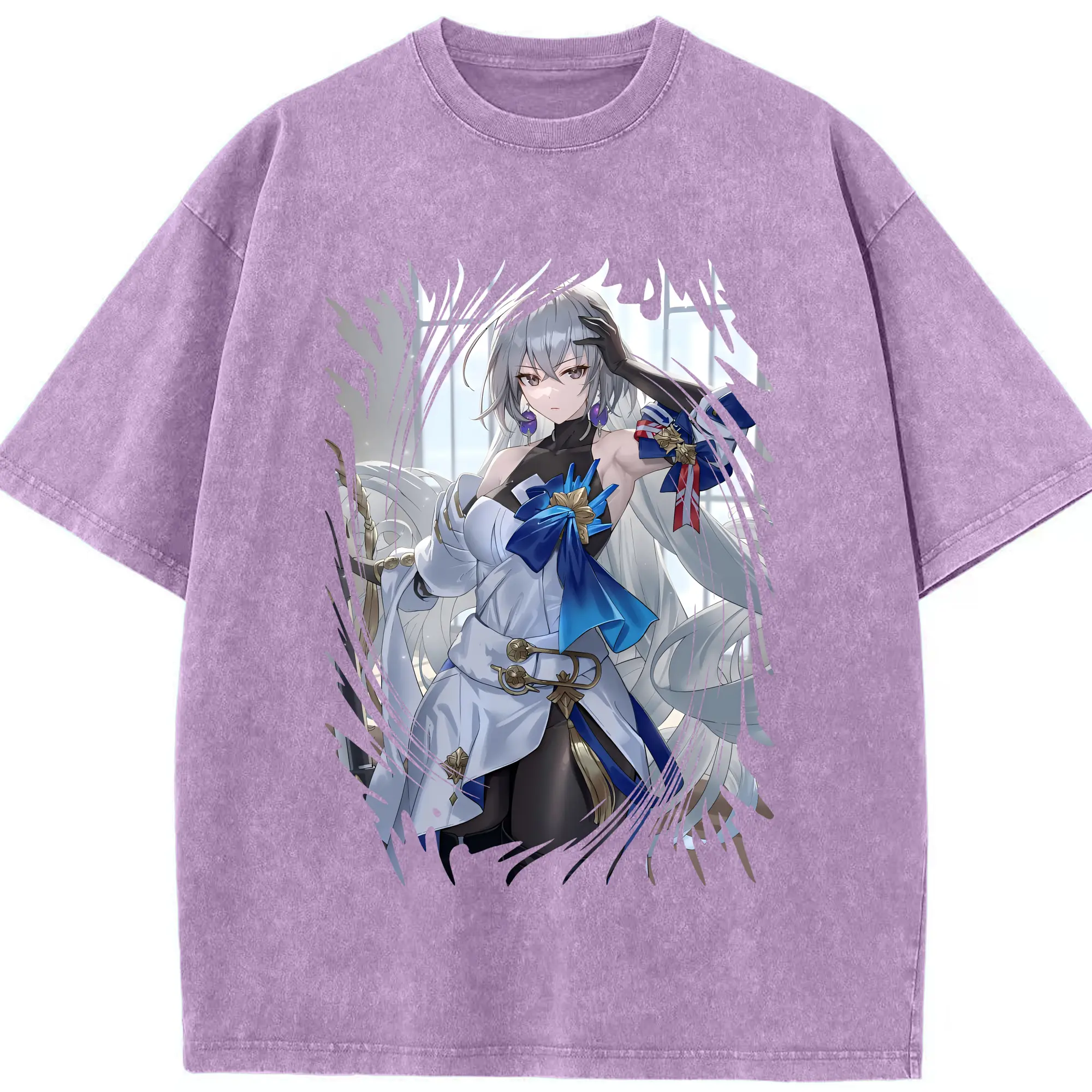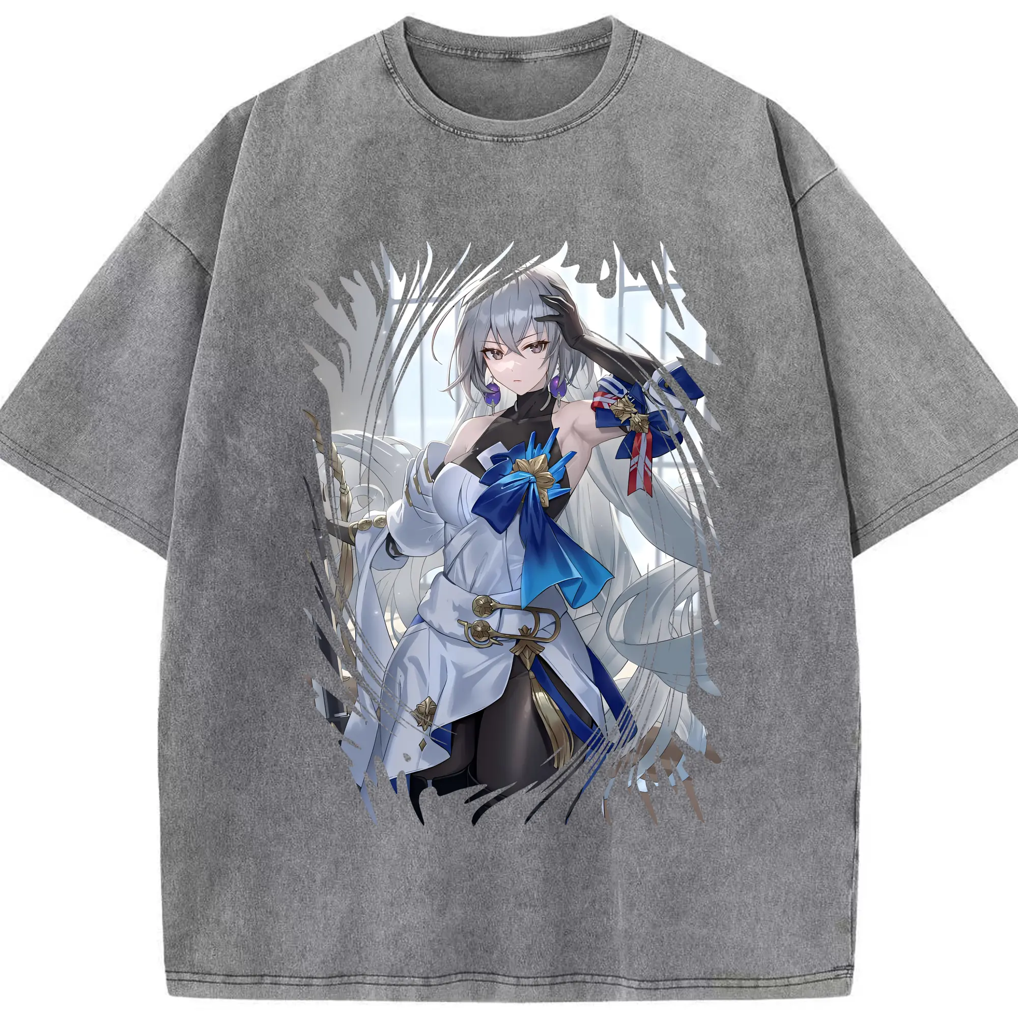 崩壊:スターレイル グッズ ブローニャ - 綿100% ヴィンテージ風 半袖Tシャツ ・ 背面プリント ・ 柔らか肌触り ・ 通気性 快適 ・ スポーツ カジュアル 外出用