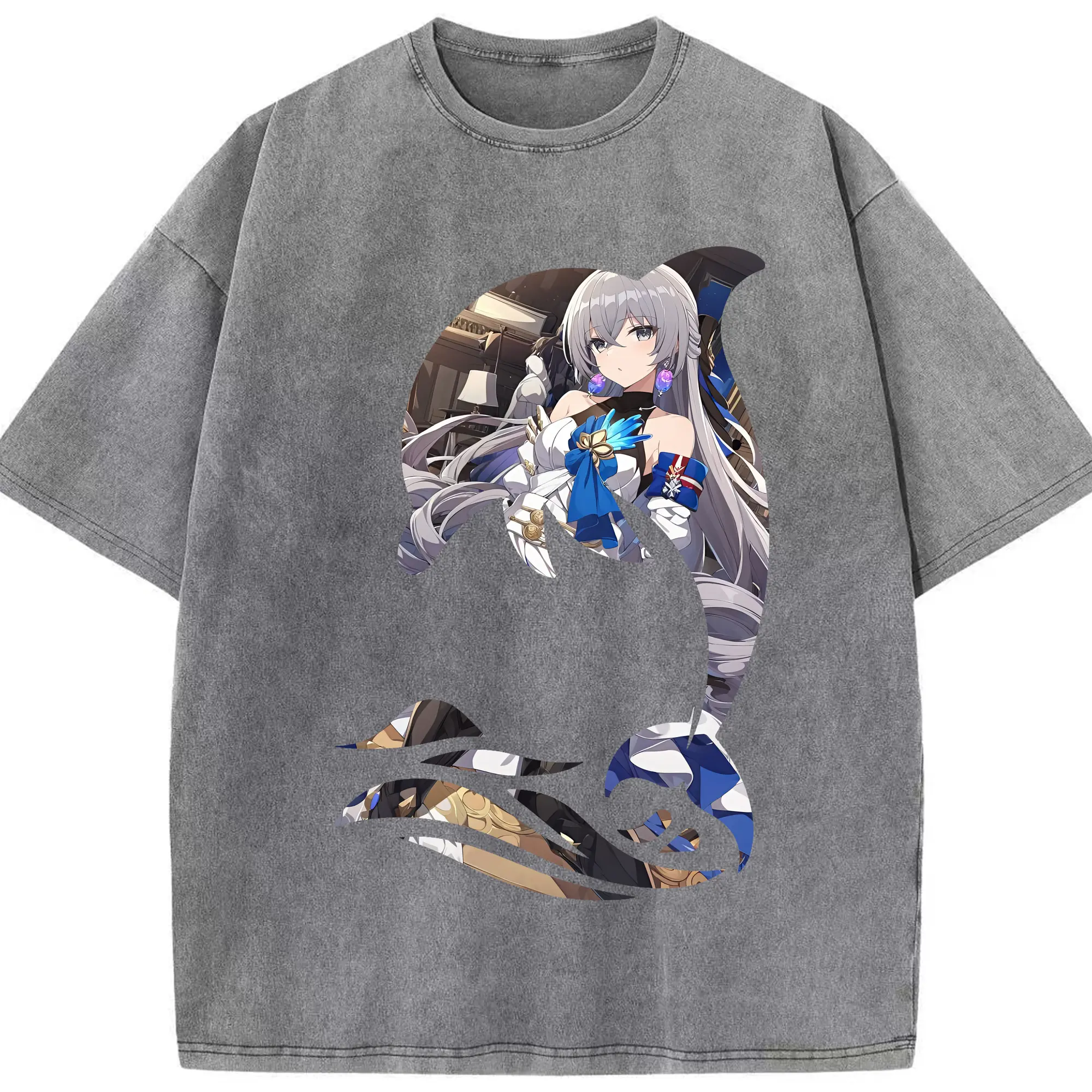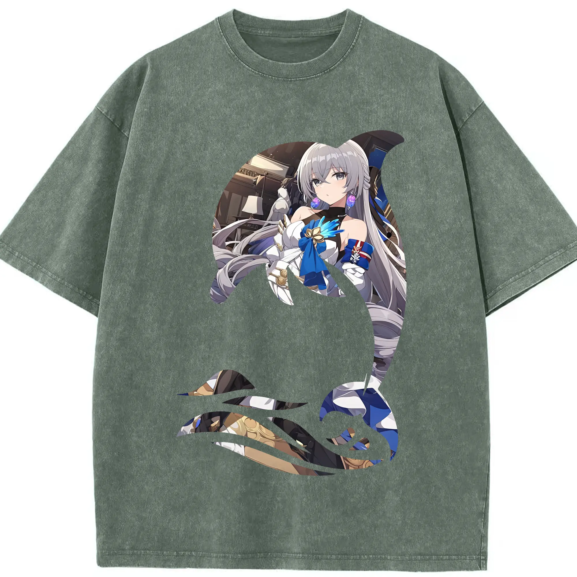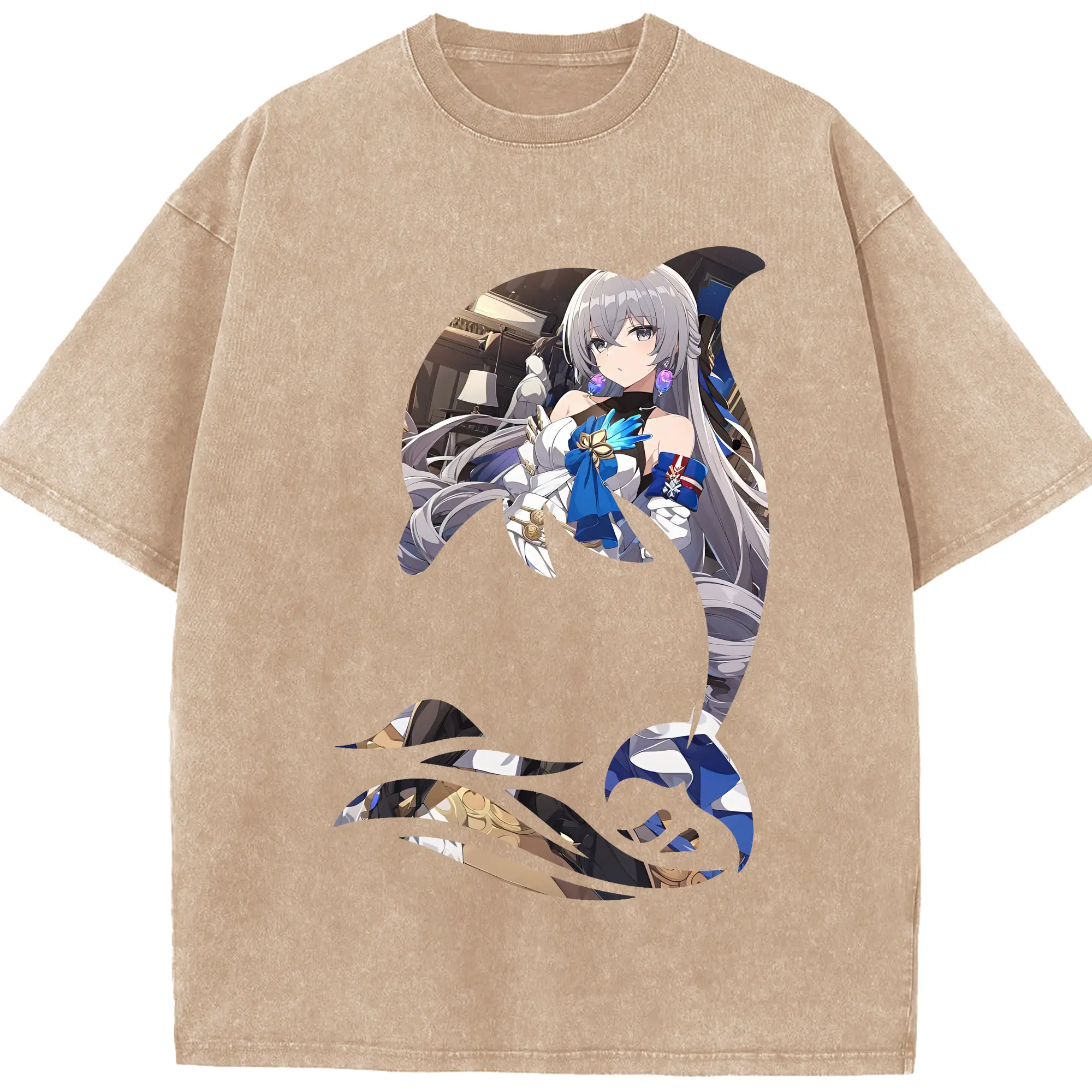 崩壊:スターレイル グッズ ブローニャ - 綿100% ヴィンテージ風 半袖Tシャツ ・ 背面プリント ・ 柔らか肌触り ・ 通気性 快適 ・ スポーツ カジュアル 外出用